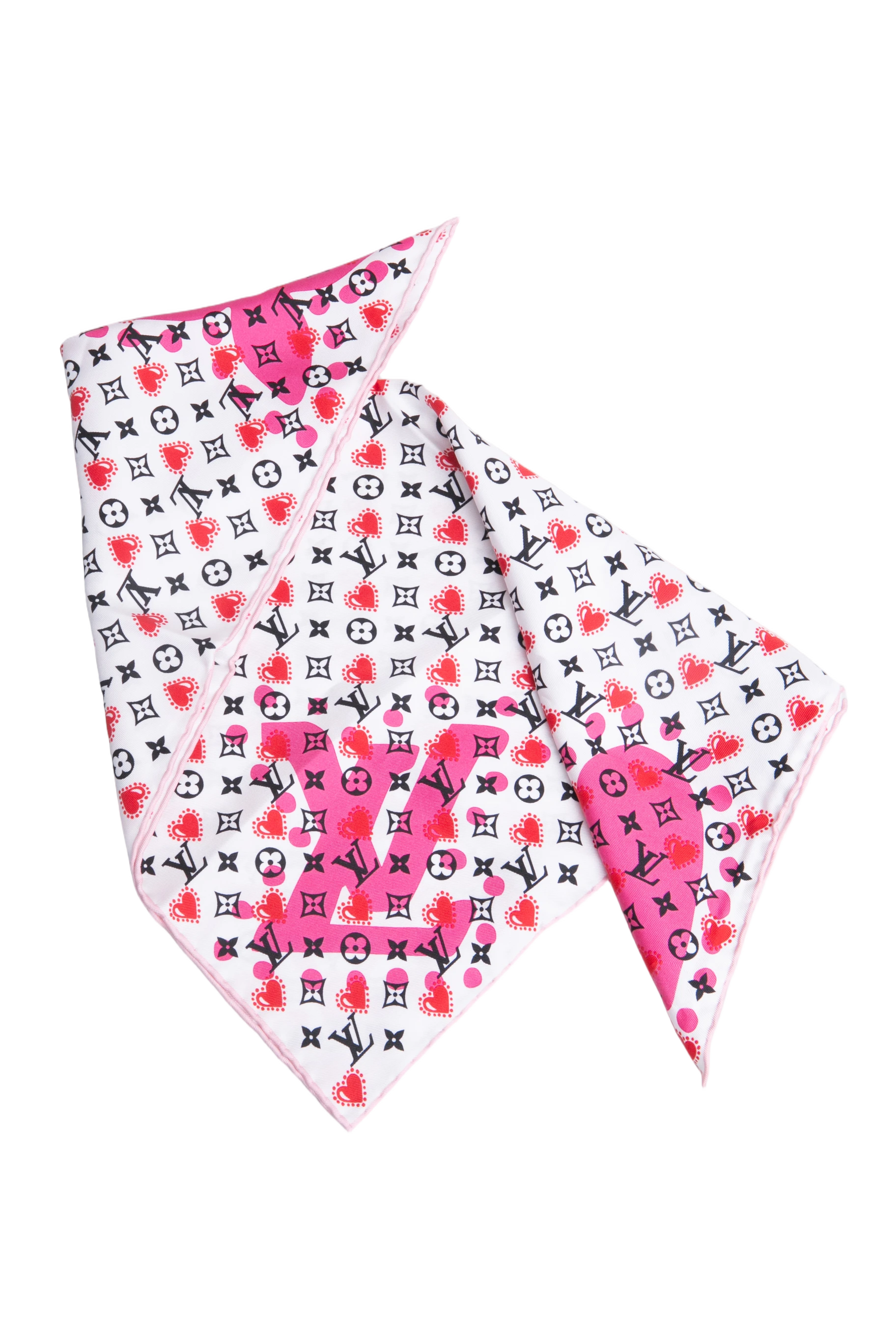 LV Carré I LV U Square 45 cm. Peça em perfeito estado, poucos sinais de uso. Tamanho: 45 cmLenço quadrado na cor branco e acabamento rosa claro, com monograma LV estampado e corações vermelhos. Não contém dust bag ou box * Todas as fotos...- Preço normal