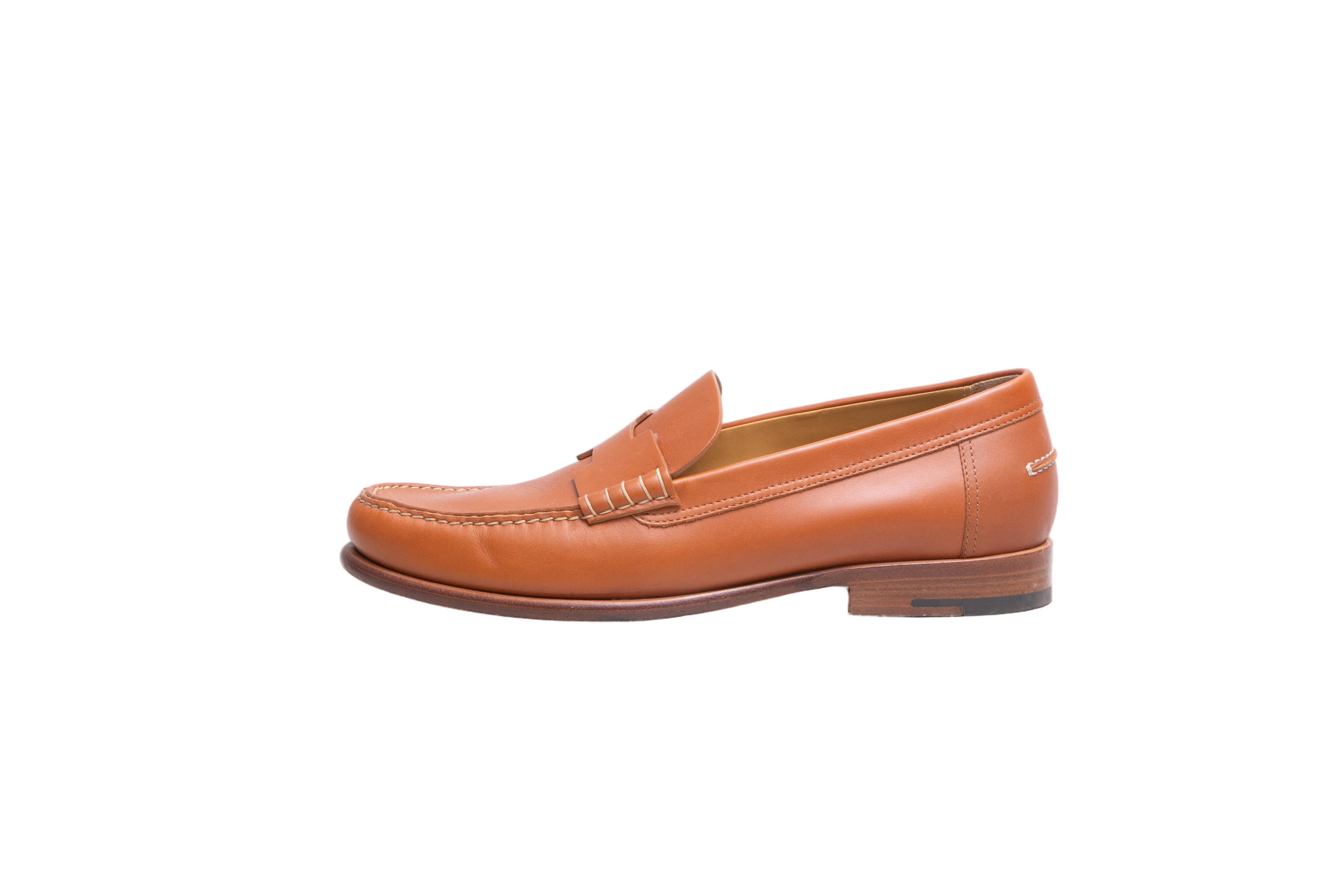 Hermès Kennedy Loafer Naturel. Peça em ótimo estado, possui sinais na sola e marcas nas laterais da peça. Tamanho: 41 1/2 SOLA - 39 1/2 BrasilMocassim em couro caramelo, com recorte em H na parte frontal. Possui acabamento em costura e solado amadeirado. Contém...- Preço normal