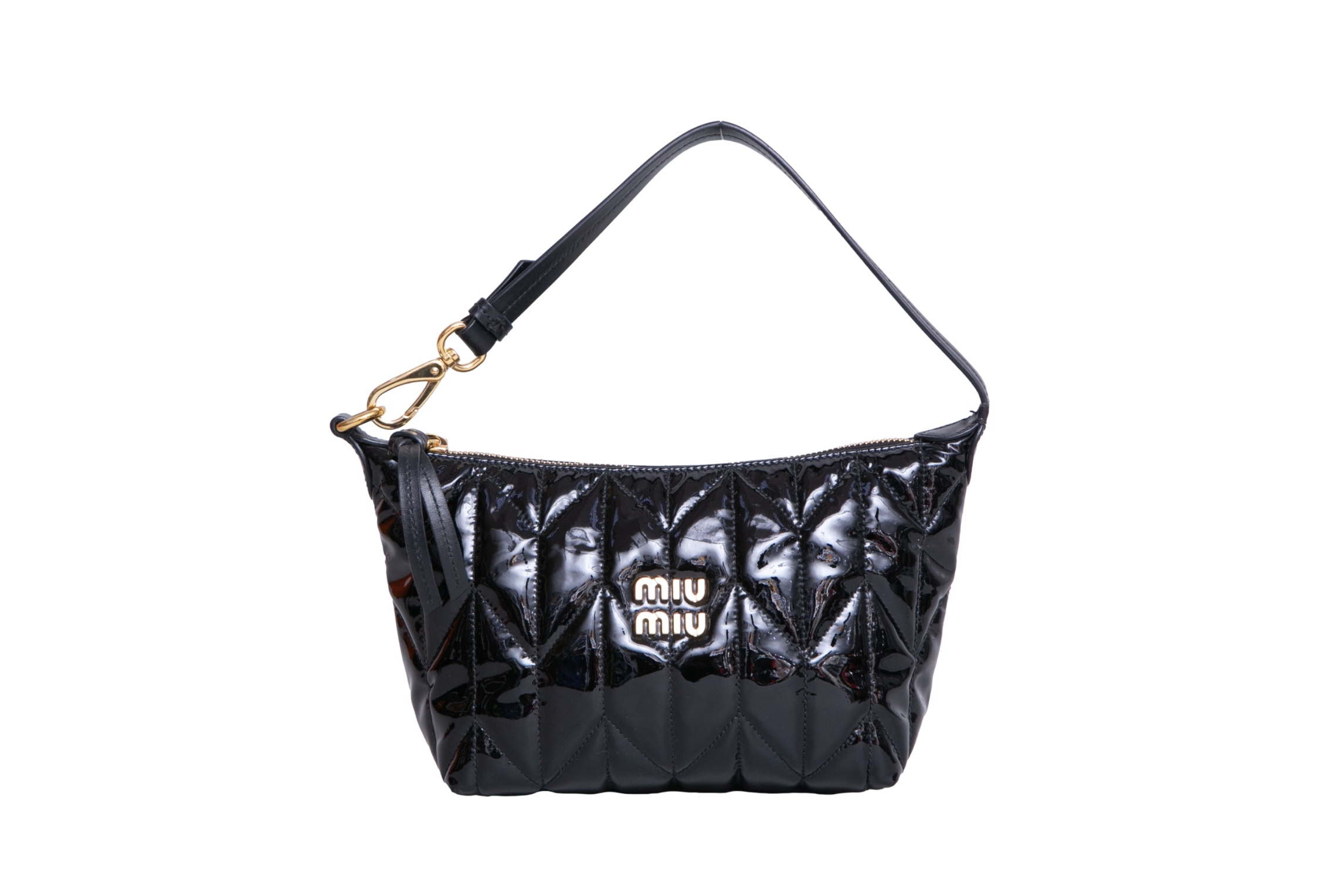 MIU MIU SPIRIT CIRÉ QUILTED PATENT BLACK