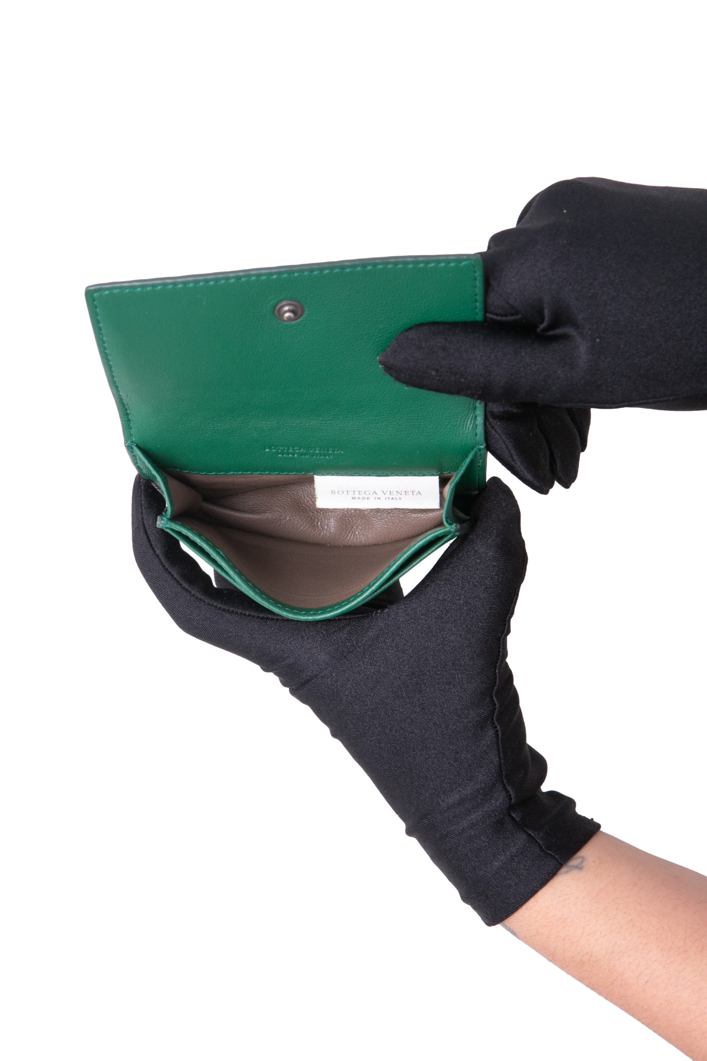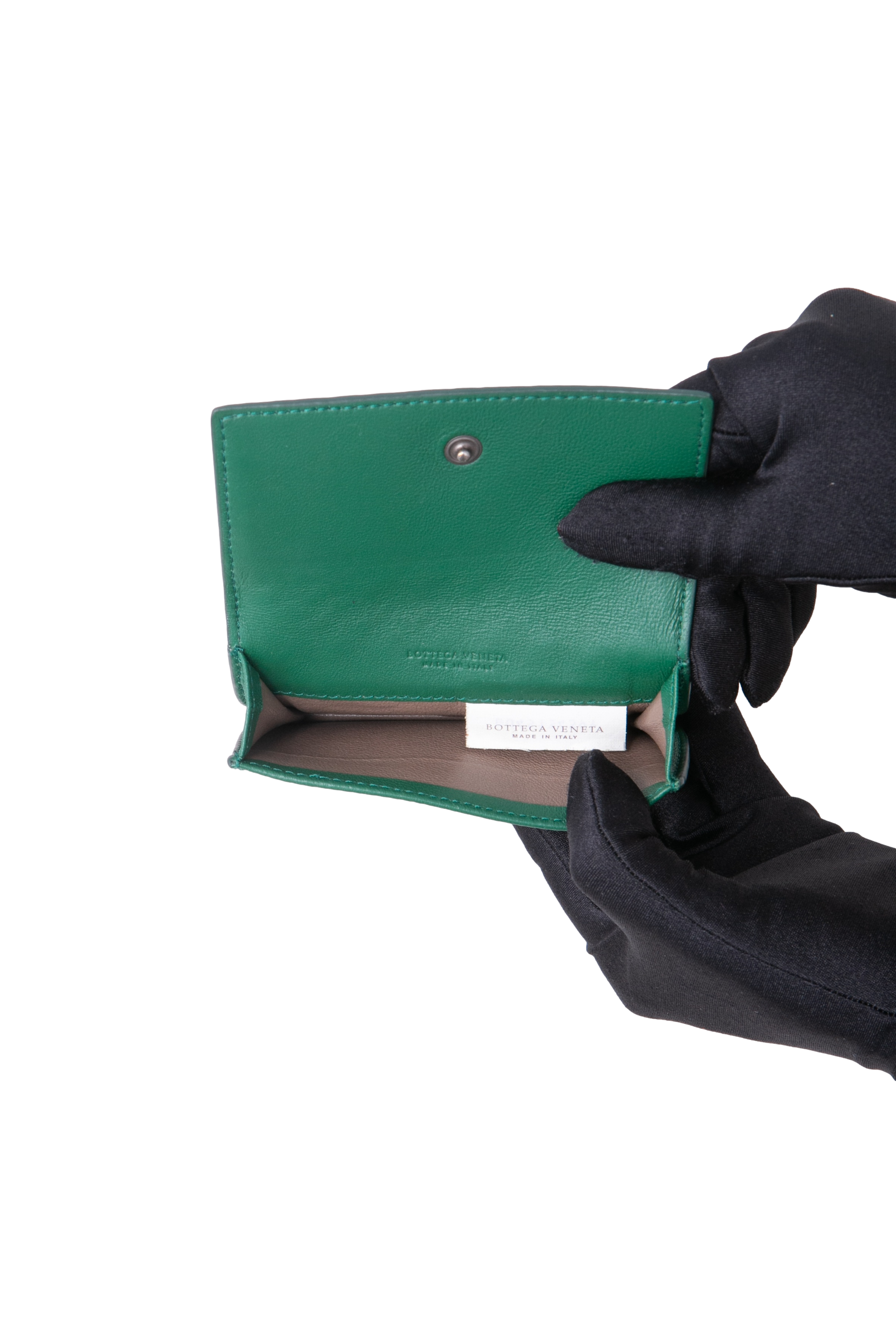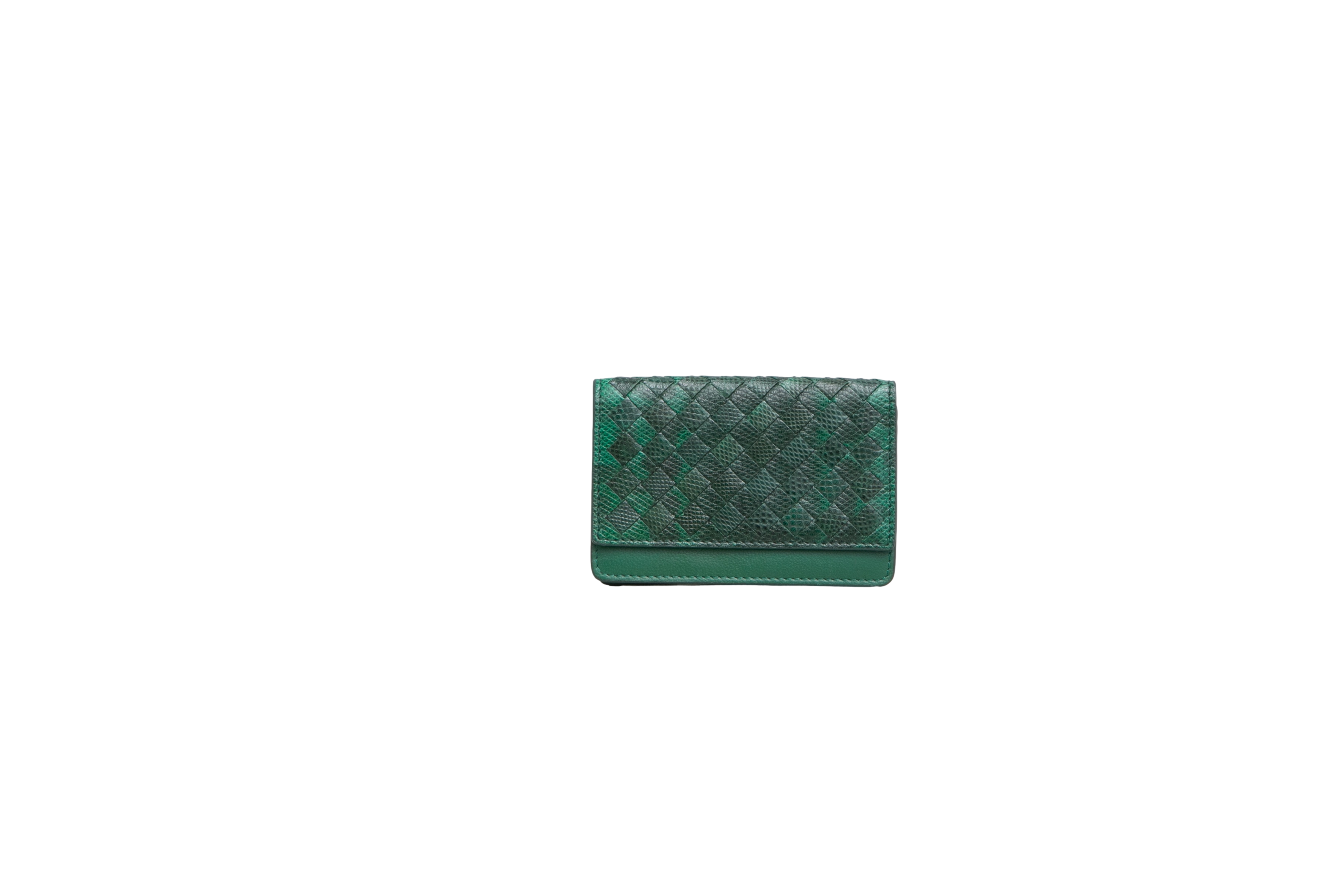 Bottega Card Holder Bi-Fold Intrecciato Moss Green. Peça em ótimo estado, mínimas manchas no couro.