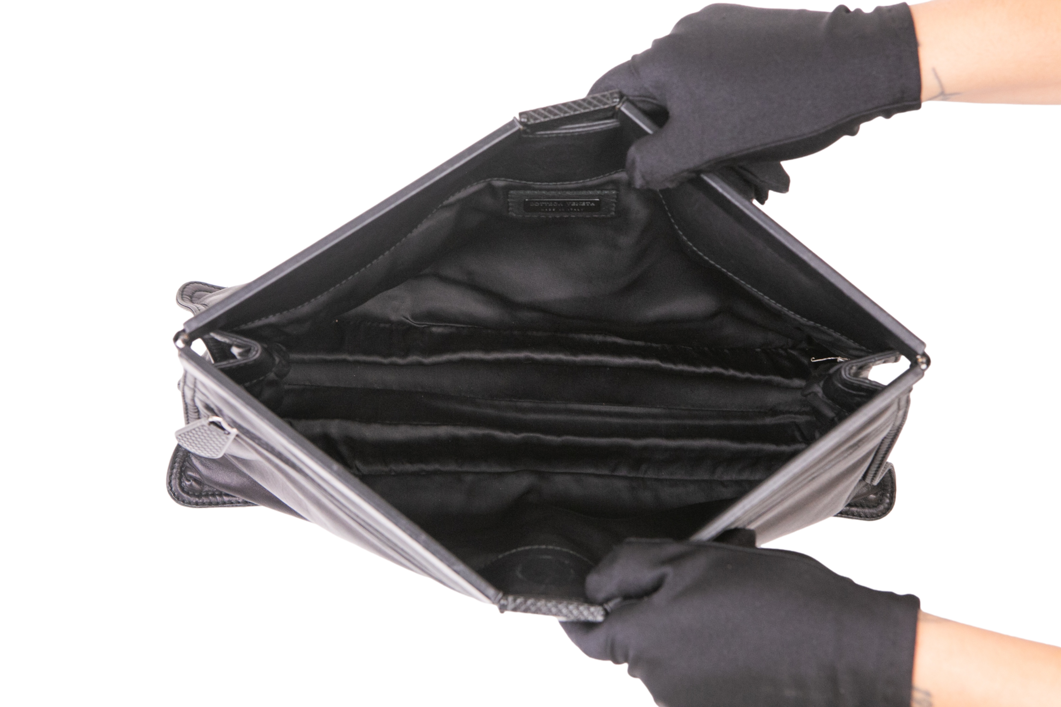 Bottega Clutch Purse Long Zipper Black. Peça em ótimo estado, possui marcas e scratches no couro. Acomoda todos os tamanhos de telefone.
