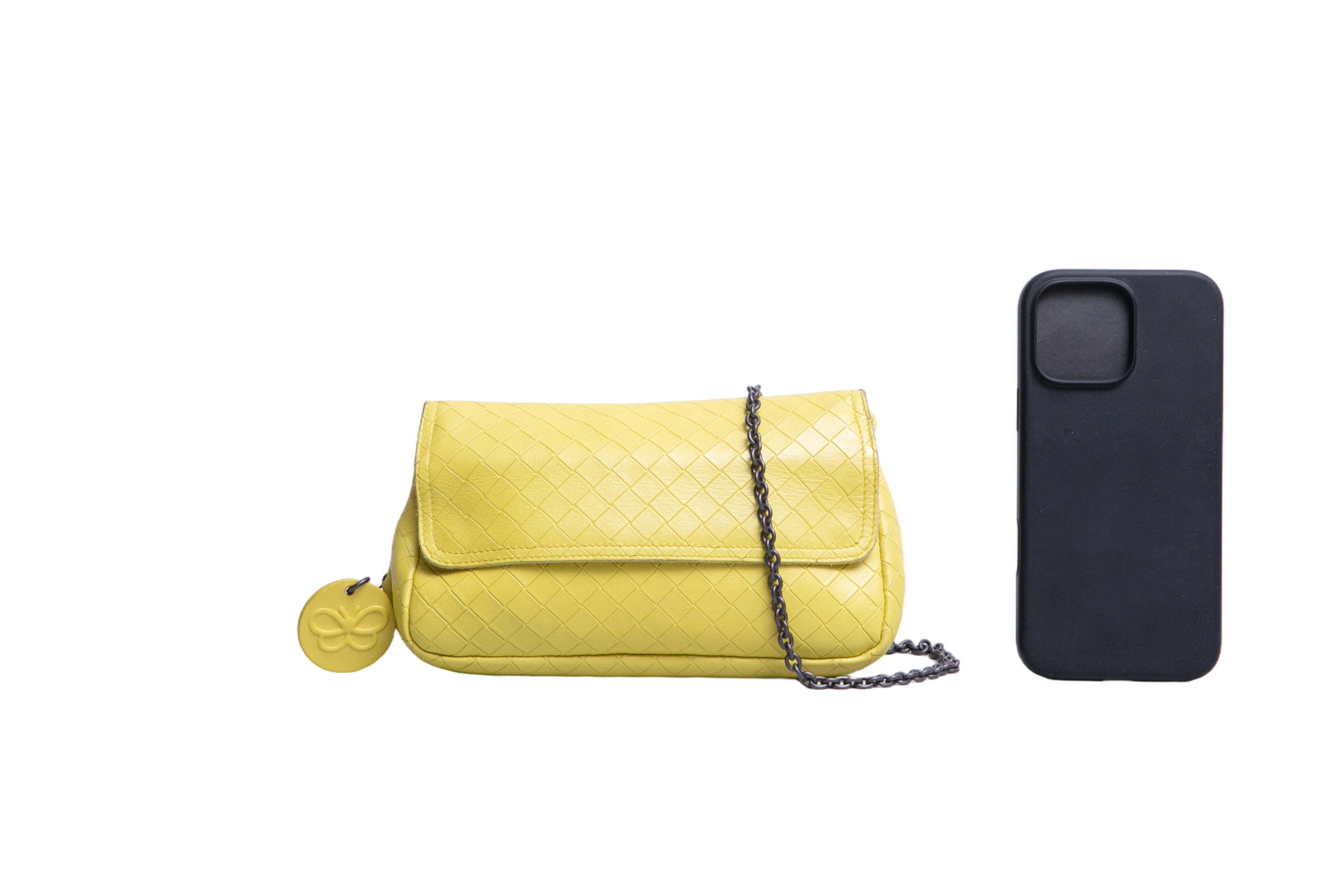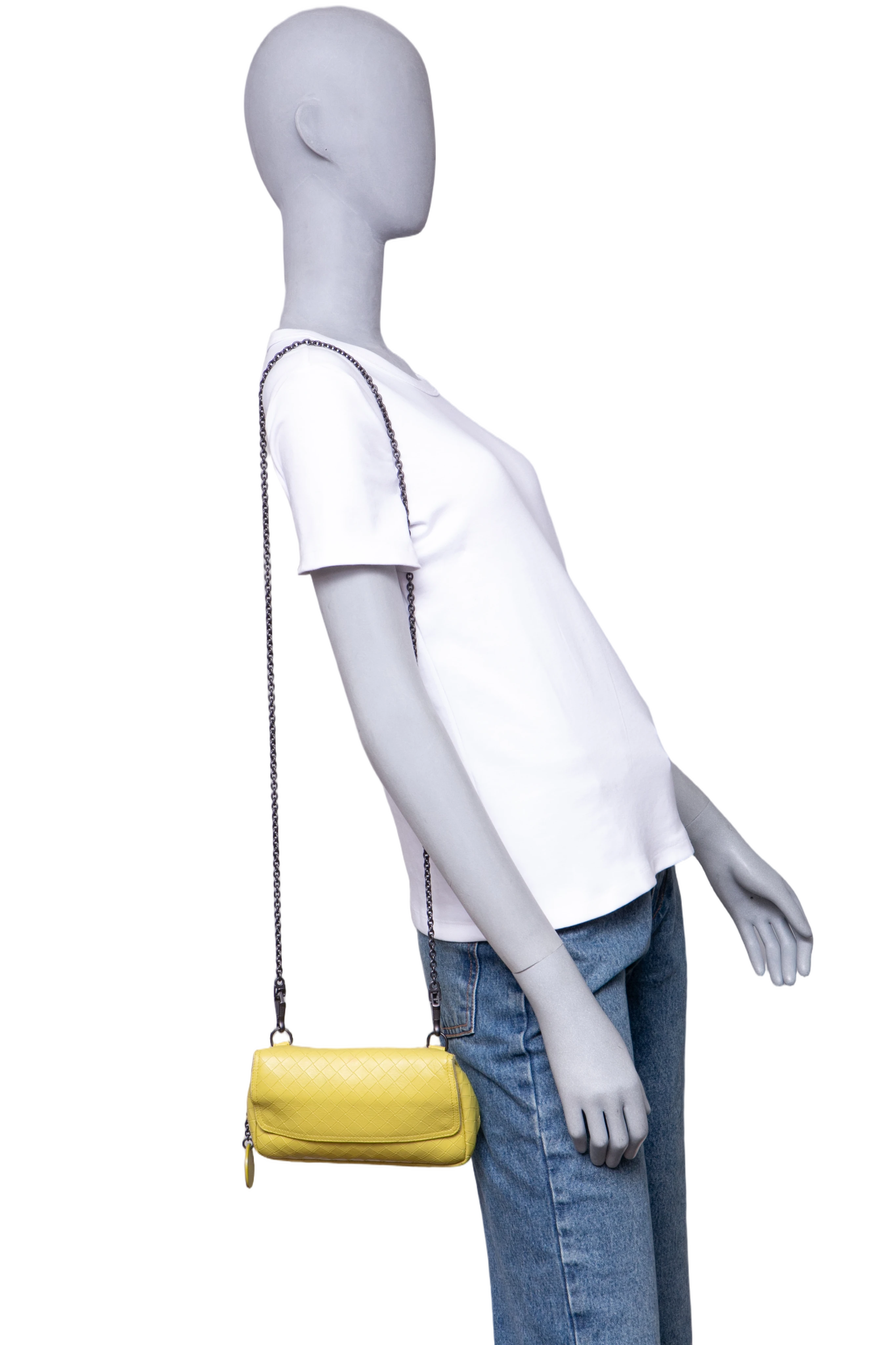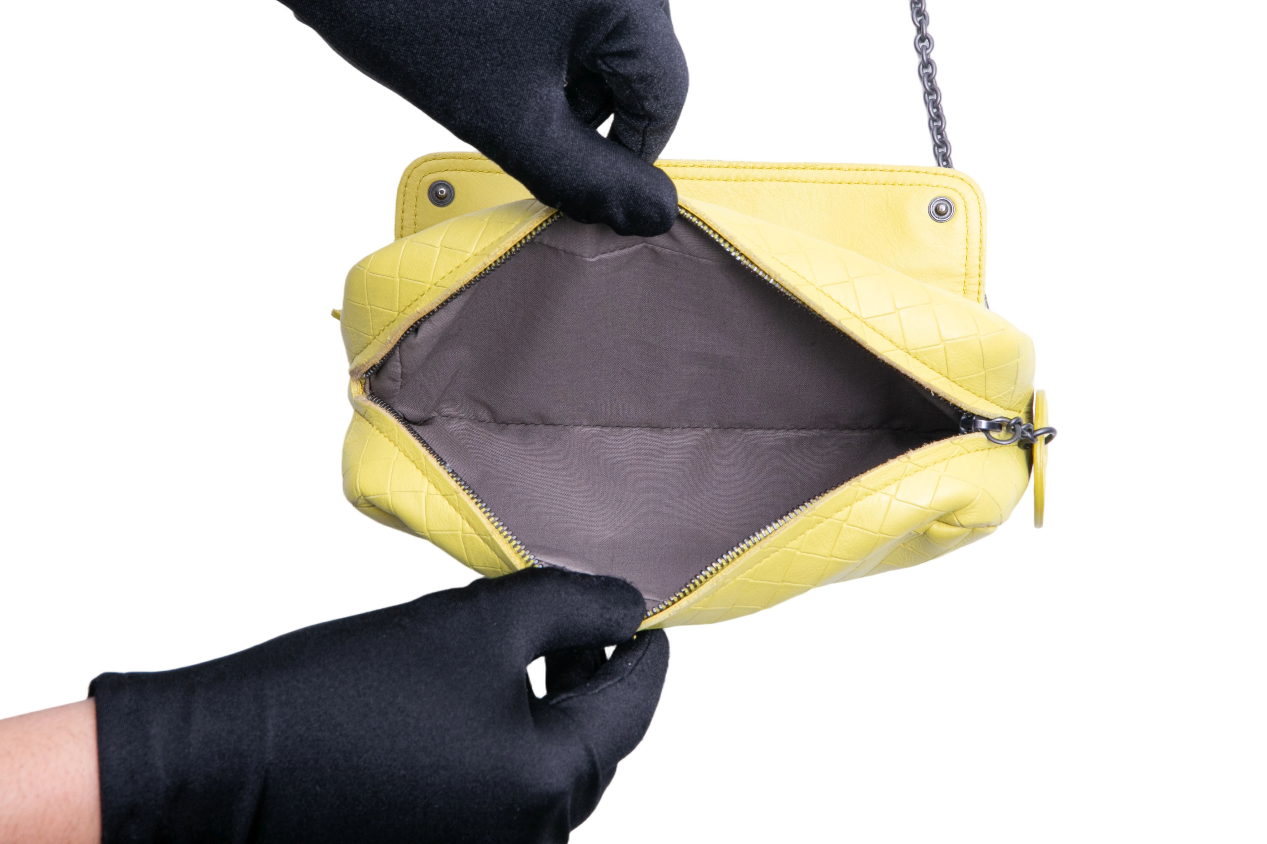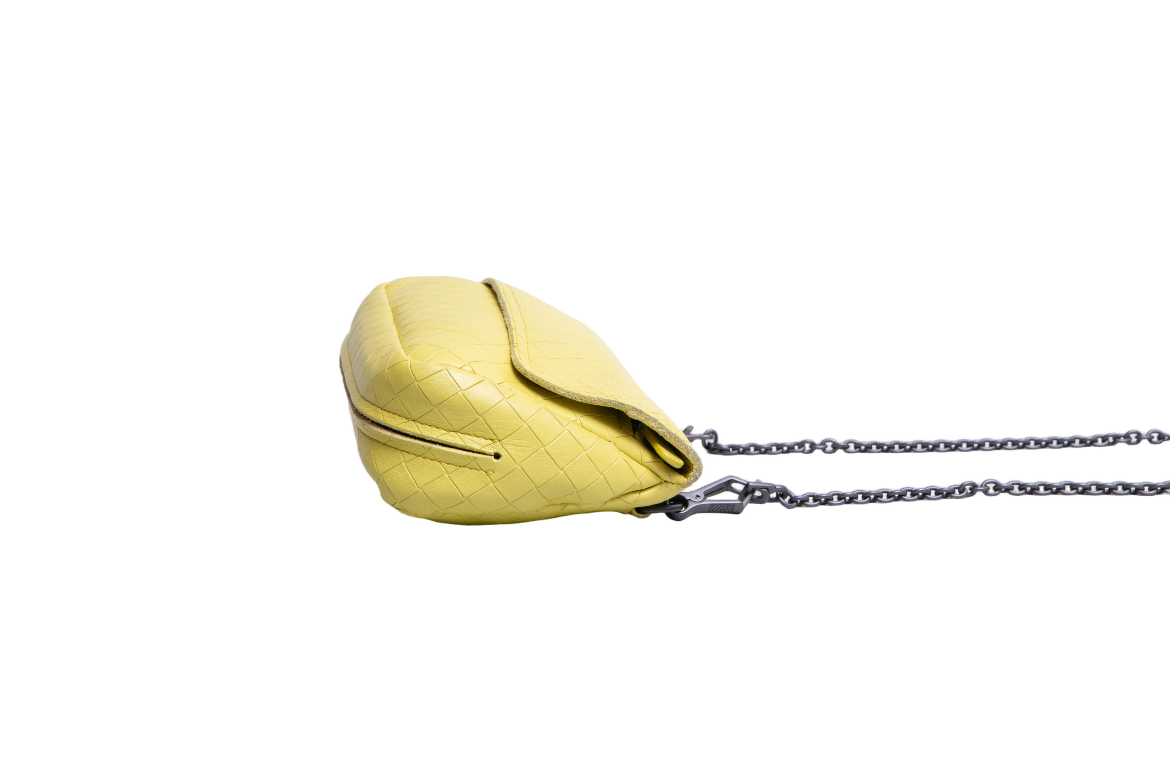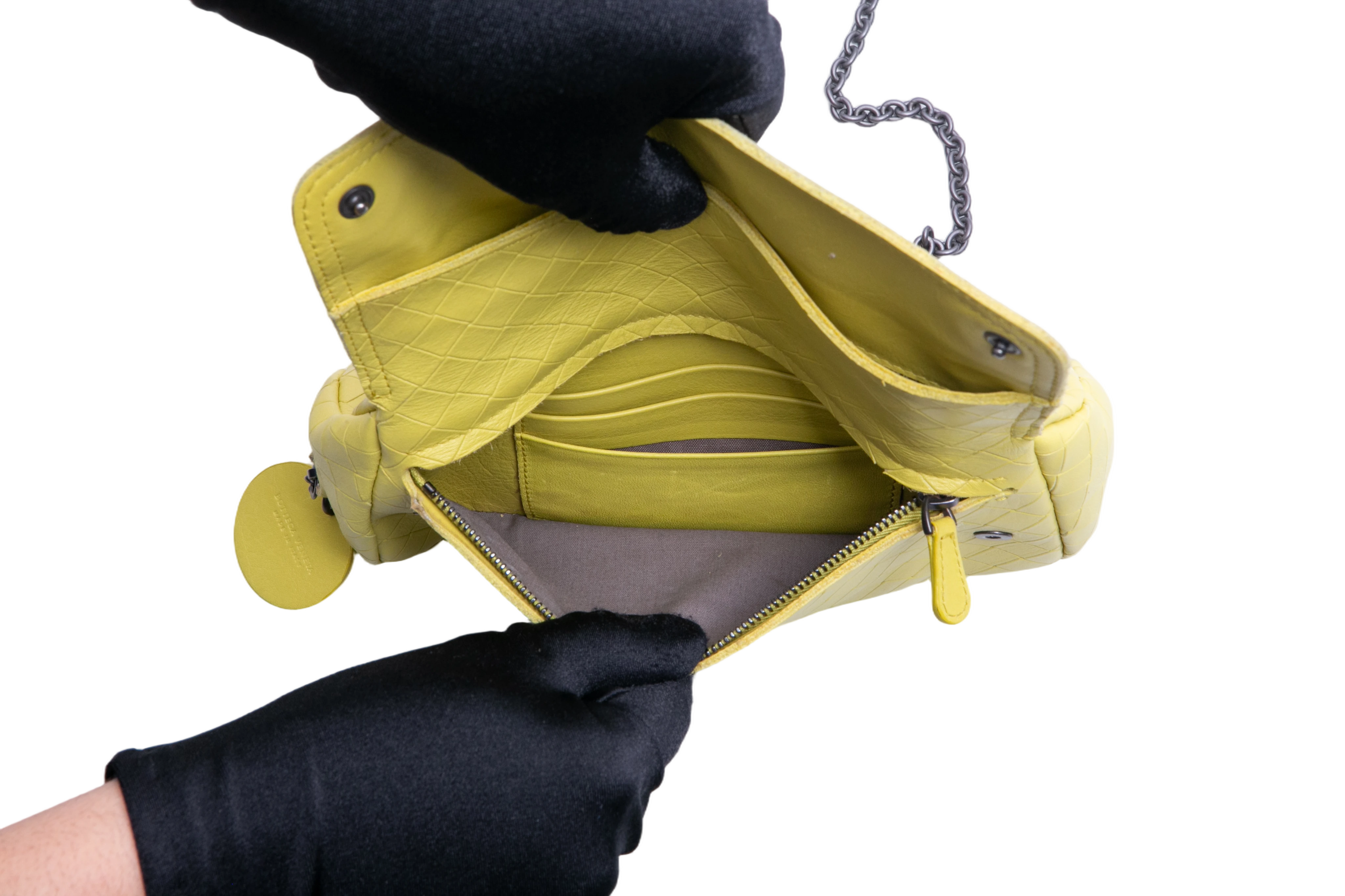 Bottega Disco Crossbody Intrecciato Lime. Peça em perfeito estado, pequenos sinais no bolso interno.