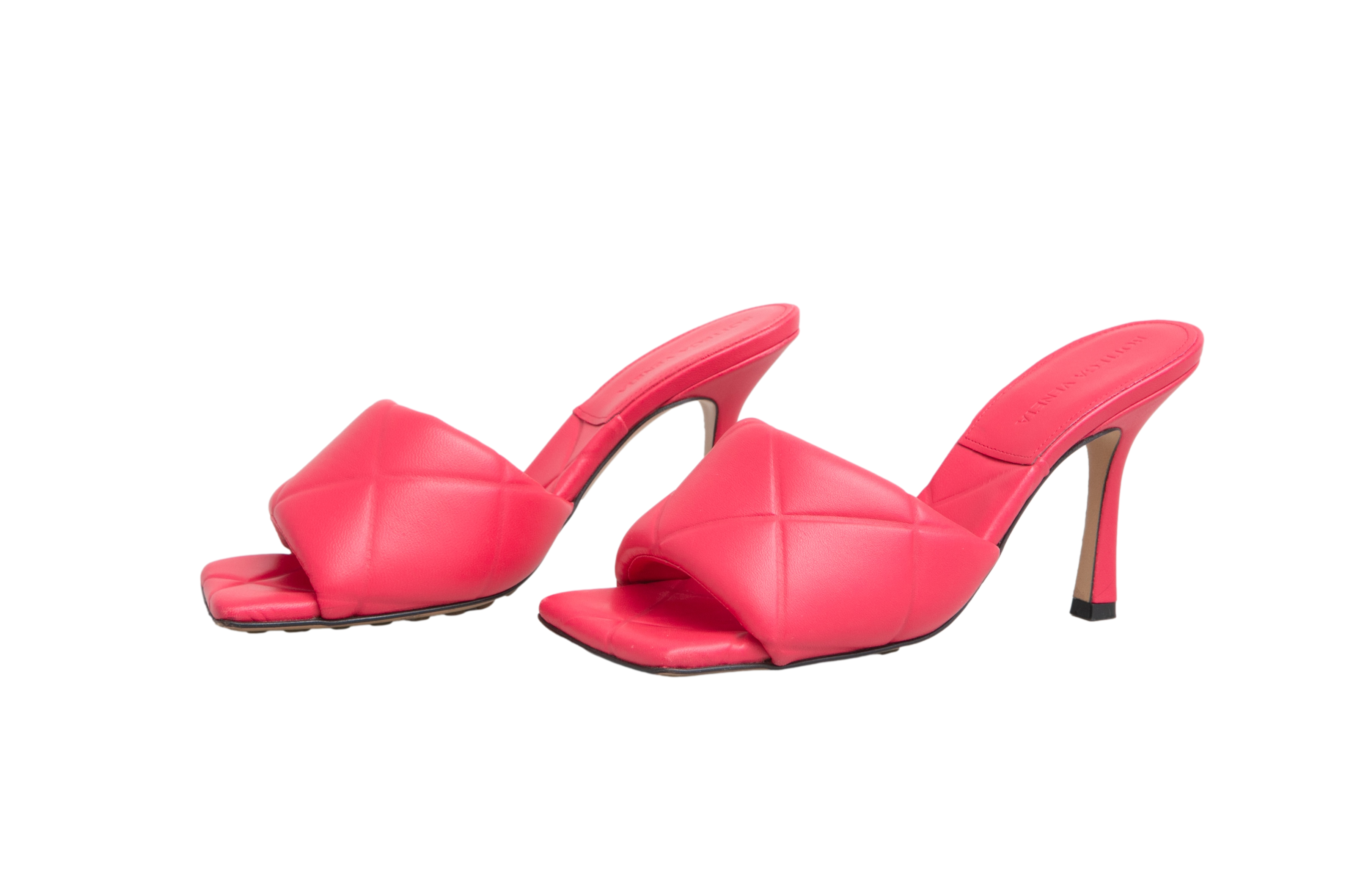 Bottega Sandal Lido Padded Pink. Peça em perfeito estado, possui marcas de uso na sola e pequenos scratches no salto.