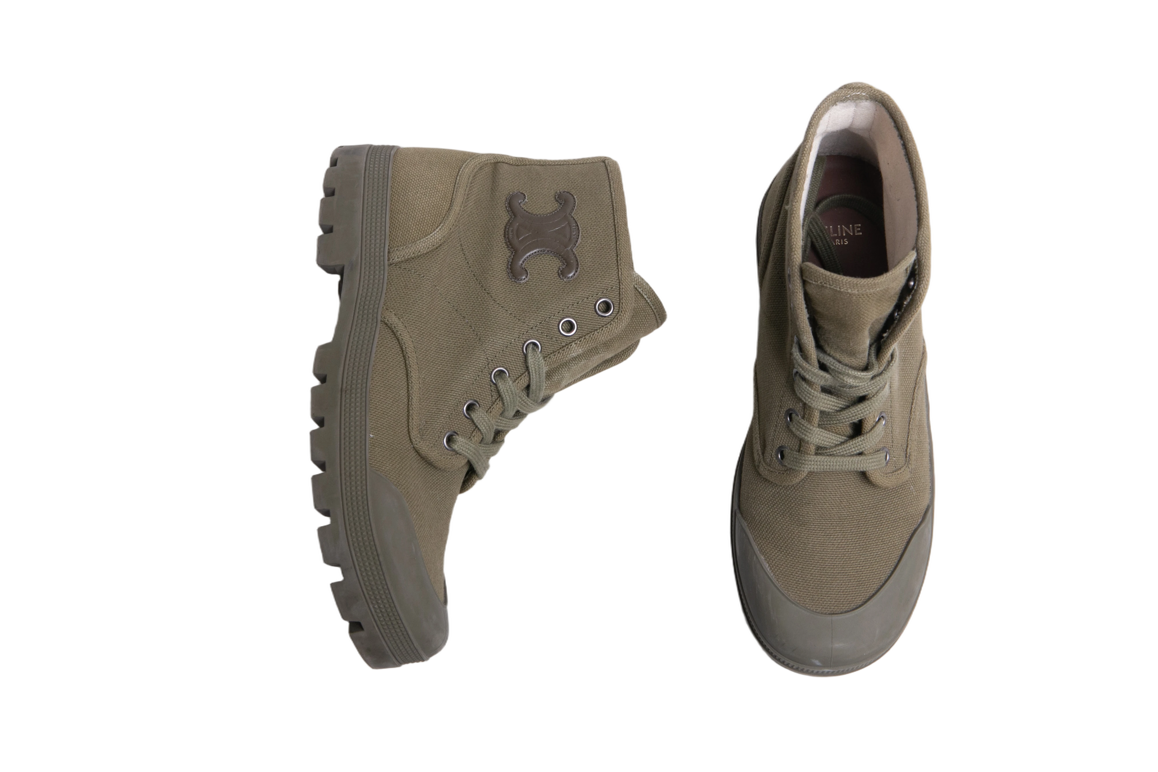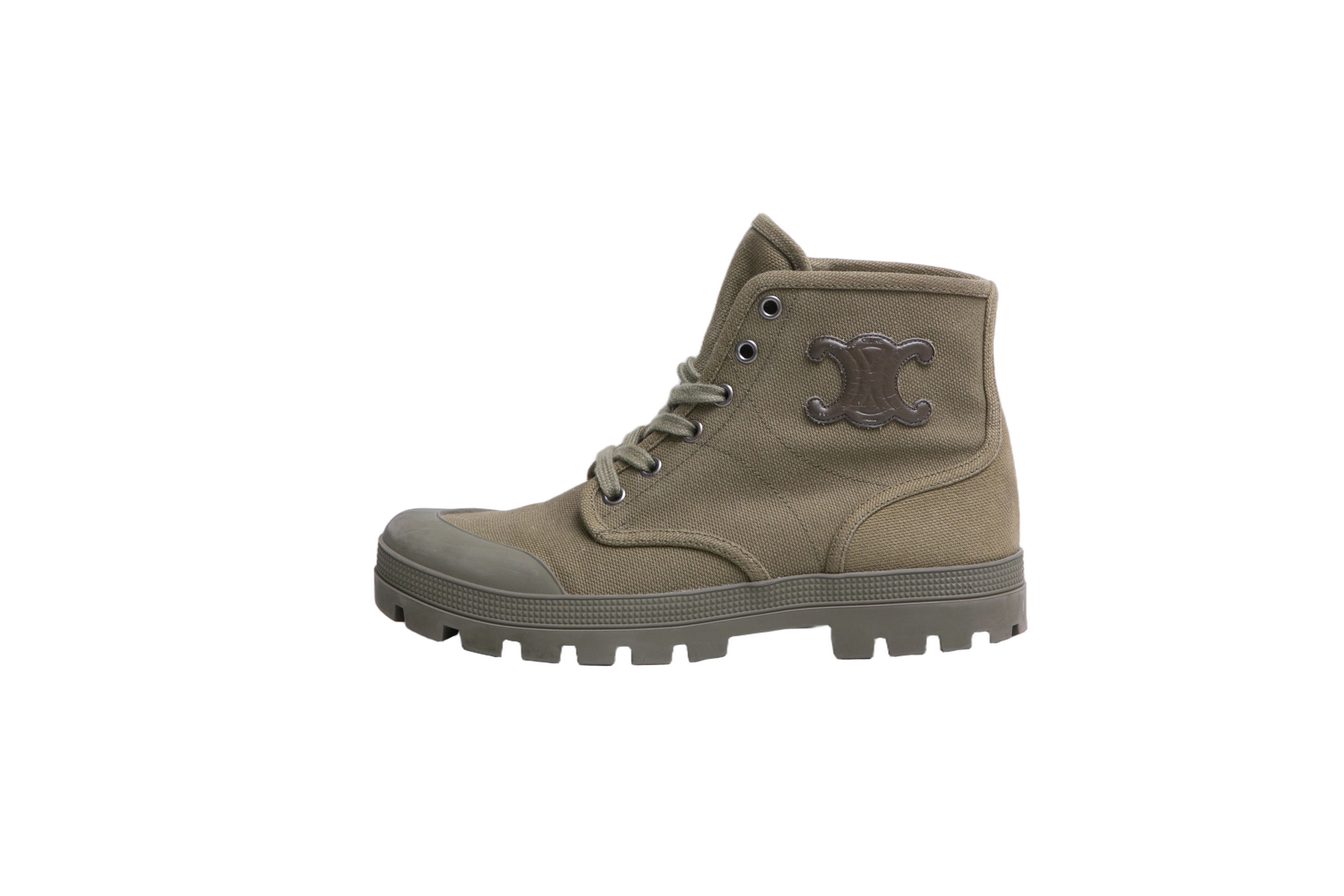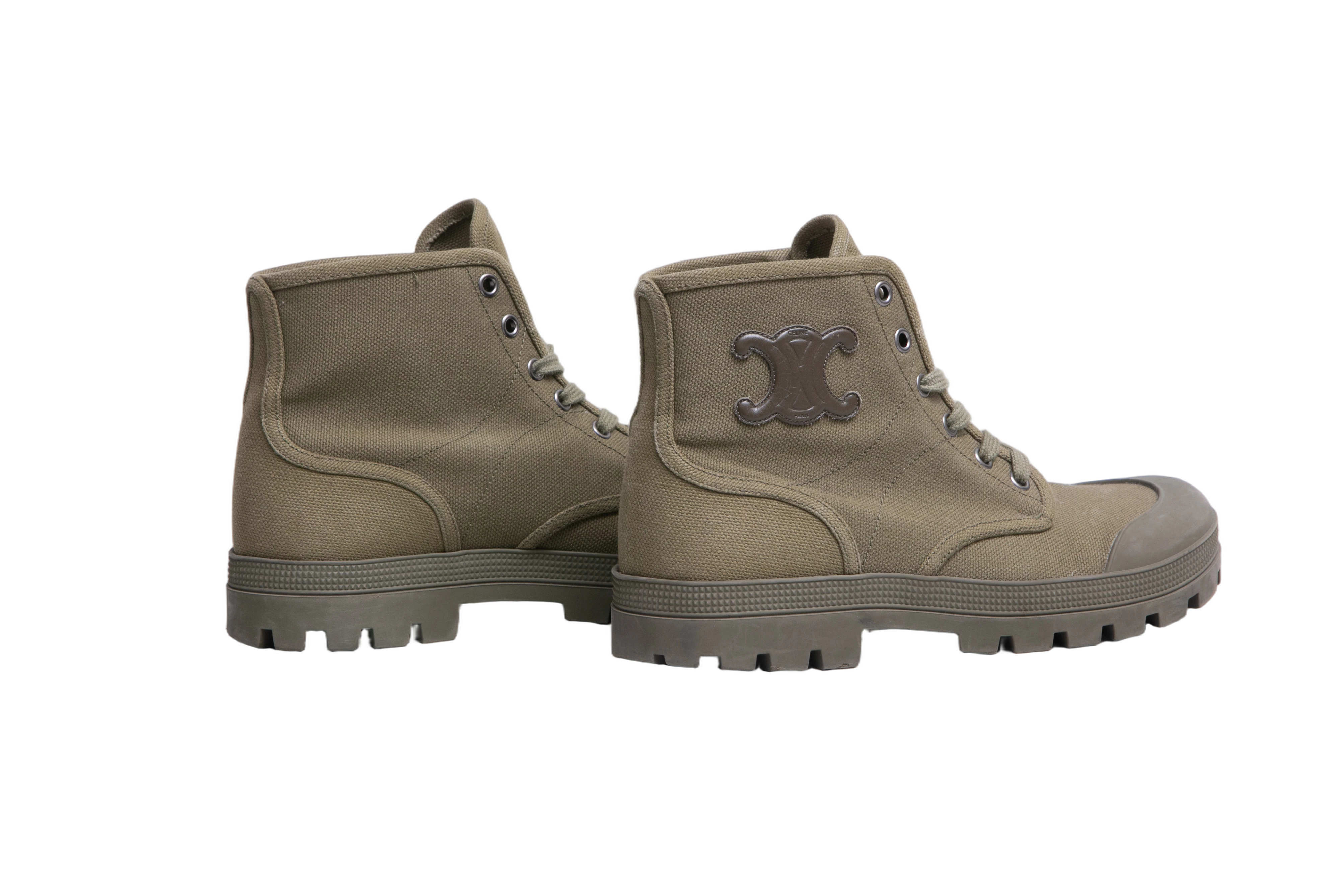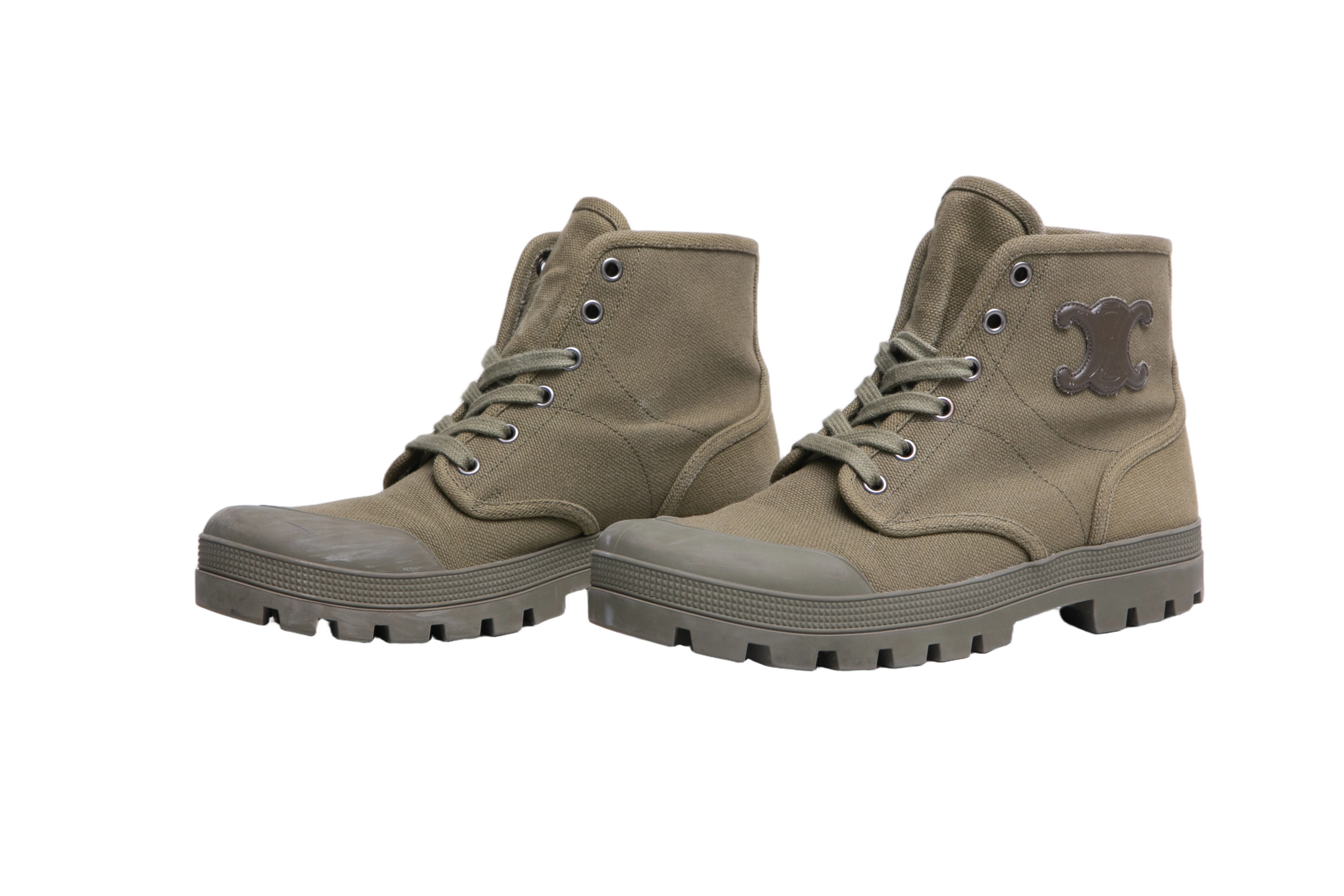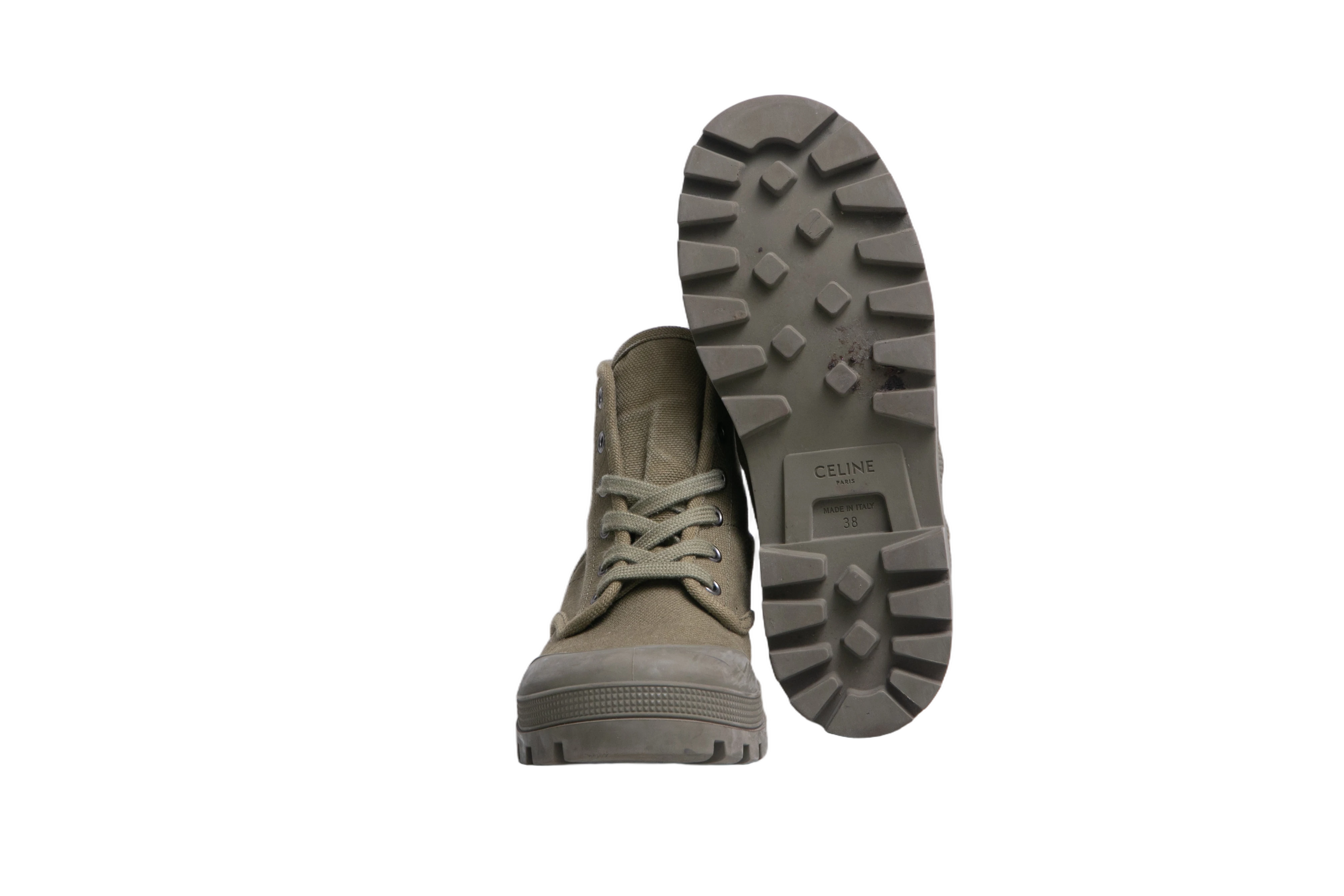 Celine Boots Patacan Canvas Khaki. Peça em perfeito estado, pequenos sinais no bico e sola.