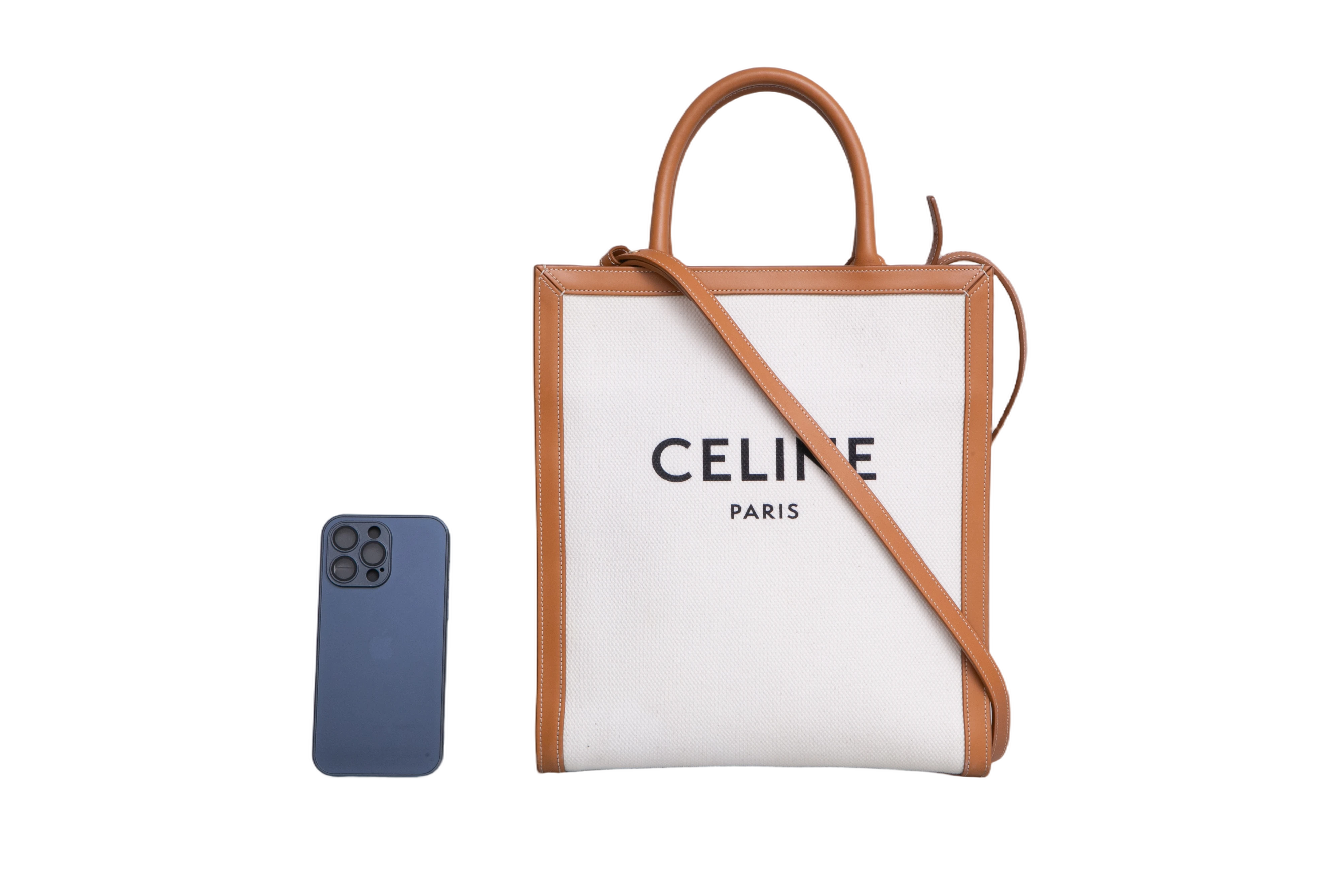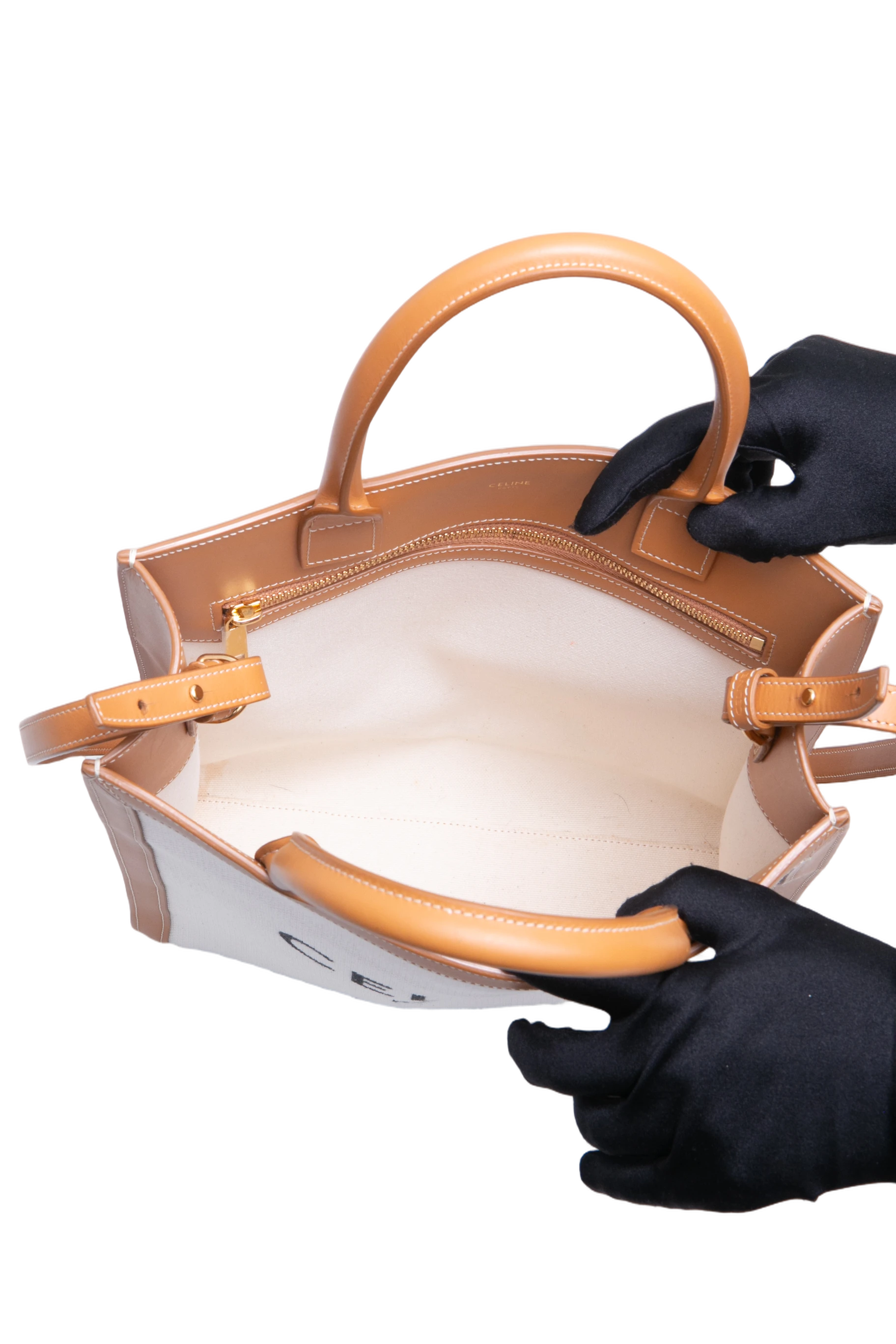 Celine Cabas Vertical Natural/Tan. Peça em perfeito estado, possui pequenos sinais no couro.