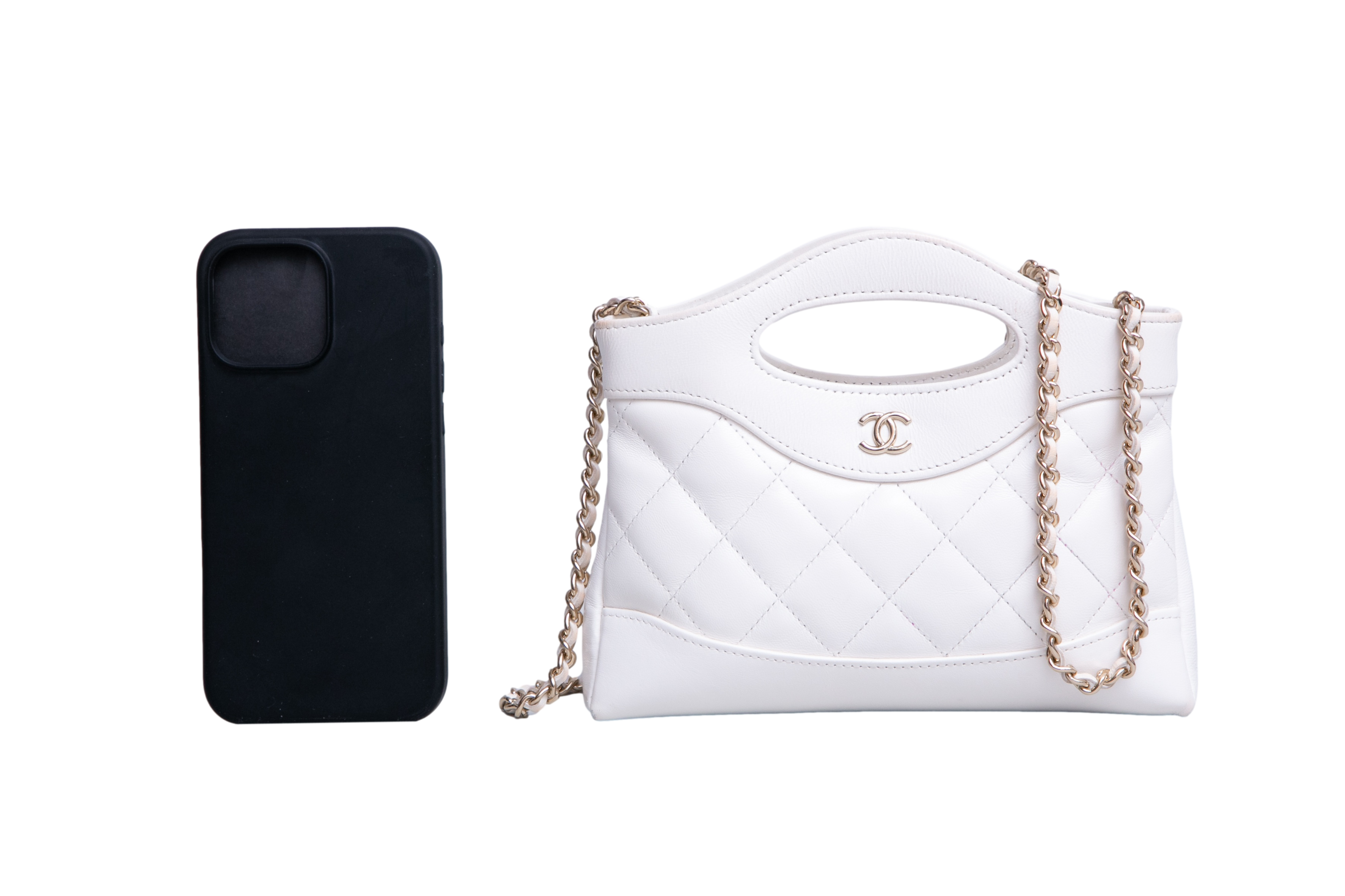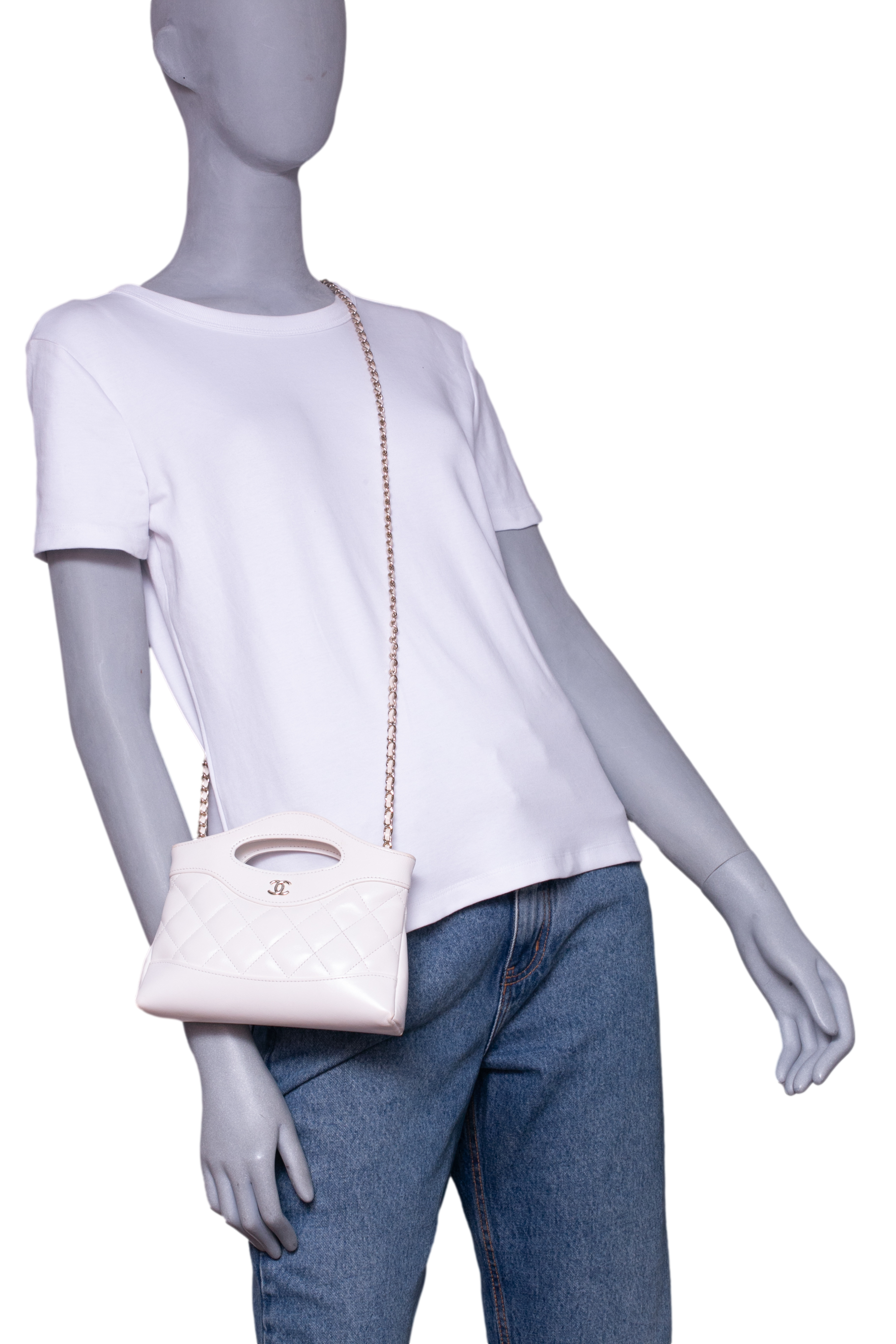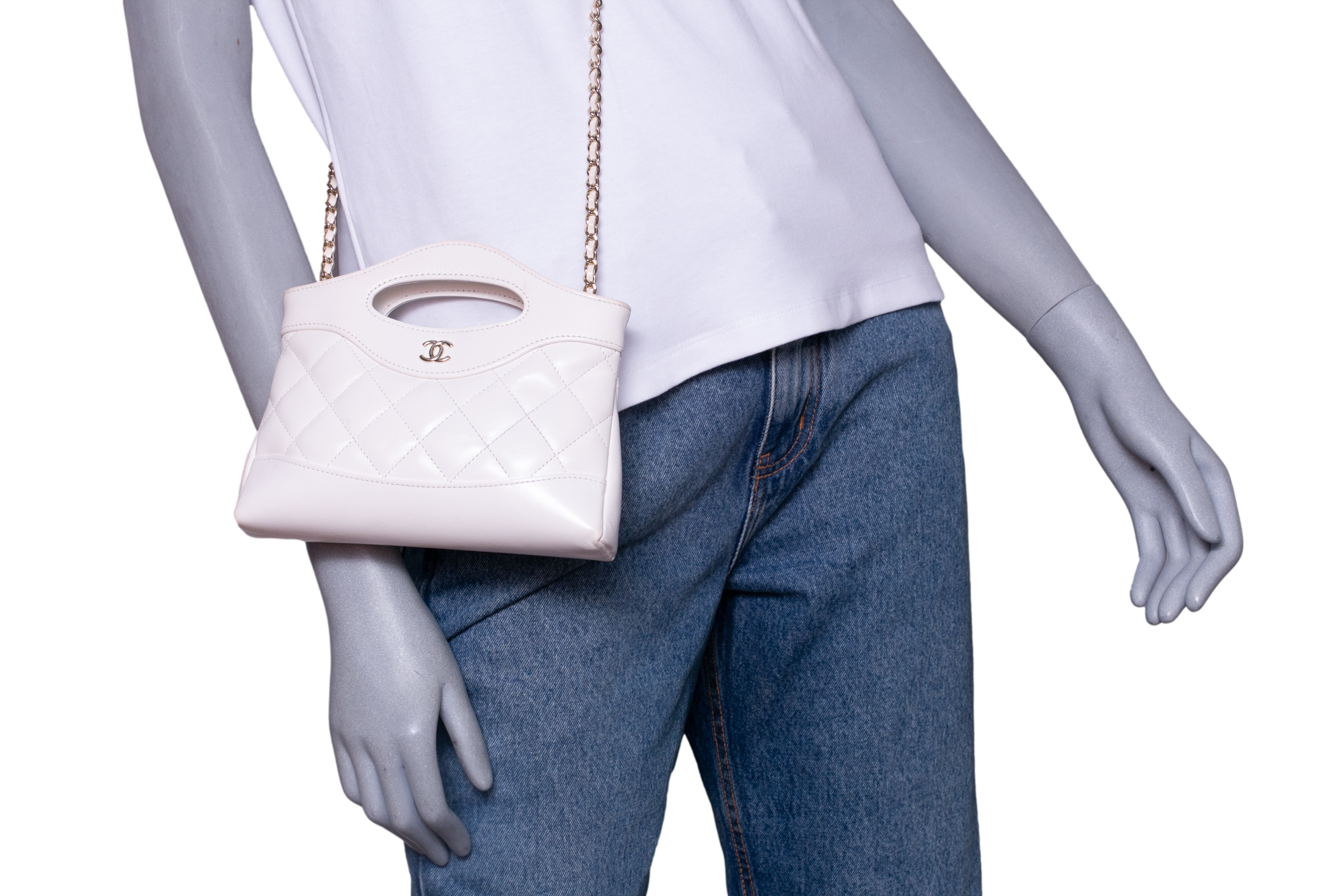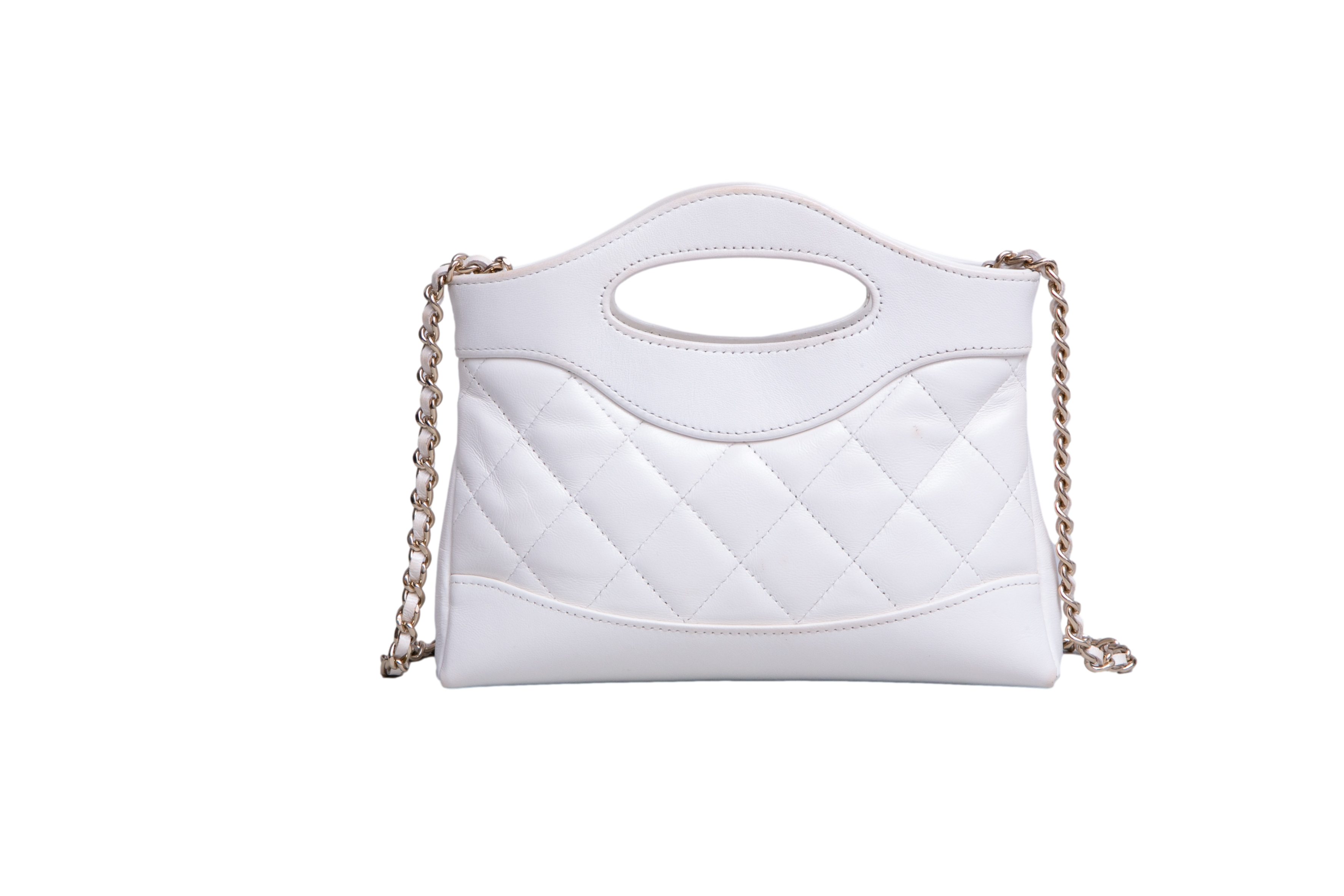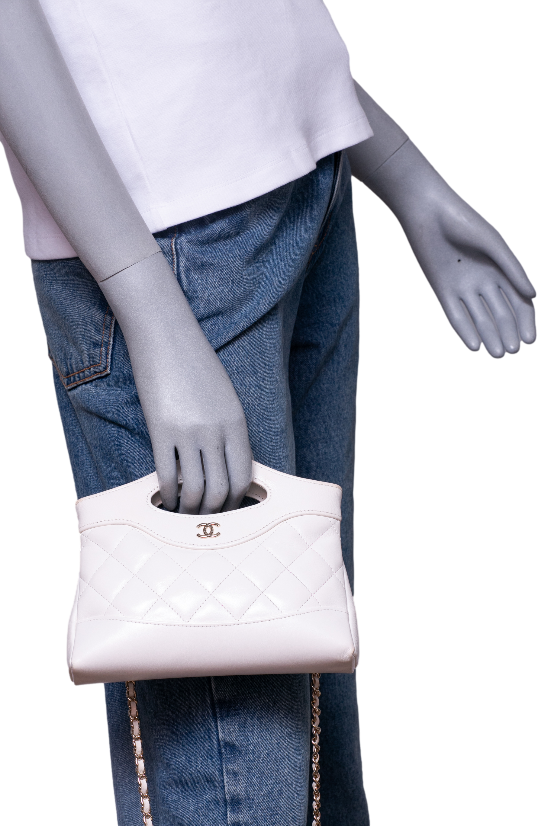 Chanel 31 Nano Bag Leather White. Peça em perfeito estado, possui pequenos sinais no couro e arestas.