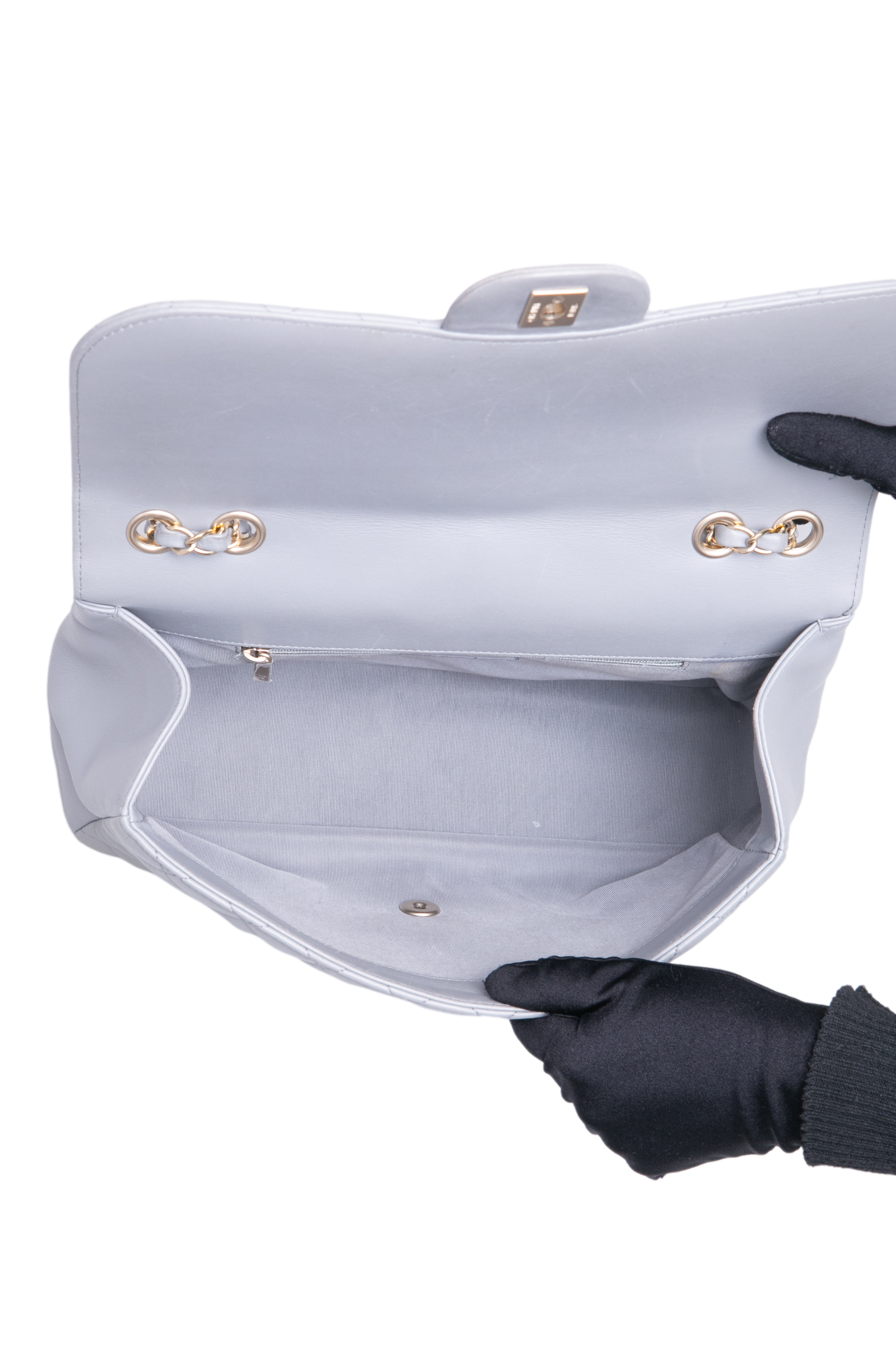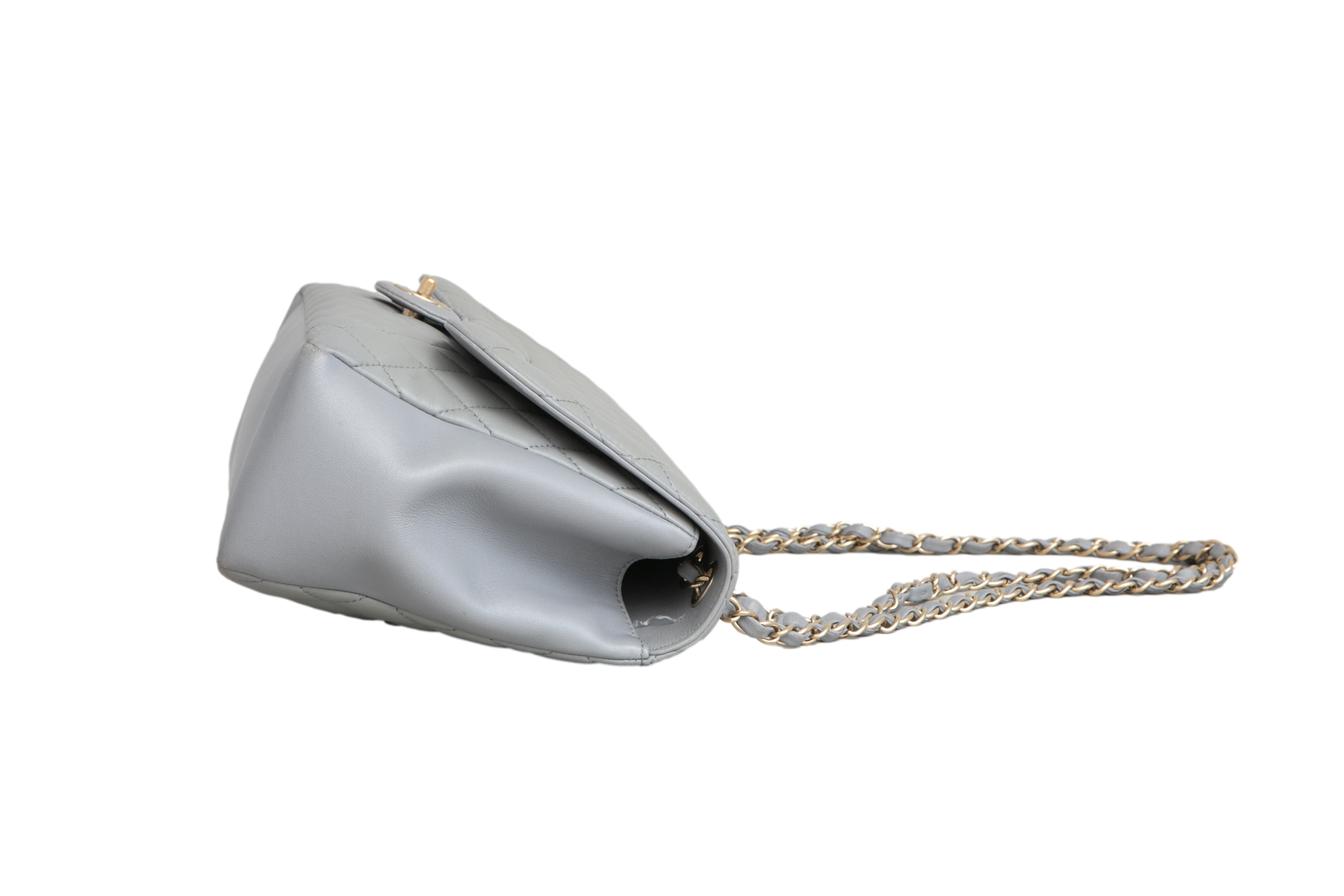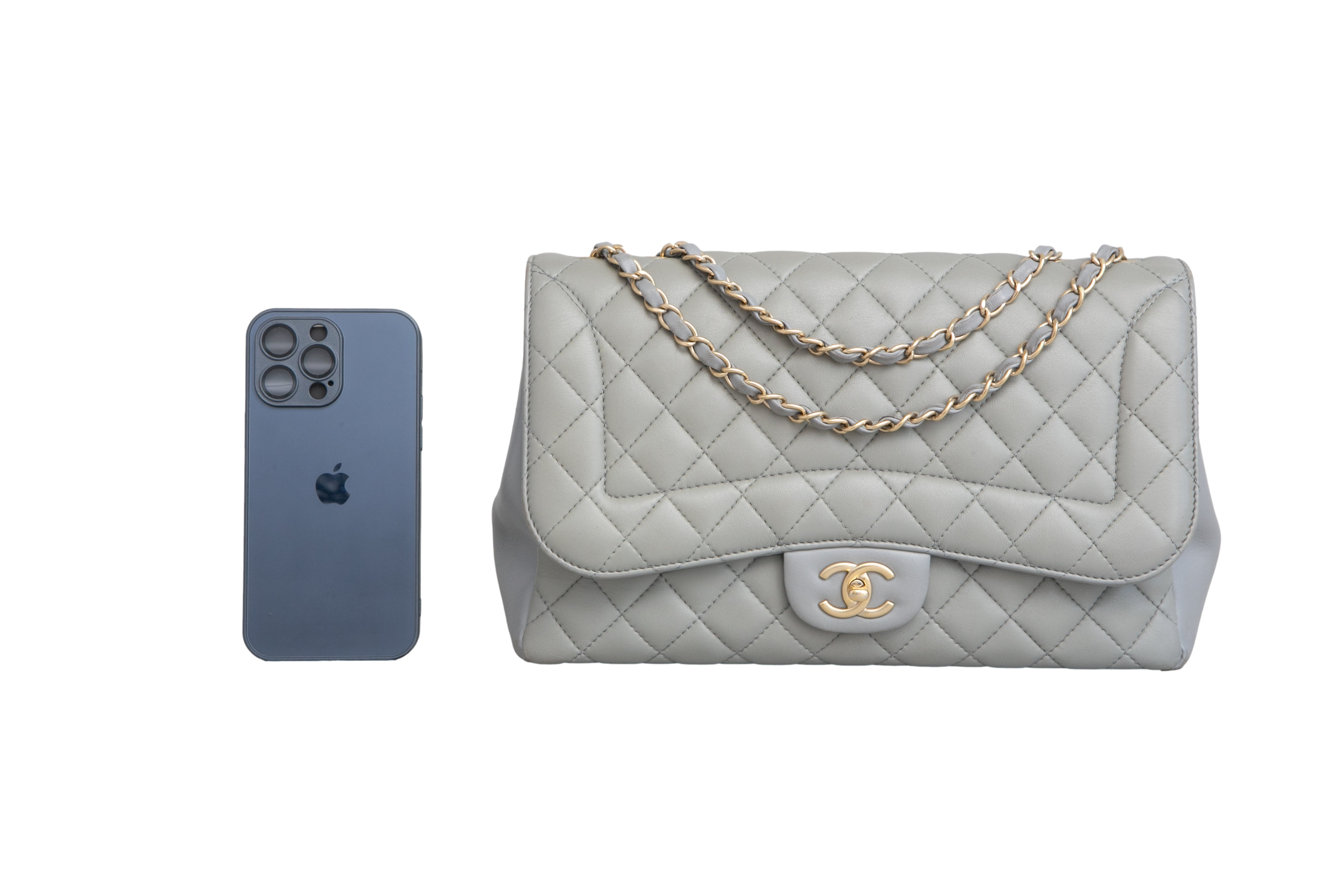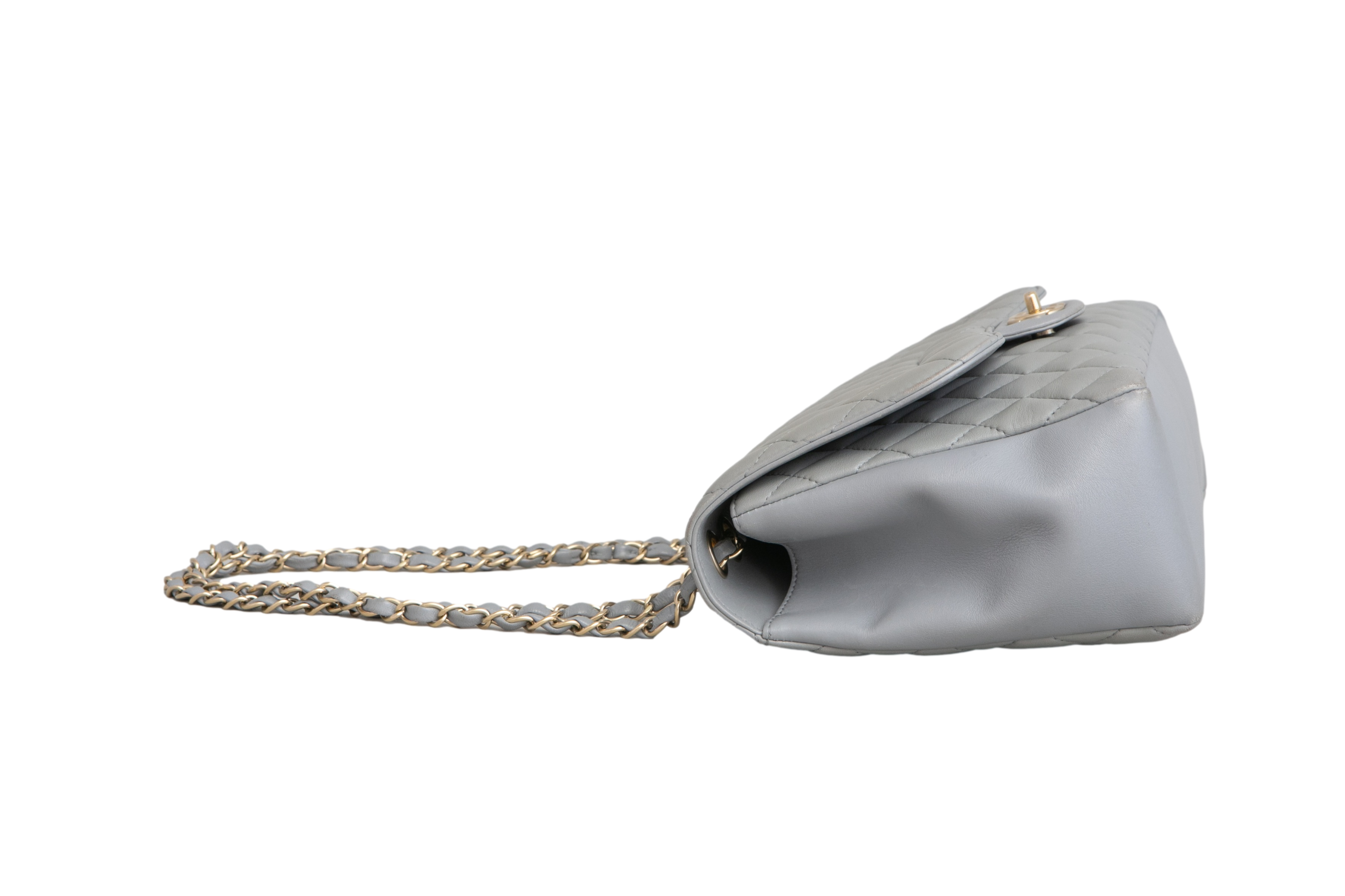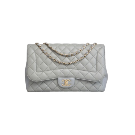 Chanel Classic Flap Jumbo Pearl Grey. Peça em ótimo estado, possui manchas na parte traseira da bolsa.
