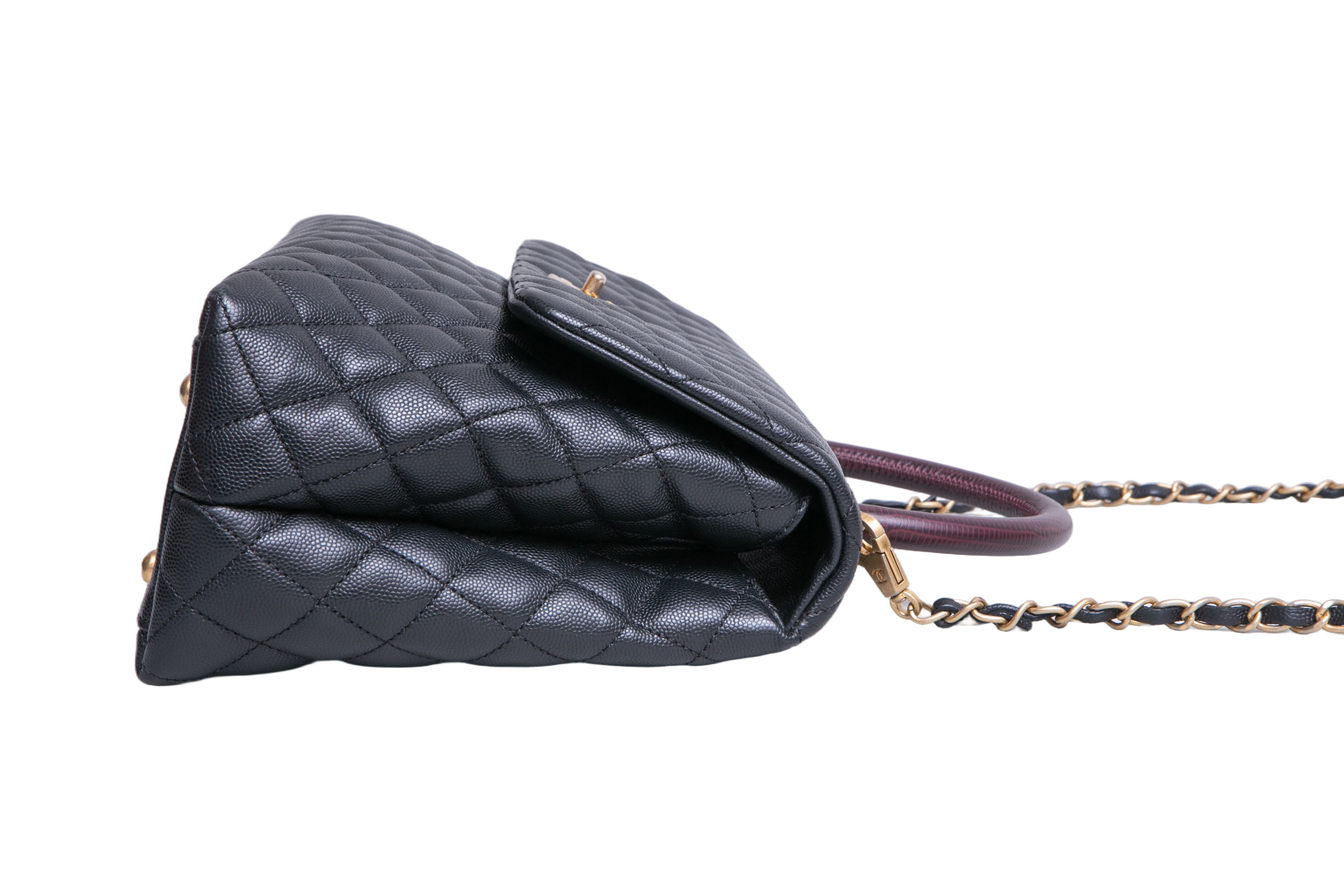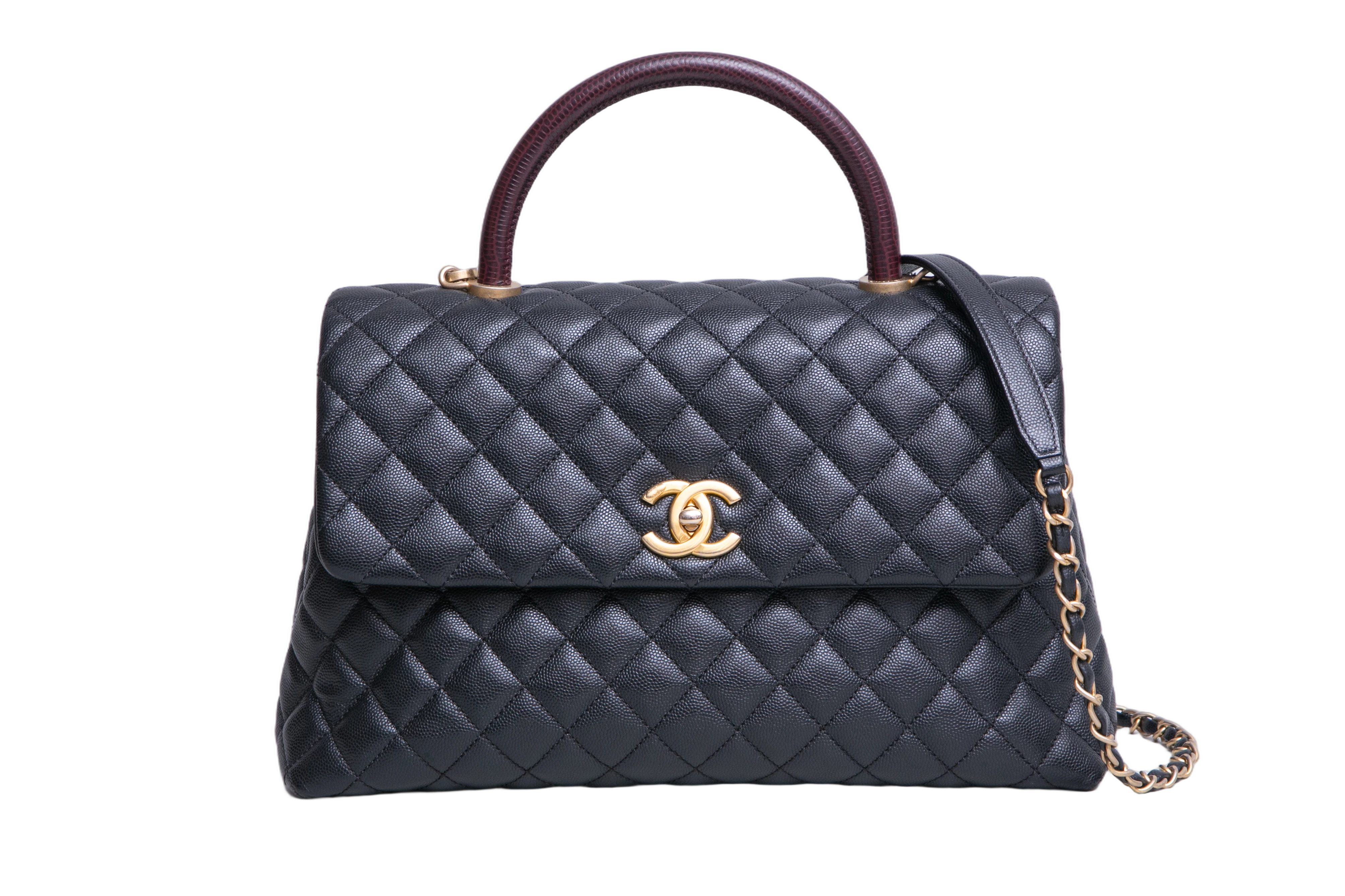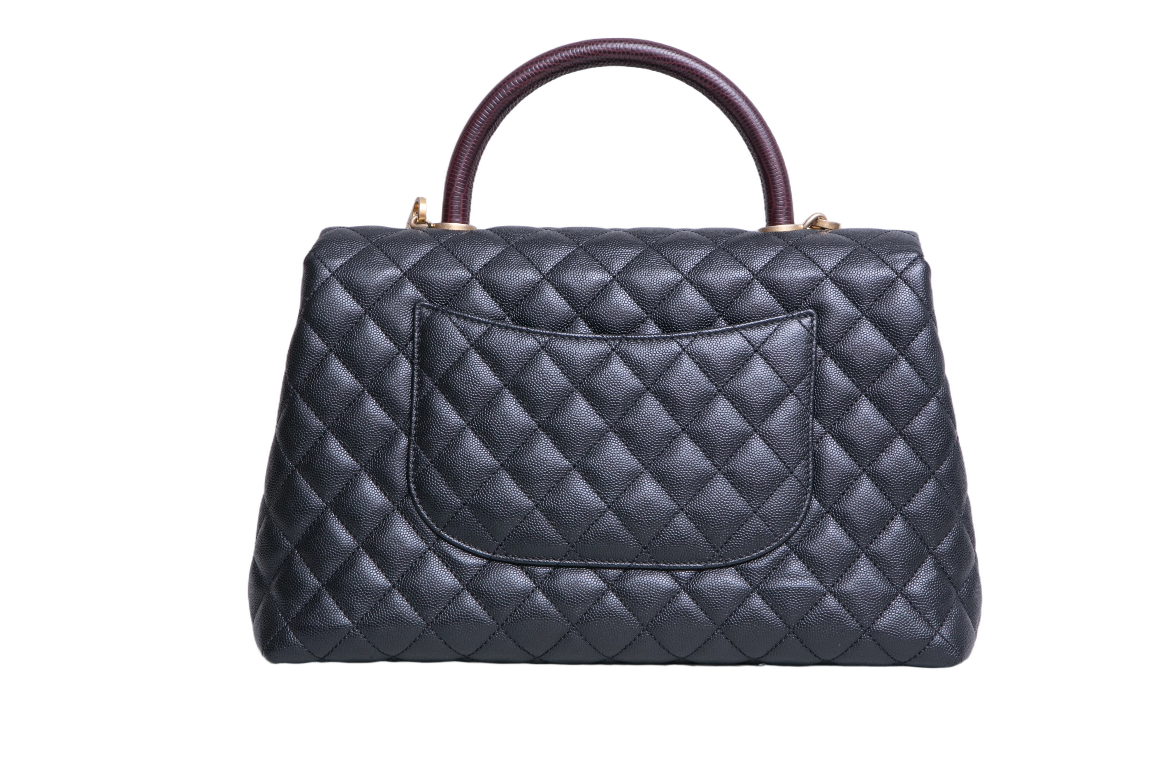 Chanel Coco Medium Caviar Top Handle Lizard Black 2019. Peça em perfeito estado, possui pequenos sinais nas arestas e forro interno.