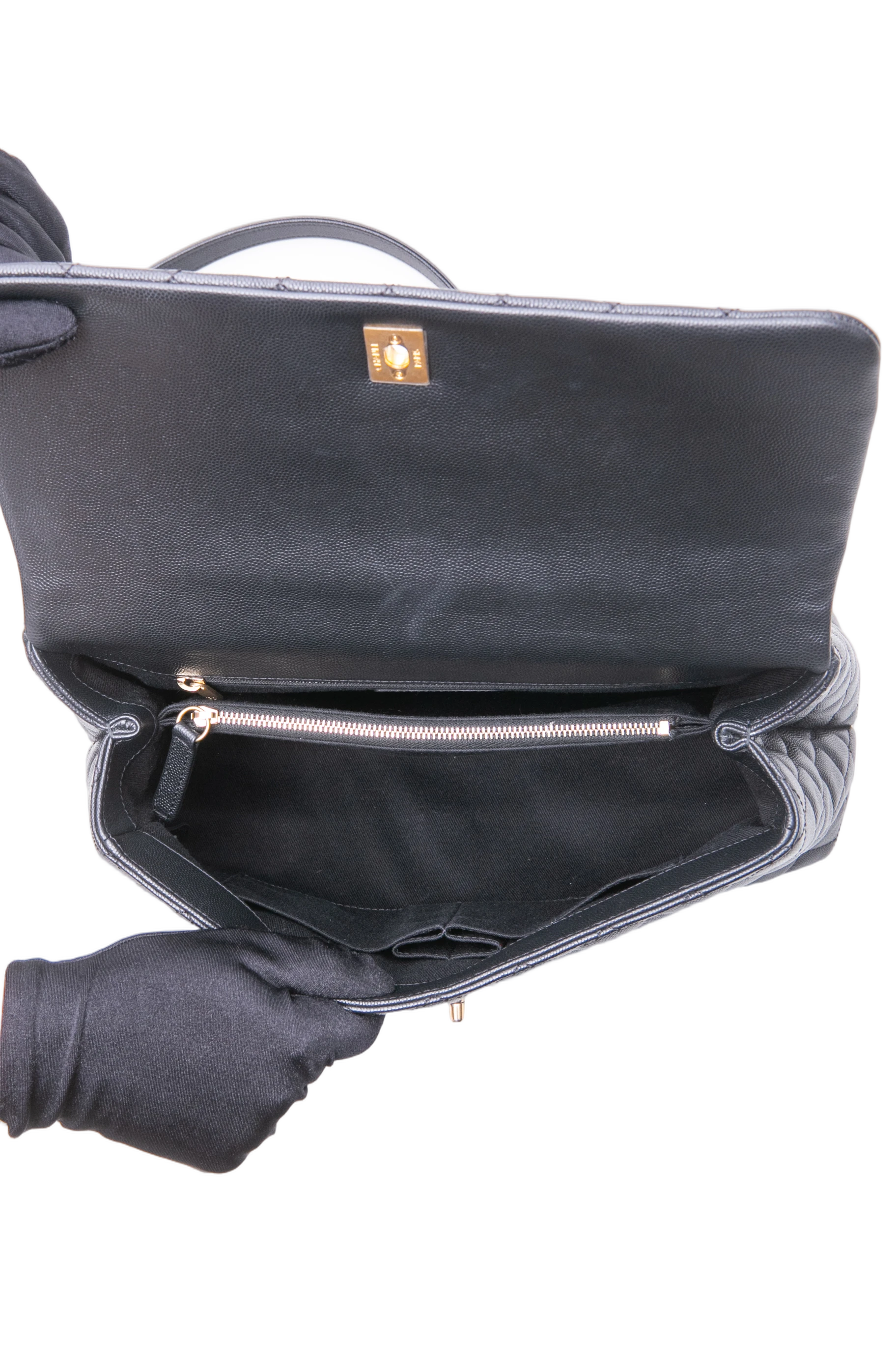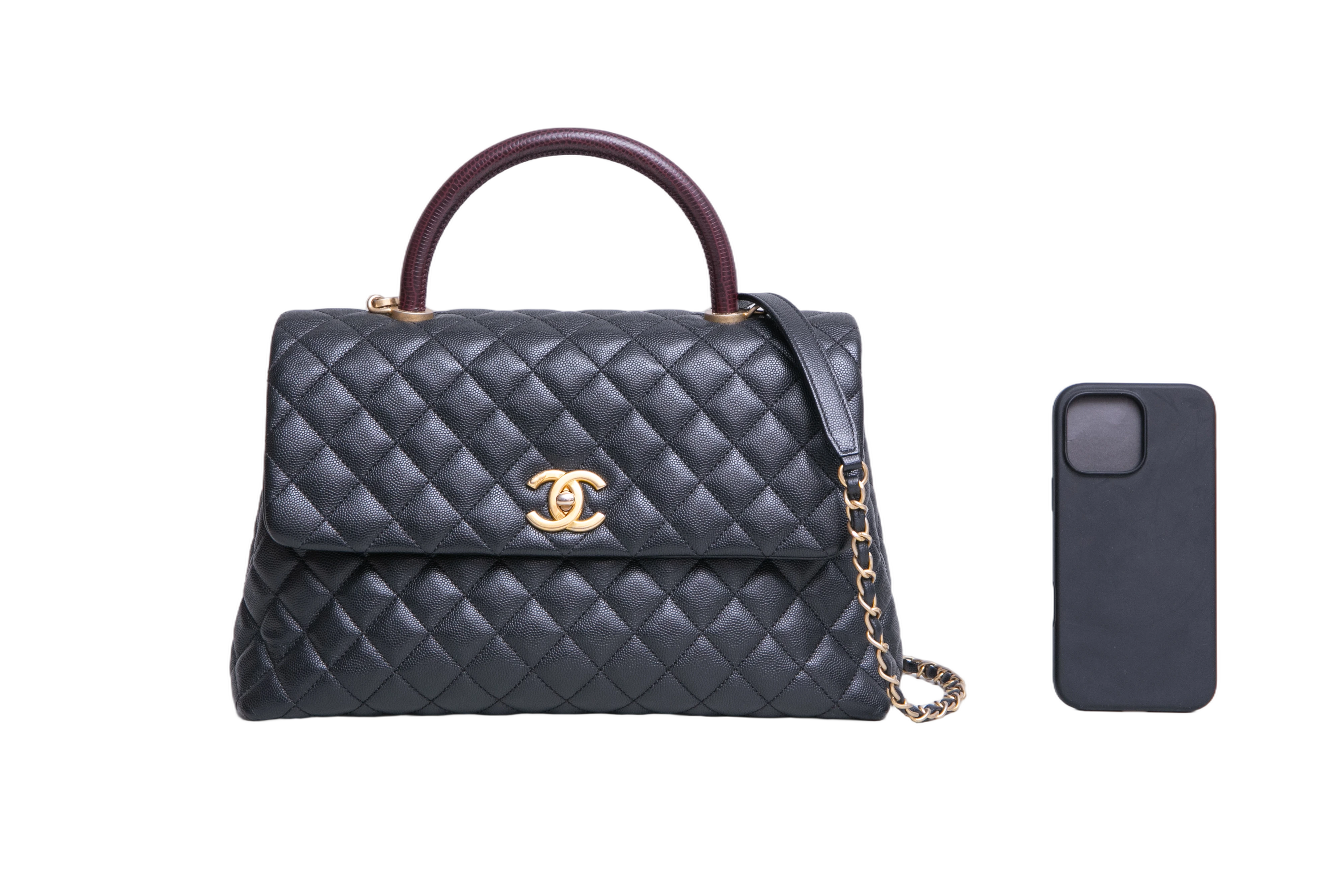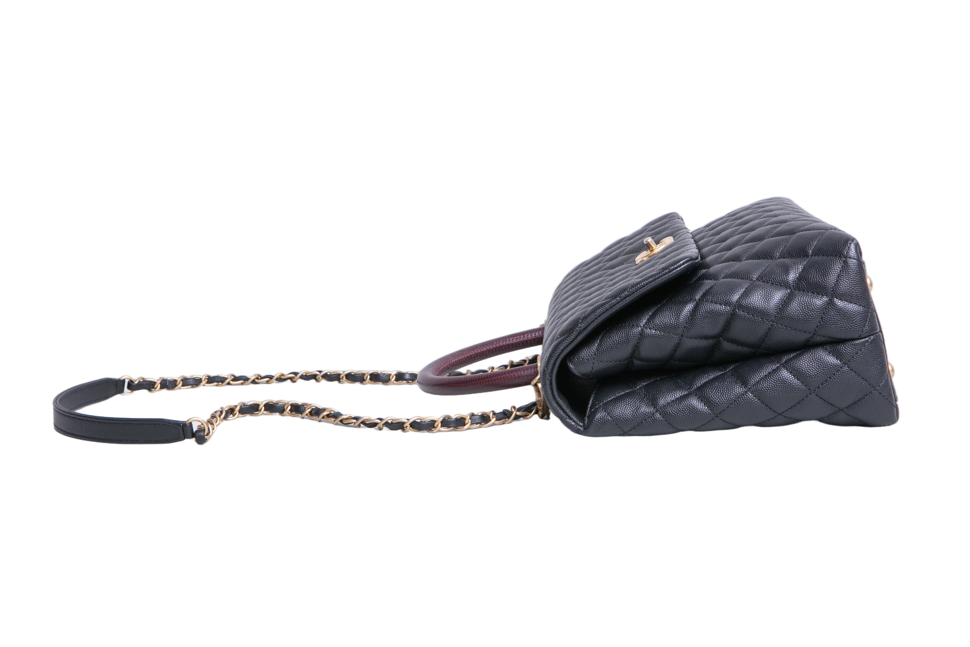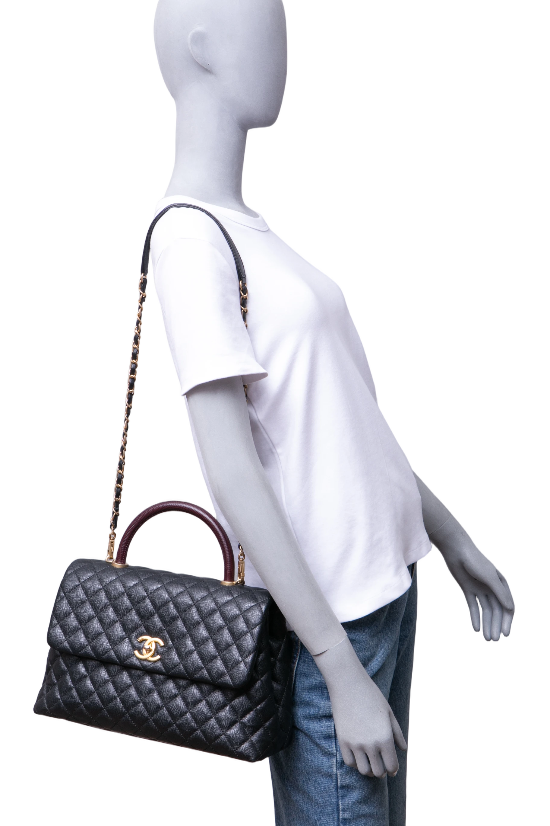 Chanel Coco Medium Caviar Top Handle Lizard Black 2019. Peça em perfeito estado, possui pequenos sinais nas arestas e forro interno.