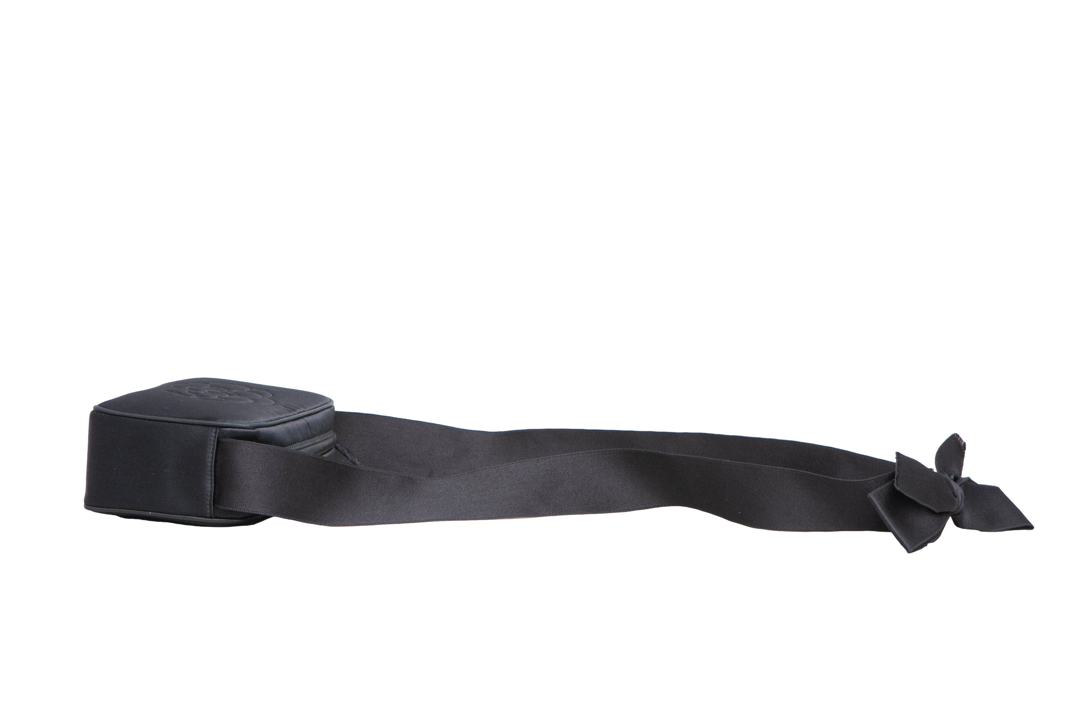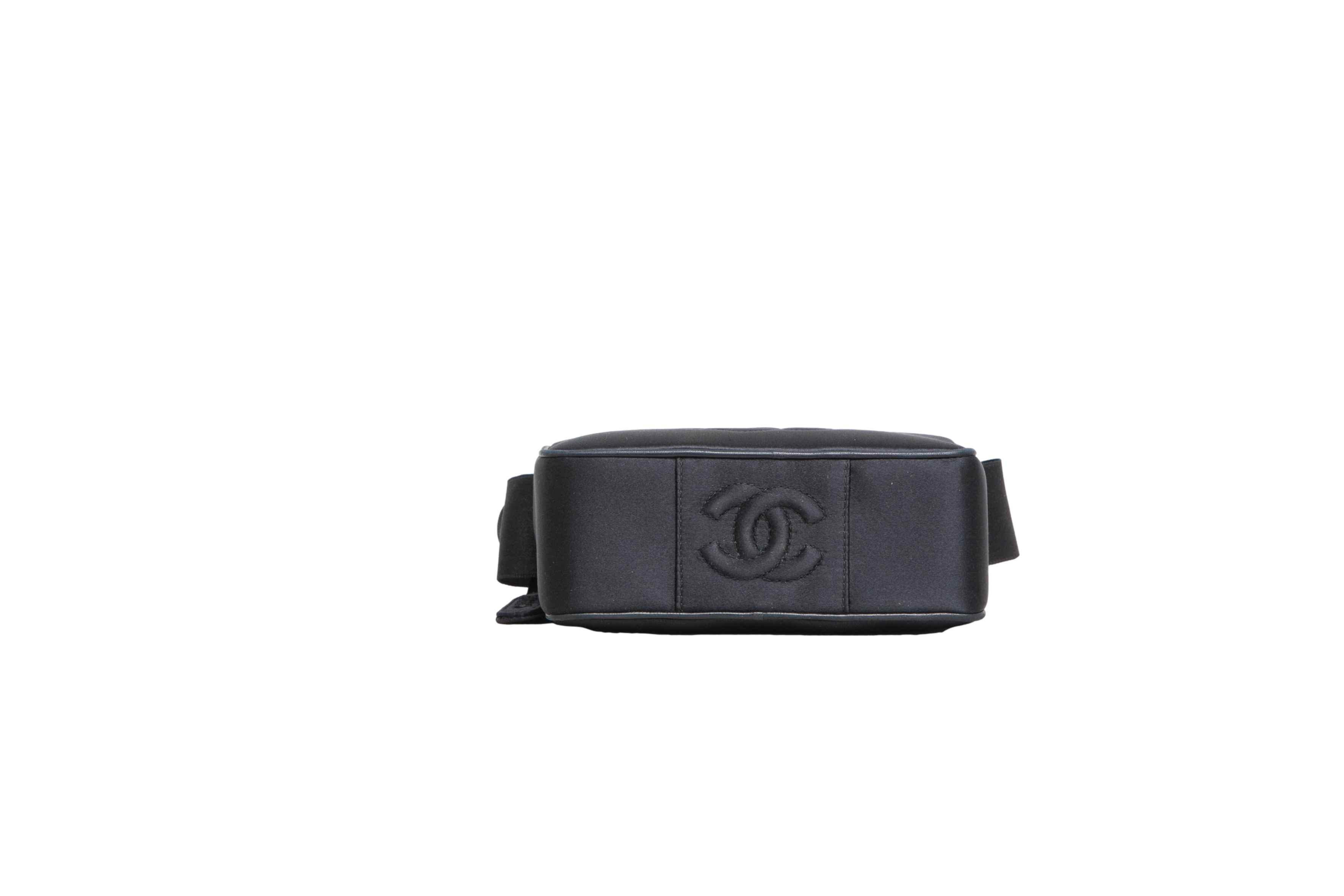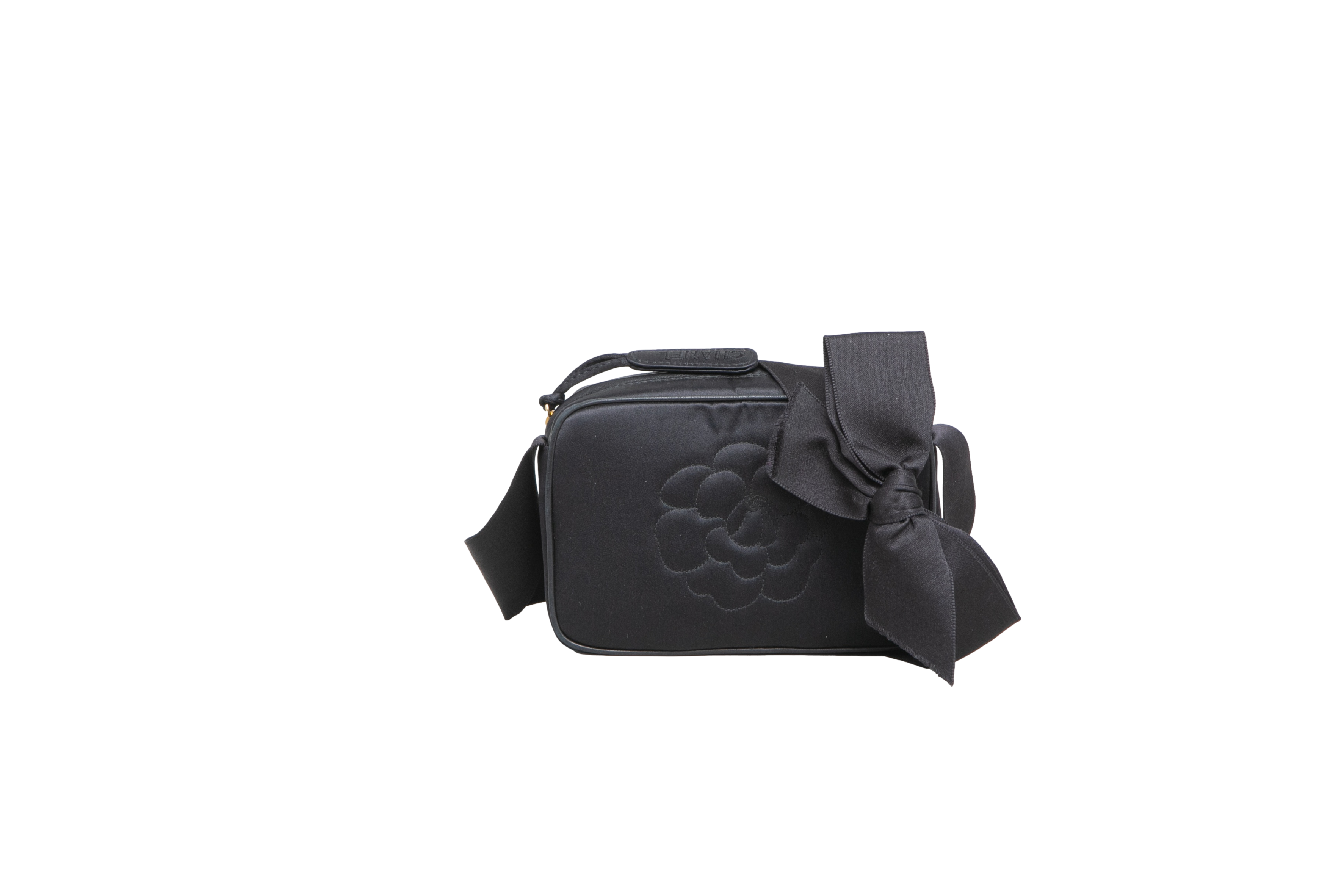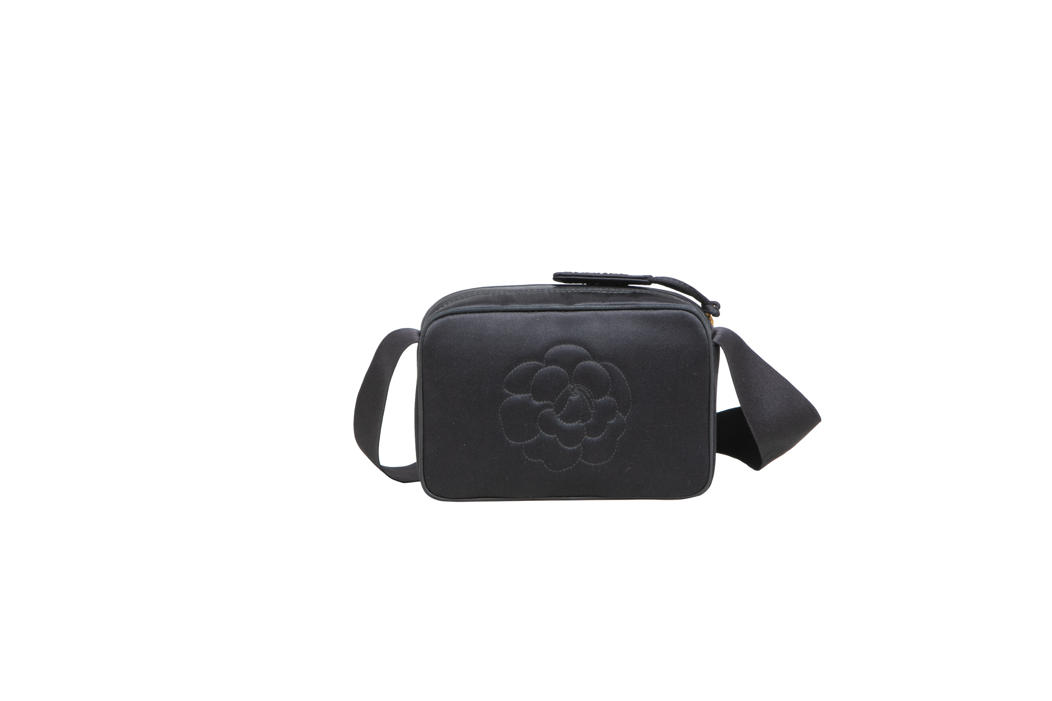 Chanel Mini Satin Camera Camelia Black. Peça em perfeito estado, possui sinais mínimos de uso.