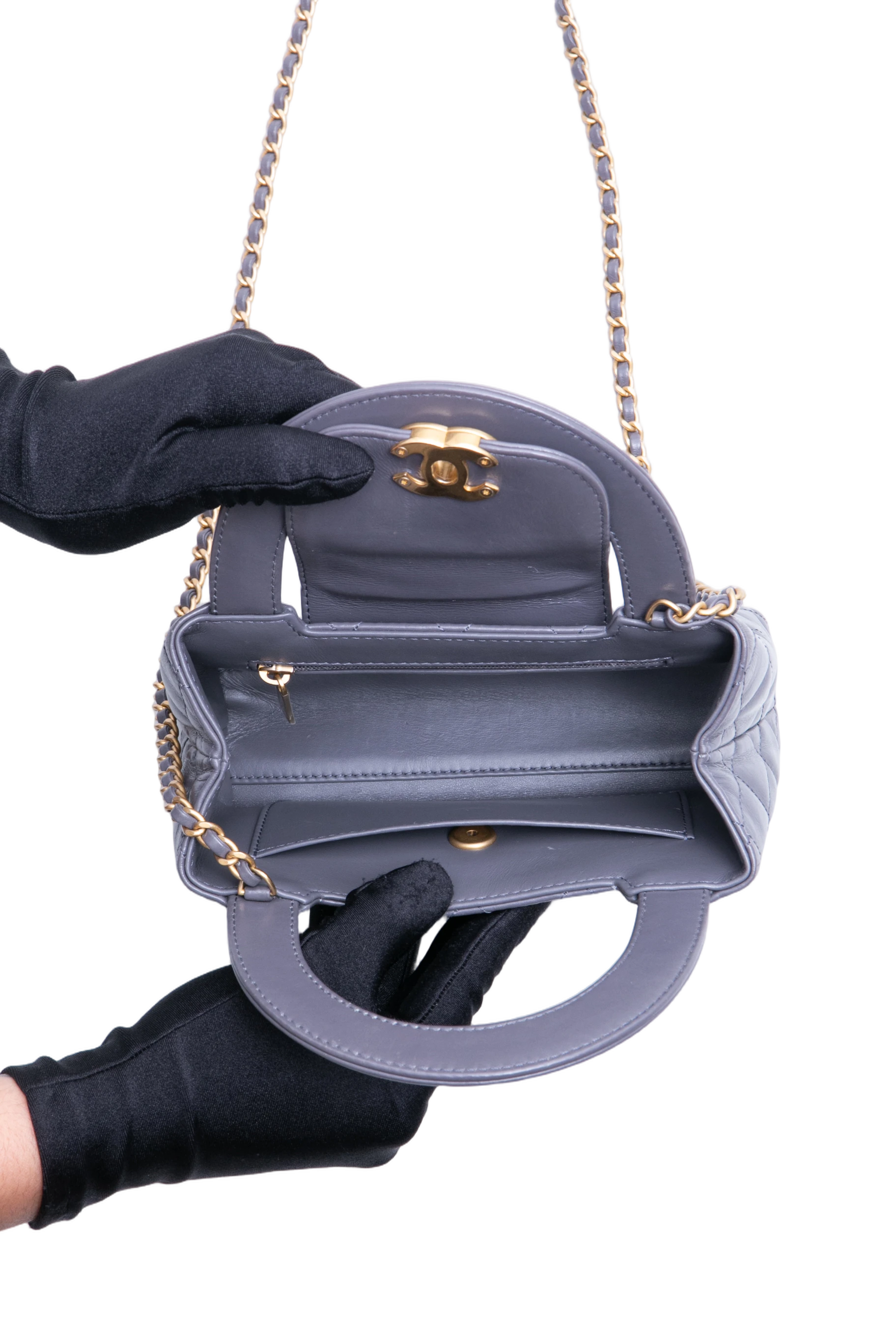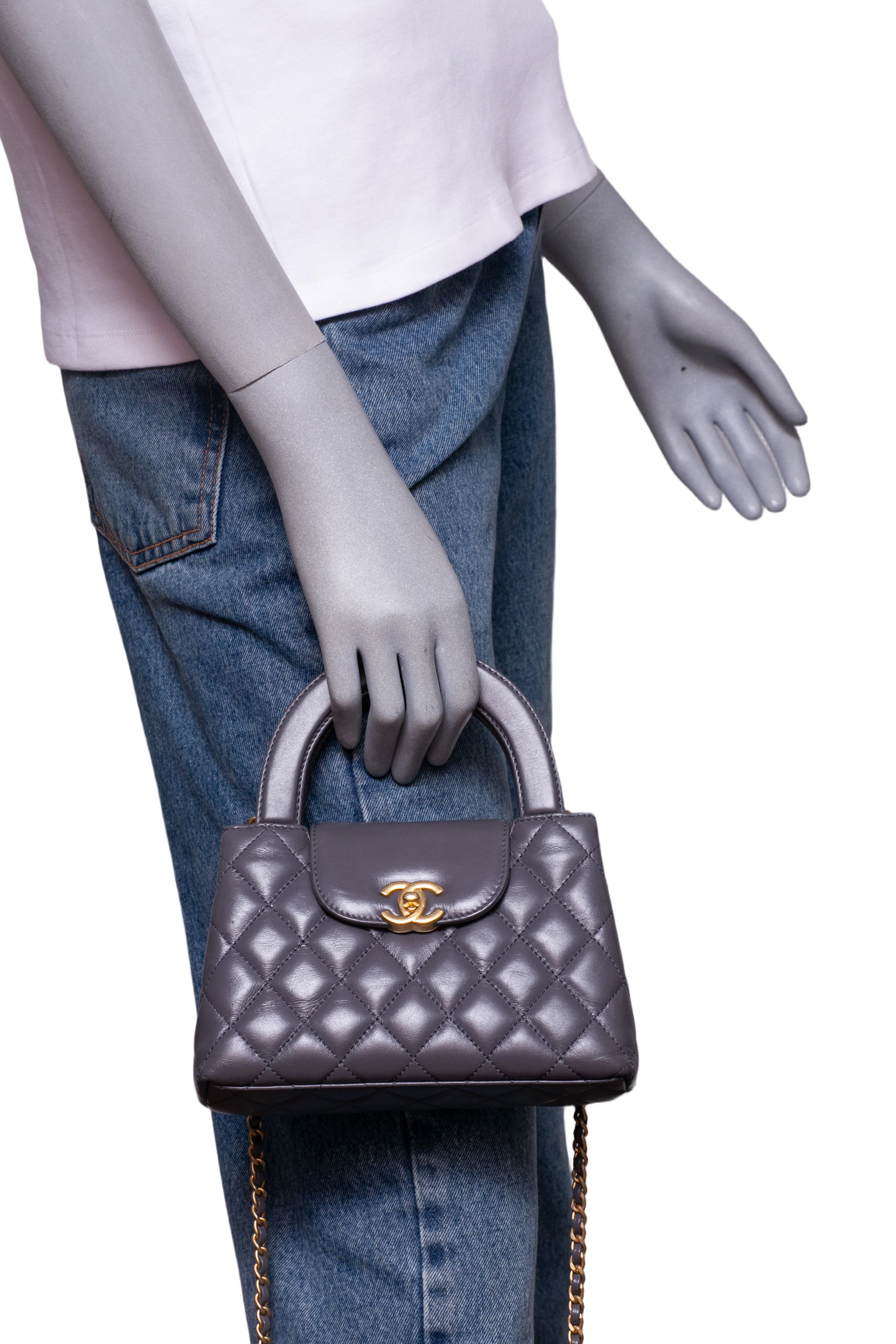 Chanel Small Kelly Lambskin Gray. Peça em perfeito estado, possui pequenos sinais no couro.