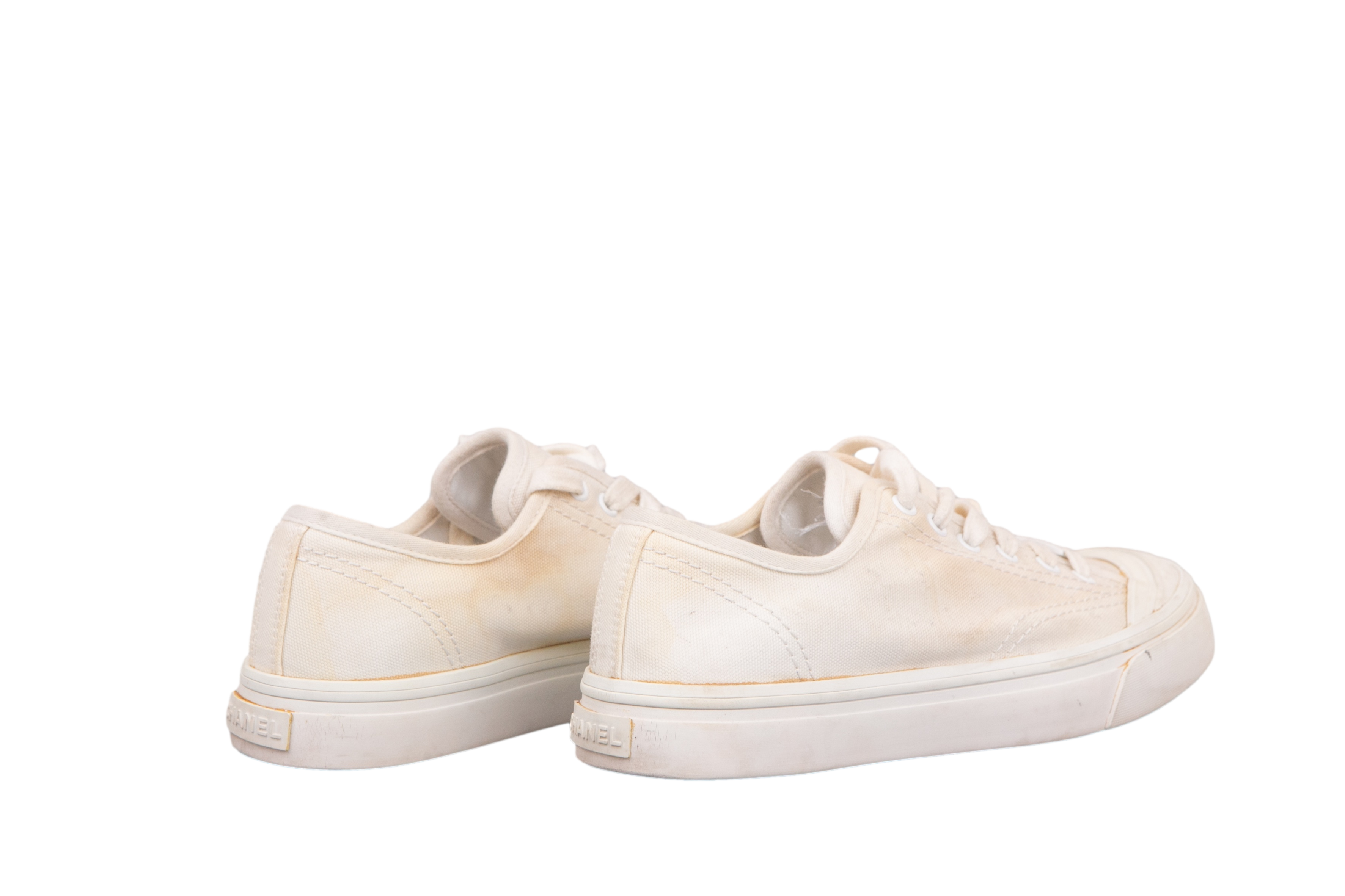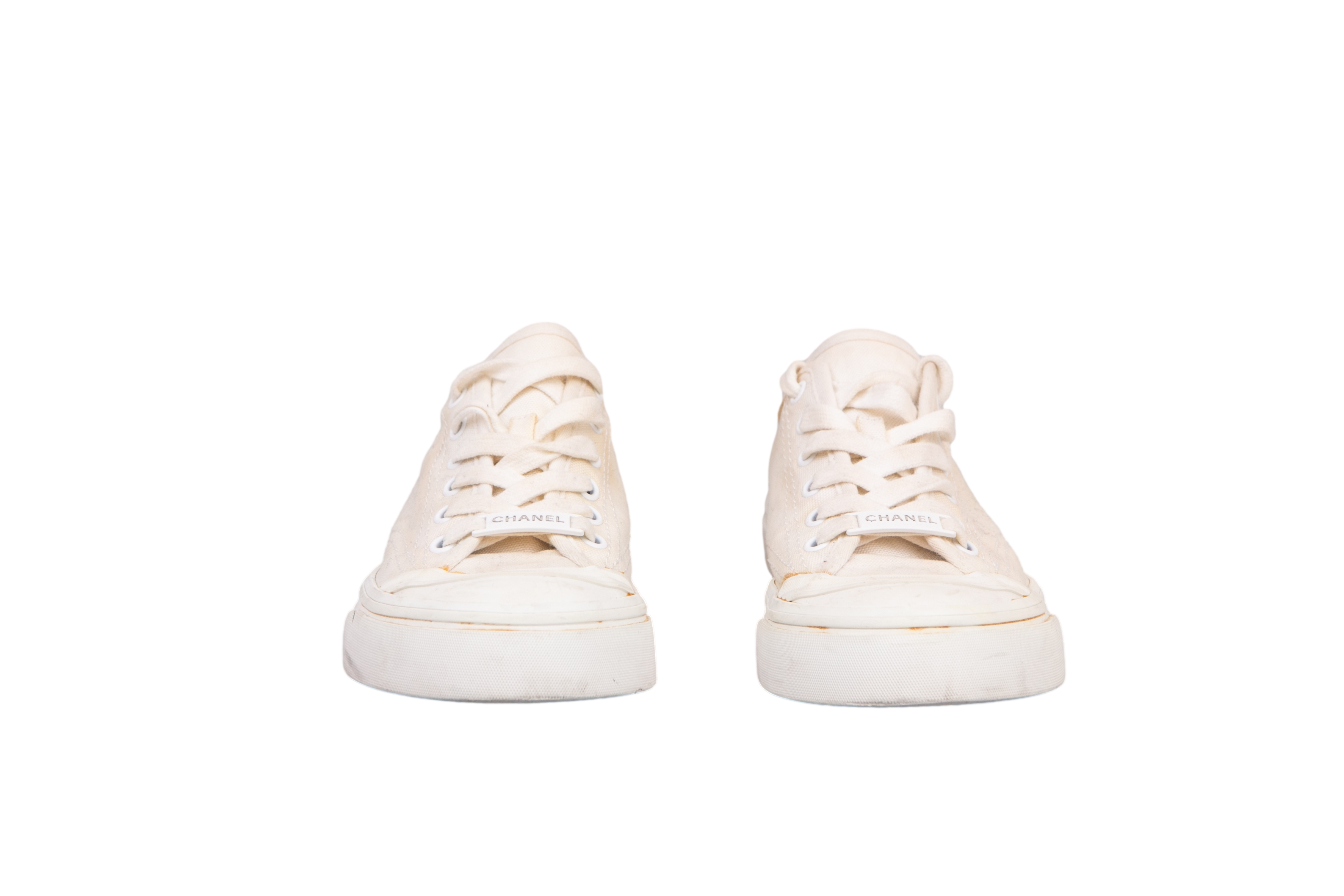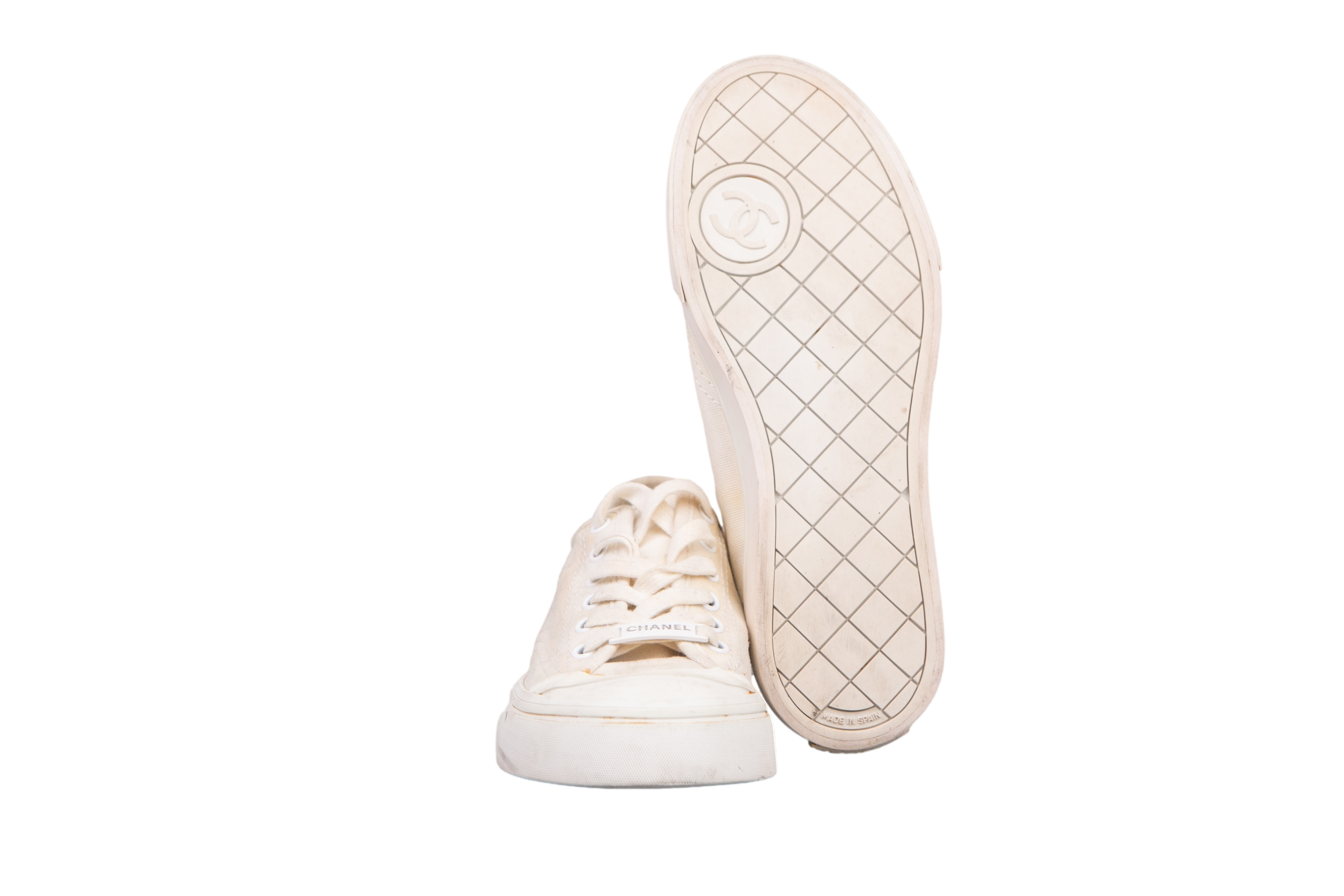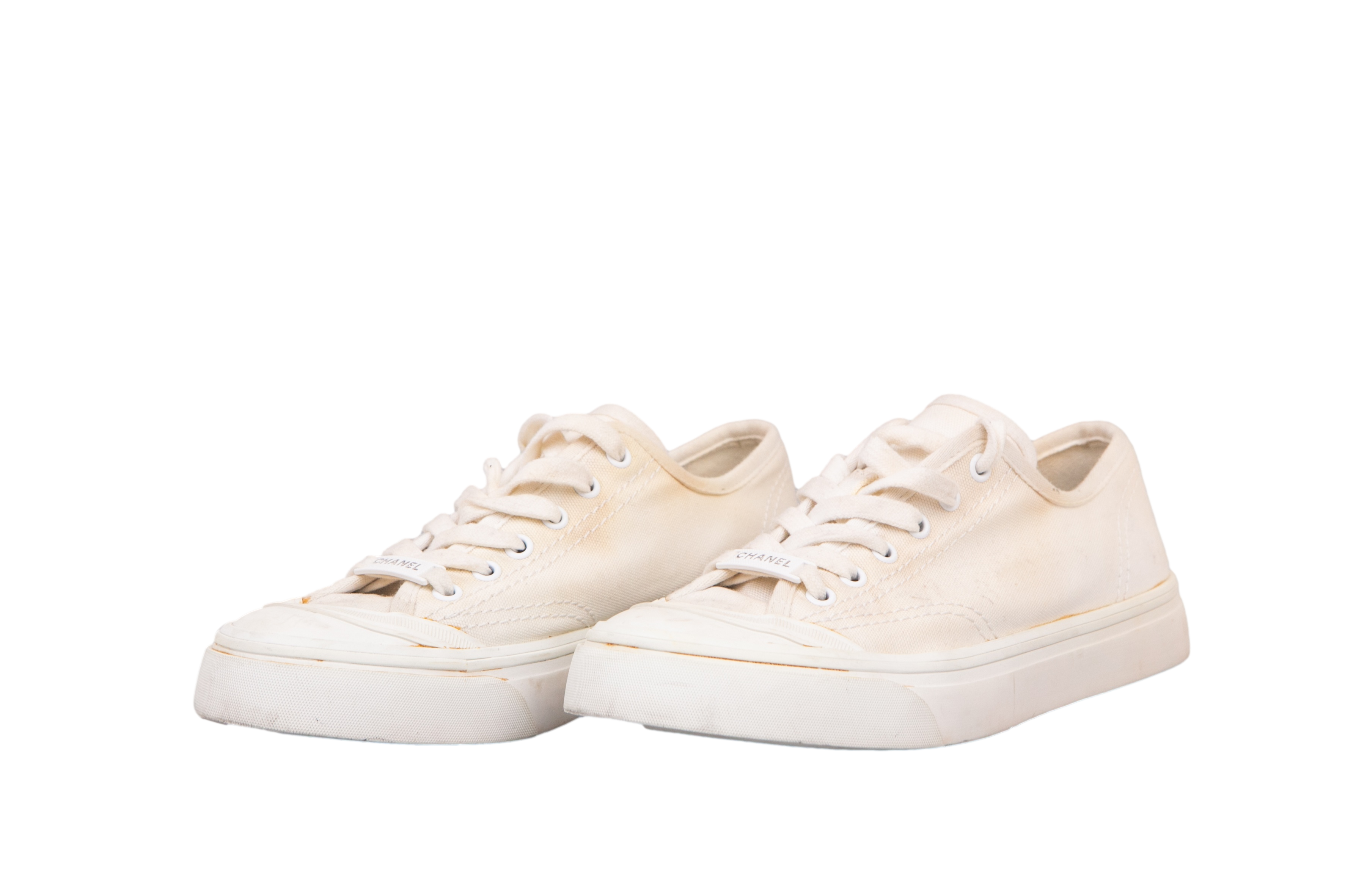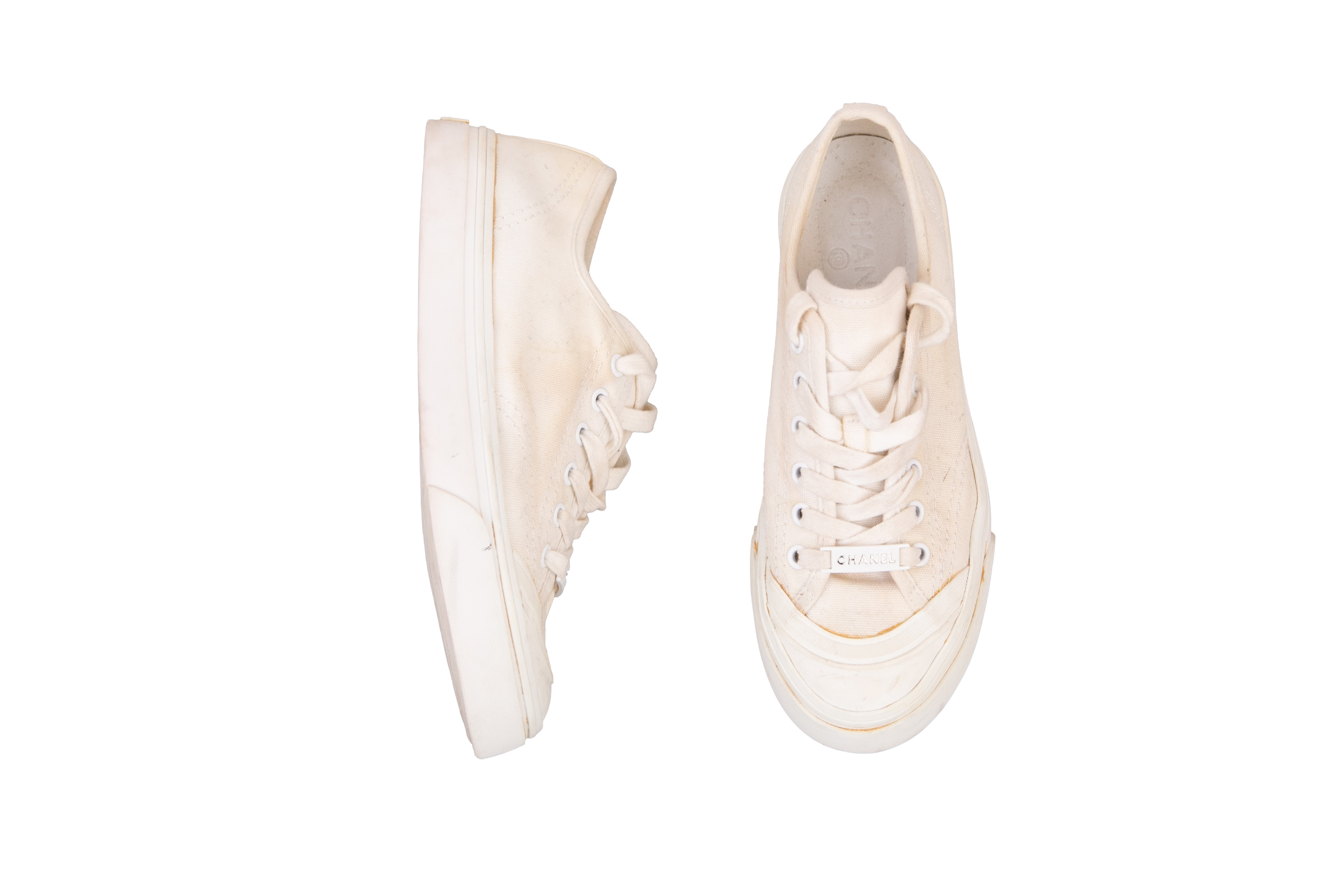Chanel Sneaker White. Peça em bom estado, possui sinais de uso na sola e e manchas no tecido.
