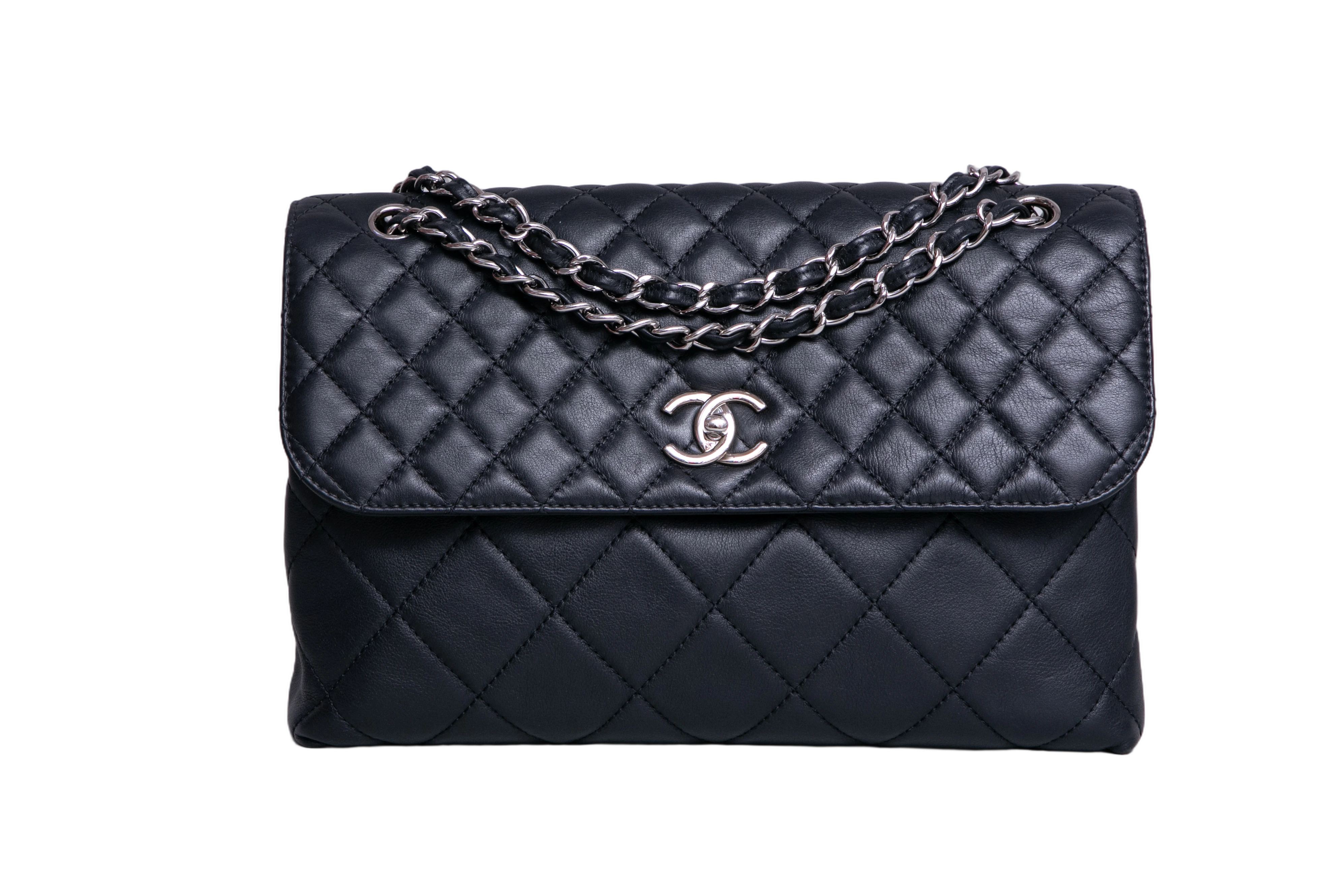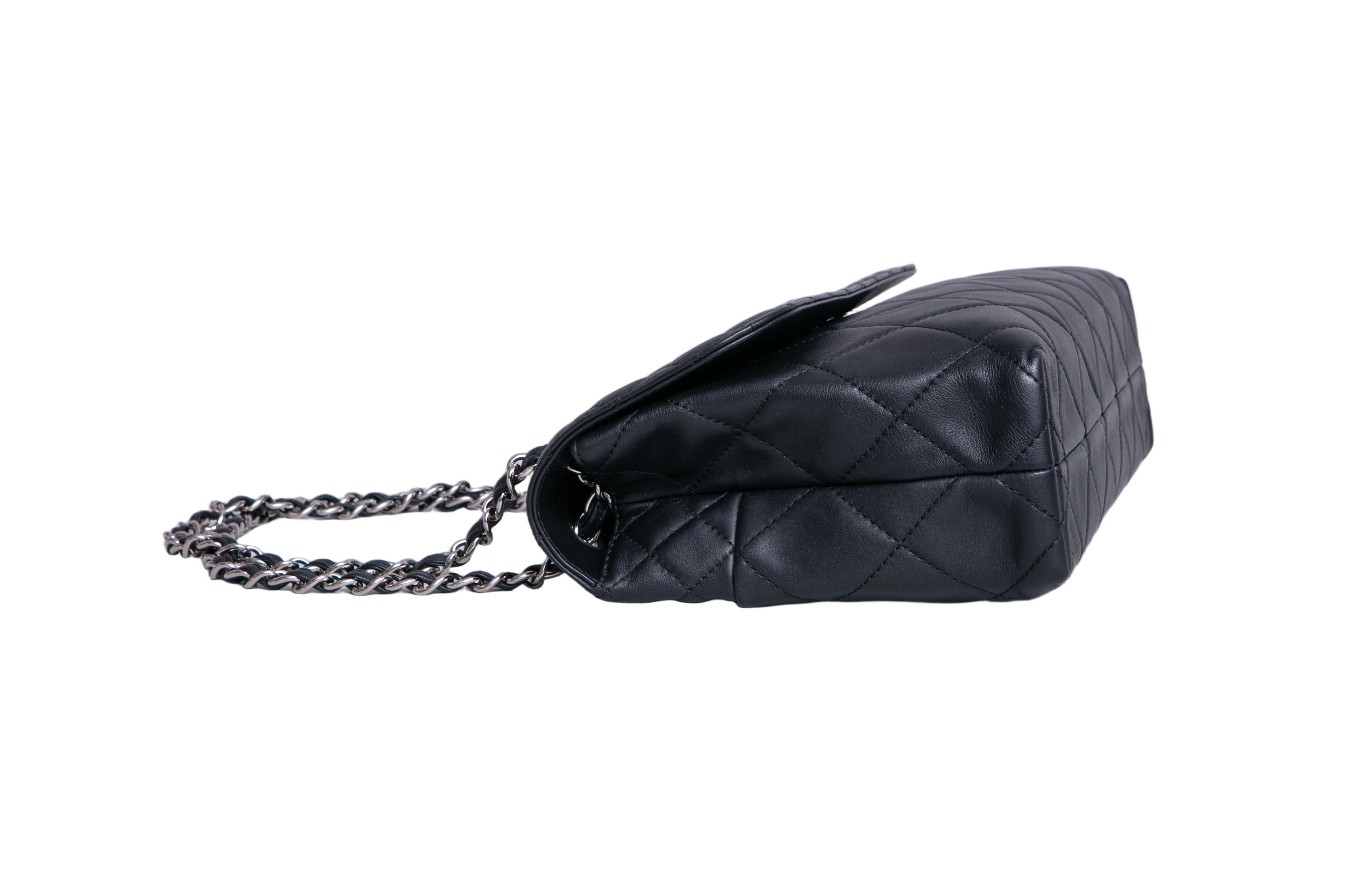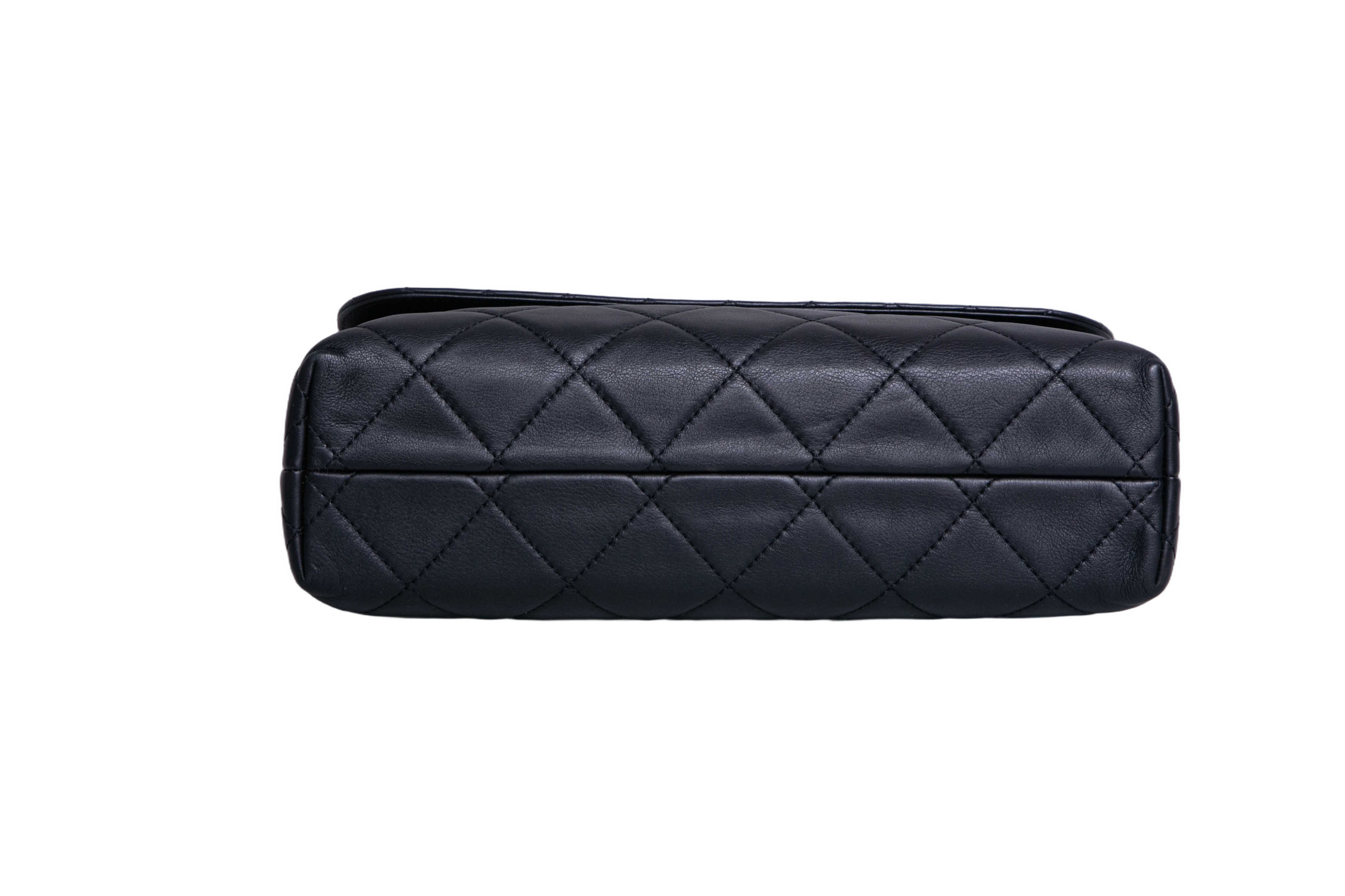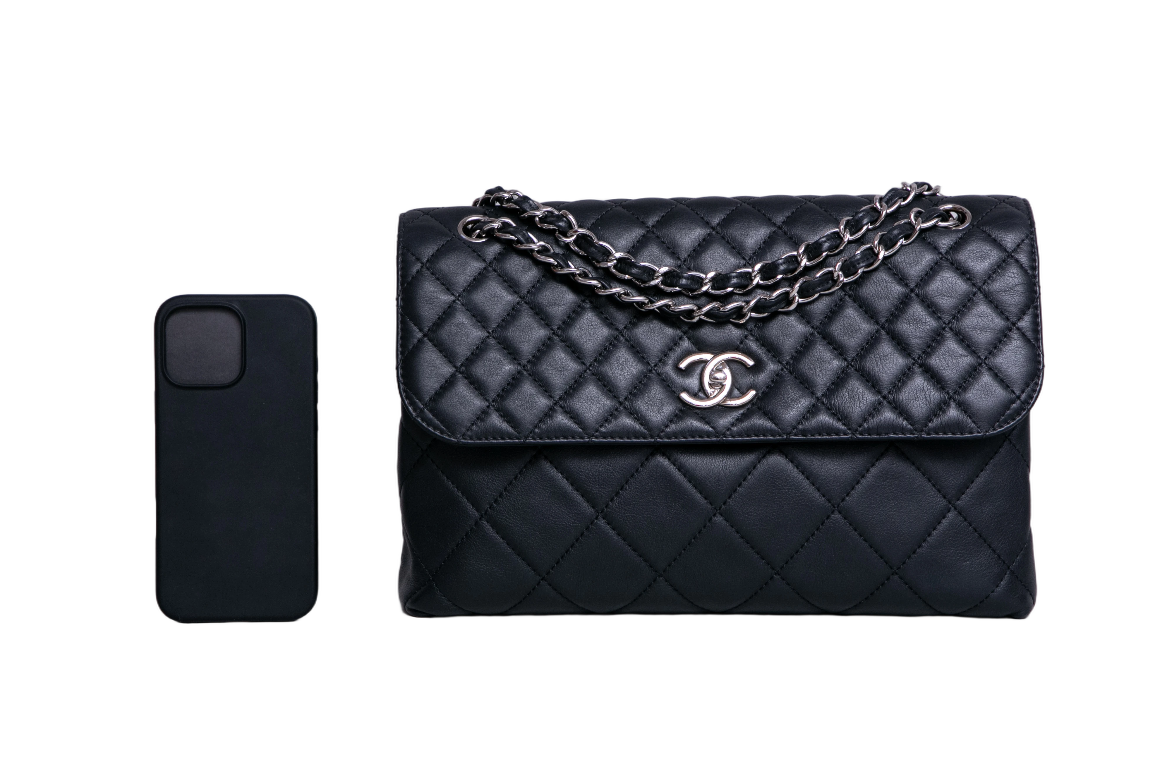 Chanel The Business Flap Bag Quilted Black. Peça em perfeito estado, possui pequenos sinais no couro, arestas e ferragens. Acomoda todos os tamanhos de telefone.