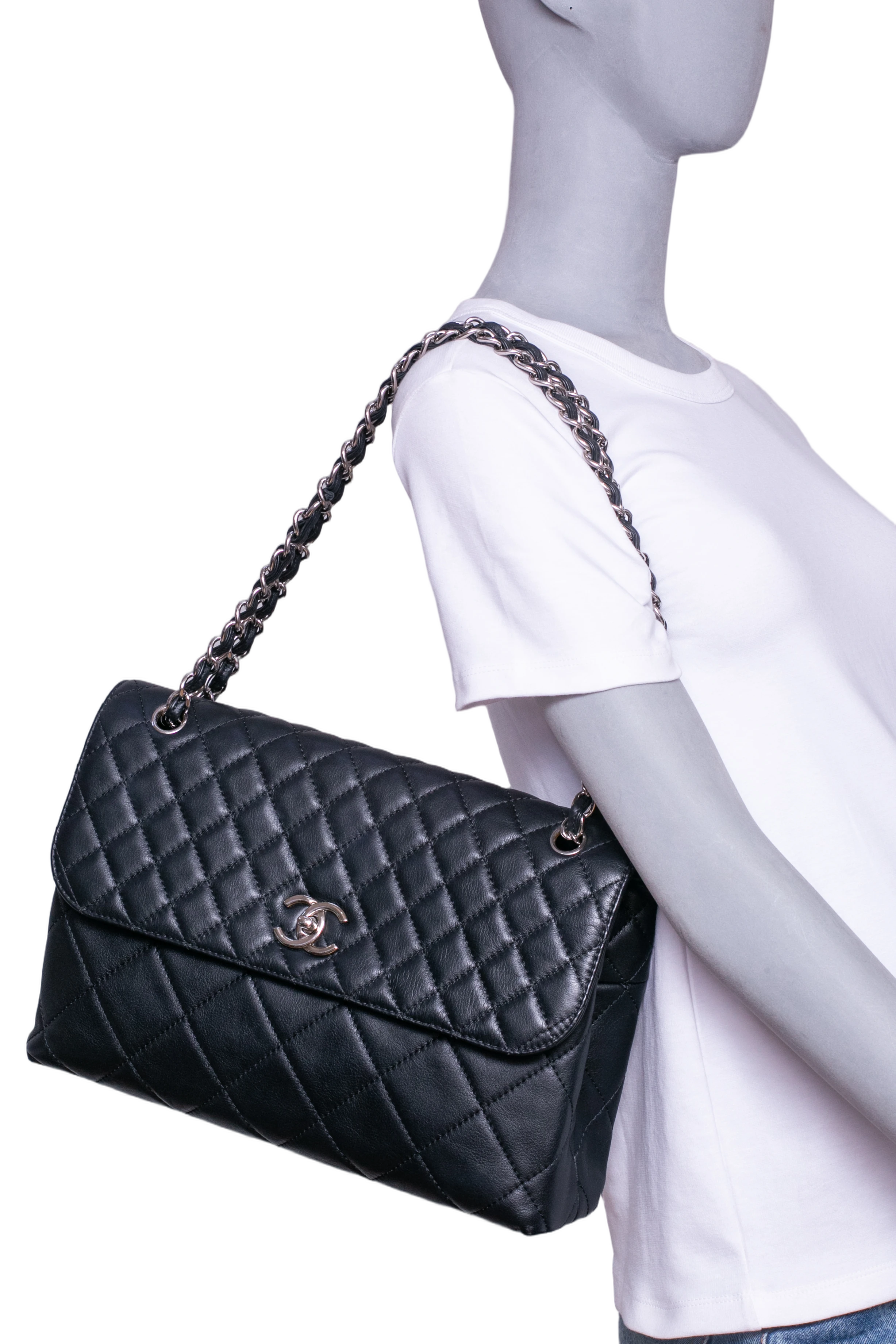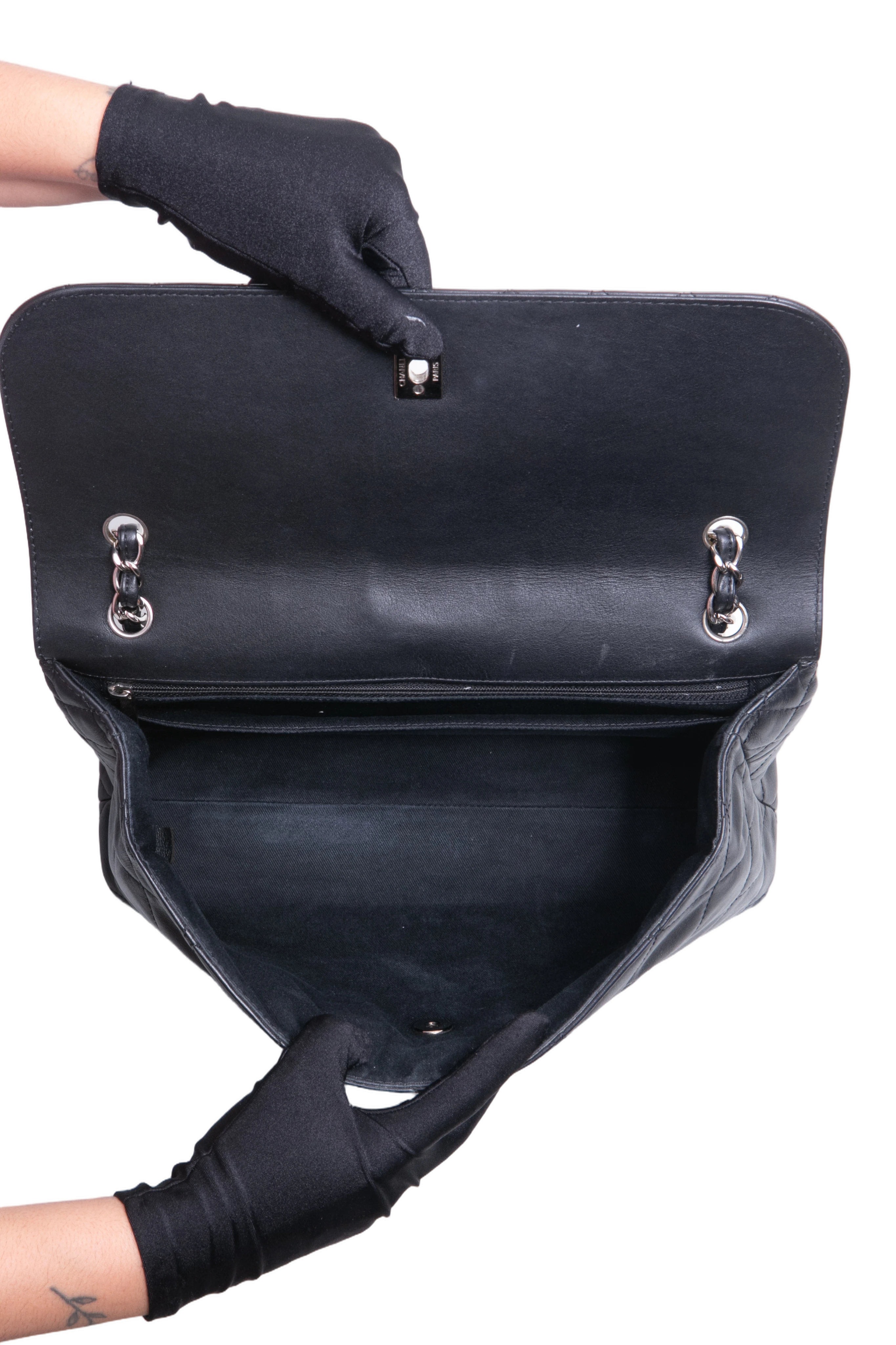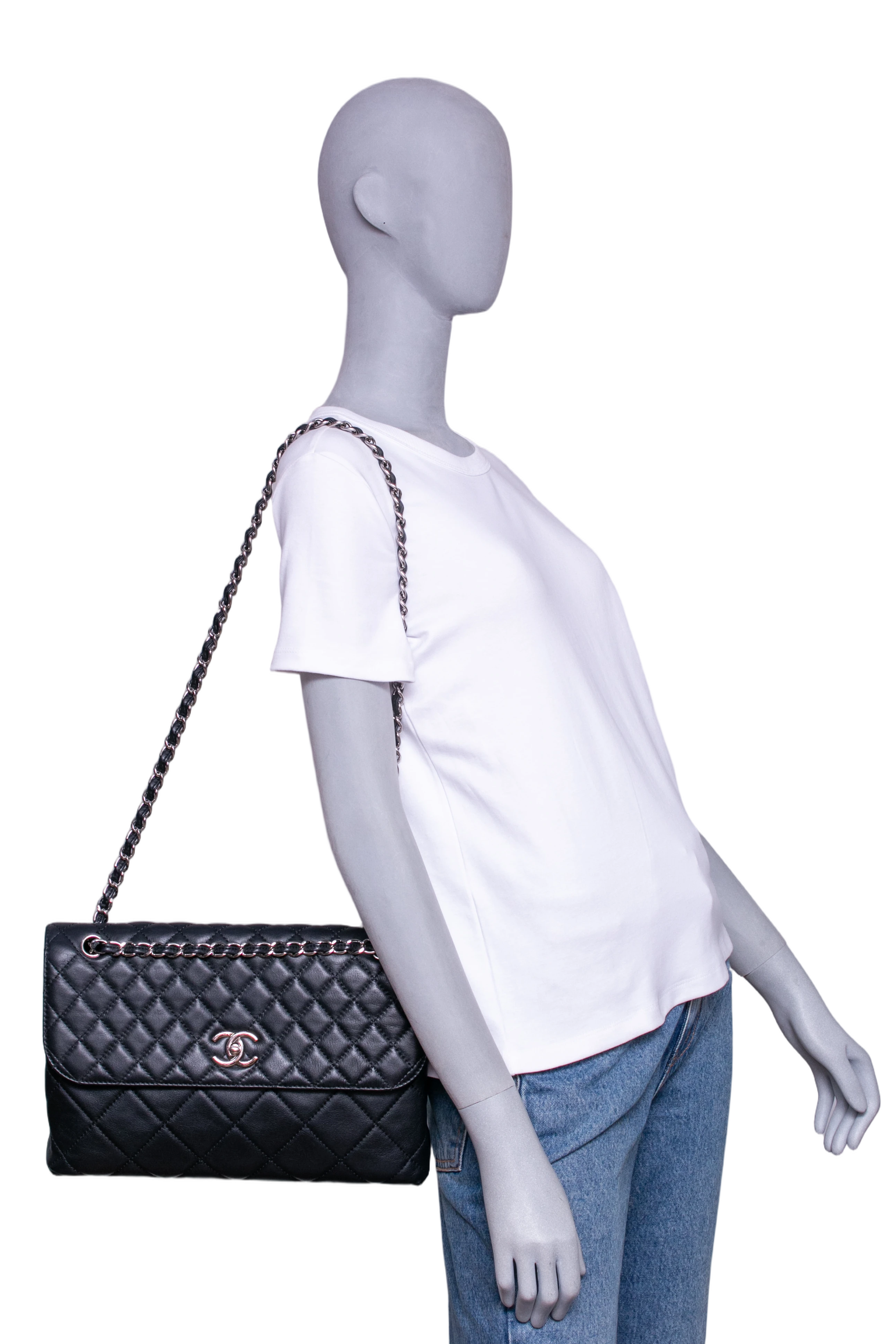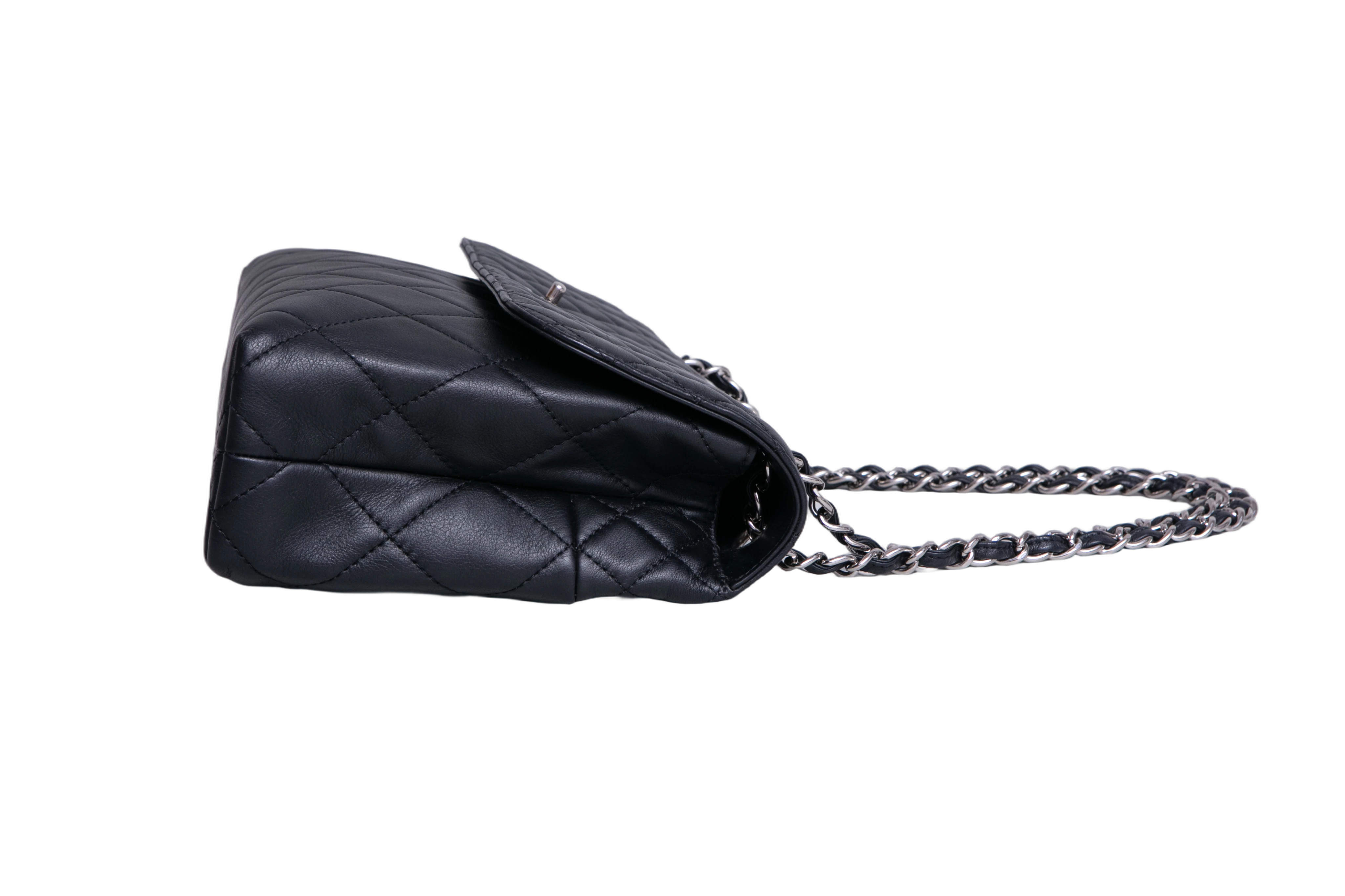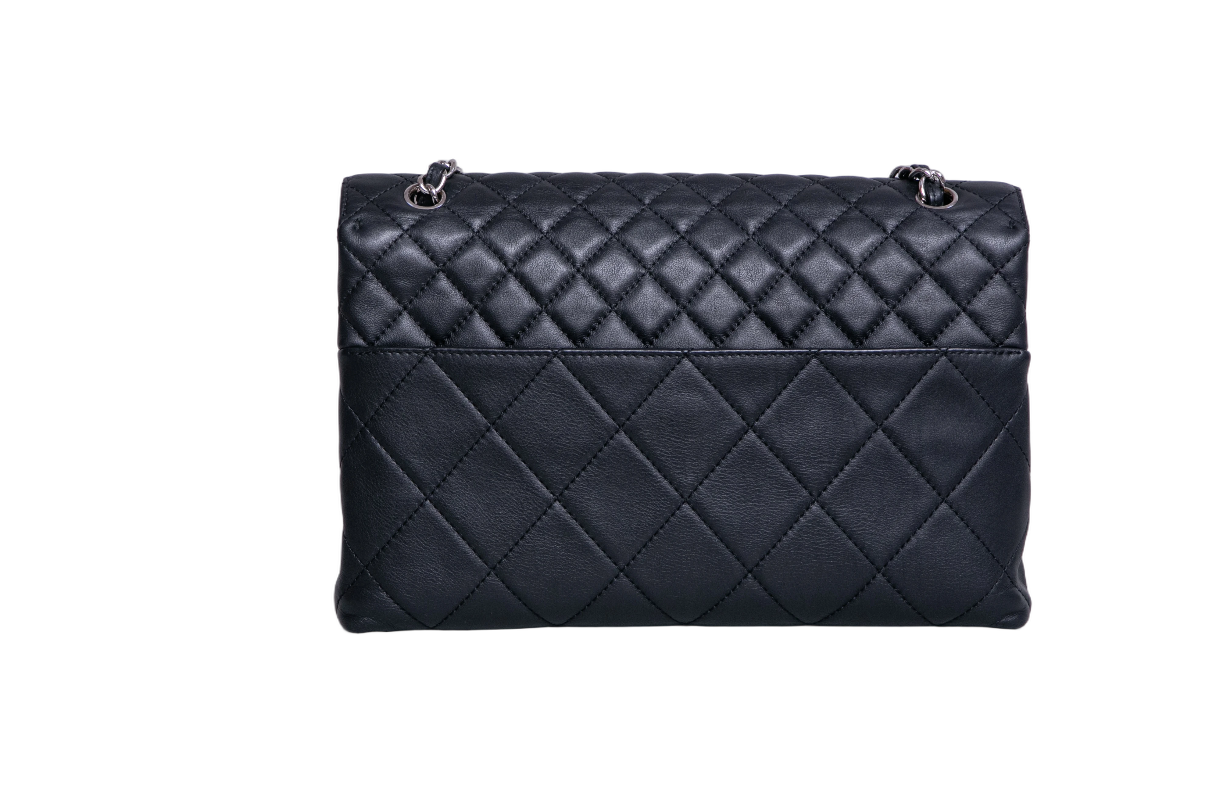 Chanel The Business Flap Bag Quilted Black. Peça em perfeito estado, possui pequenos sinais no couro, arestas e ferragens. Acomoda todos os tamanhos de telefone.