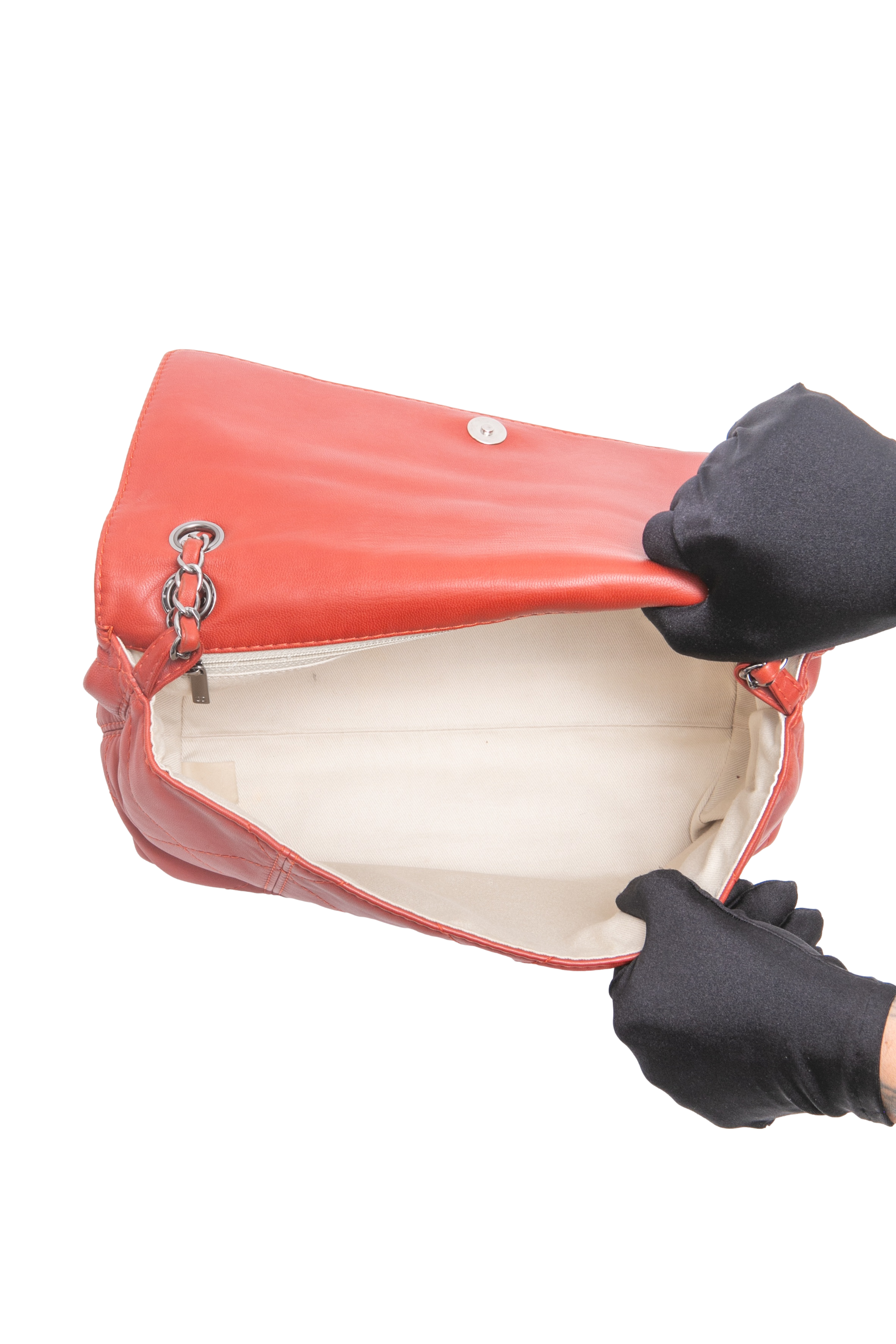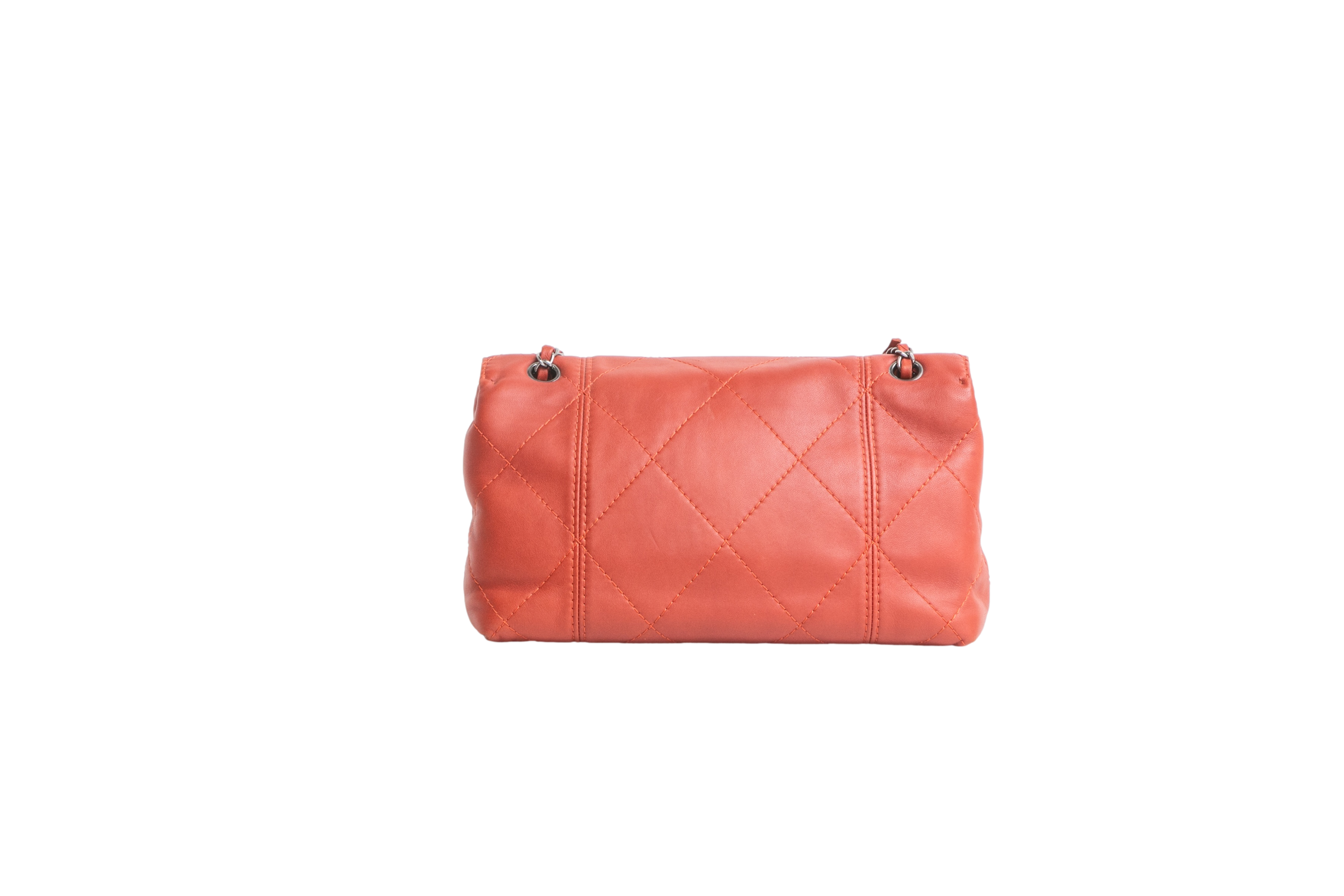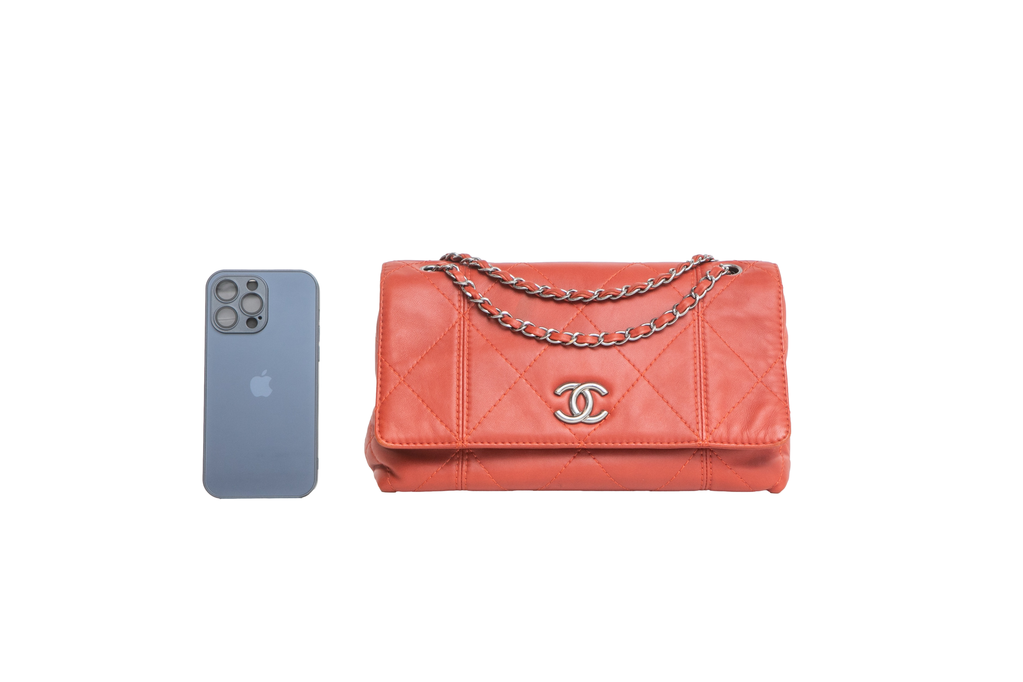 O couro liso e a textura aveludada da tonalidade ocre escura conferem um ar quente e atemporal à peça, tornando-a versátil tanto para o dia quanto para ocasiões noturnas. A aba frontal com fecho CC em imã prateado é um ícone da marca, trazendo elegância imediata ao visual. Seu interior espaçoso, aliado à alça de corrente com entrelaçamento em couro, proporciona praticidade e charme em igual medida. Uma peça statement que traduz o luxo discreto e o refinamento característicos da Chanel.