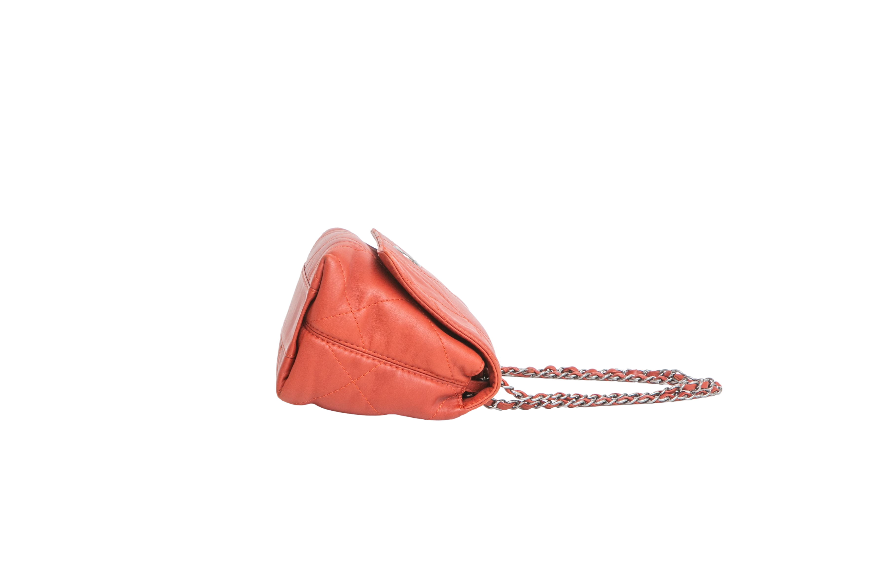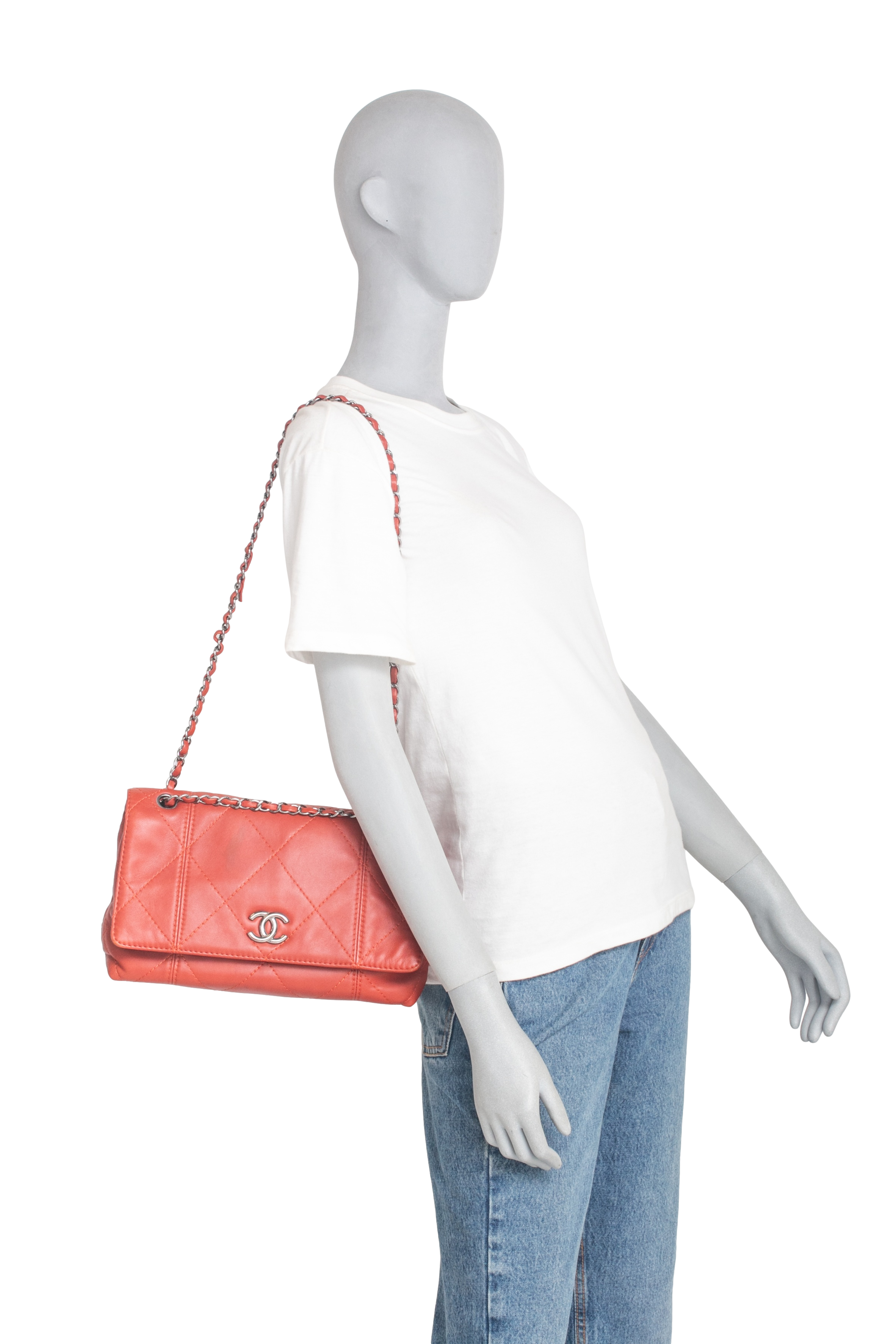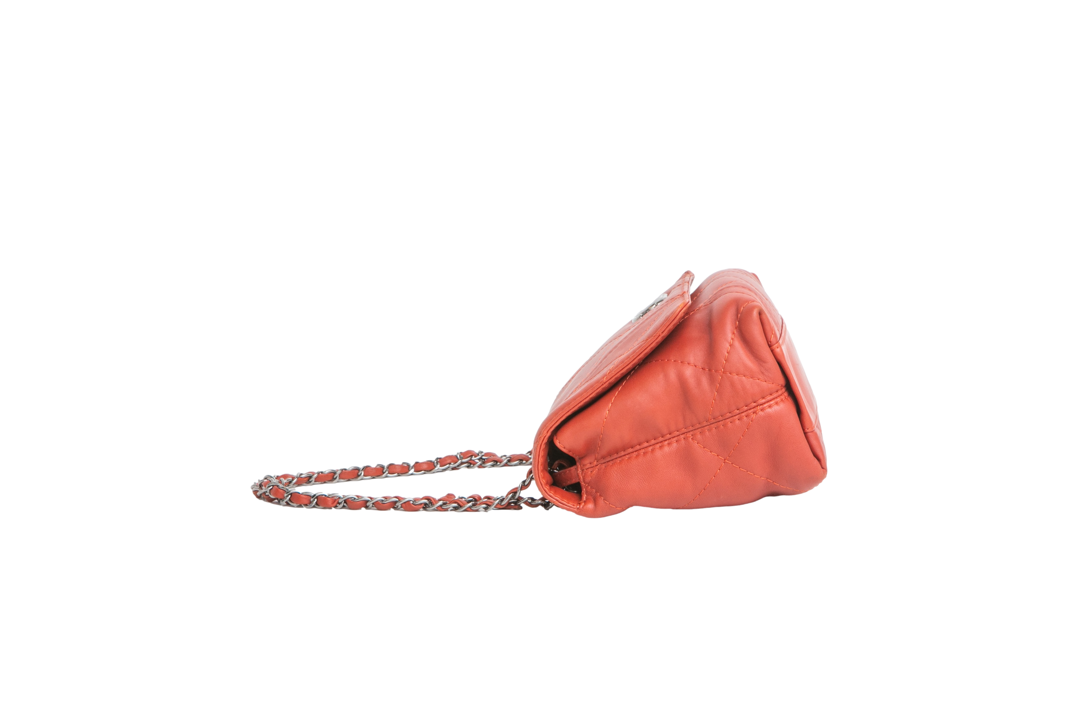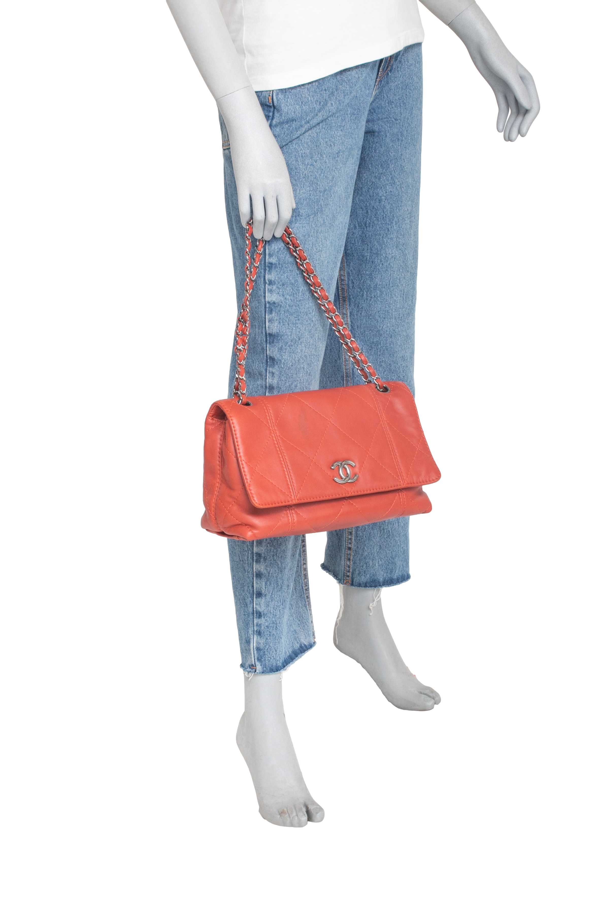 O couro liso e a textura aveludada da tonalidade ocre escura conferem um ar quente e atemporal à peça, tornando-a versátil tanto para o dia quanto para ocasiões noturnas. A aba frontal com fecho CC em imã prateado é um ícone da marca, trazendo elegância imediata ao visual. Seu interior espaçoso, aliado à alça de corrente com entrelaçamento em couro, proporciona praticidade e charme em igual medida. Uma peça statement que traduz o luxo discreto e o refinamento característicos da Chanel.