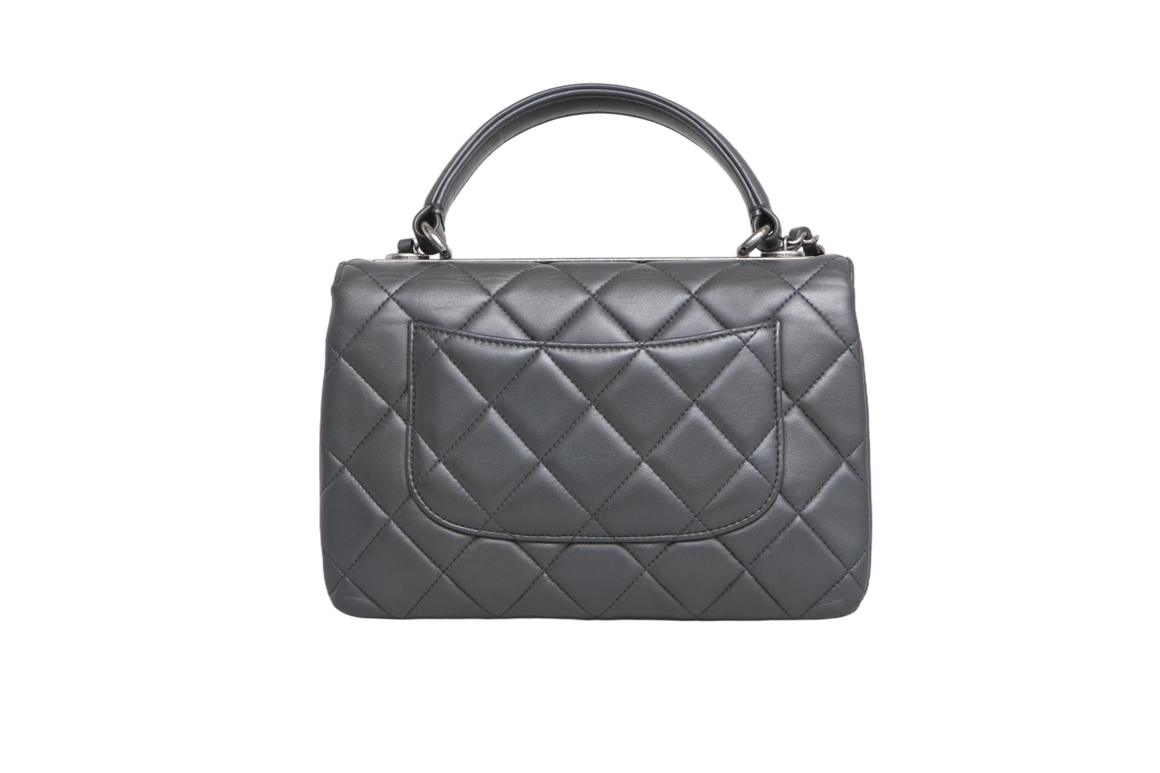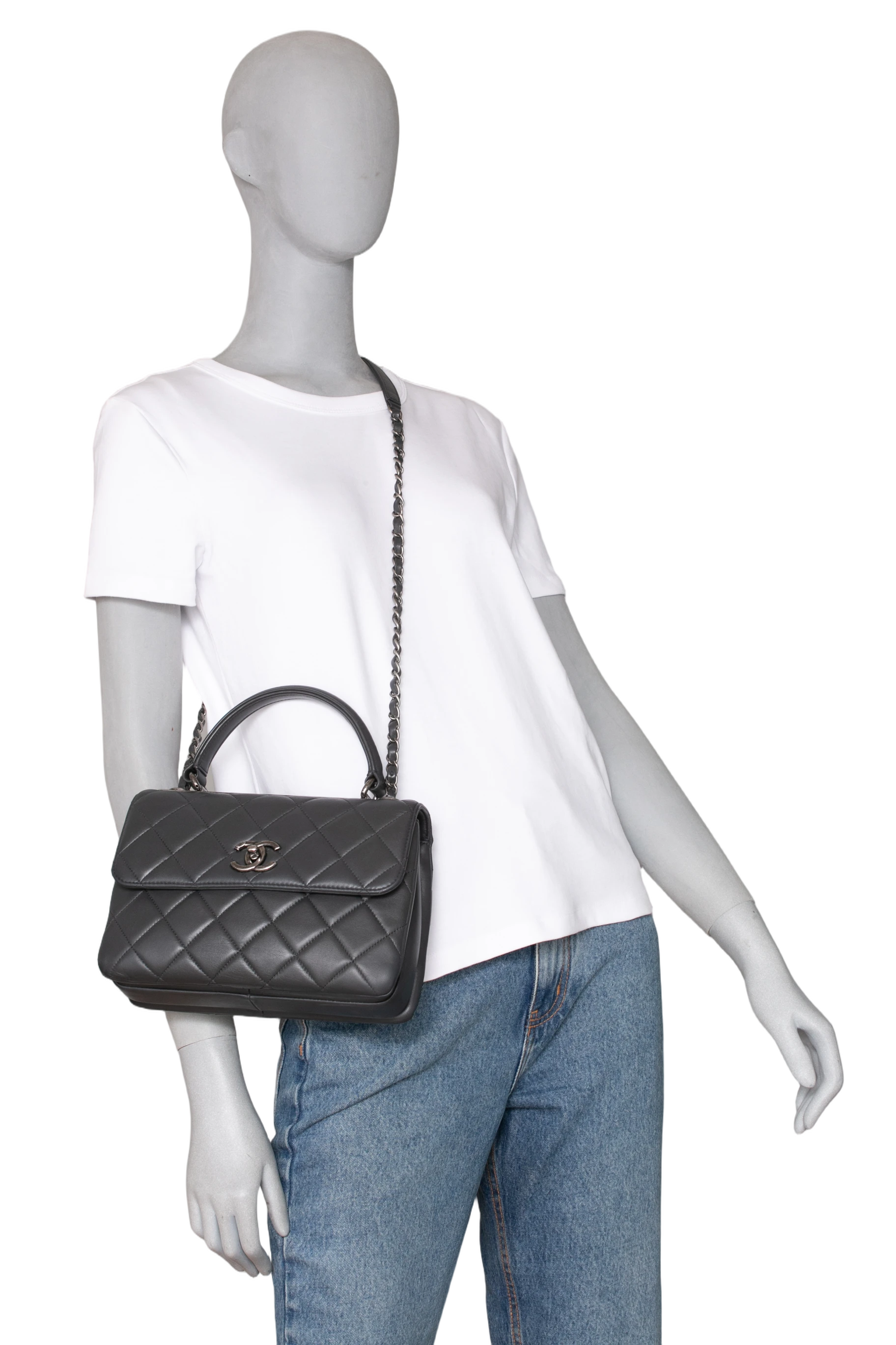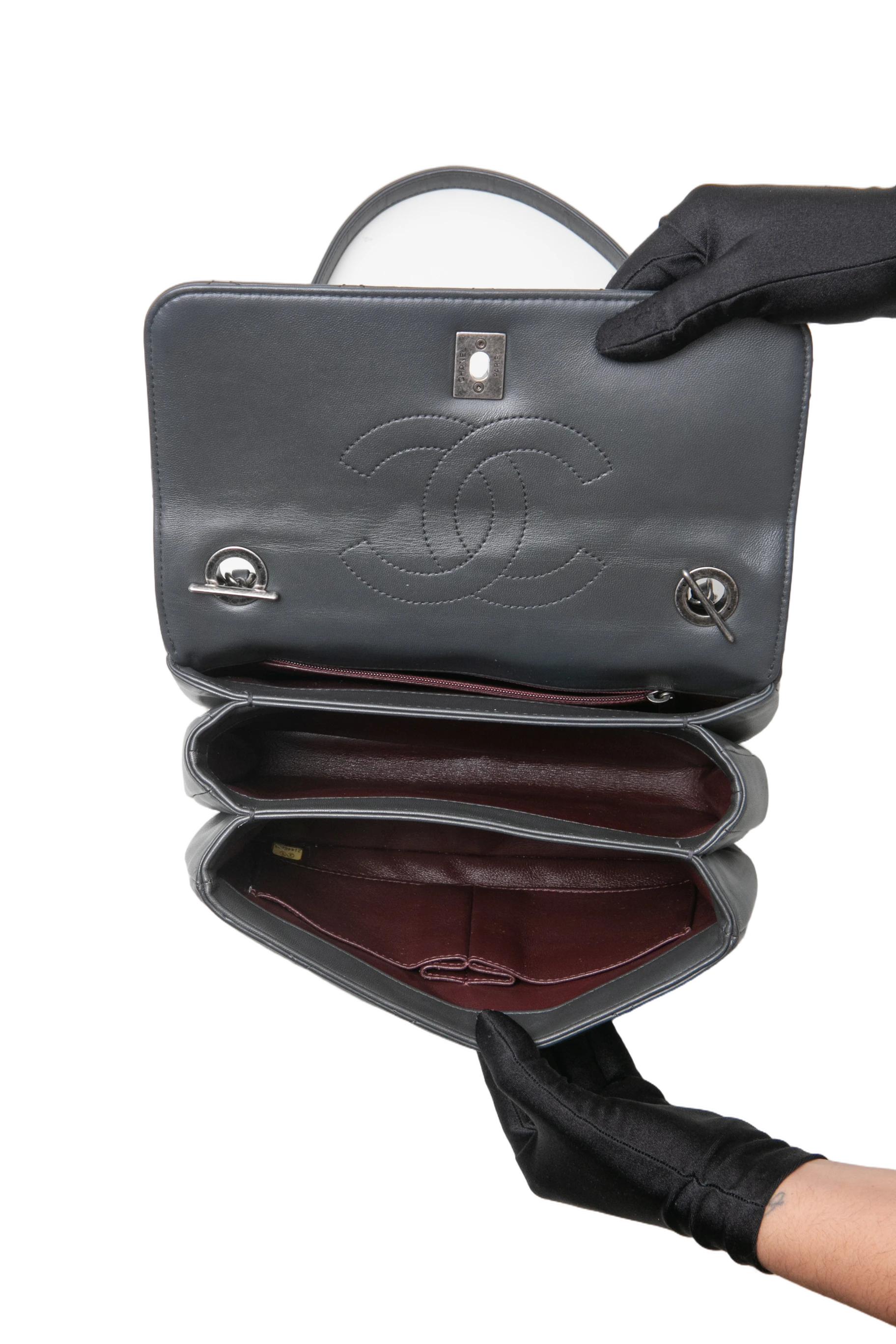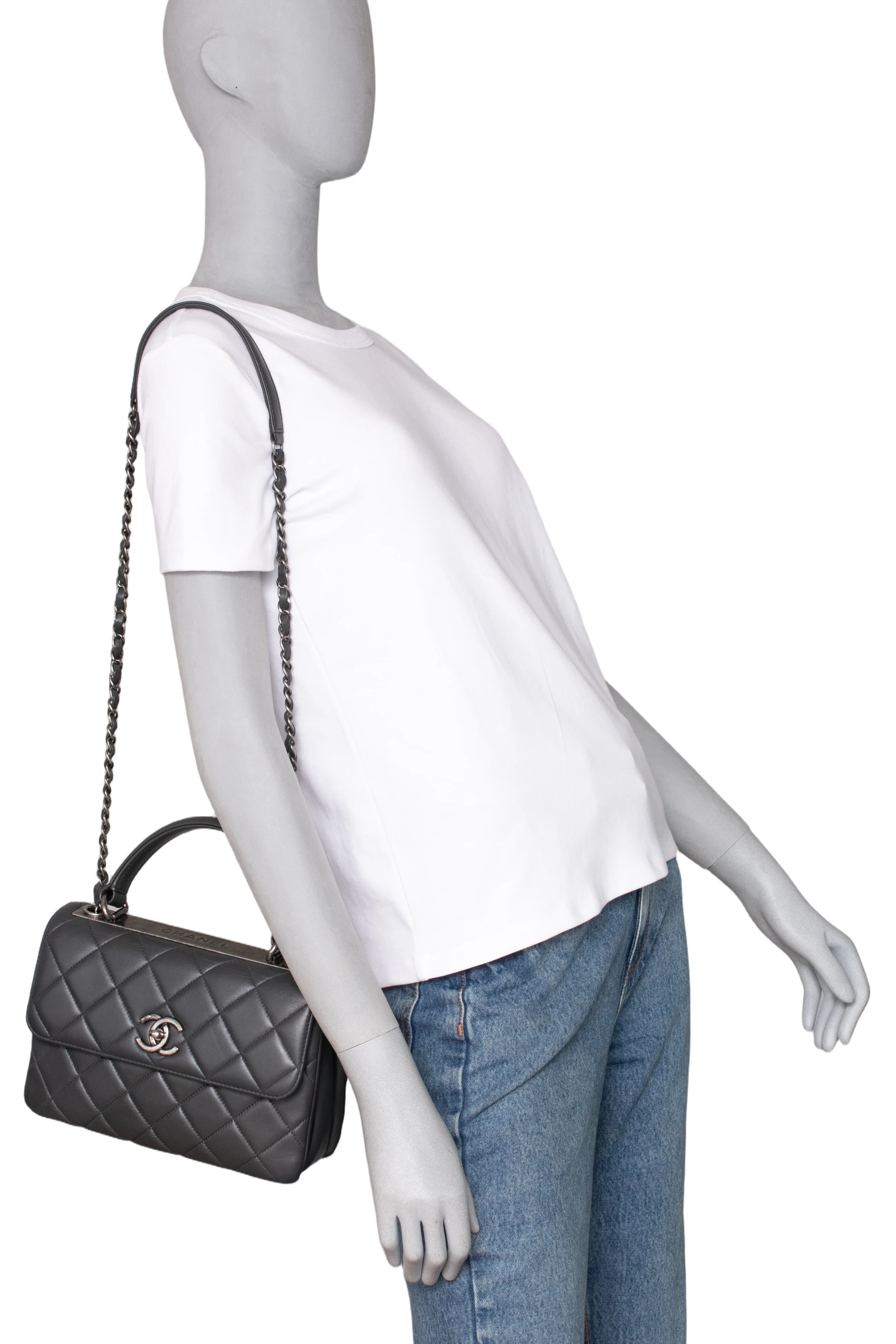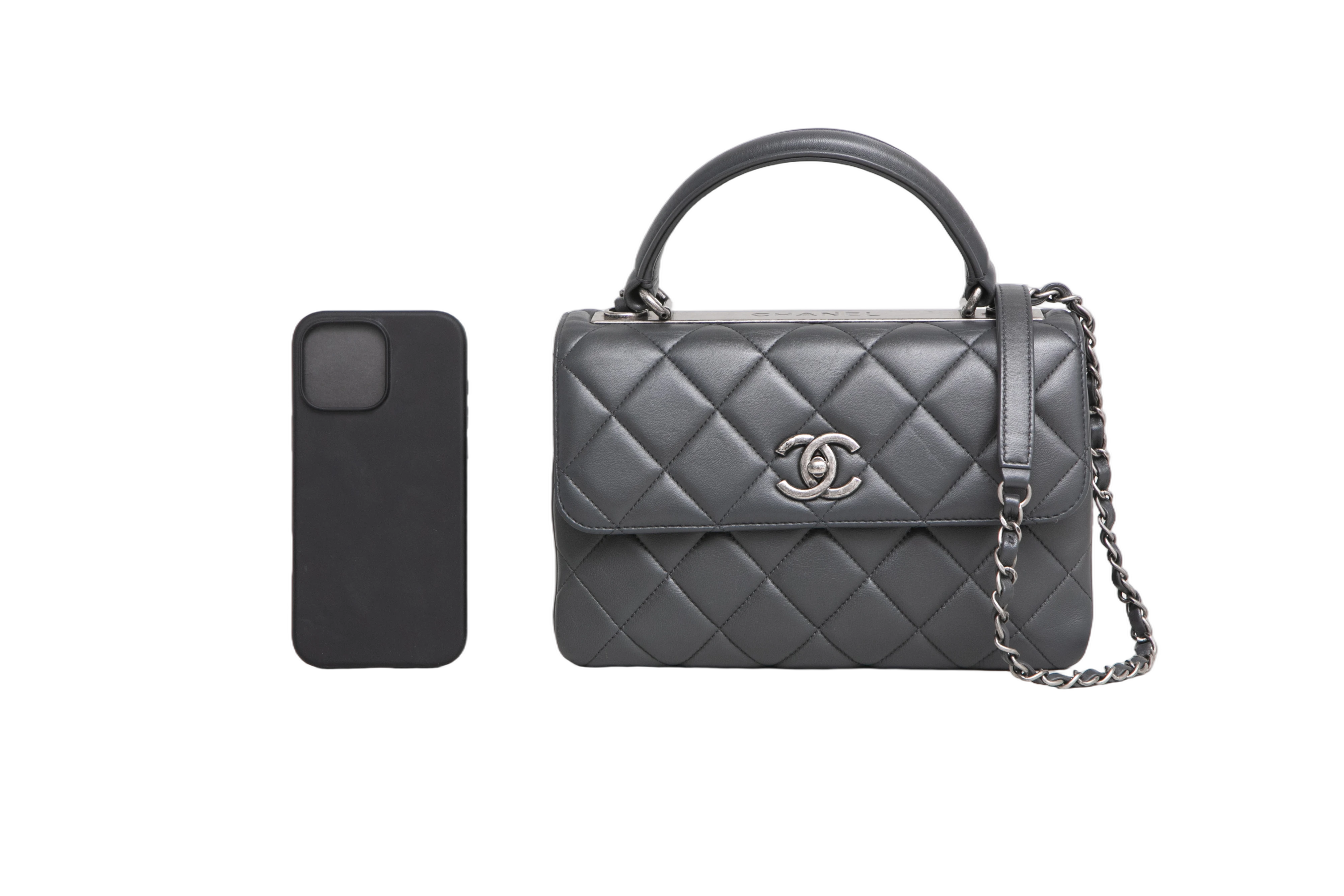 Chanel Trendy CC Small Lambskin Lead Gray Ruthenium. Peça em ótimo estado, possui sinais nas arestas e marcas no couro. Acomoda todo os tamanhos de telefone.