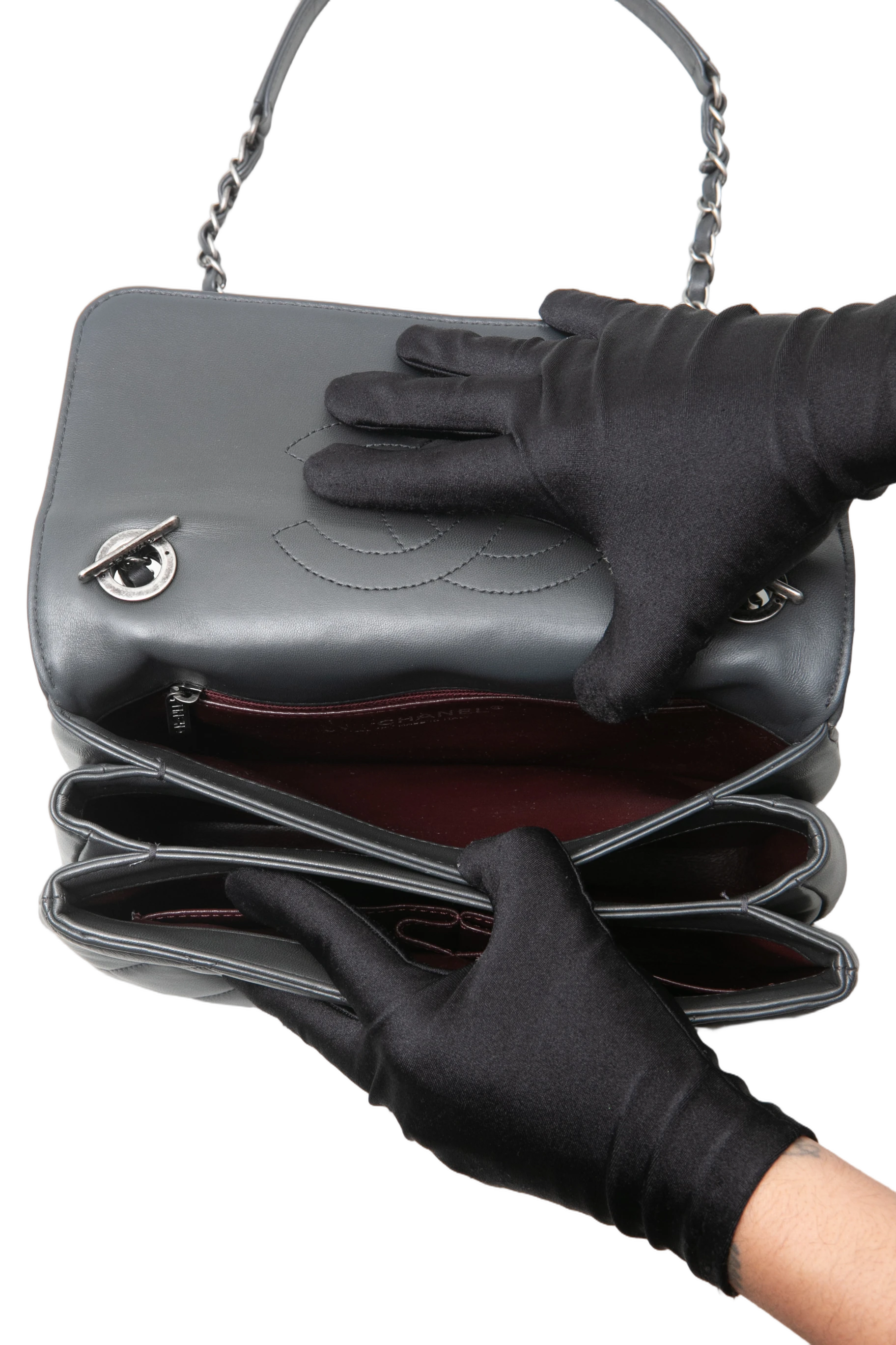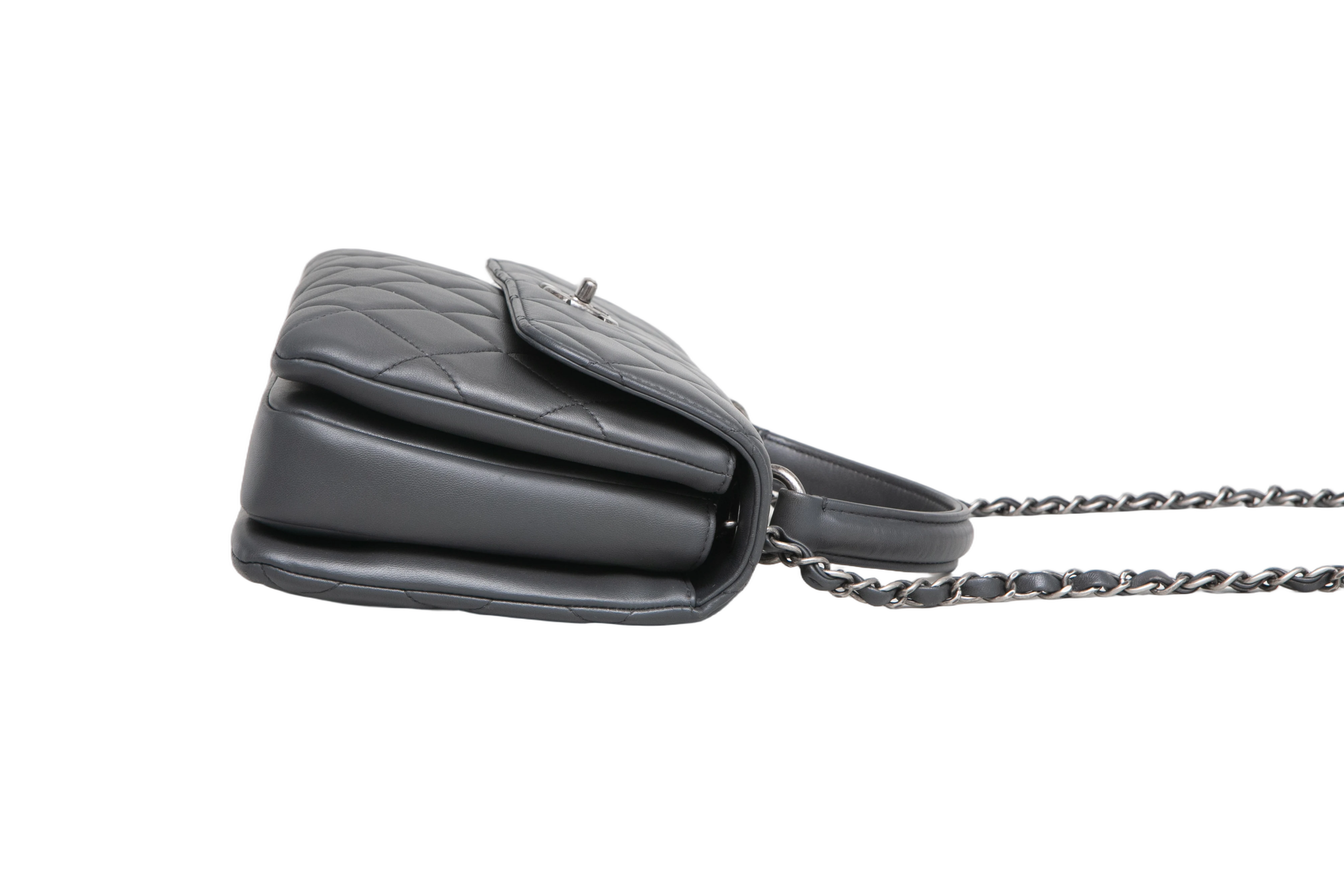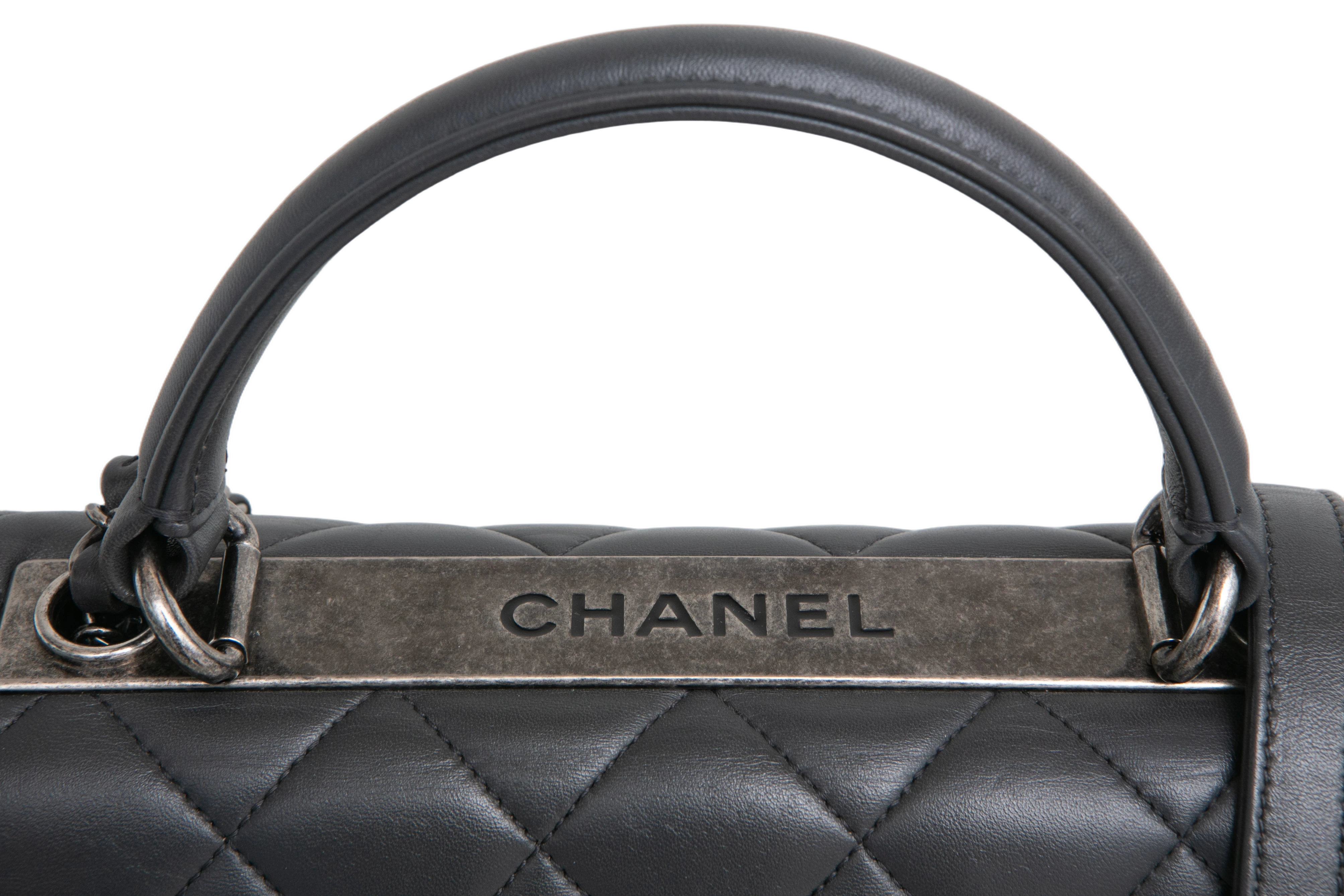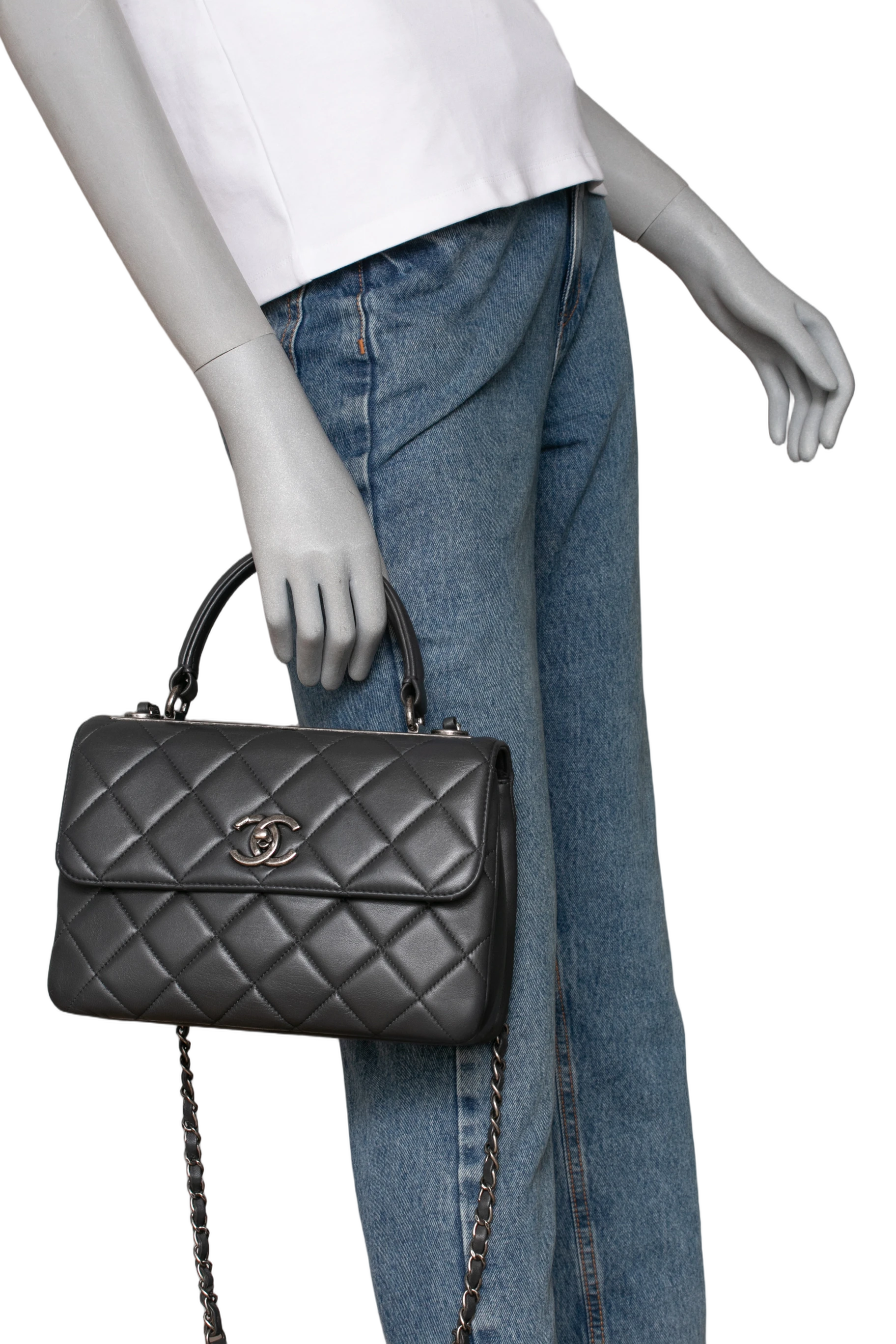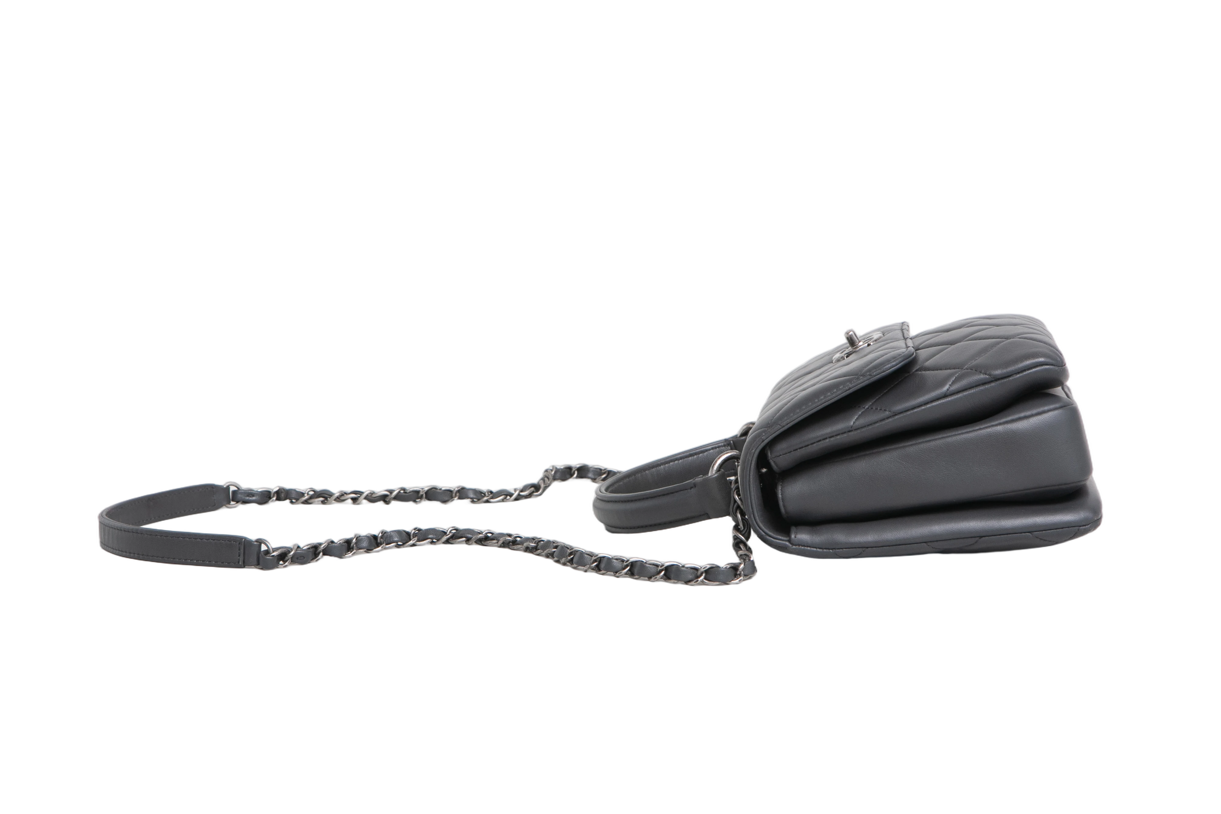 Chanel Trendy CC Small Lambskin Lead Gray Ruthenium. Peça em ótimo estado, possui sinais nas arestas e marcas no couro. Acomoda todo os tamanhos de telefone.