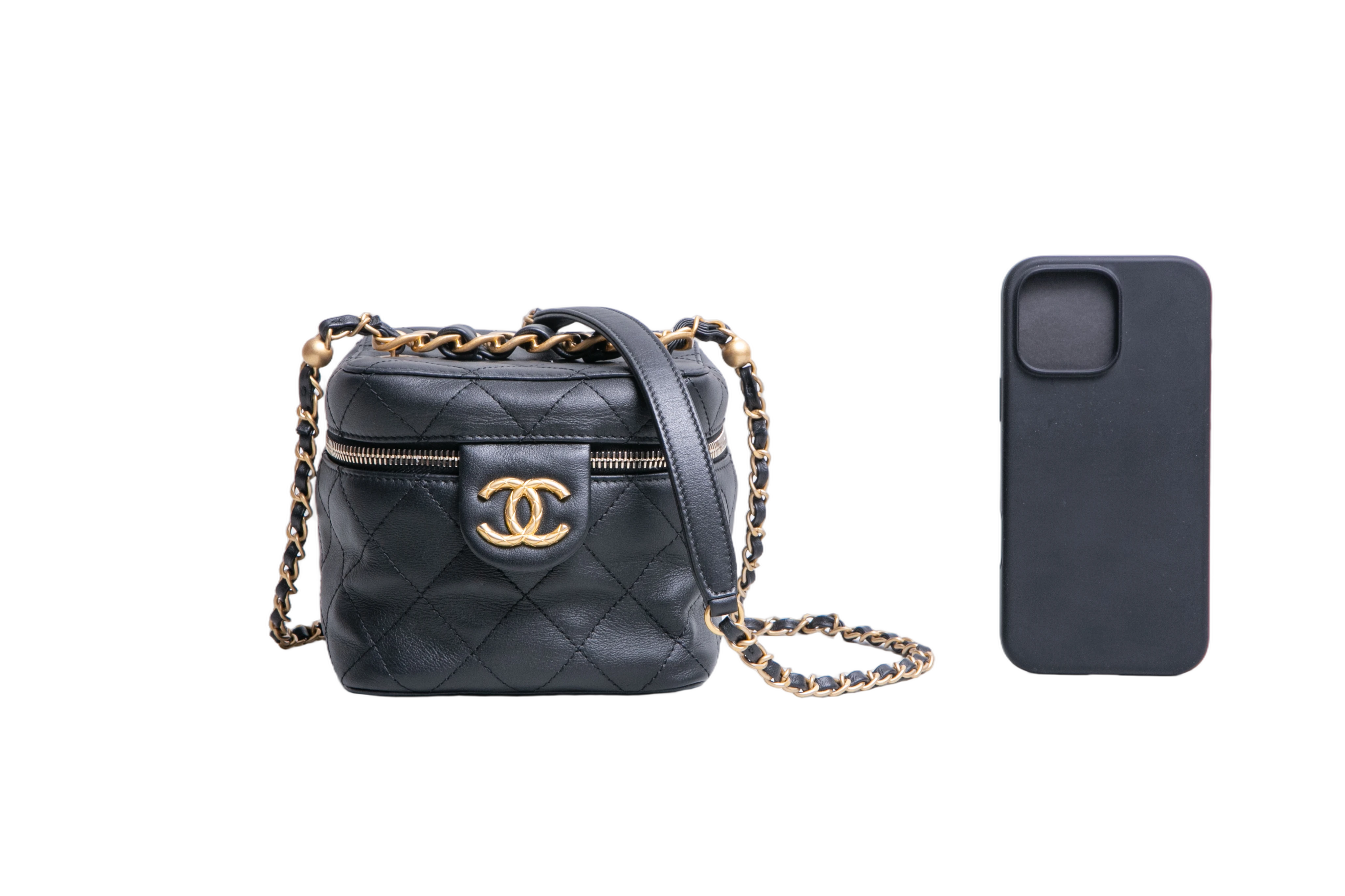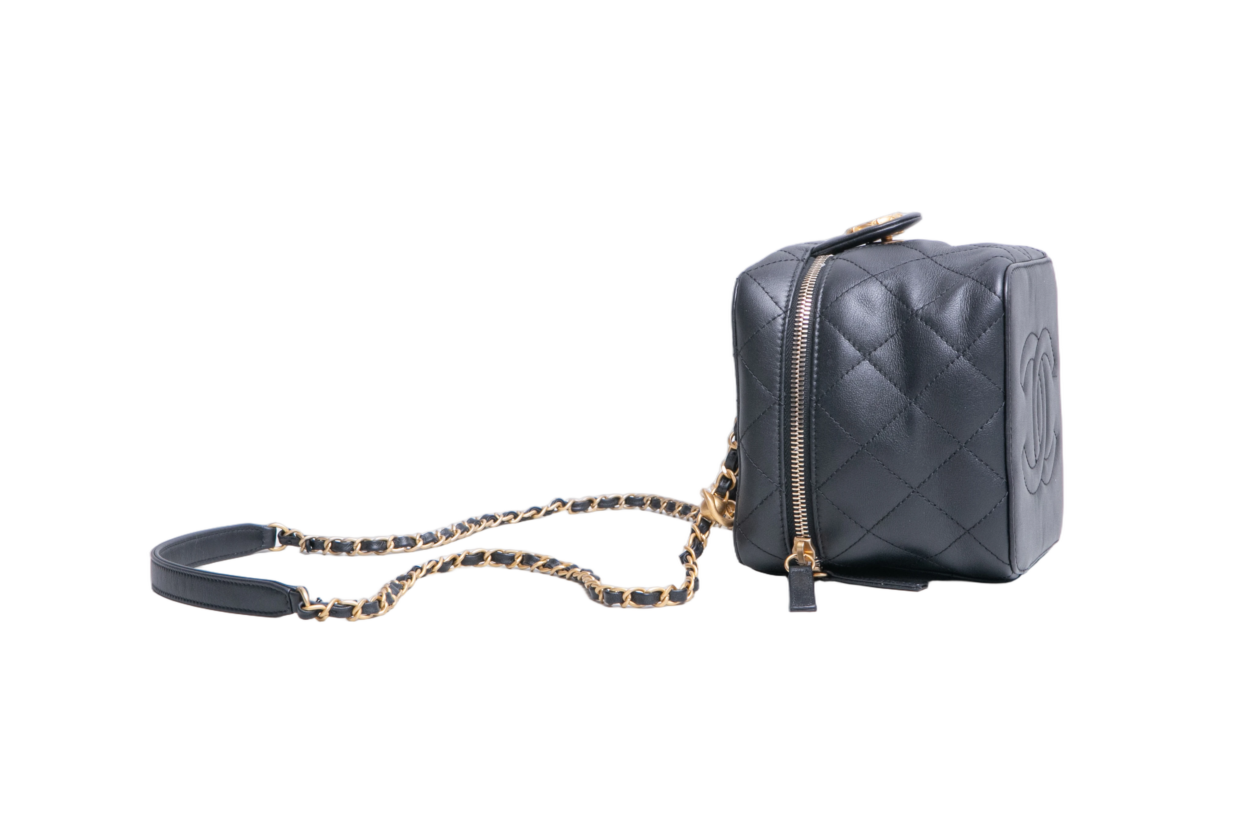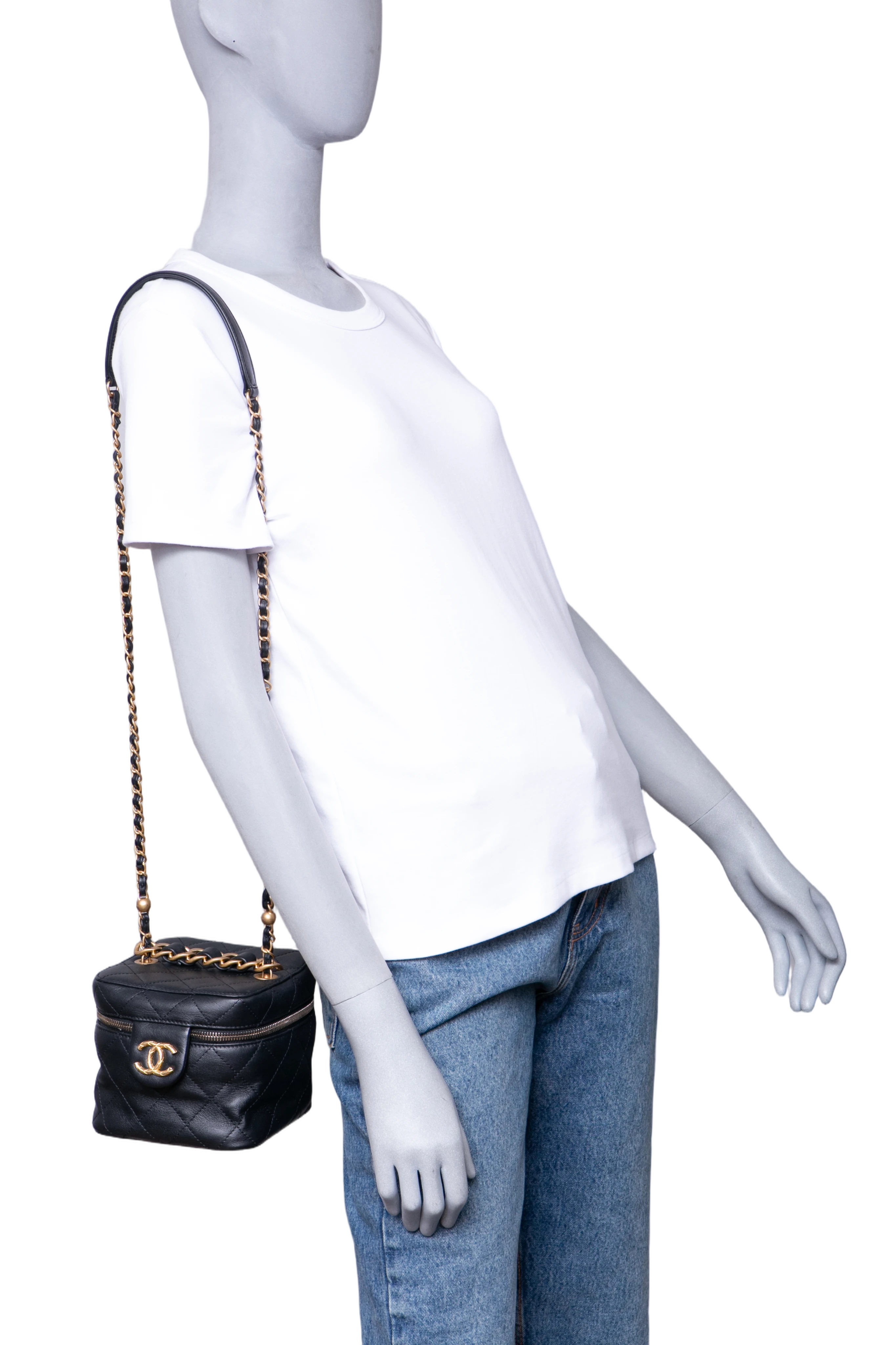 Chanel Vanity Case Small Black/Gold. Peça em perfeito estado, possui pequenas marcas no couro e forro.