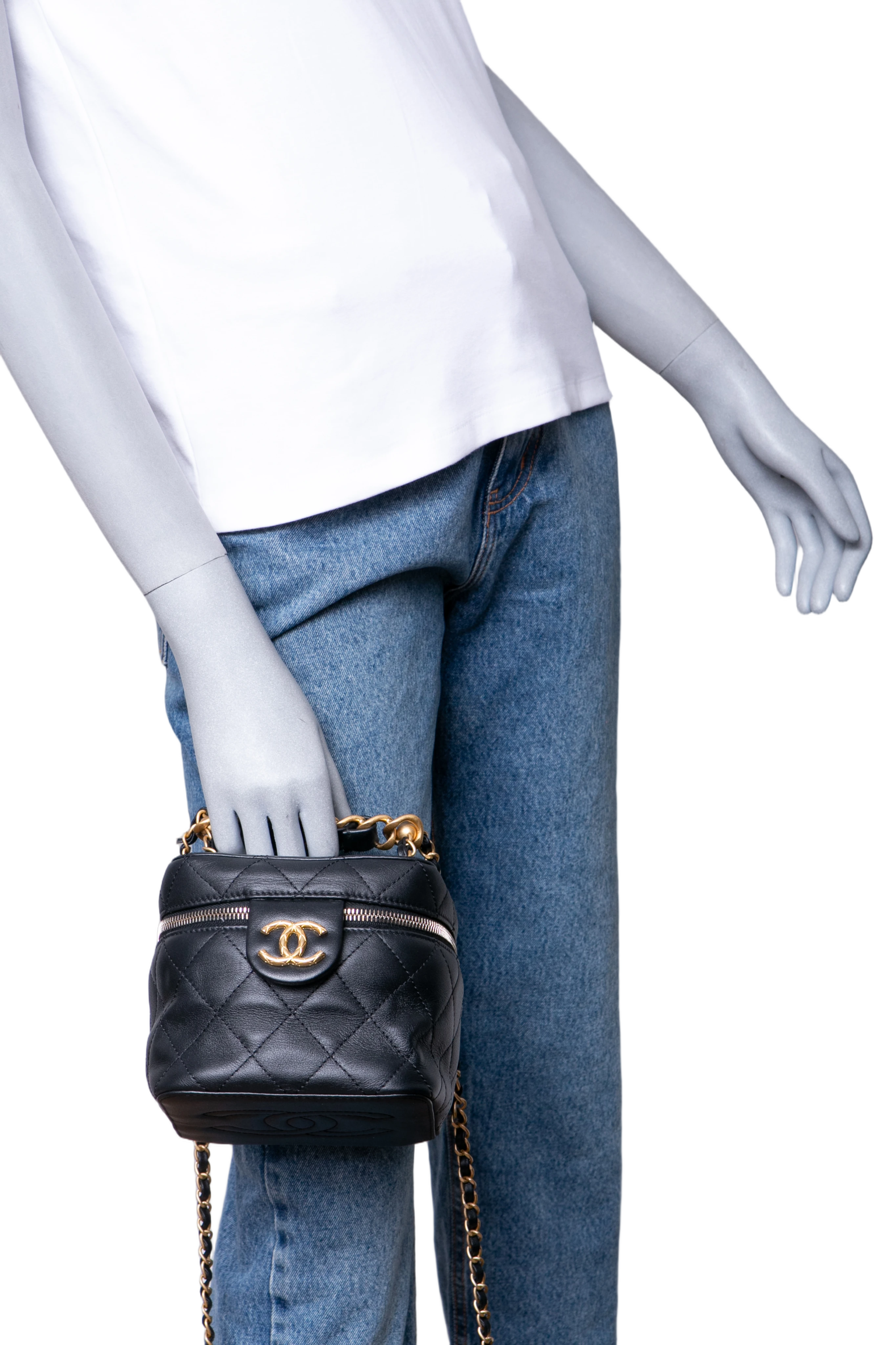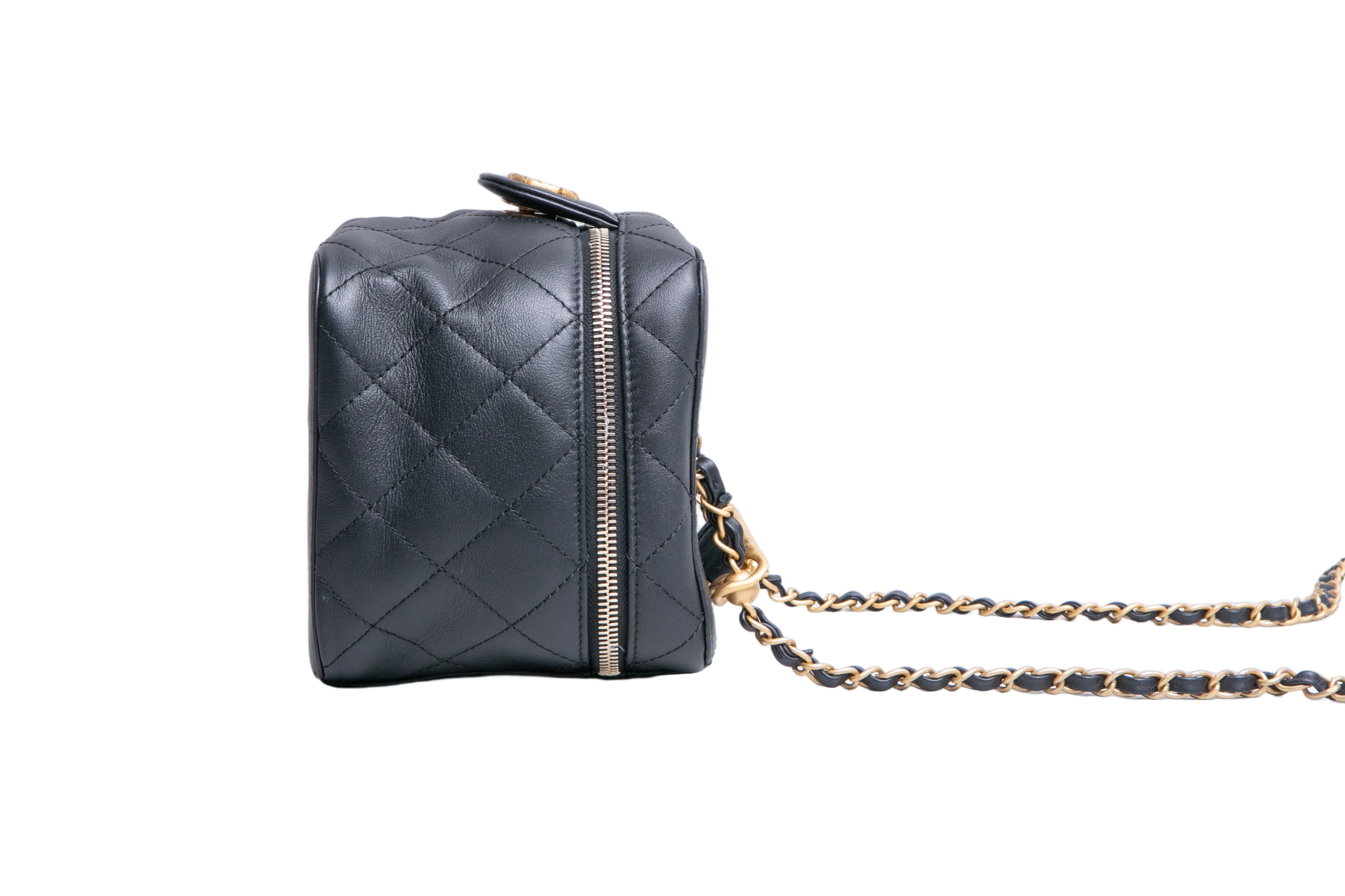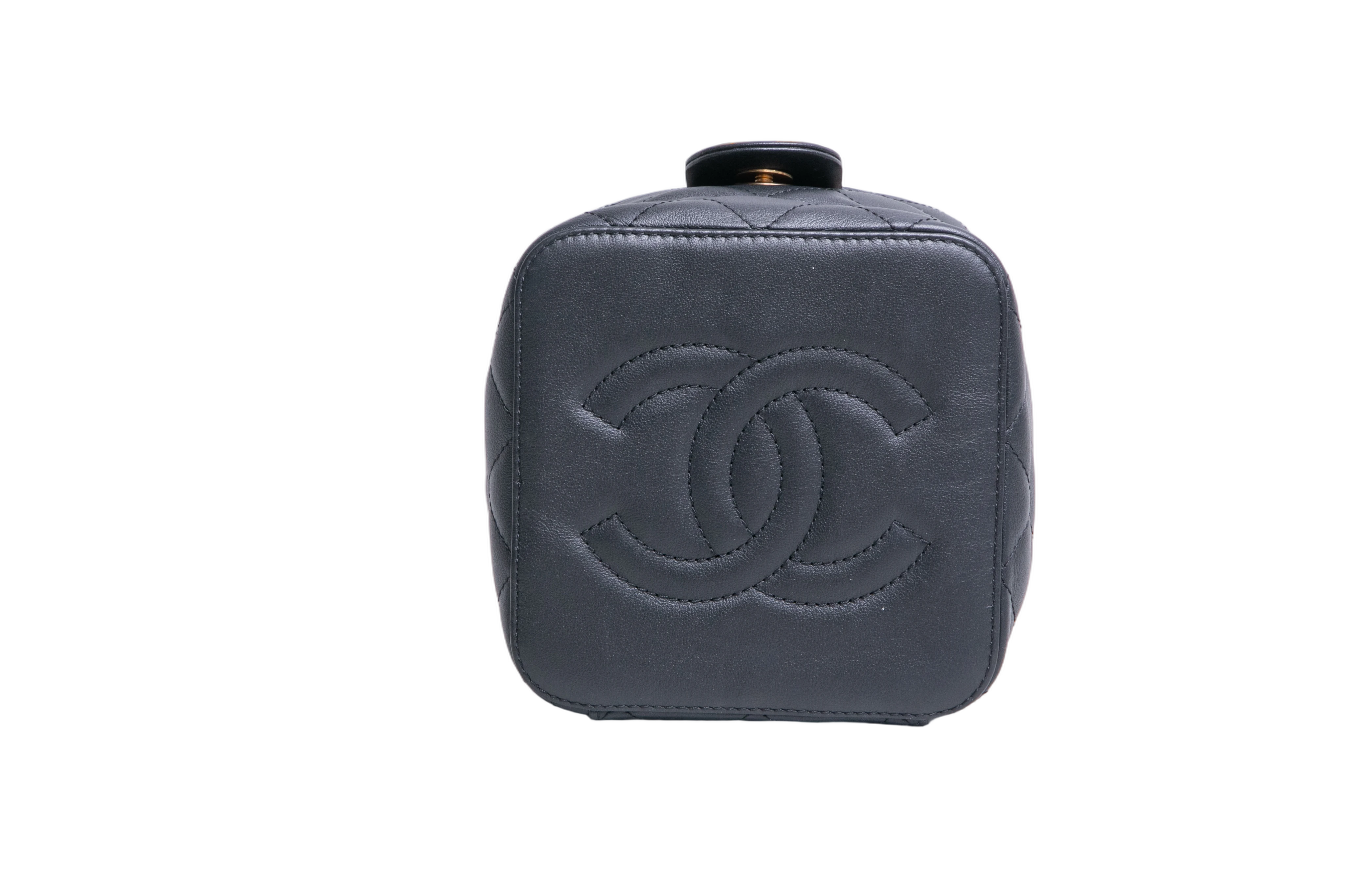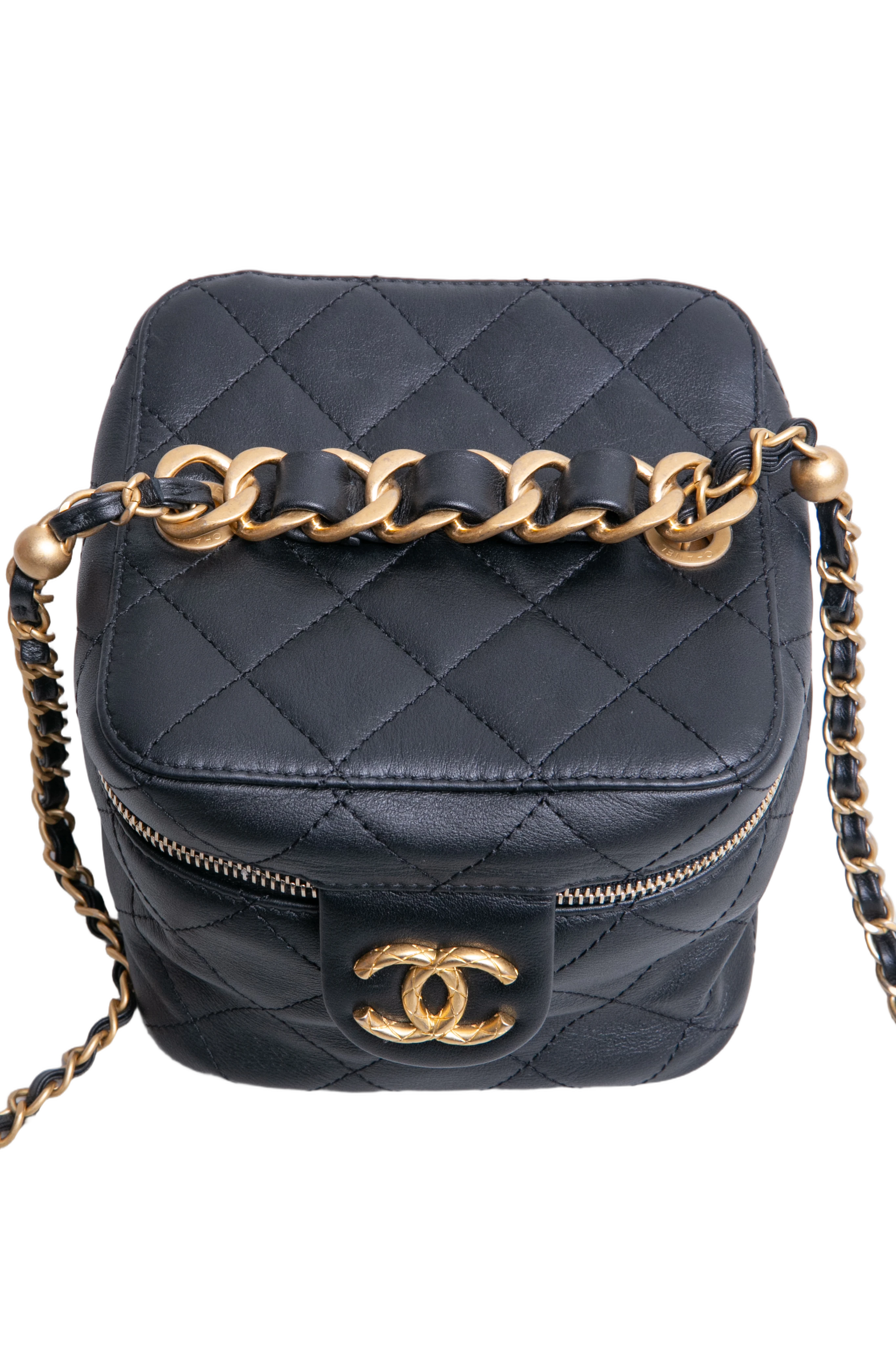 Chanel Vanity Case Small Black/Gold. Peça em perfeito estado, possui pequenas marcas no couro e forro.