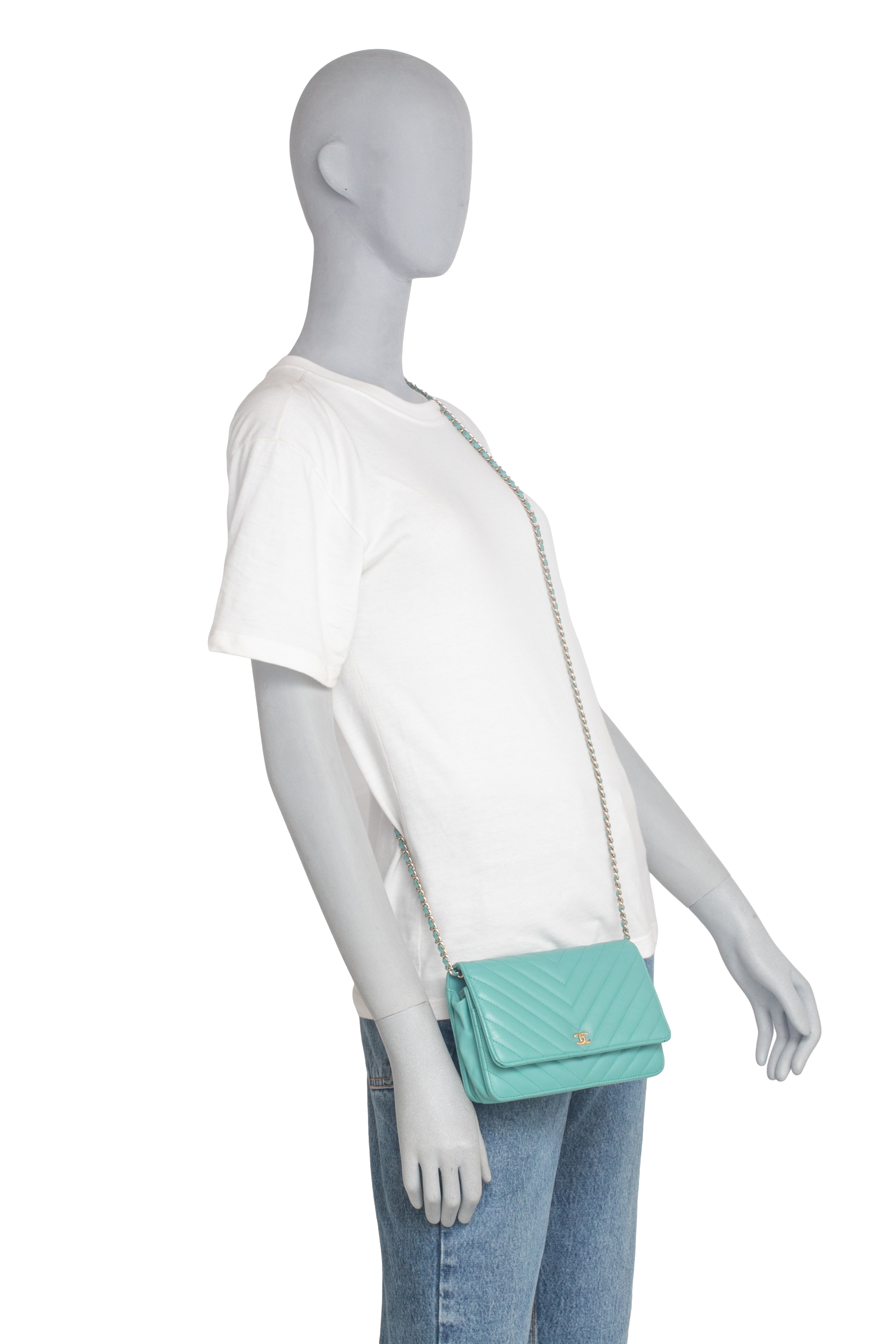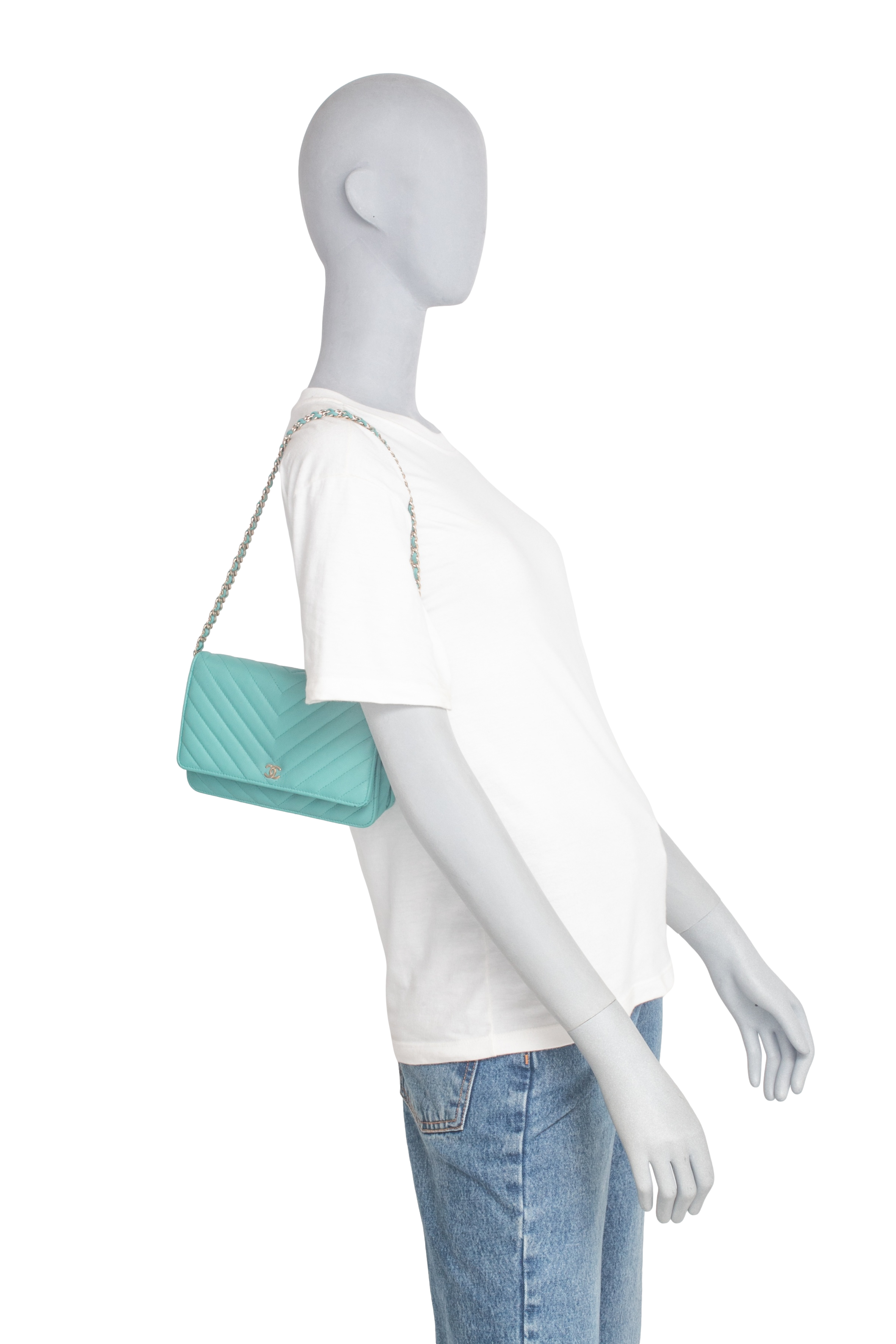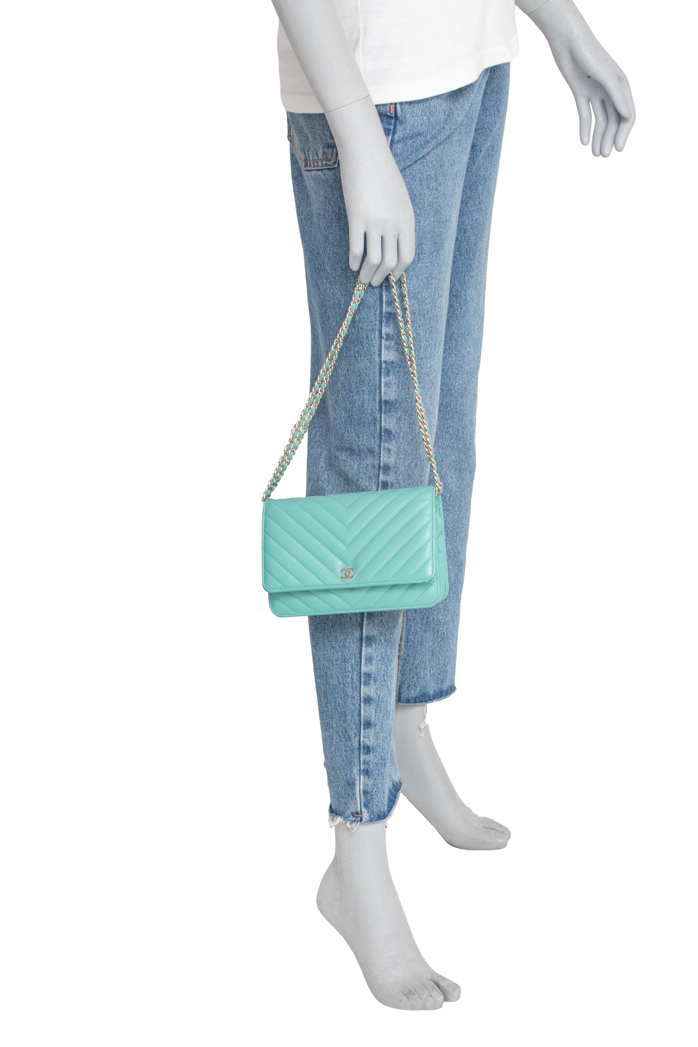 Chanel Woc Chevron Lambskin Turquoise. Peça em ótimo estado, possui pequenos sinais de uso no couro.
