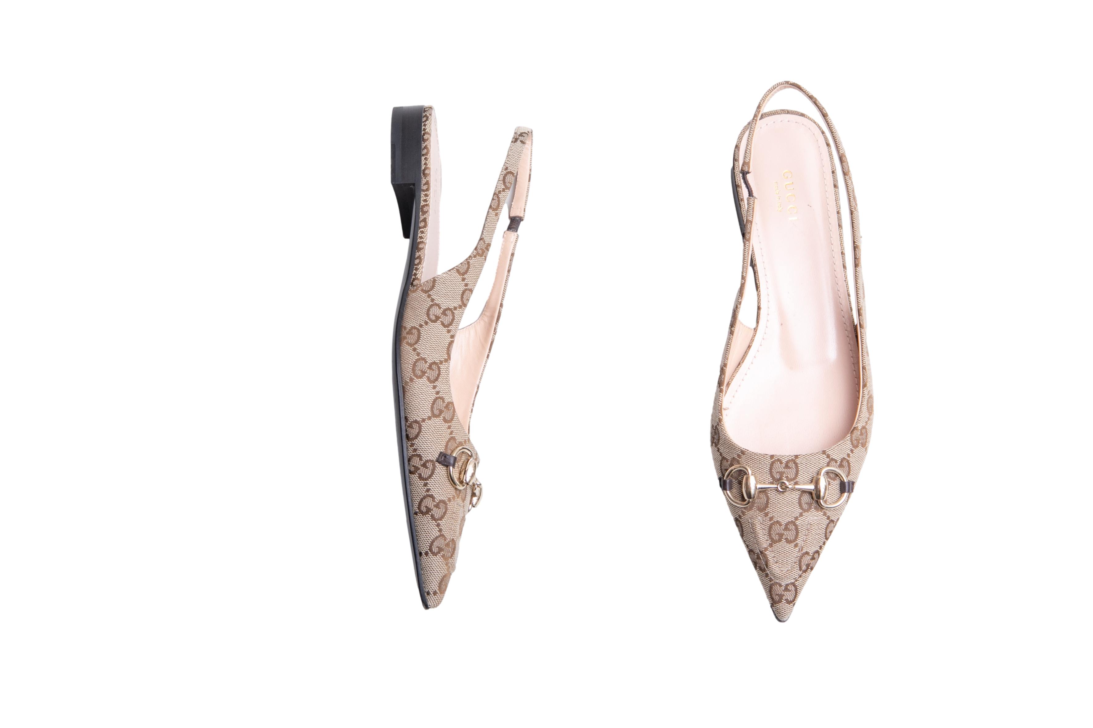 Desapego Julia Faria Gucci Slingback Erin Canvas GG Supreme. Peça em perfeito estado, possui pequenos sinais de uso na sola e palmilha.