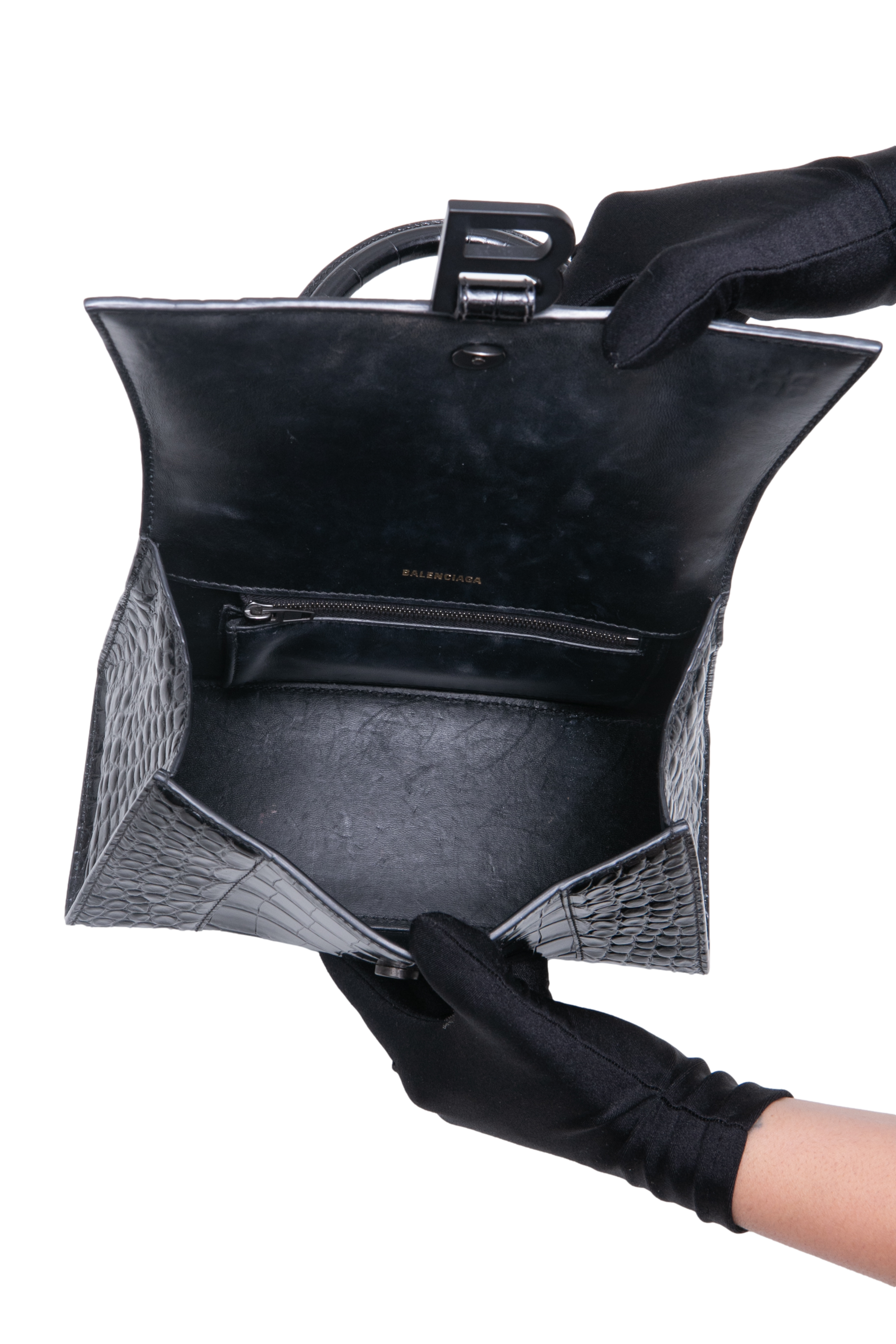 Desapego Rayza Nicacio Balenciaga Hourglass Small Top-Handle Black. Peça em ótimo estado, possui sinais no couro, parte interna e scratches nas arestas.