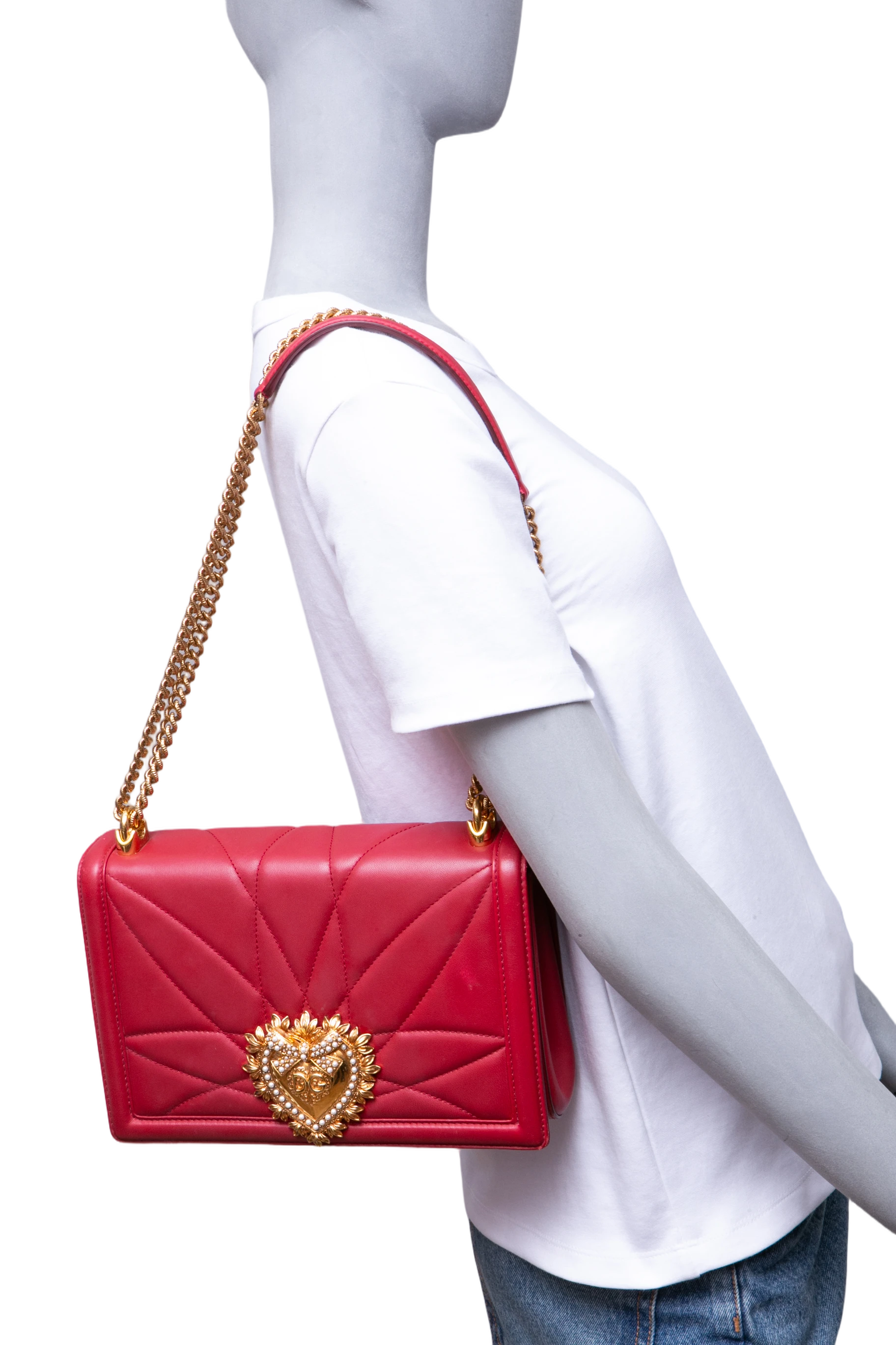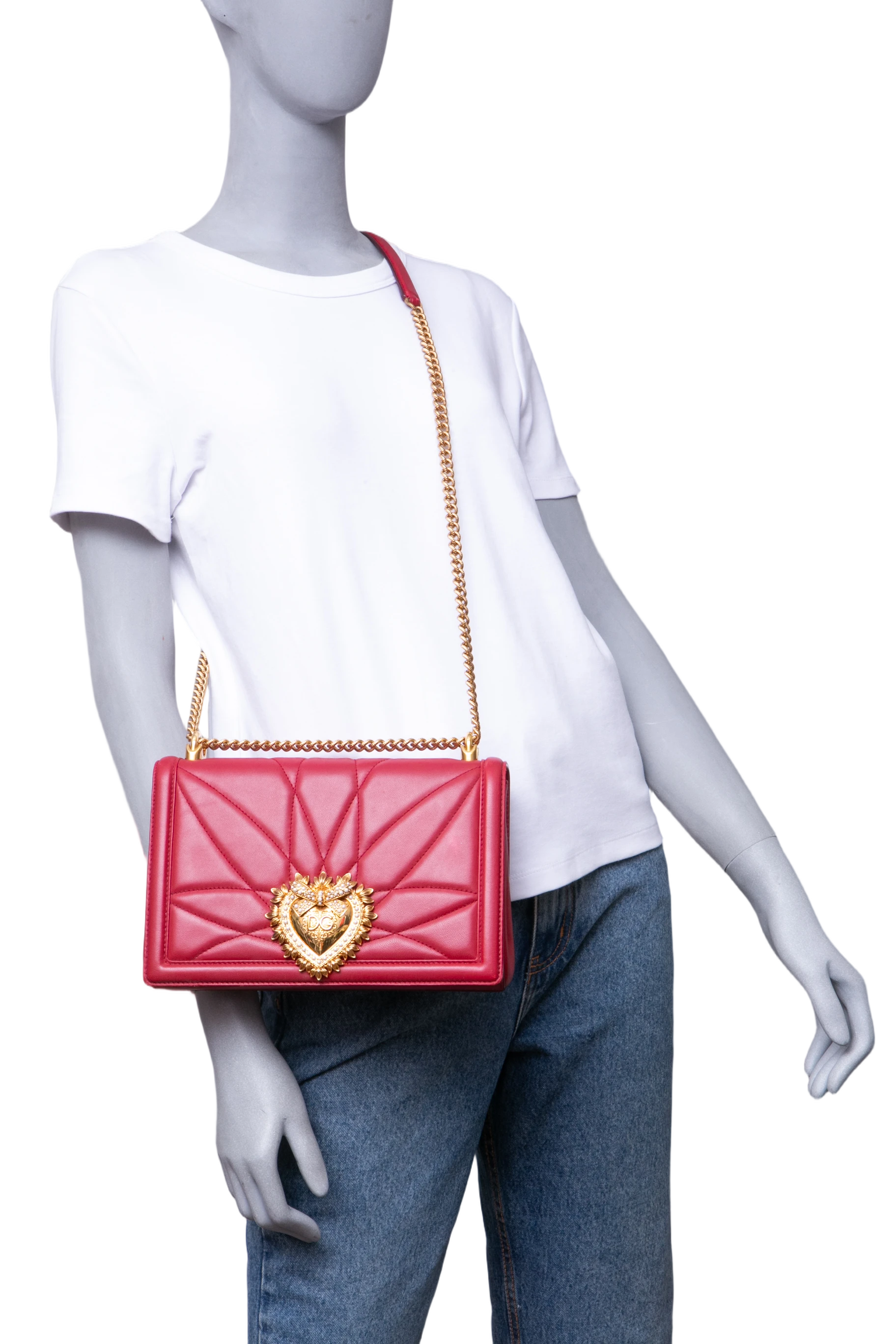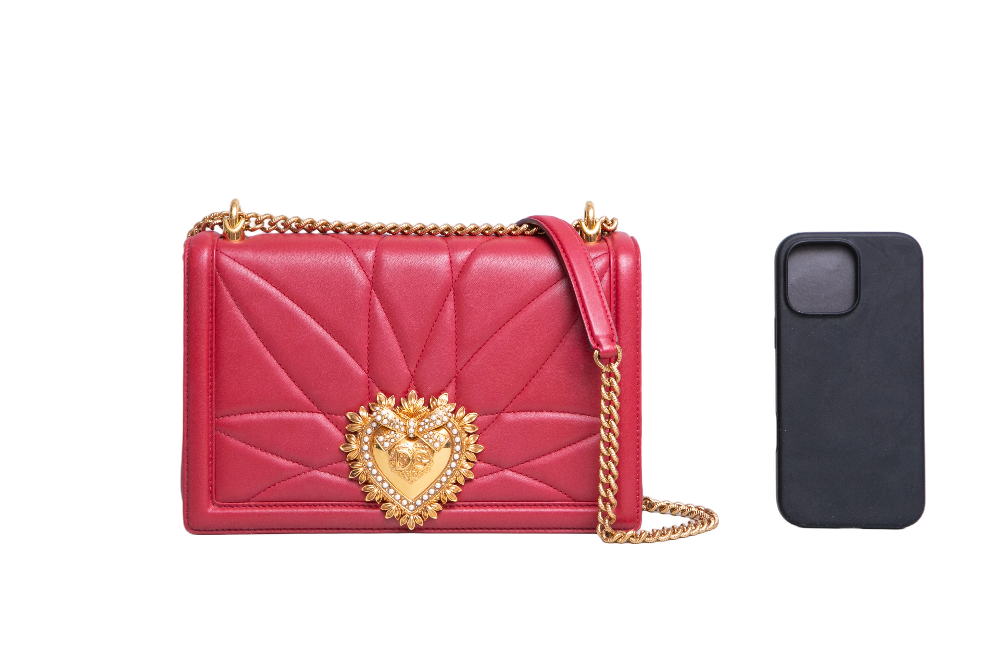 DG Devotion Large Quilted Nappa Leather Red. Peça em ótimo estado, possui sinais no couro e odor. Acomoda todos os tamanhos de telefone.