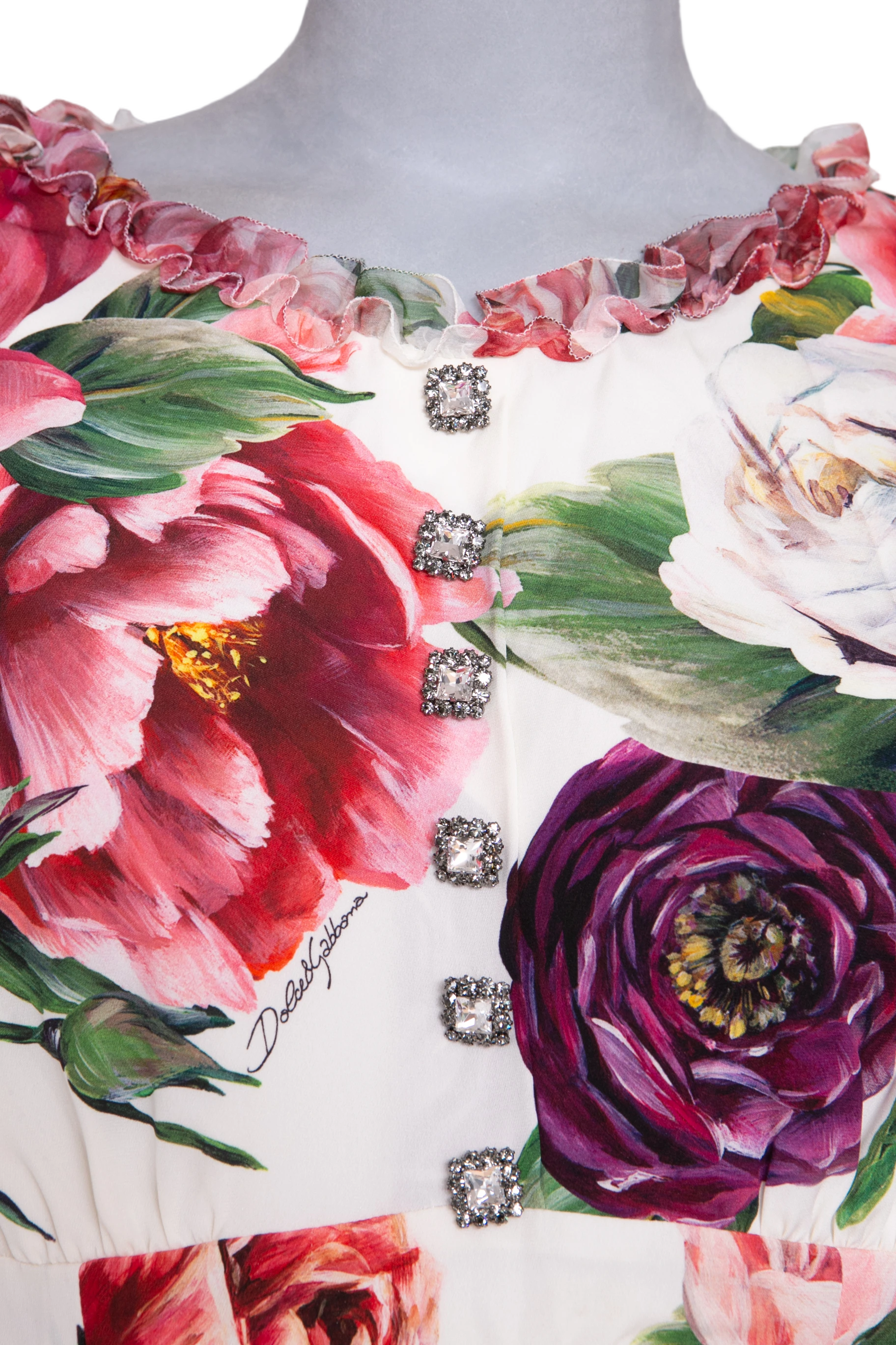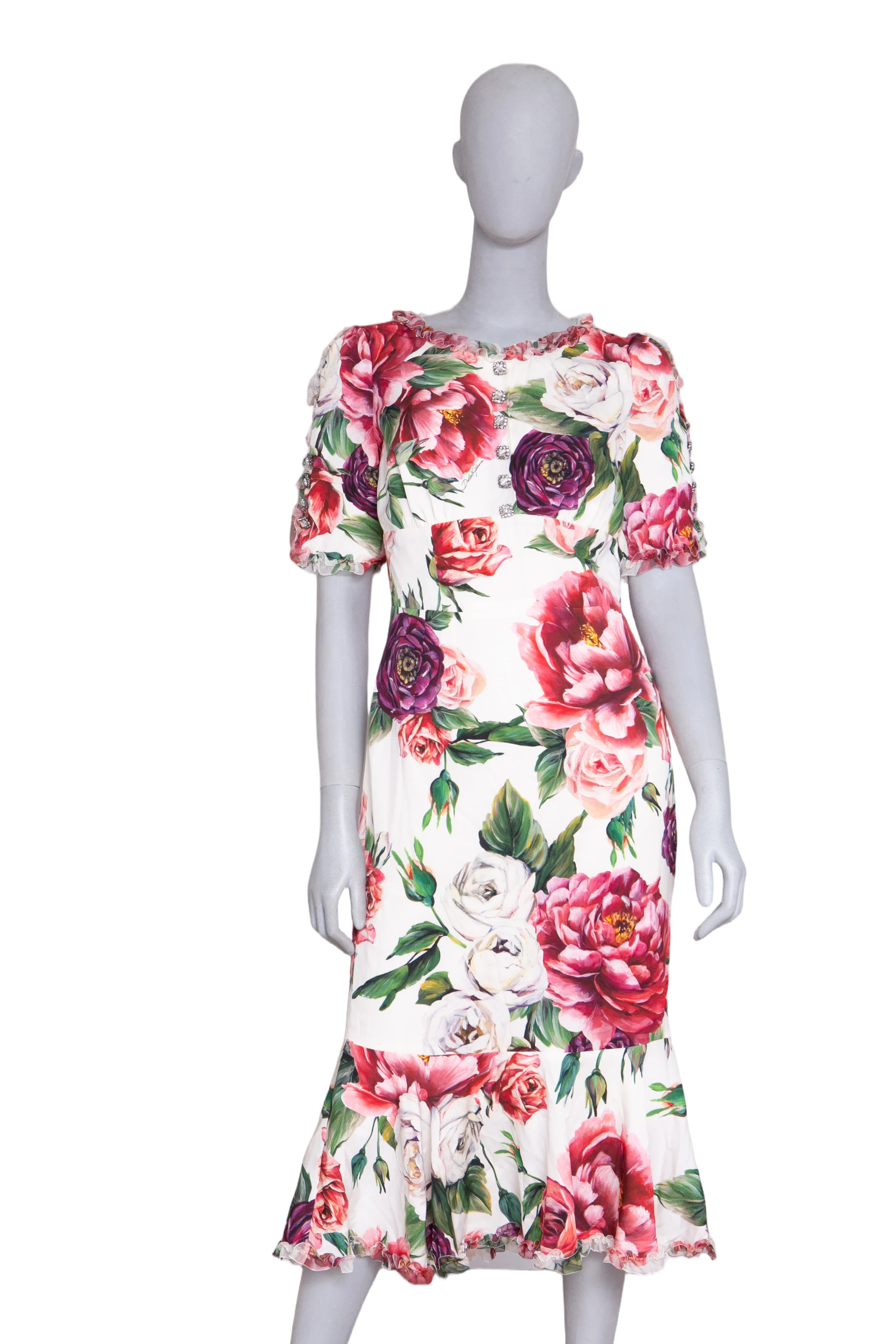DG Dress Midi Floral Buttons W/Frills. Peça em perfeito estado, possui poucos sinais de uso.