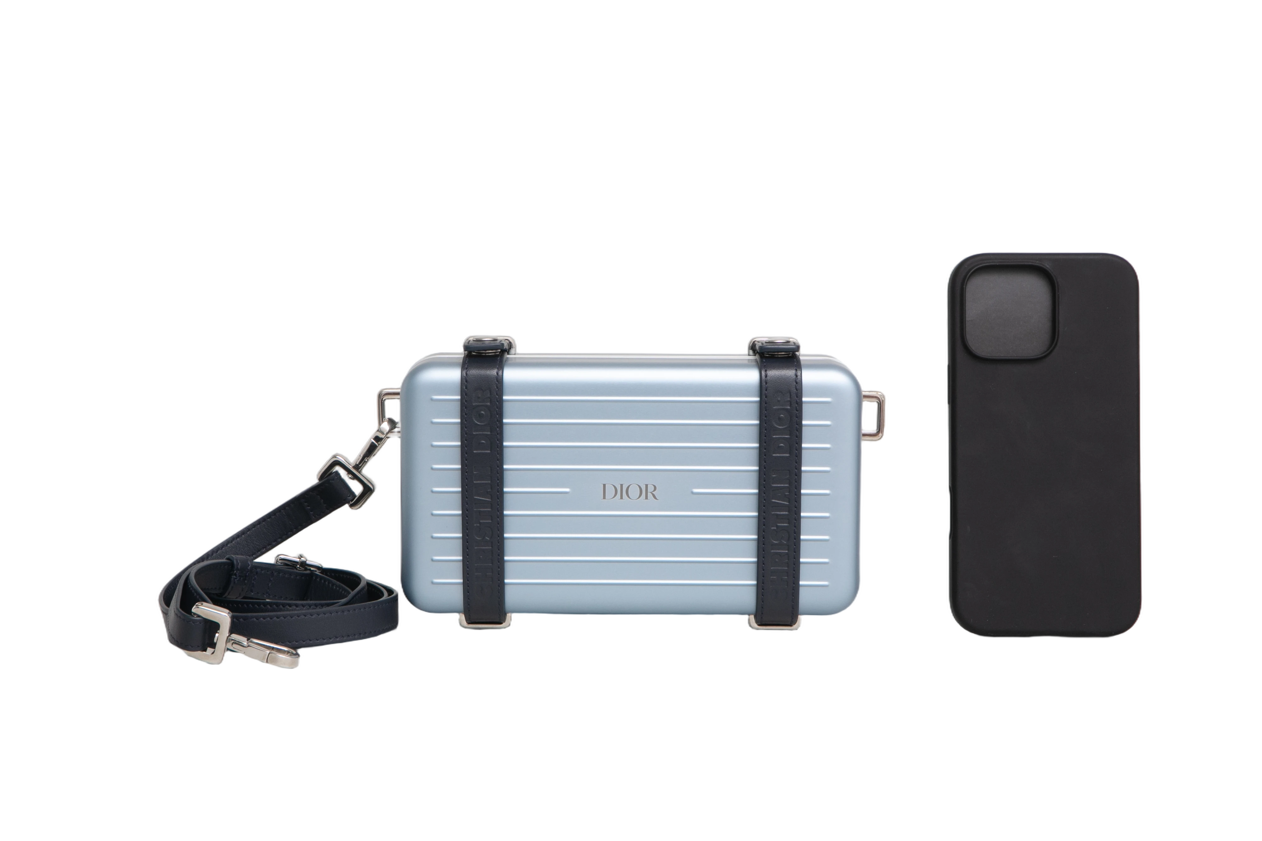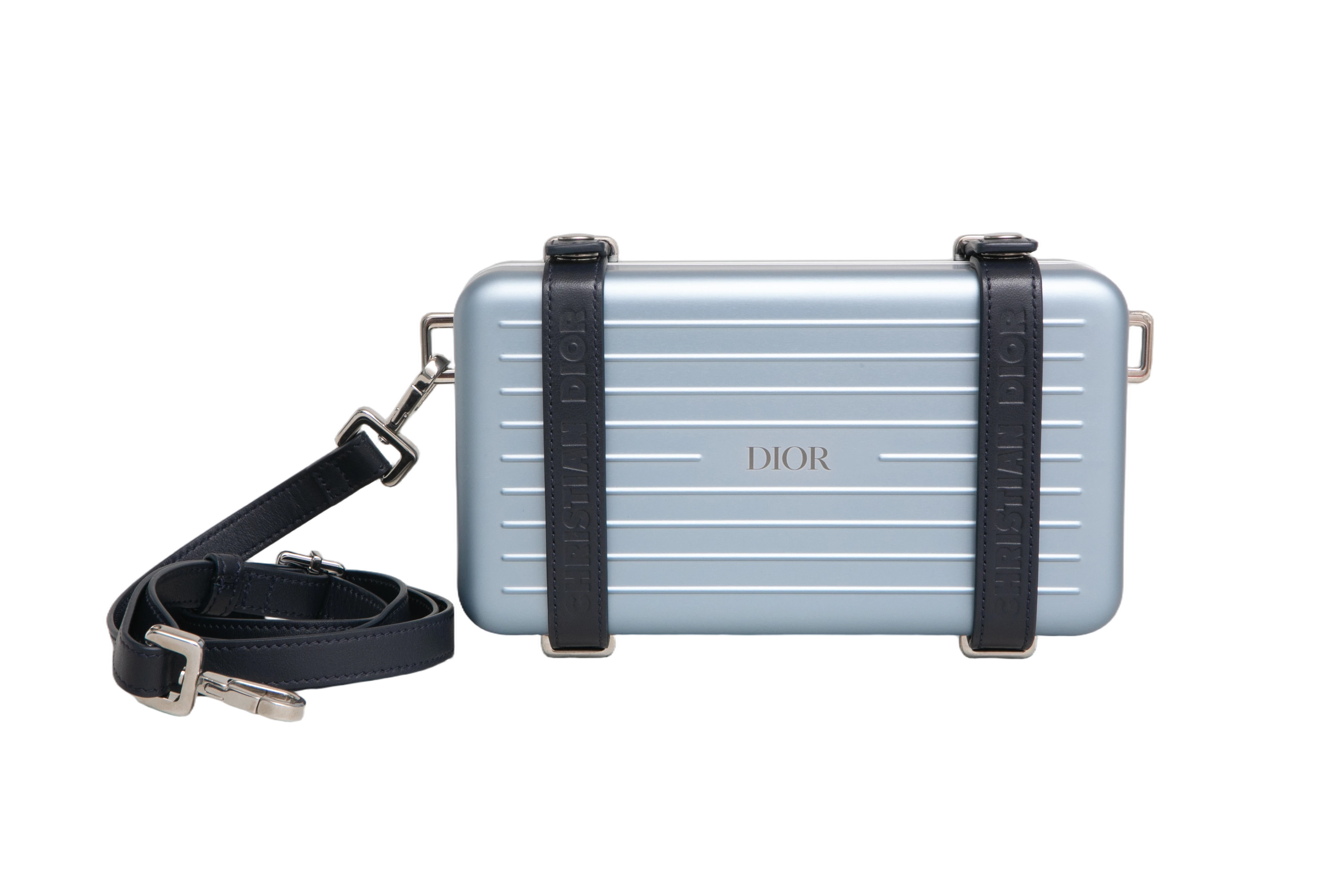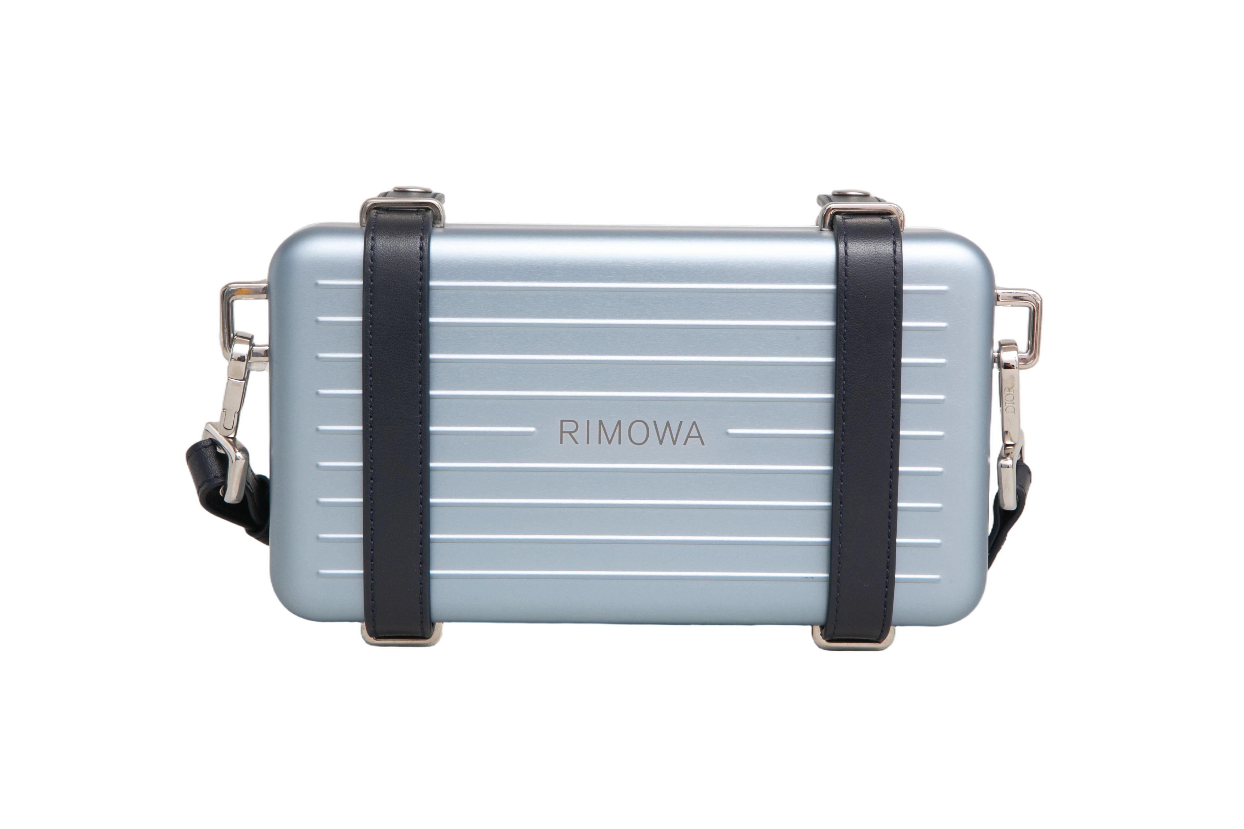 Dior x Rimowa Aluminum Pesonal Clutch on Strap Bleu. Peça como nova, sem uso porém sem tag da loja.