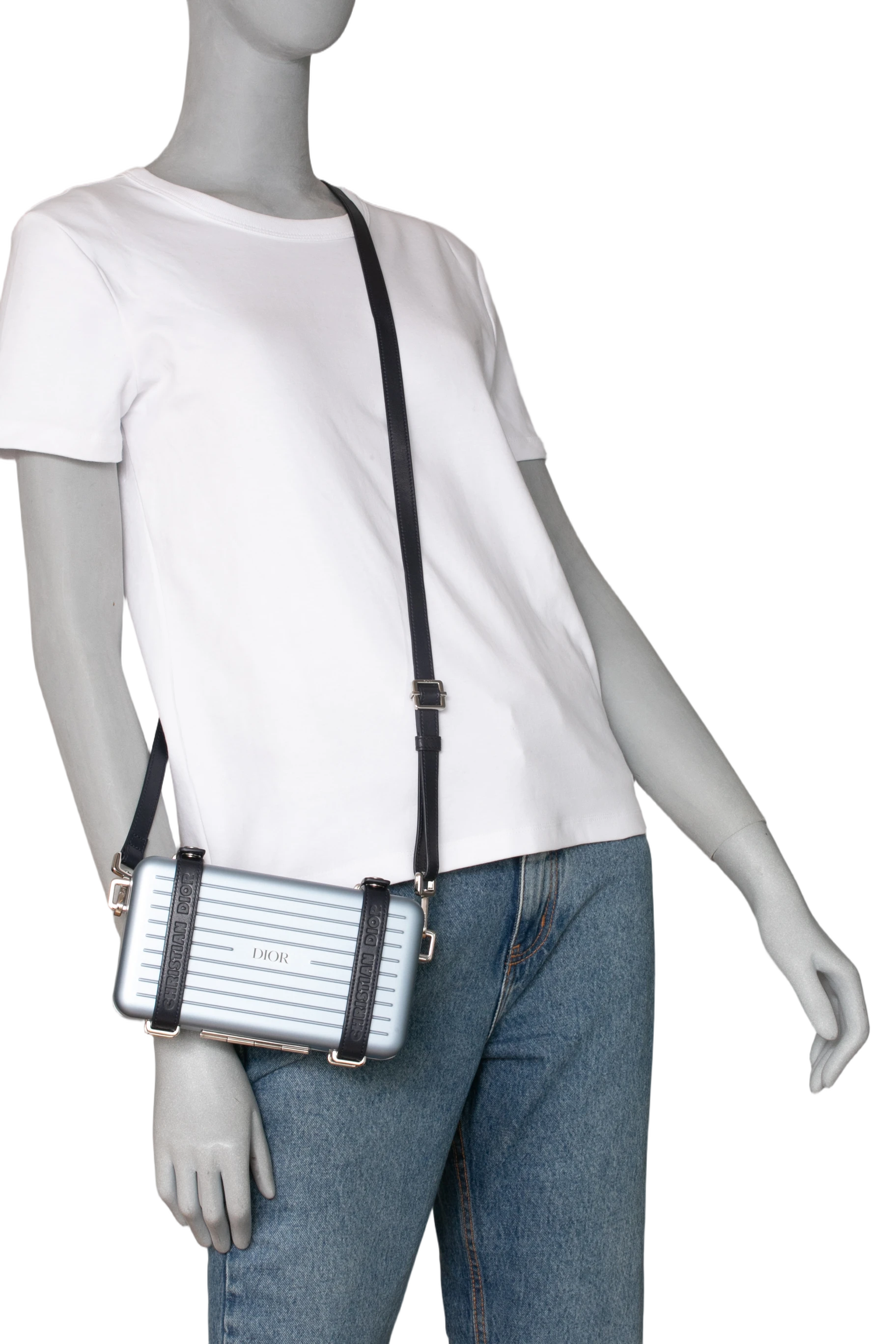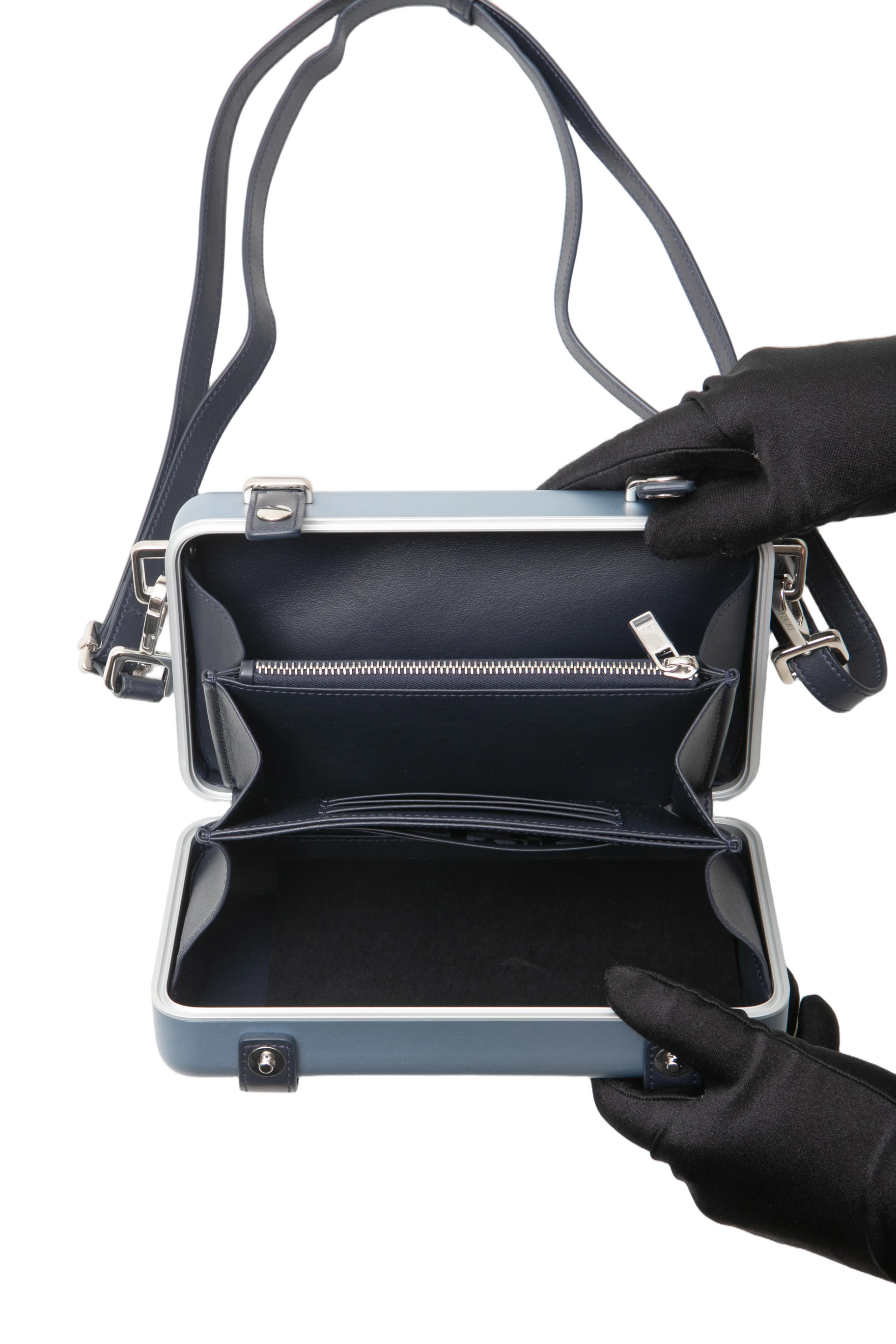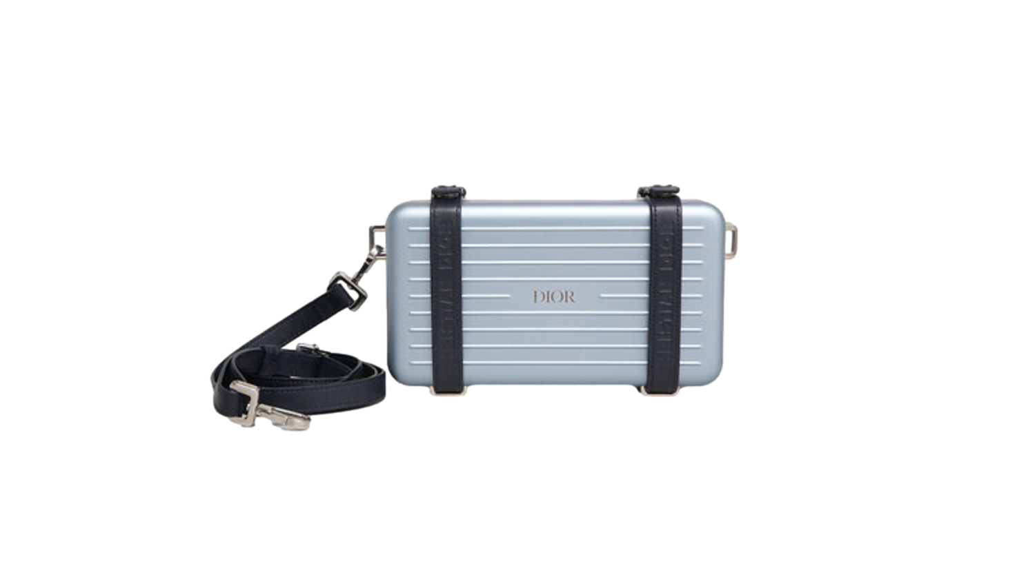 Dior x Rimowa Aluminum Pesonal Clutch on Strap Bleu. Peça como nova, sem uso porém sem tag da loja.