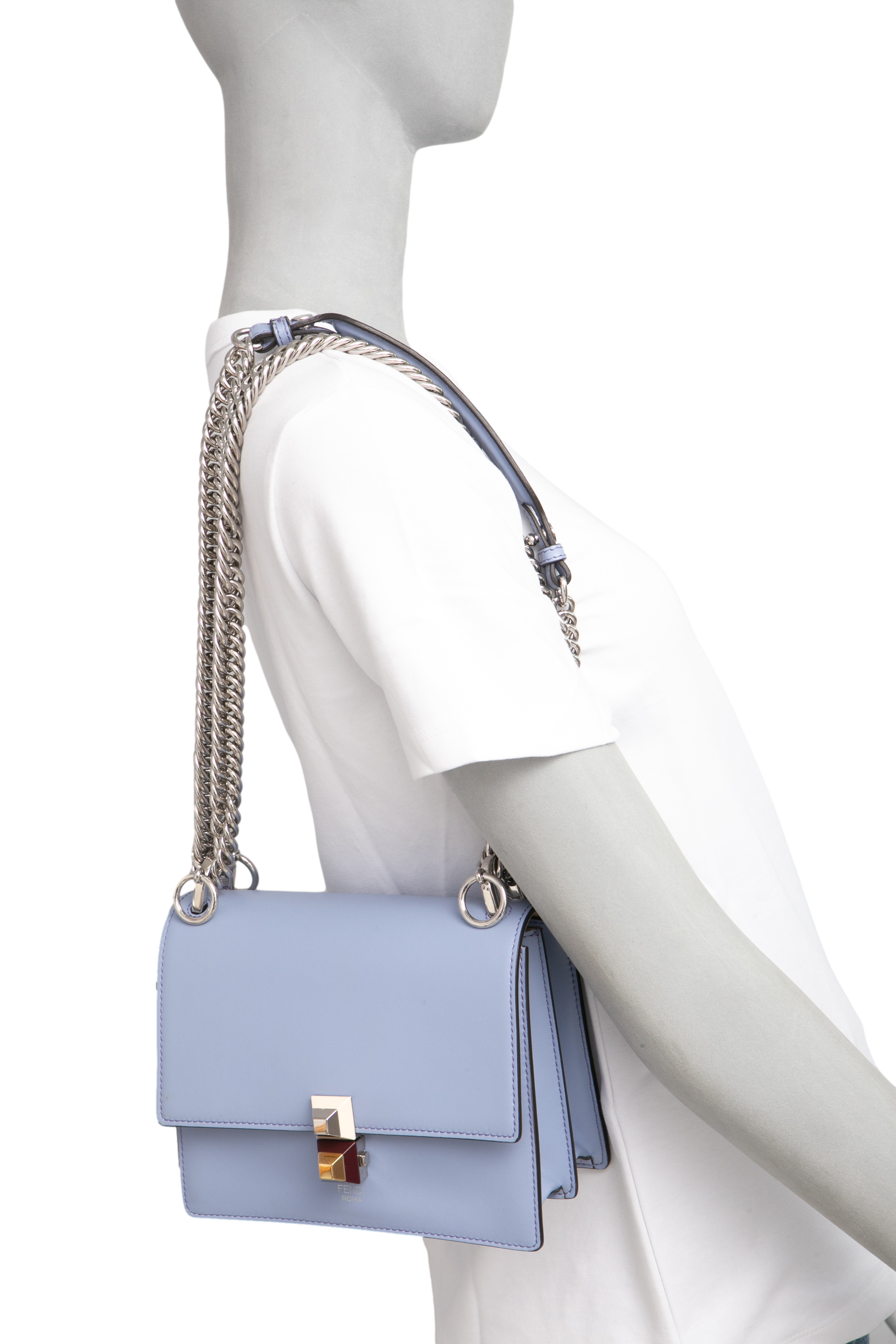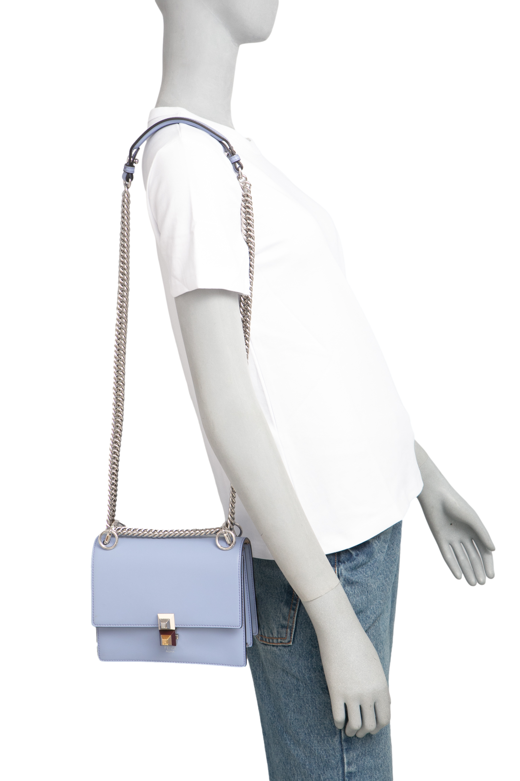 Fendi Kan I Small Sky. Peça em perfeito estado, possui pequenas manchinhas no couro.