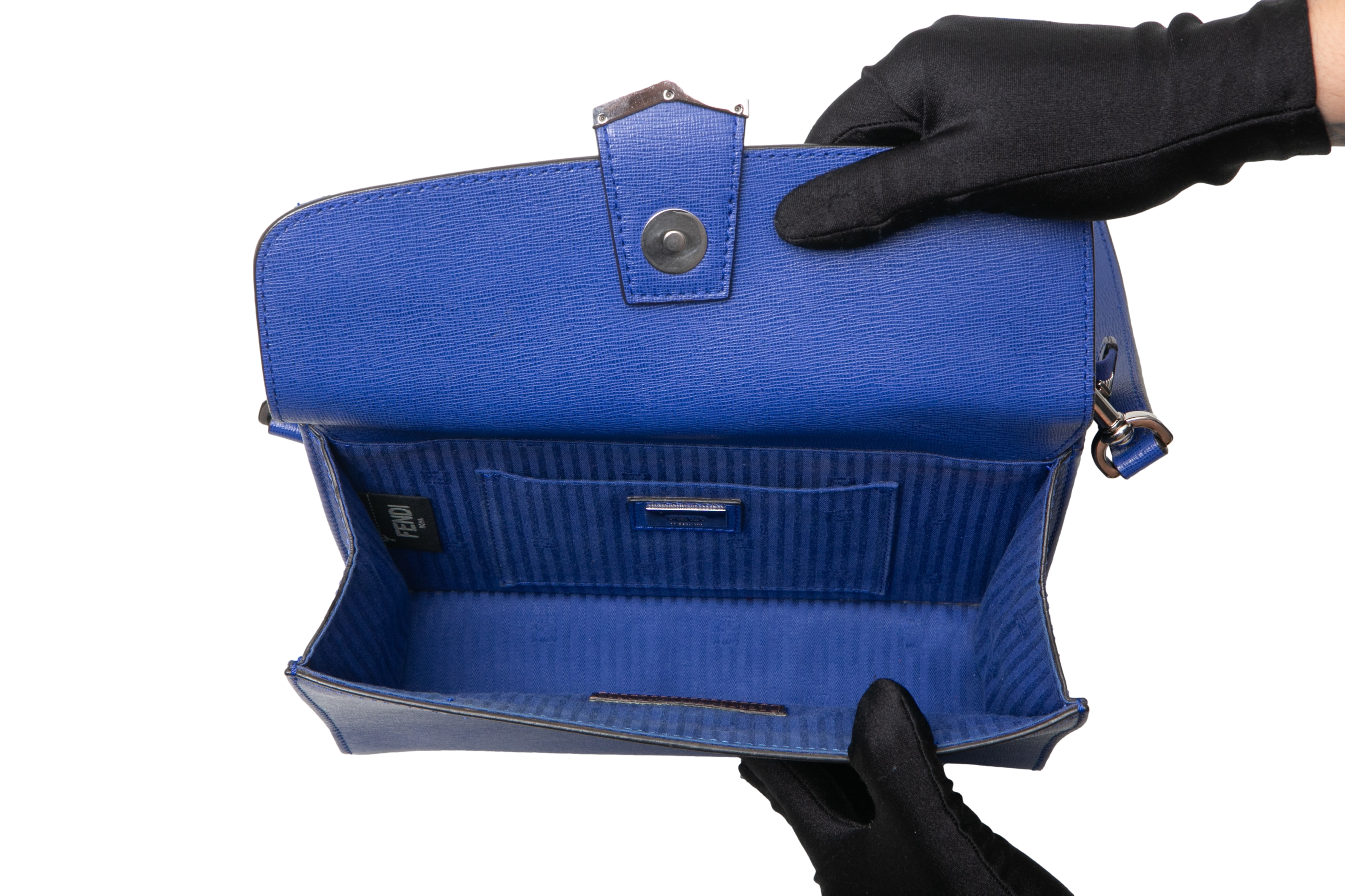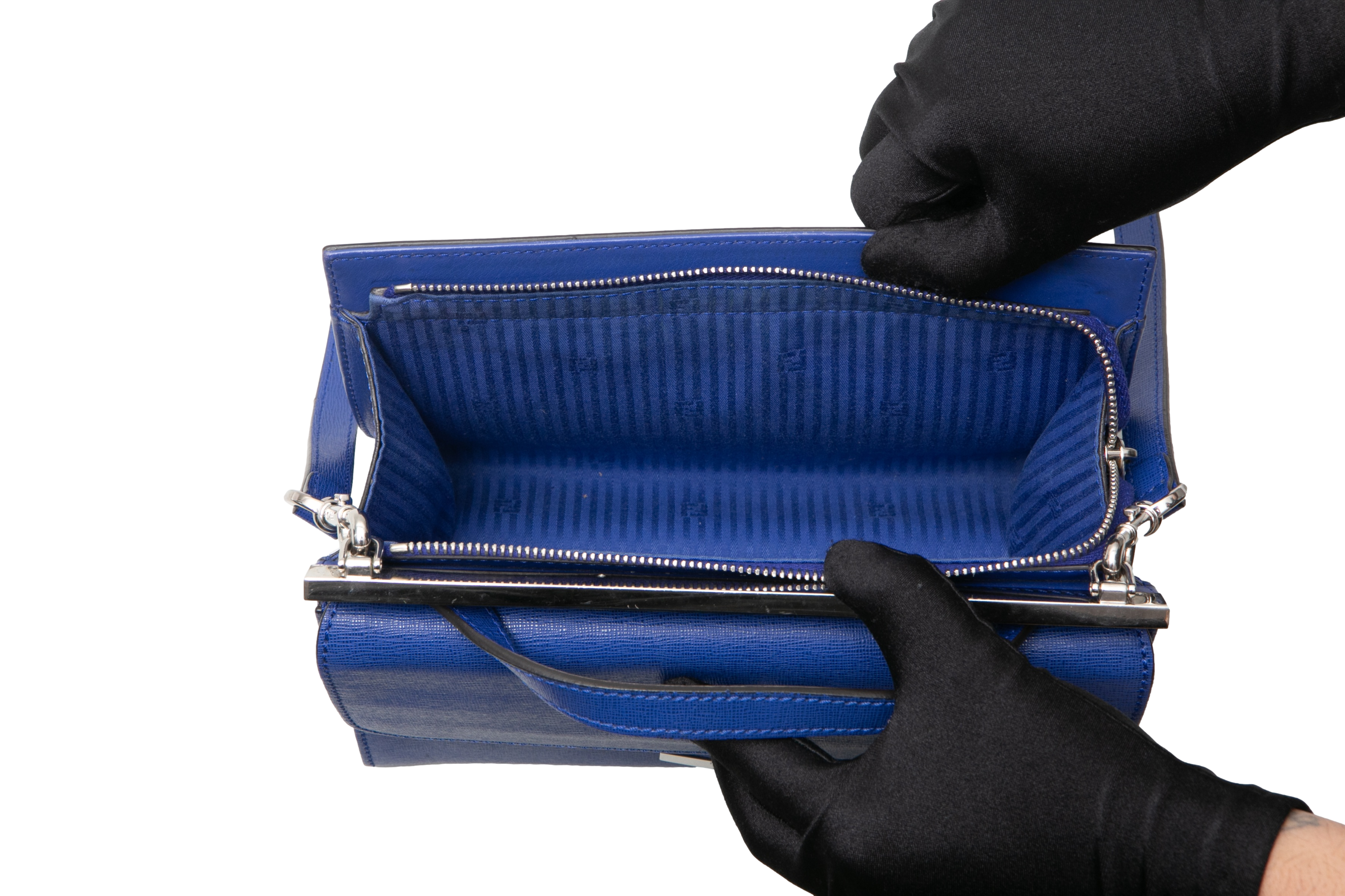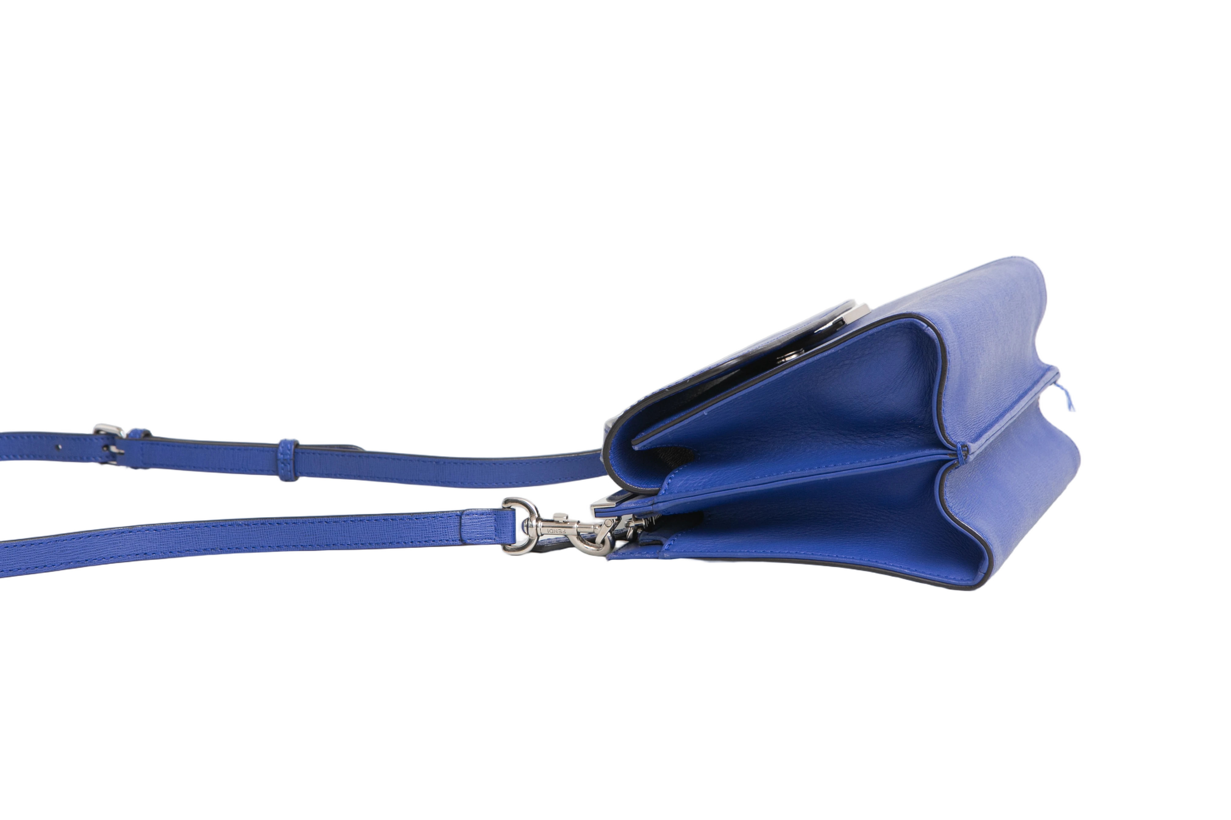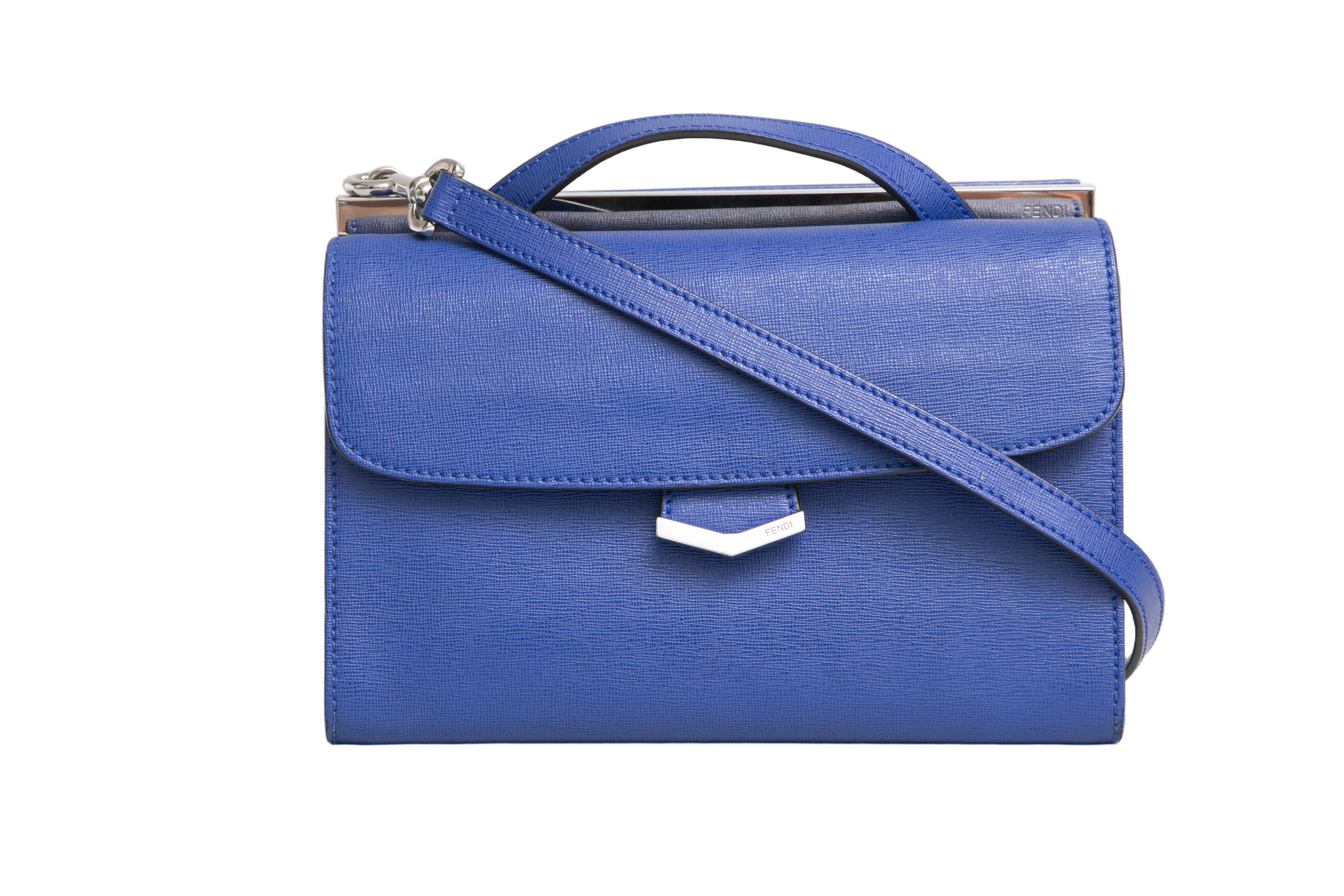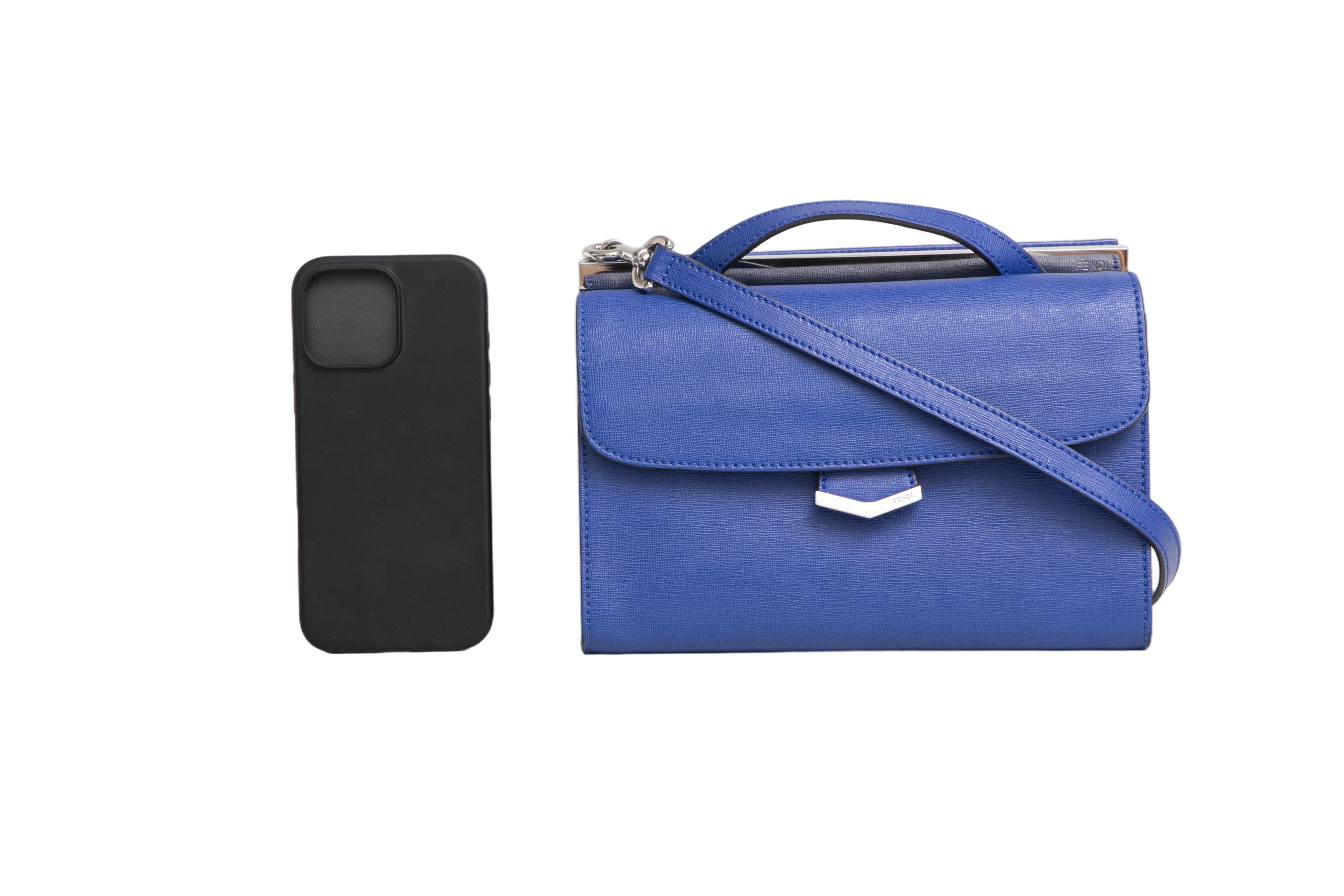 Fendi Mini Demi Jour Blue. Peça em ótimo estado, possui desgastes nas arestas e scratches nas ferragens. Acomoda todos os tamanhos de telefone.