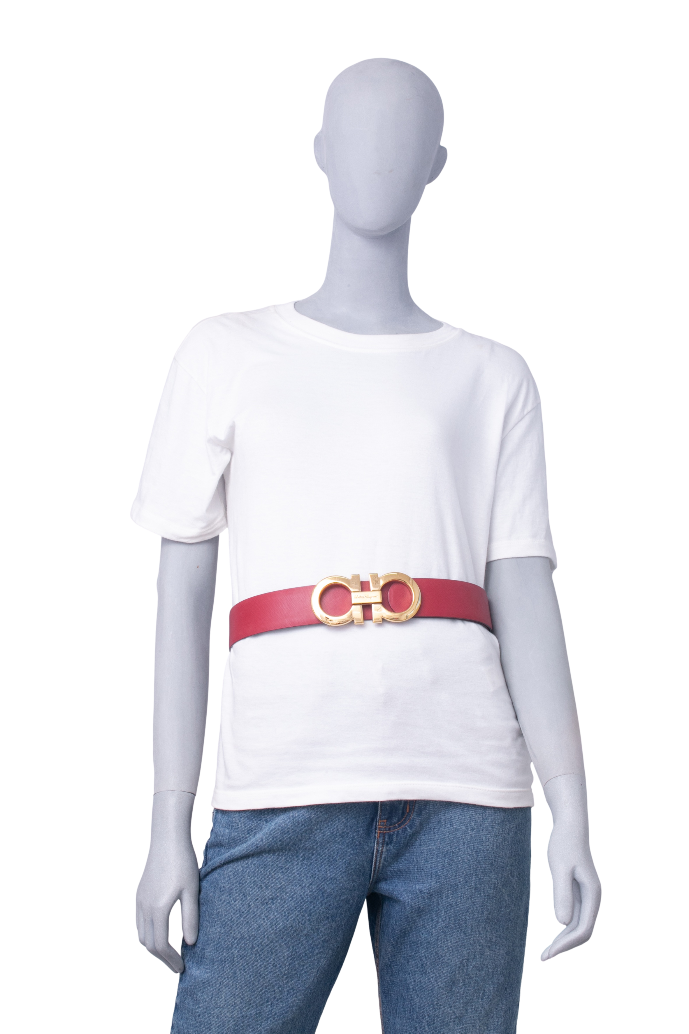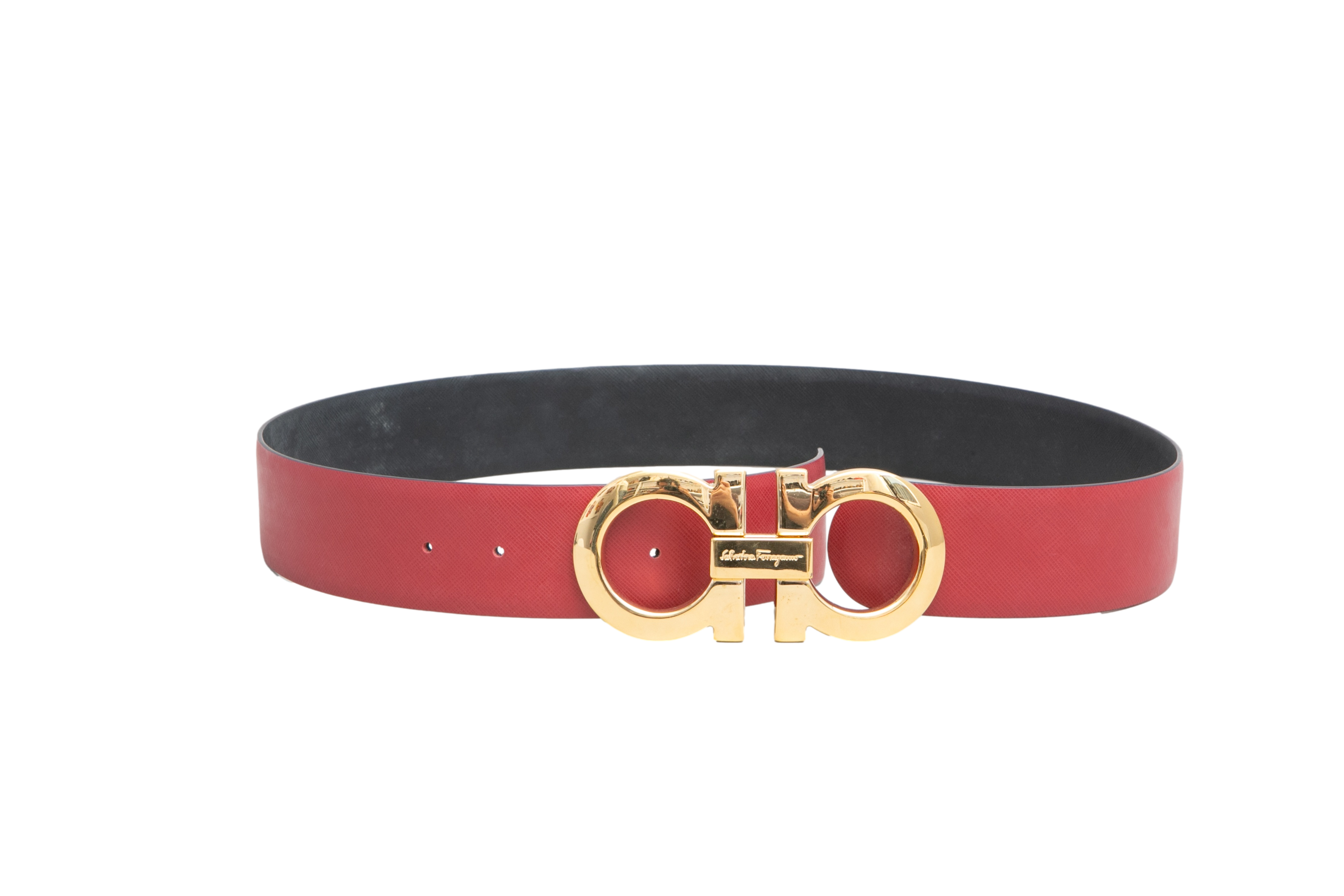 Ferragamo Cinto Gancini Reversible Black & Red. Peça em ótimo estado, pequenos sinais de uso no couro e fivela.