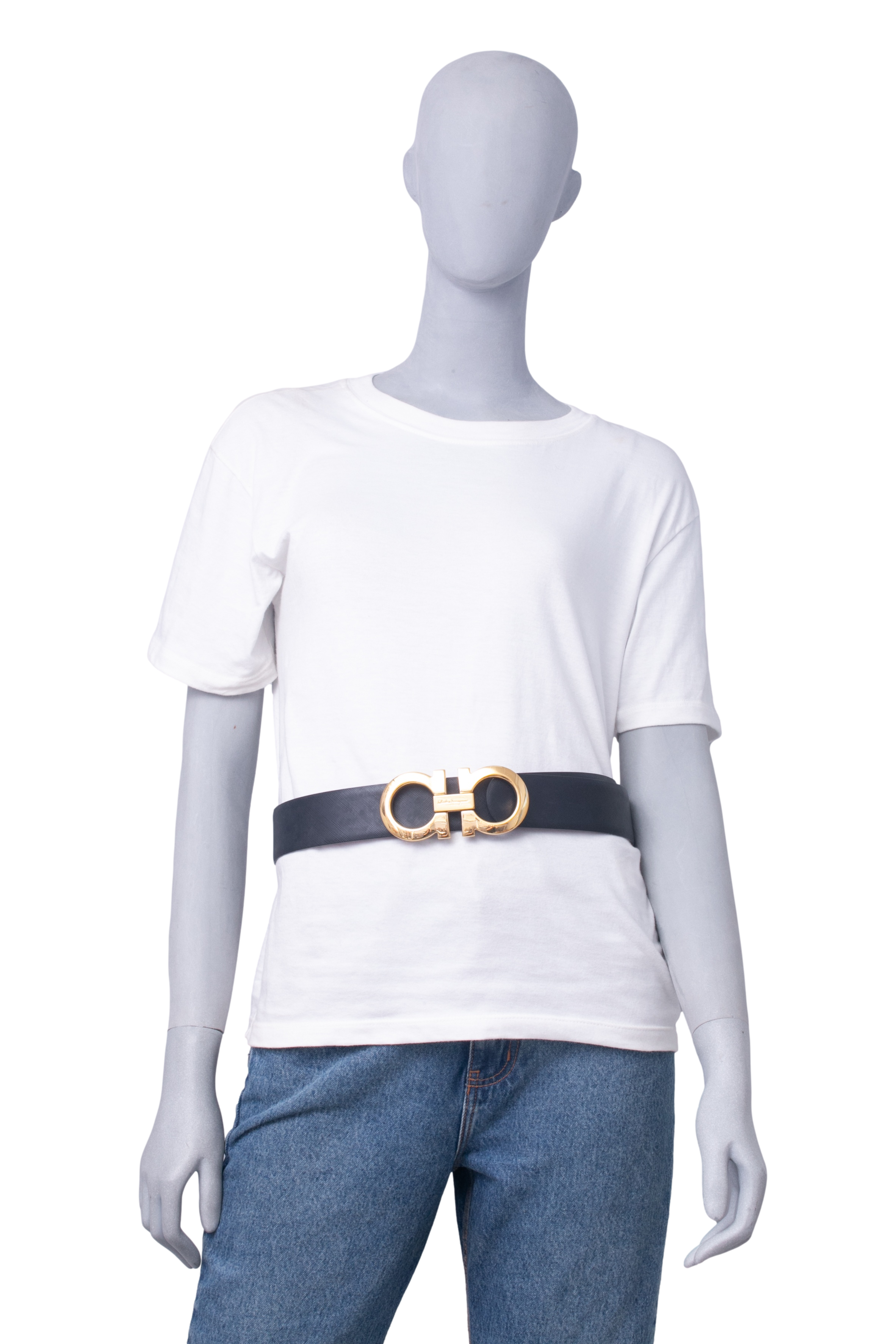 O grande destaque fica por conta da icônica fivela Gancini em metal dourado polido, que confere um toque luxuoso e marcante à peça. No centro da fivela, o logotipo da marca está discretamente gravado, reforçando sua autenticidade e exclusividade. Ideal para compor tanto looks formais quanto casuais com um toque de requinte, este cinto é o acessório perfeito para quem busca estilo, funcionalidade e sofisticação em um único item.