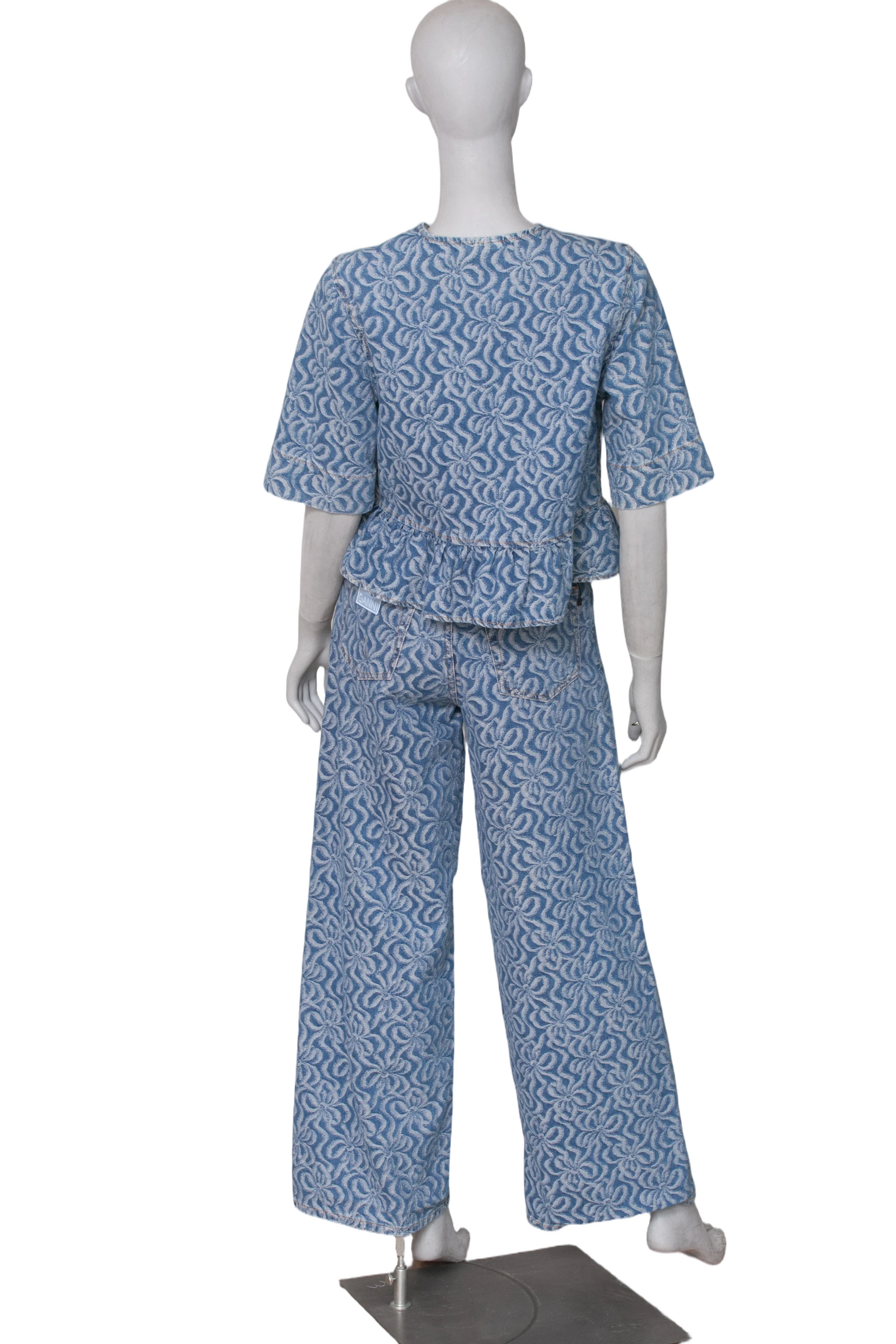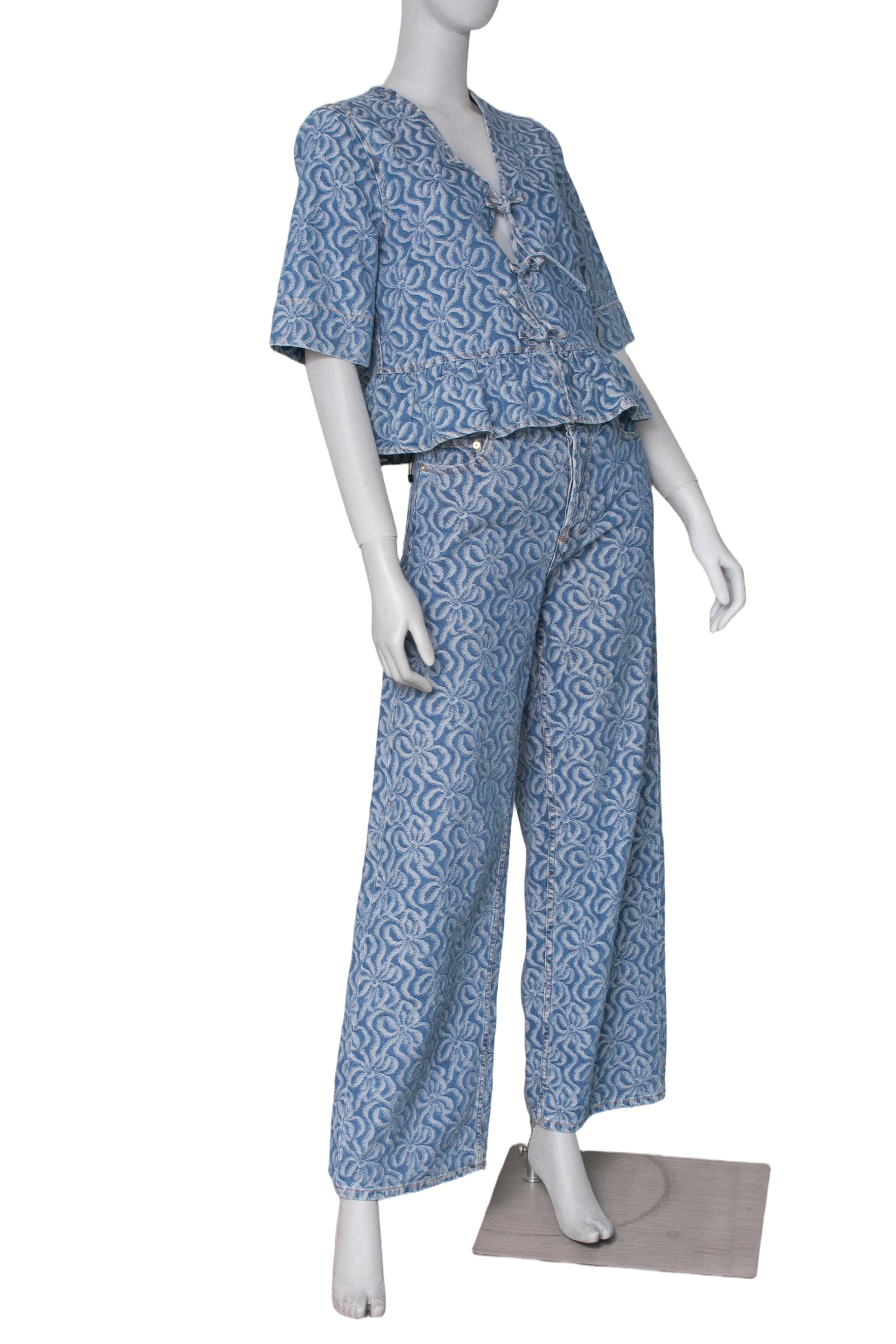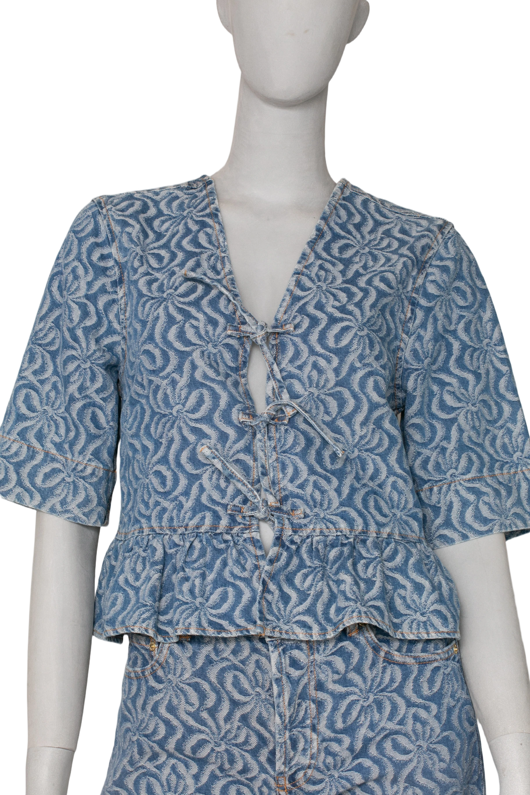 Ganni Twin Set Denim Flounge Tie Jacquar. Peça em perfeito estado, poucos sinais de uso.