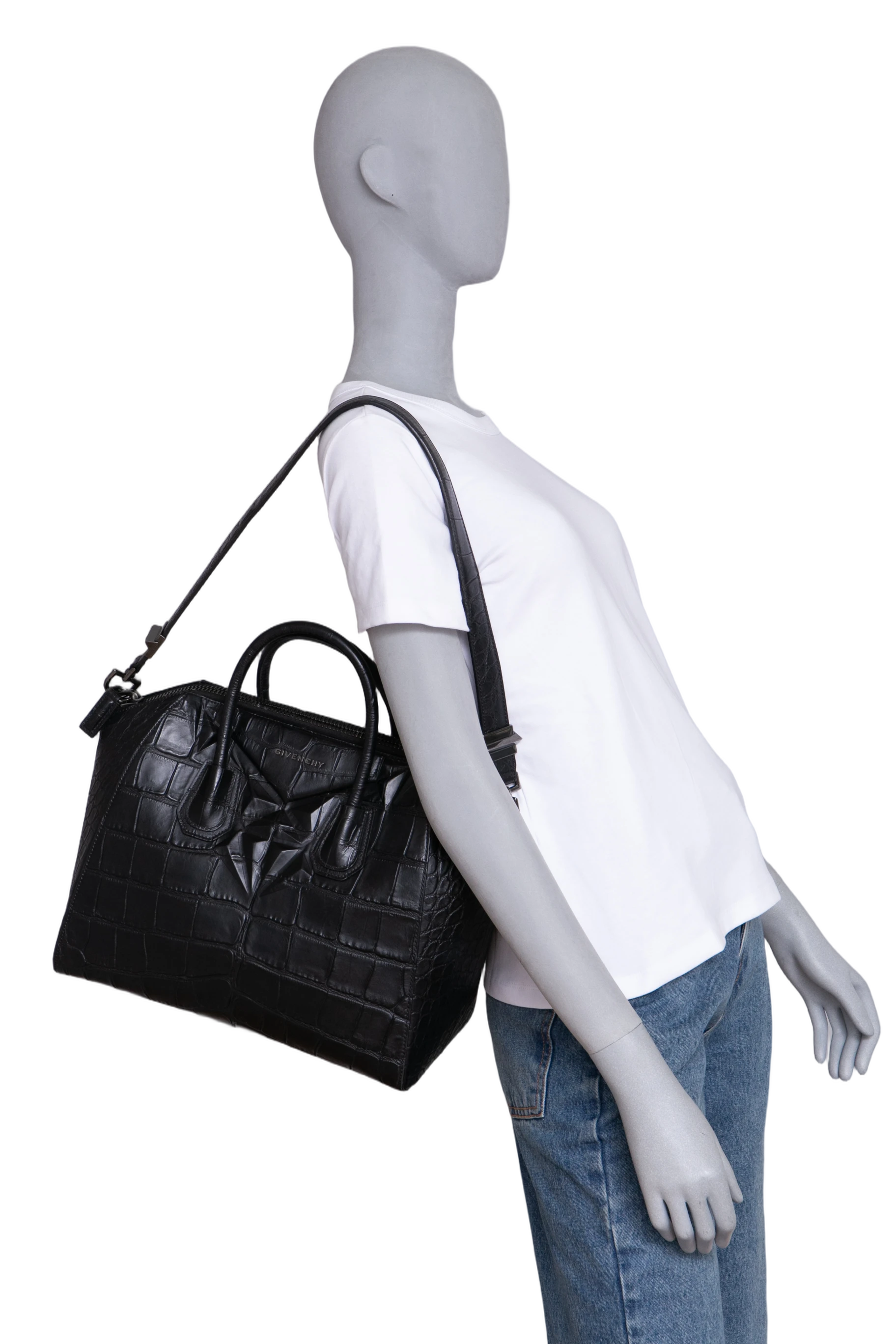 Givenchy Antigona Medium Croc Embossed Satchel Black. Peça em perfeito estado, possui pequenos scratches nas ferragens. Acomoda todos os tamanhos de telefone.