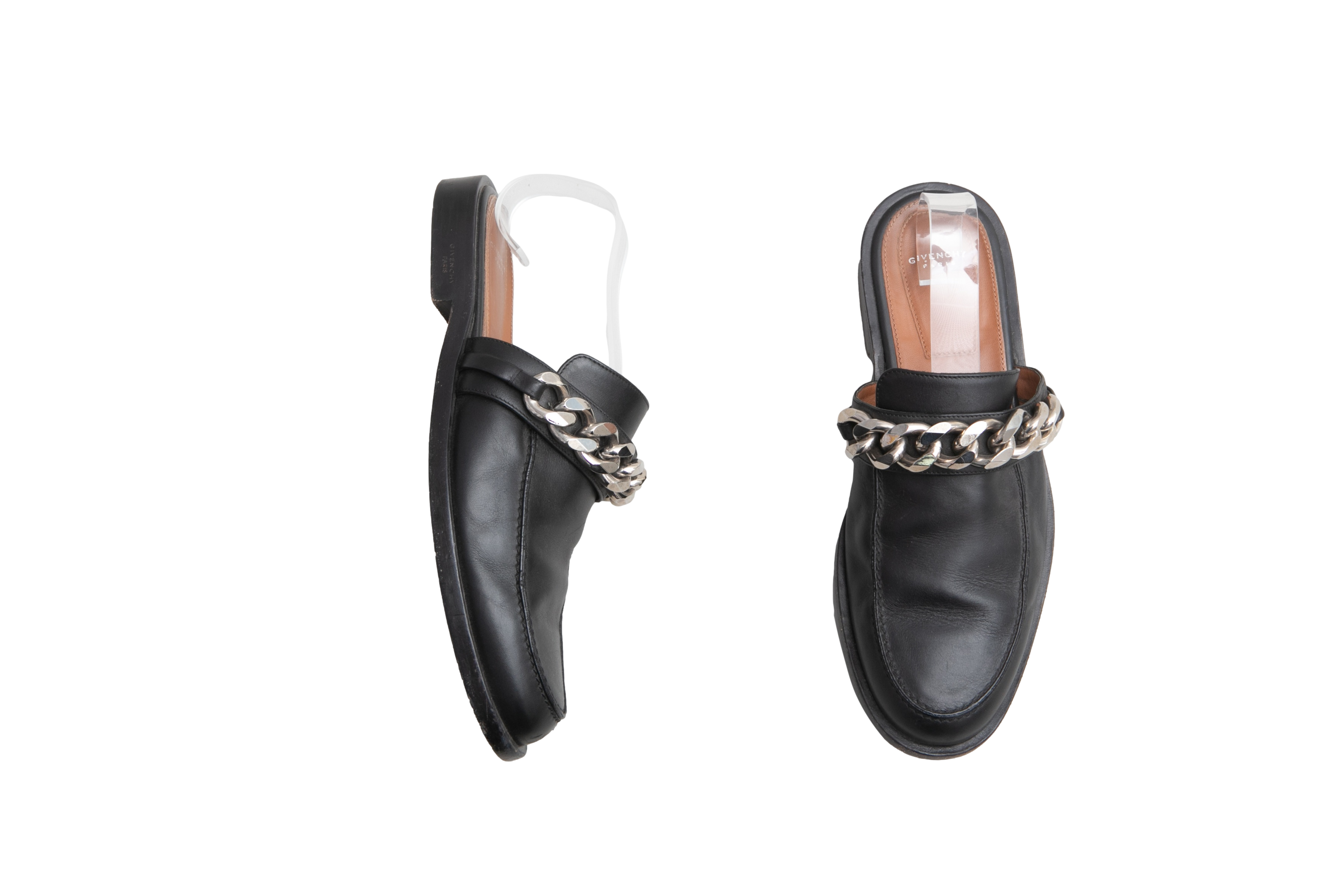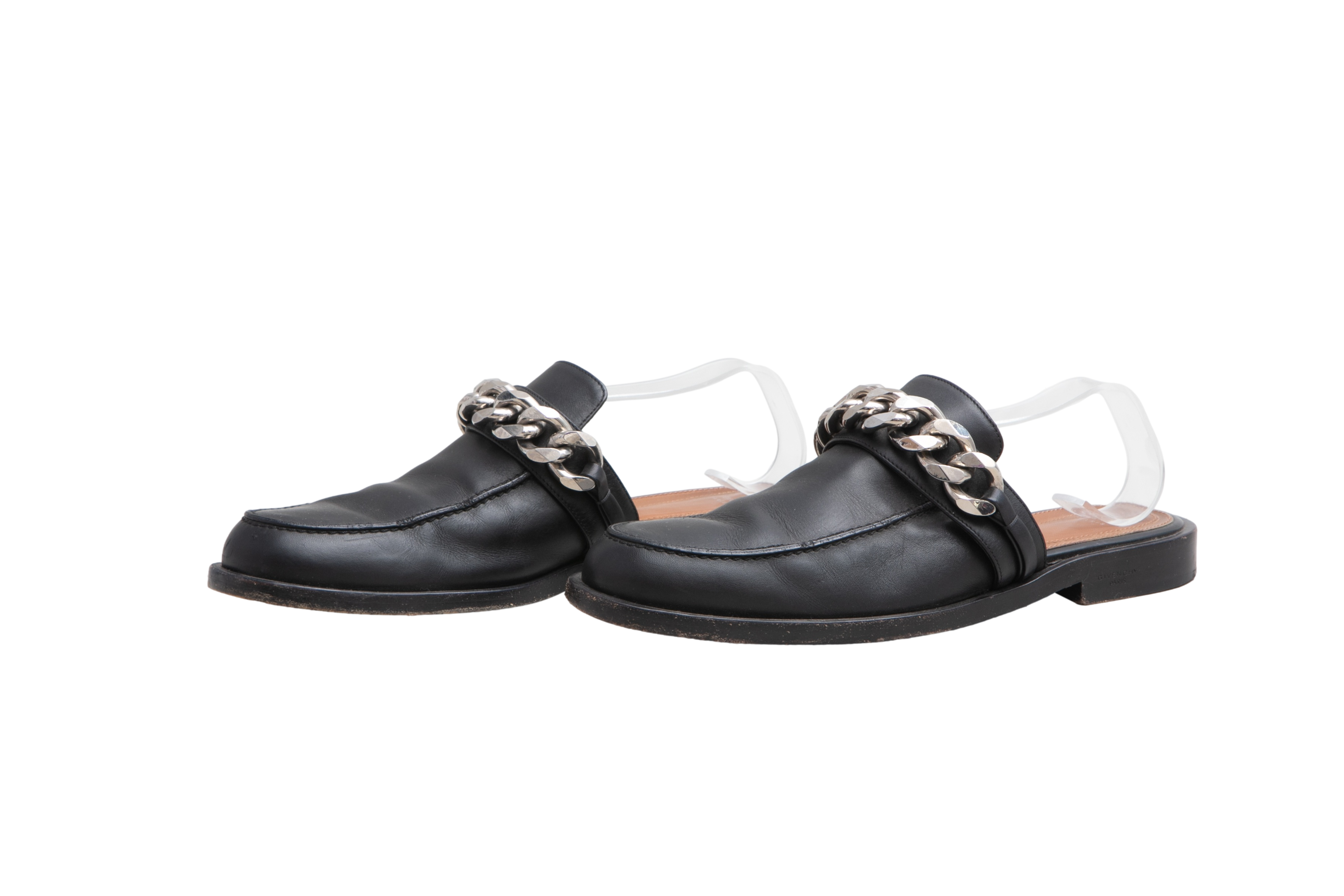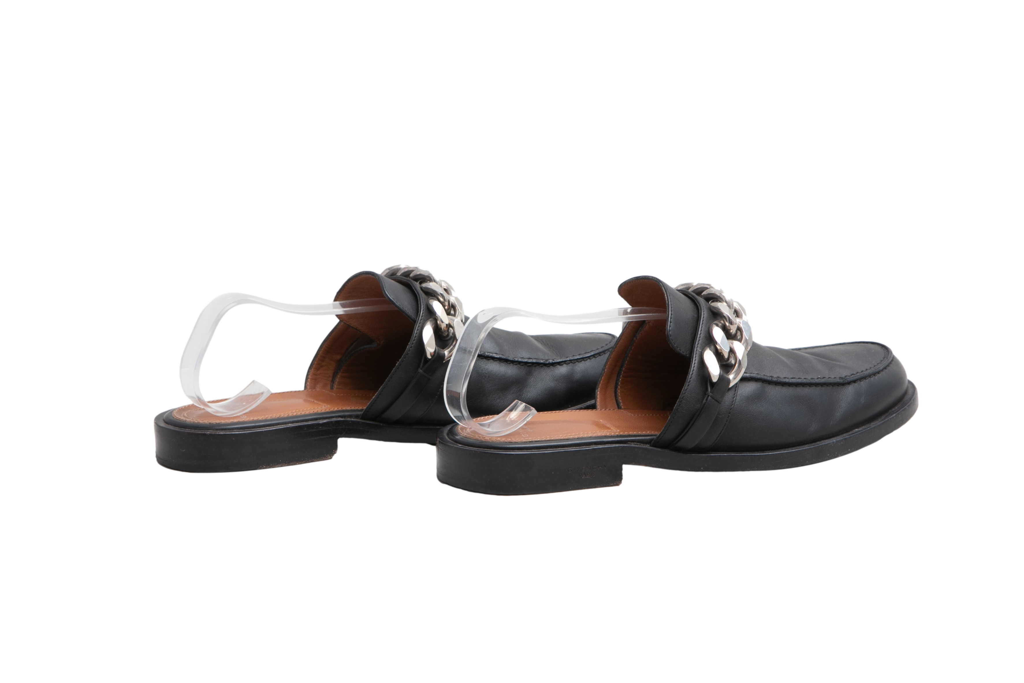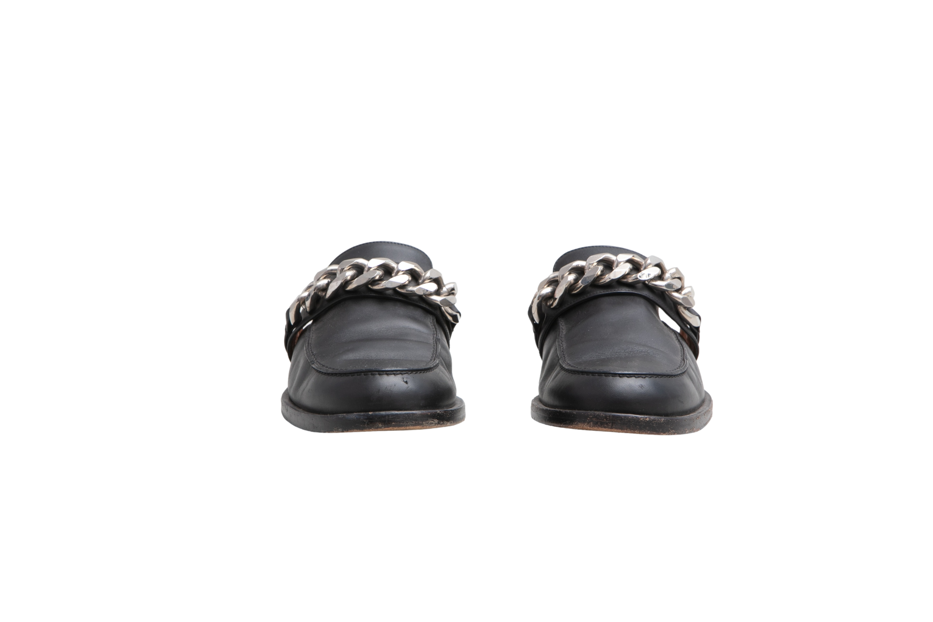 Desapego Thassia Naves Givenchy Mule Flat Leather Black And Chain Silver Toned. Peça em ótimo estado, possui marcas de uso na sola, couro e laterais.