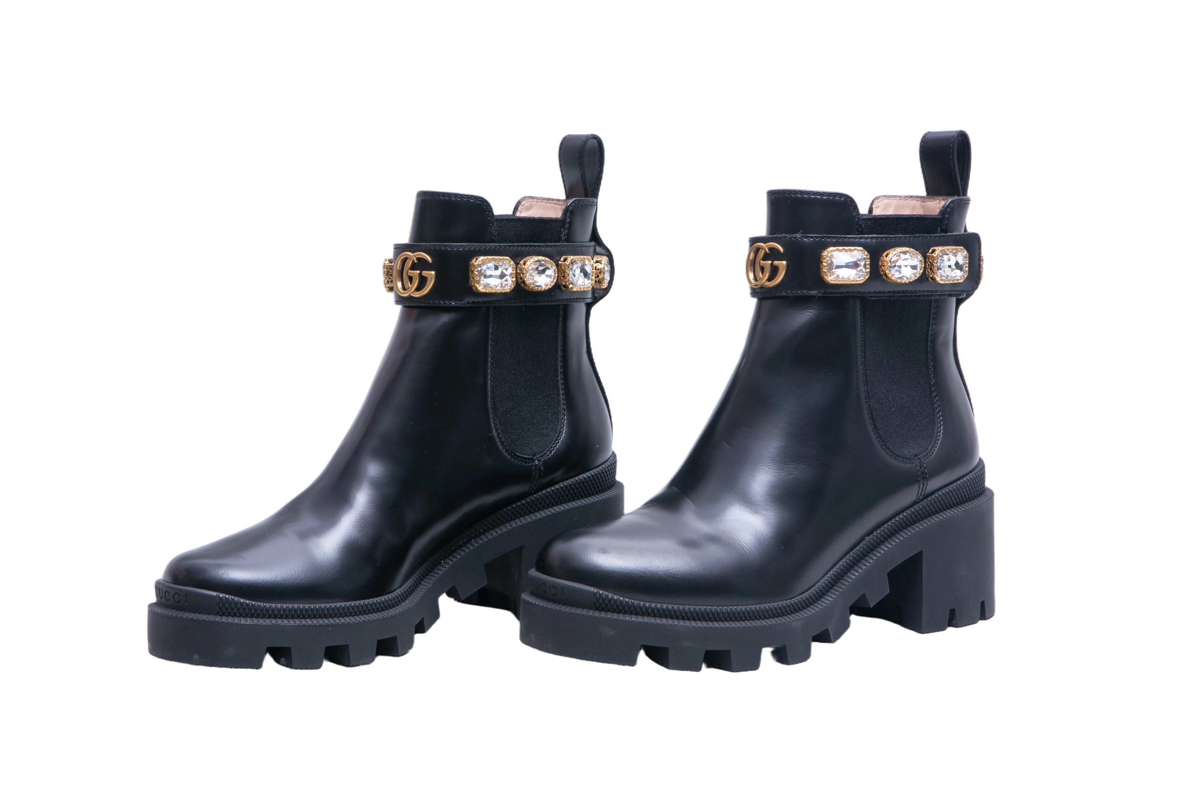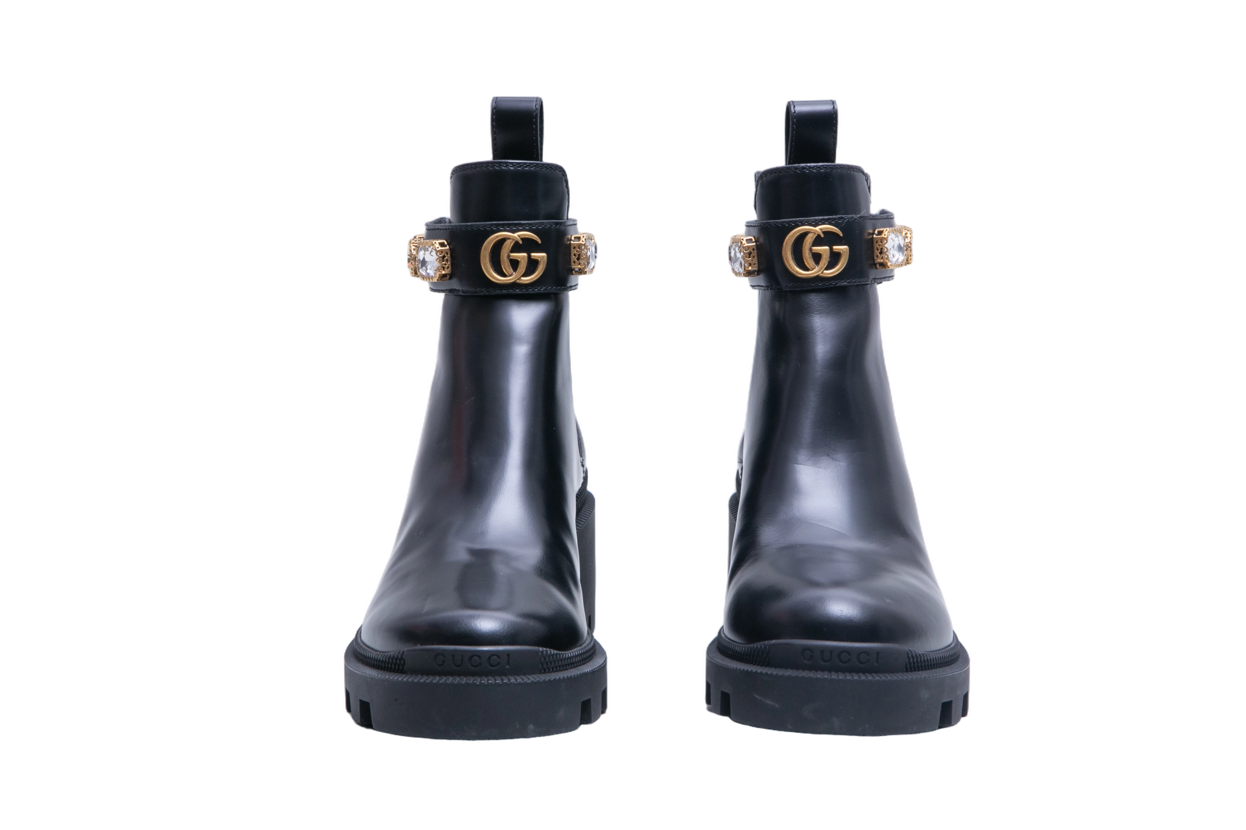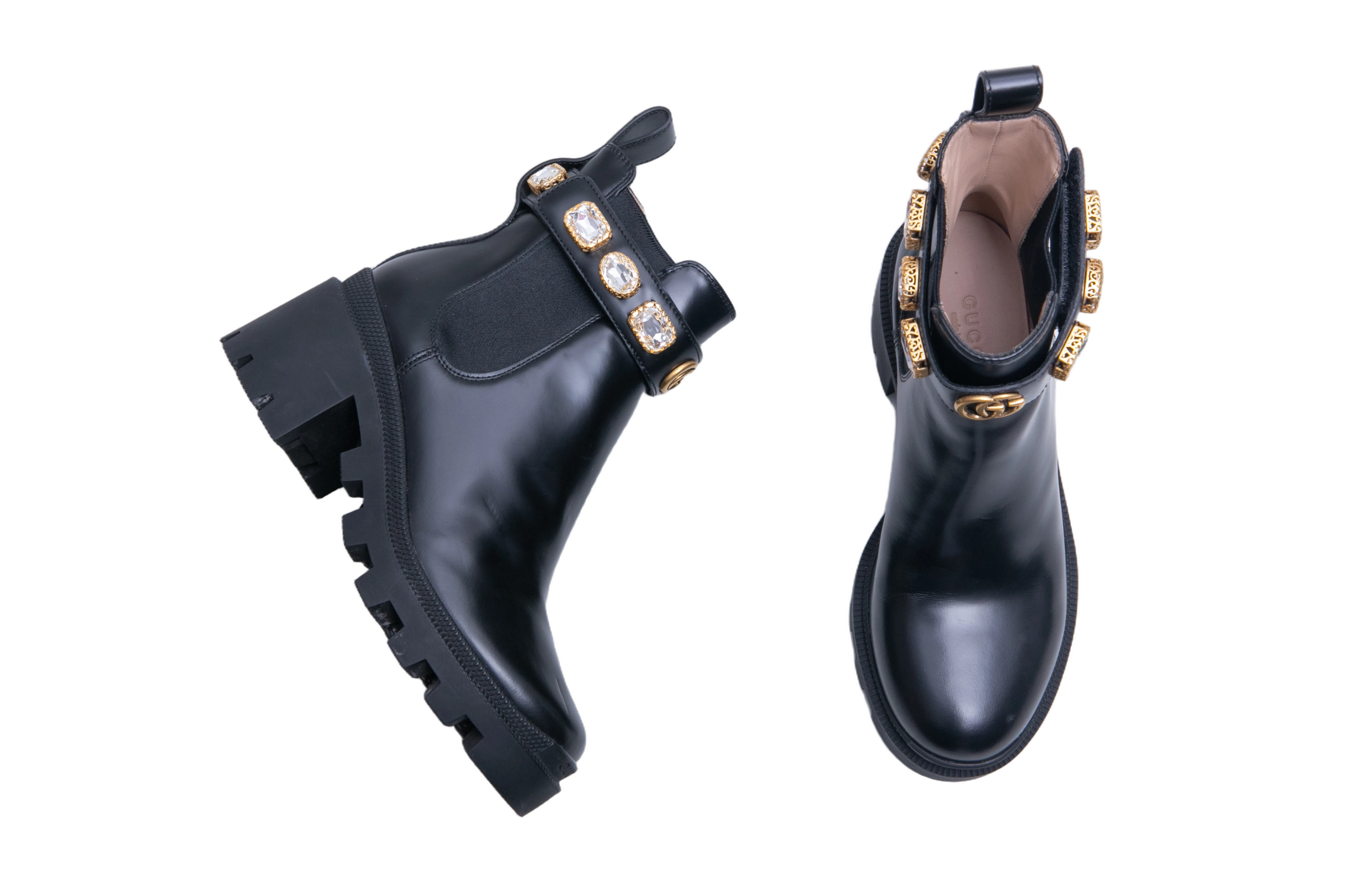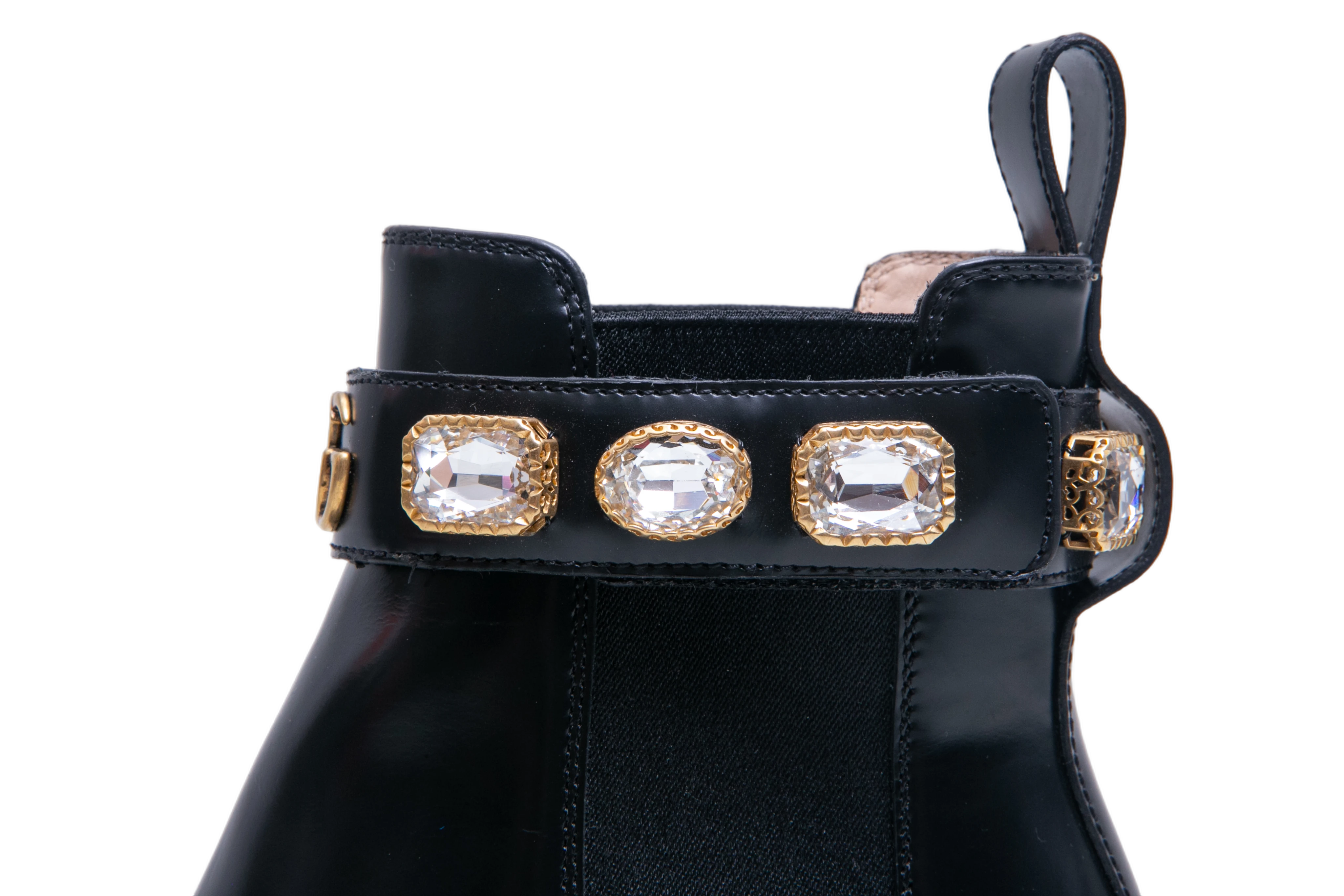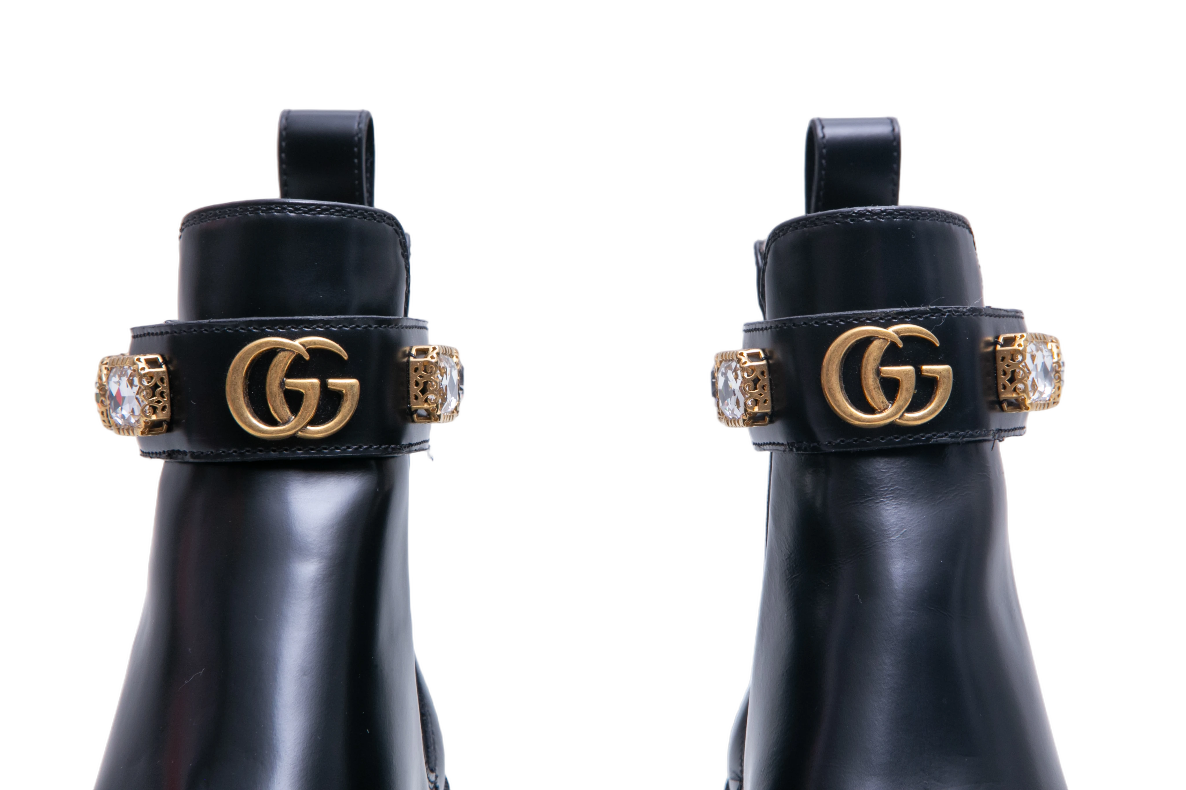 Gucci Ankle Boots Double G Crystal Embellished Black. Peça em perfeito estado, possui pequenos sinais no couro.