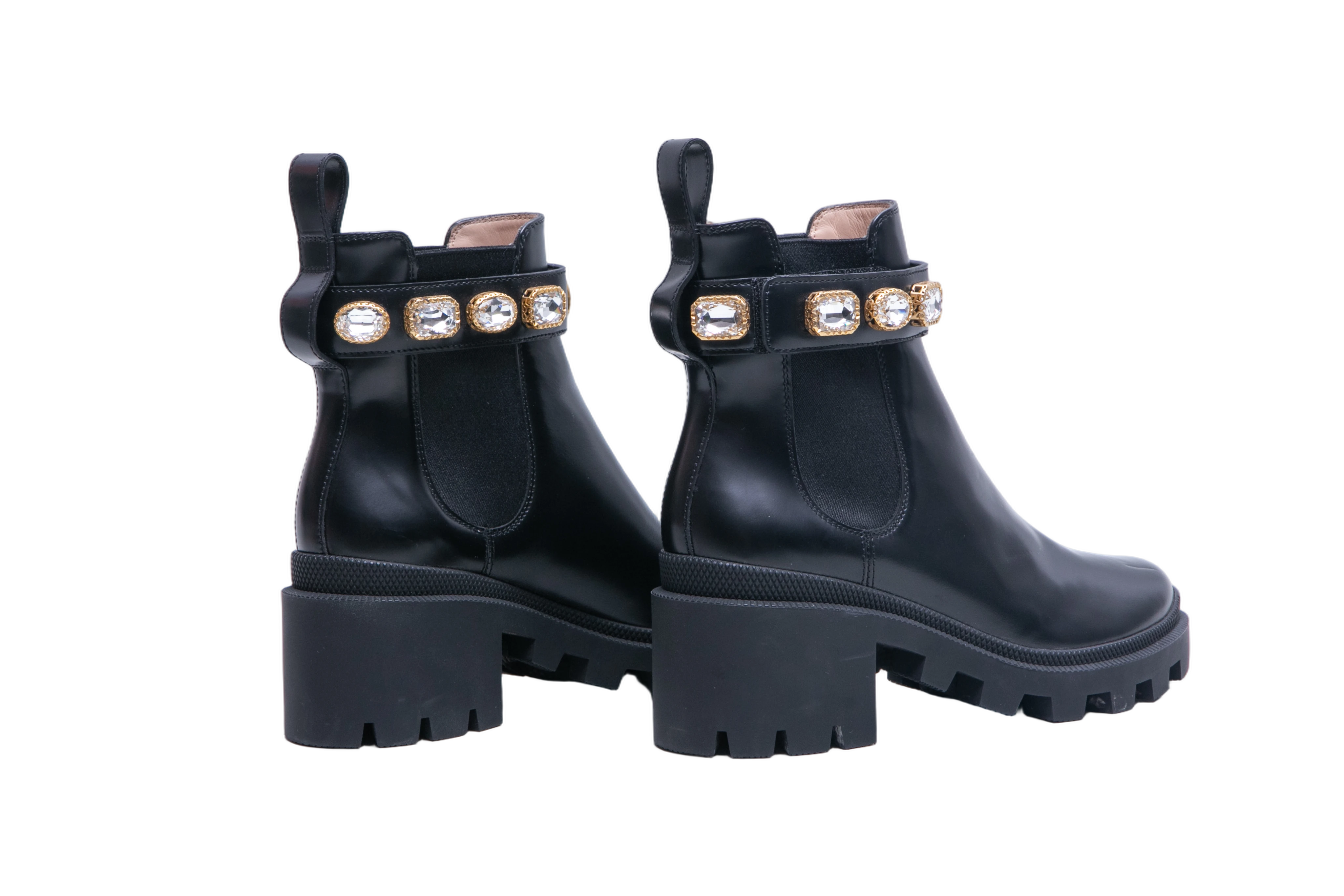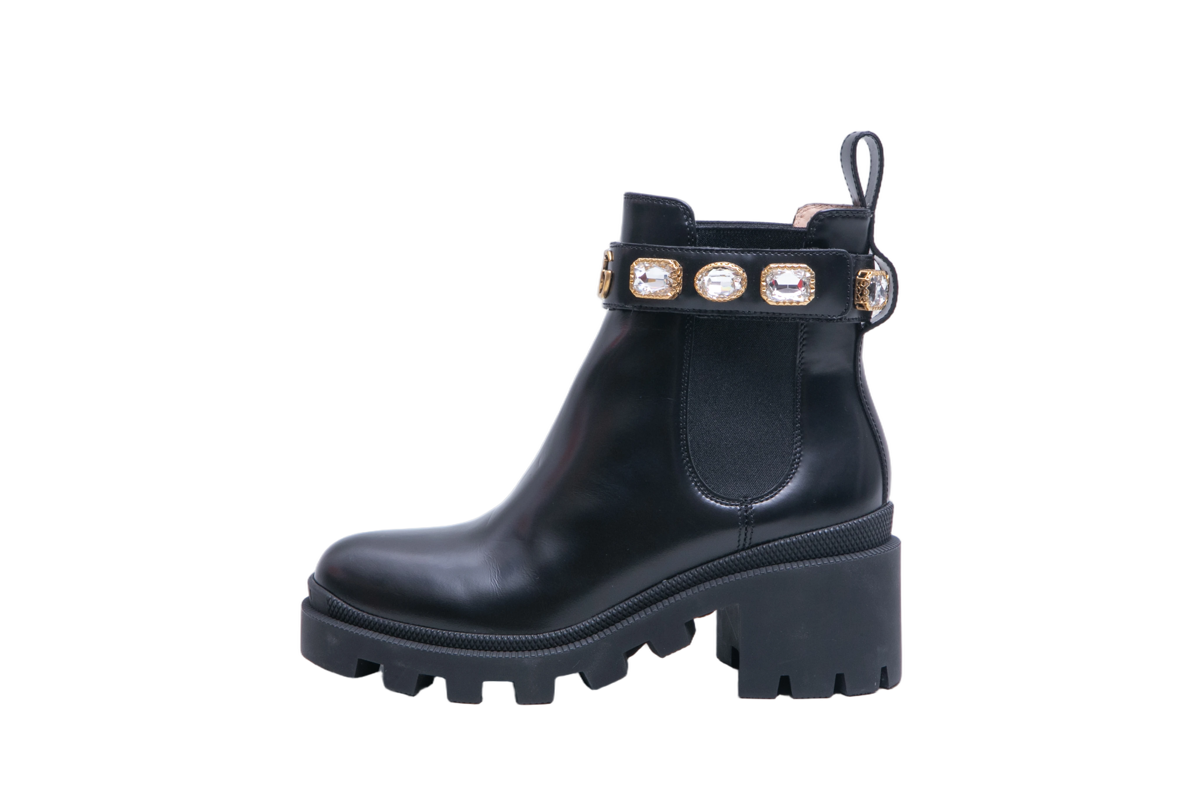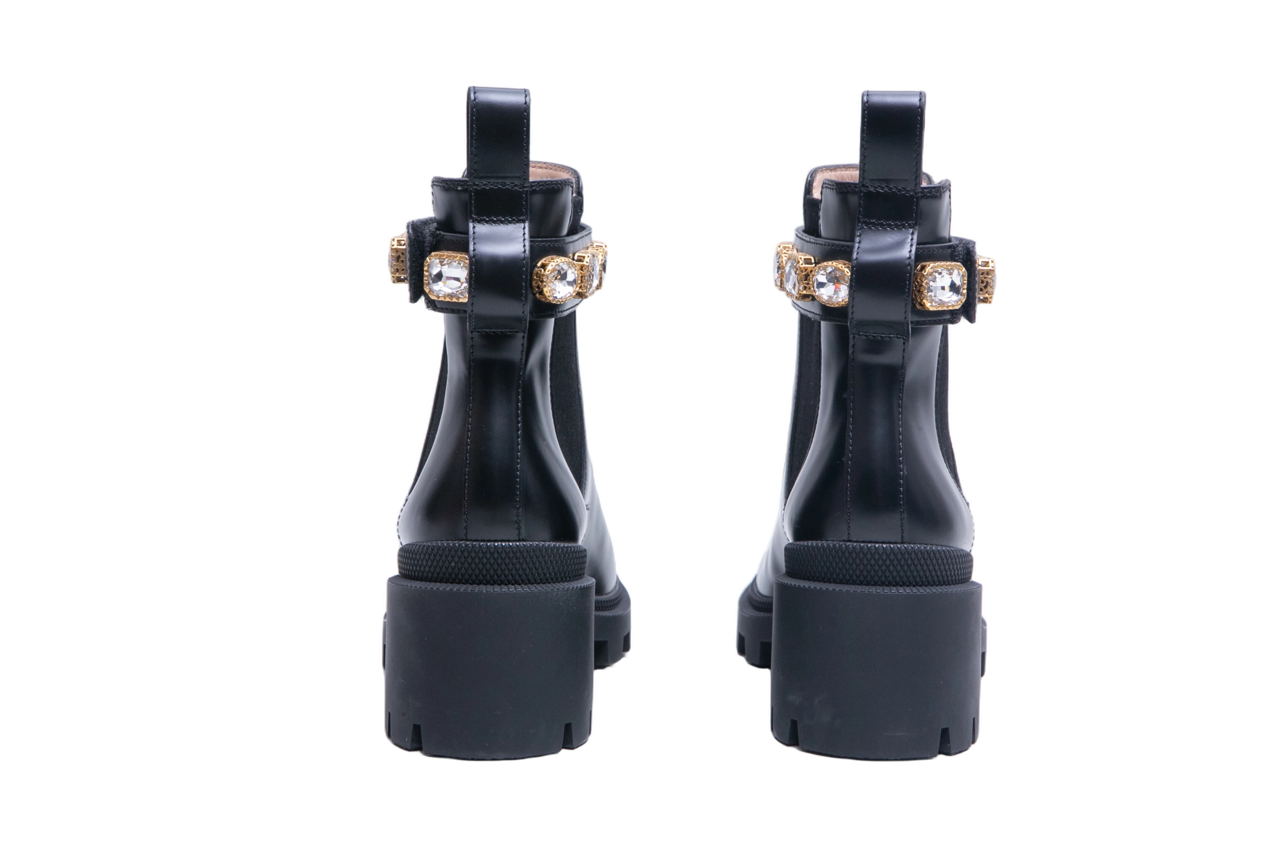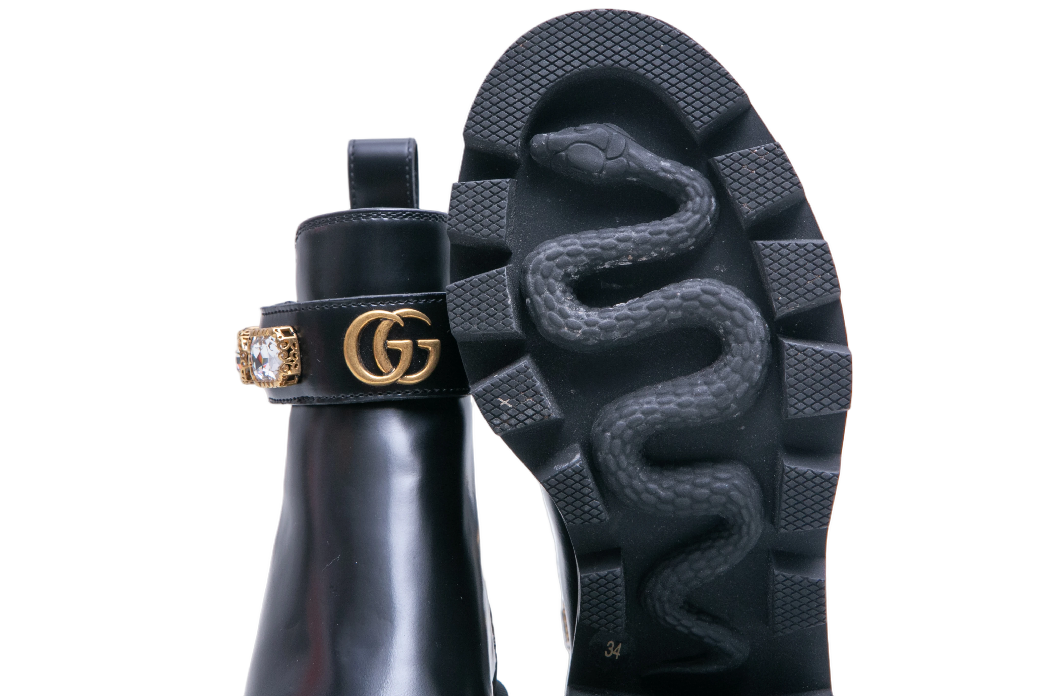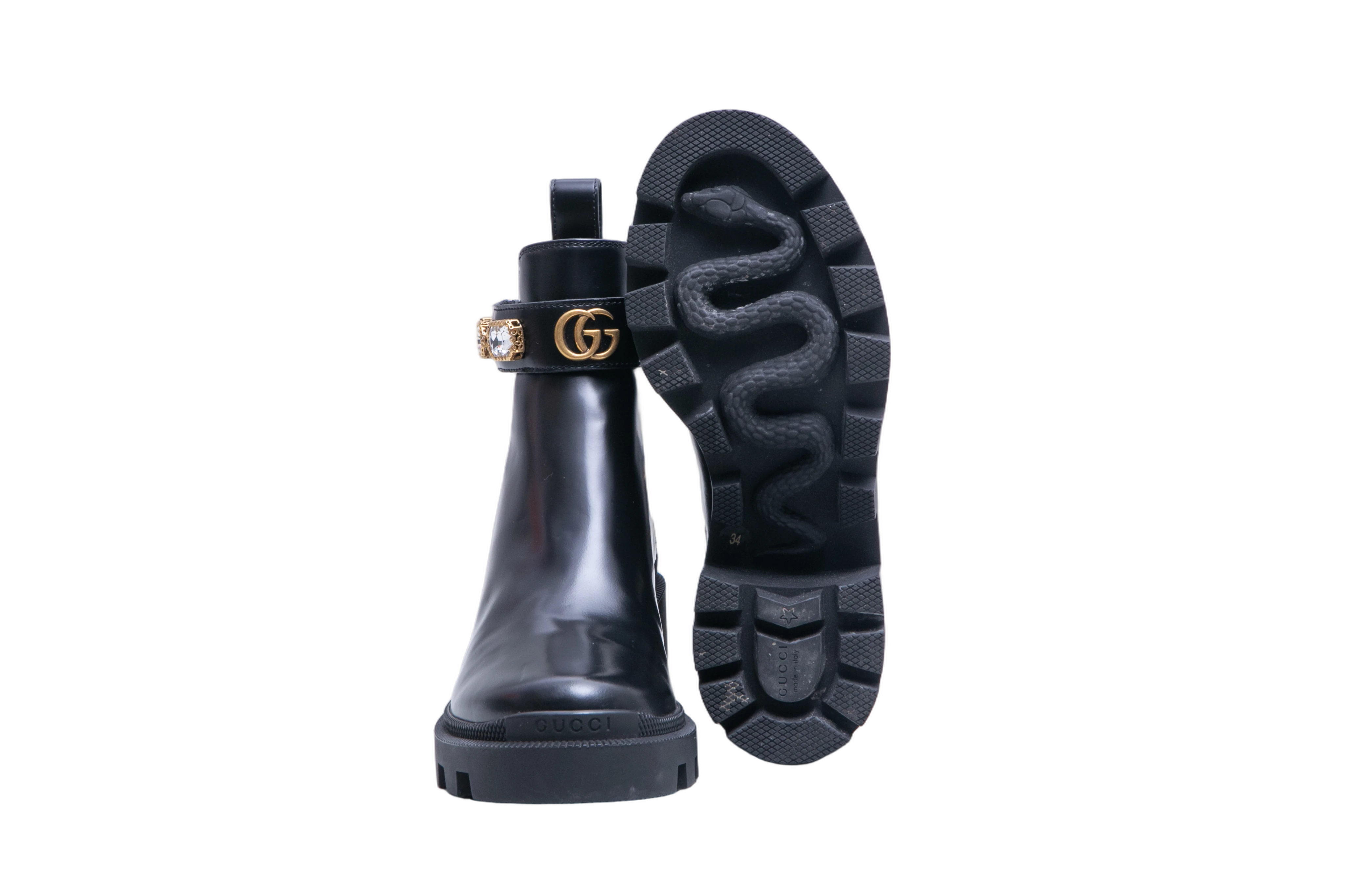 Gucci Ankle Boots Double G Crystal Embellished Black. Peça em perfeito estado, possui pequenos sinais no couro.