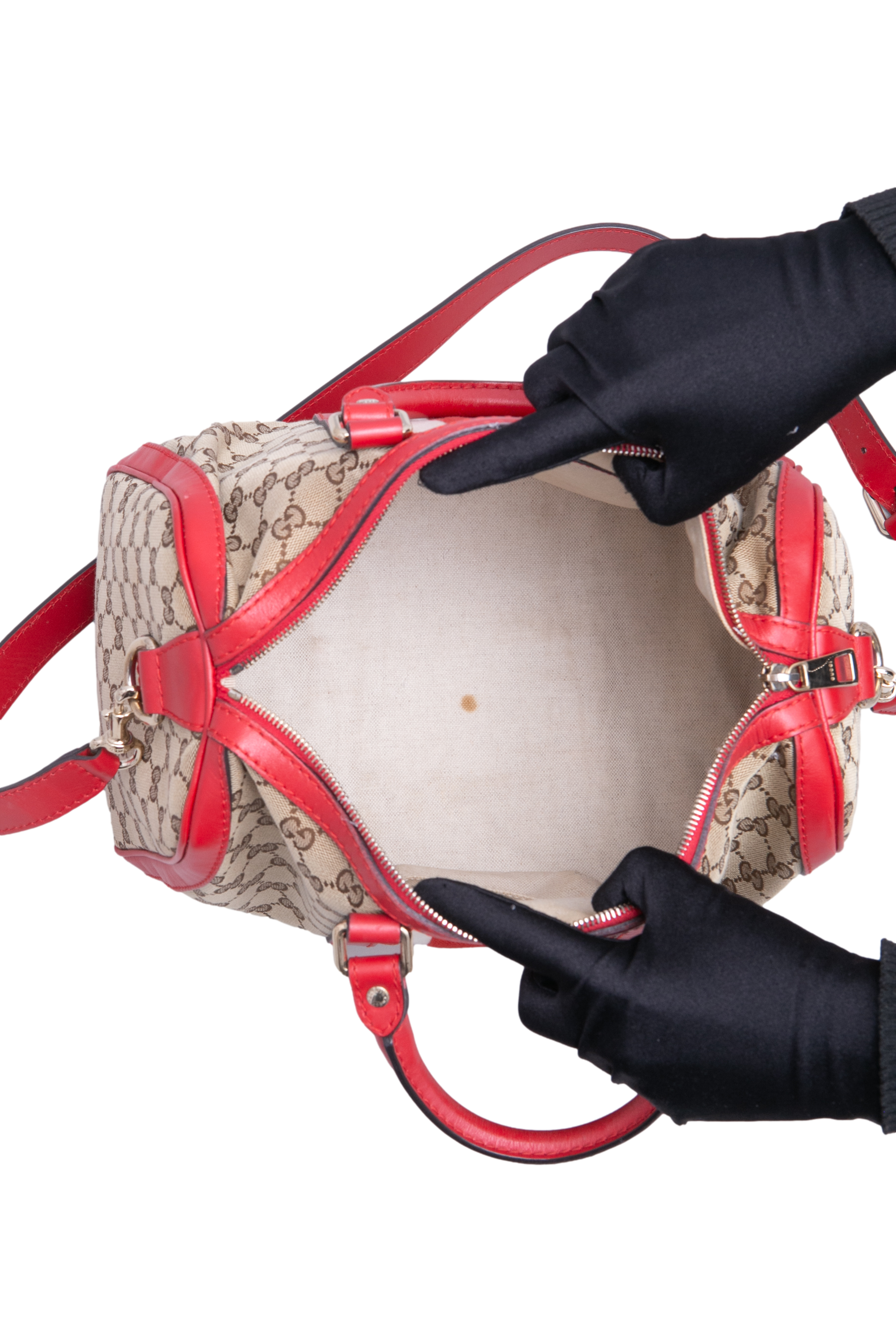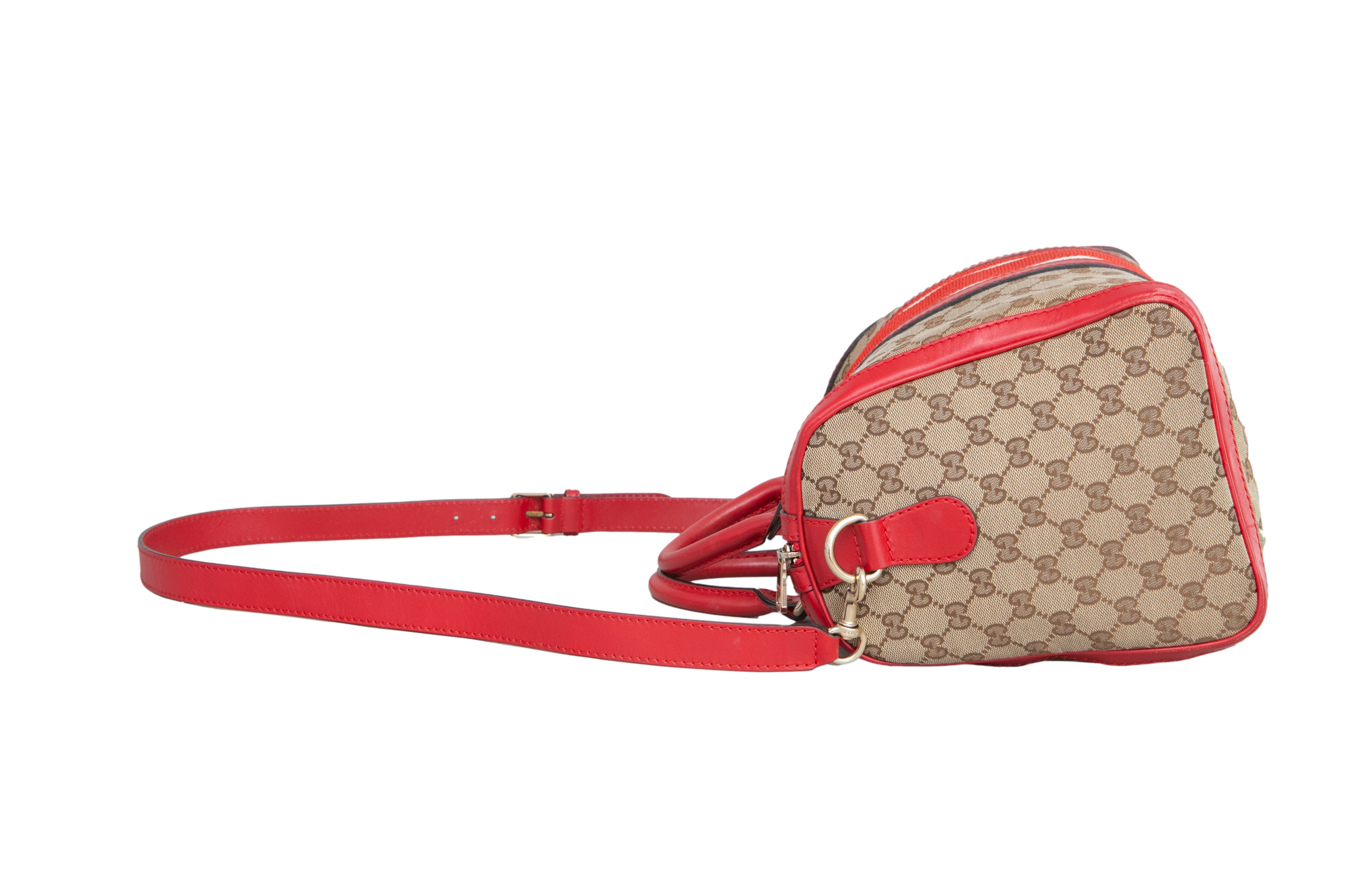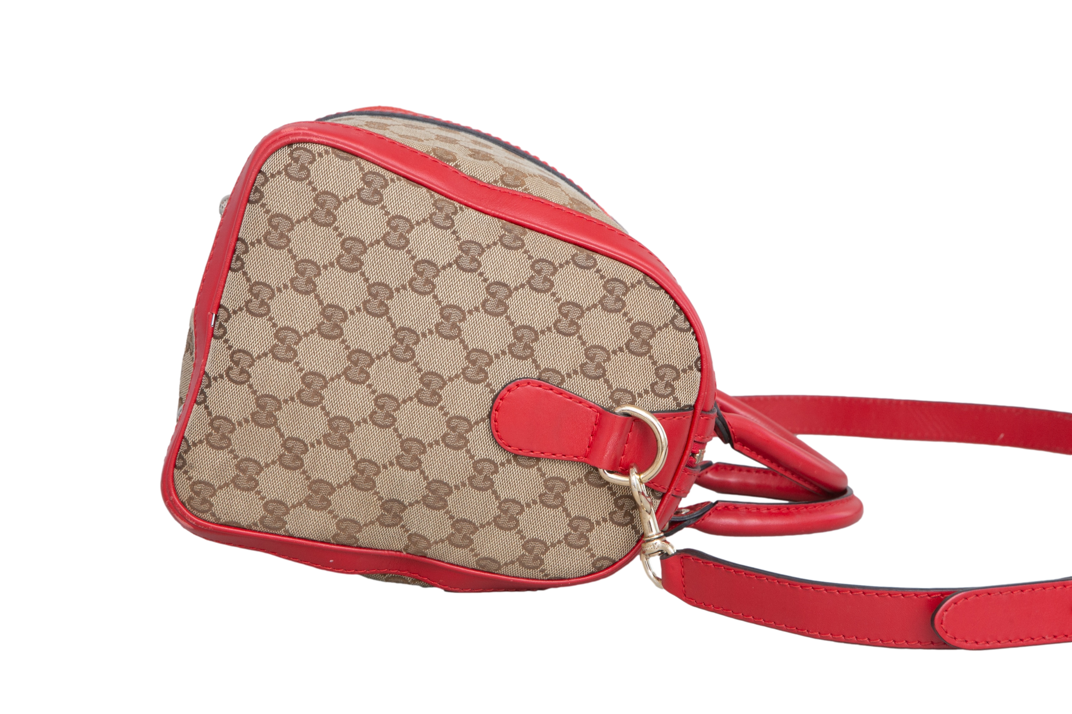 Gucci Boston Medium GG Canvas & Red Fire. Peça em ótimo estado, possui marcas de uso, scratches nas arestas e manchas na parte interna.