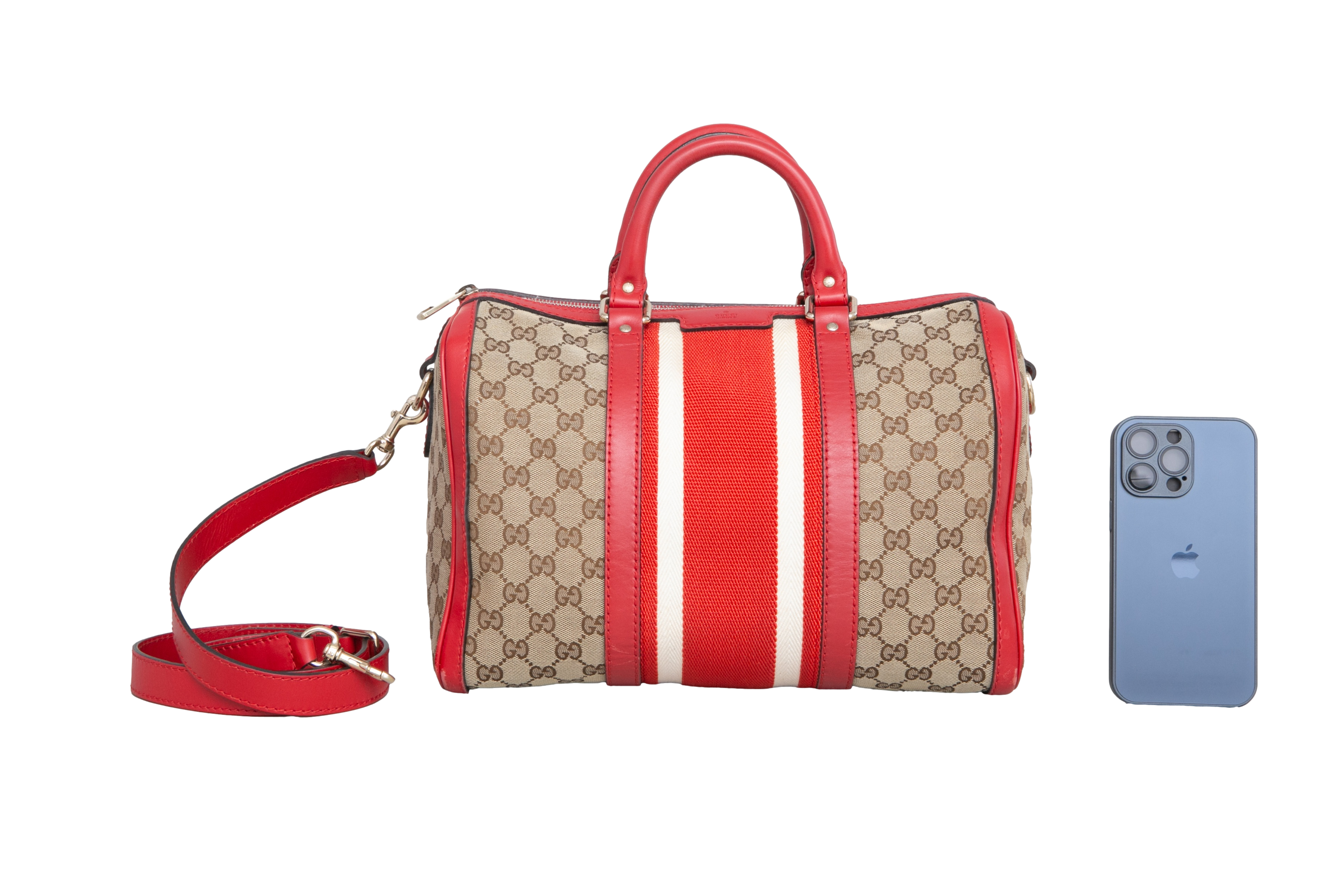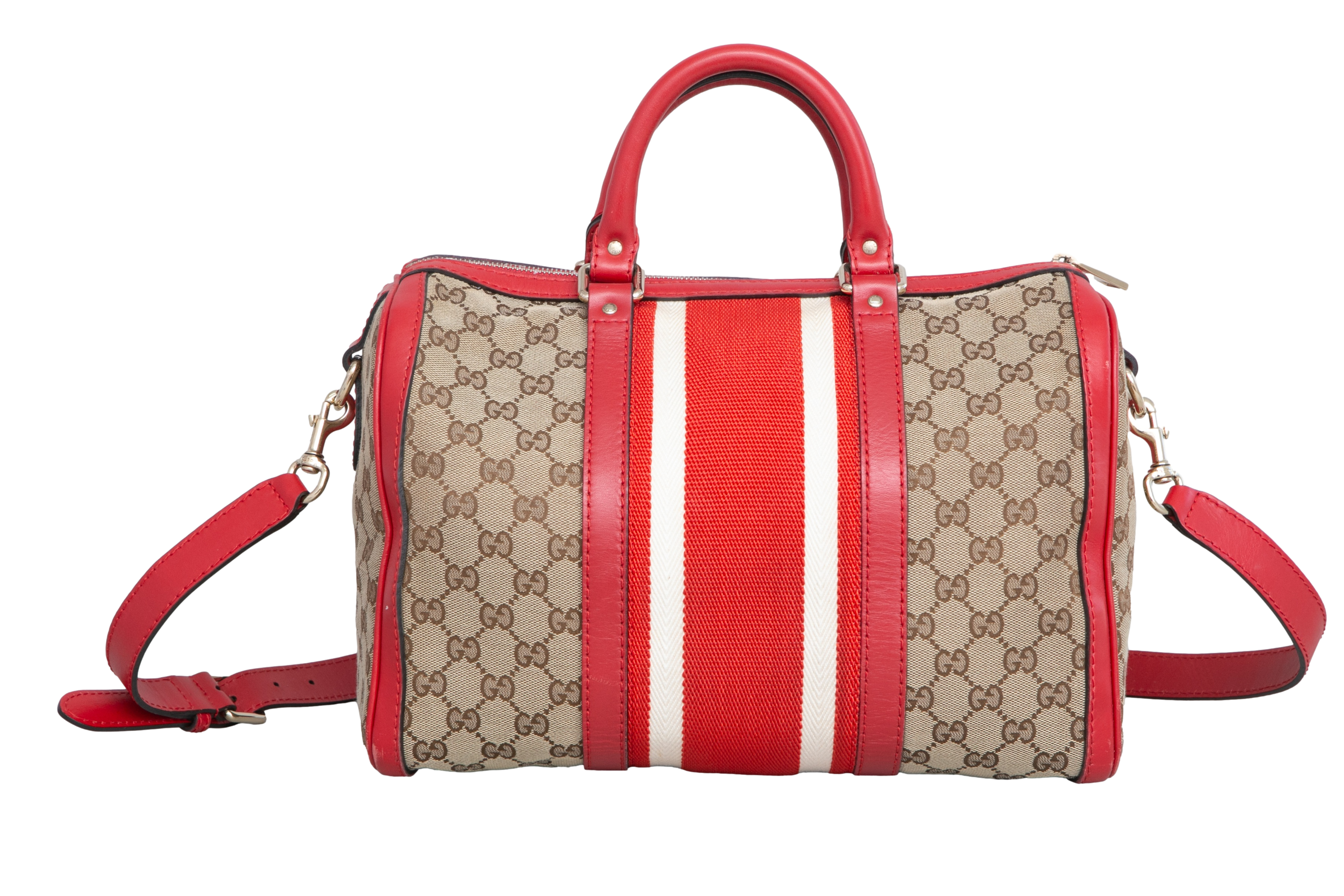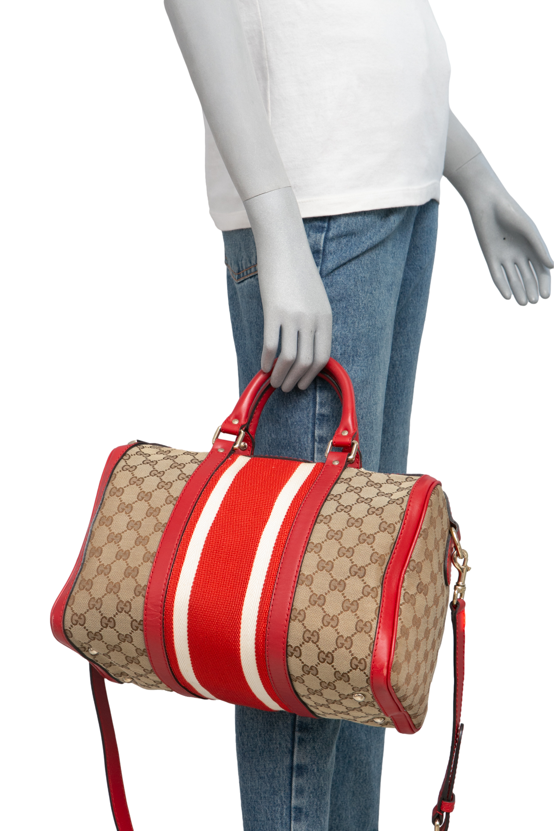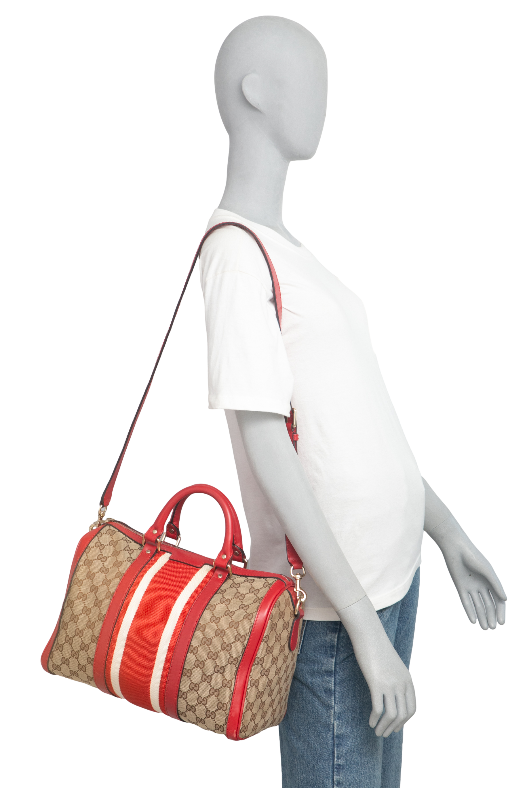Gucci Boston Medium GG Canvas & Red Fire. Peça em ótimo estado, possui marcas de uso, scratches nas arestas e manchas na parte interna.
