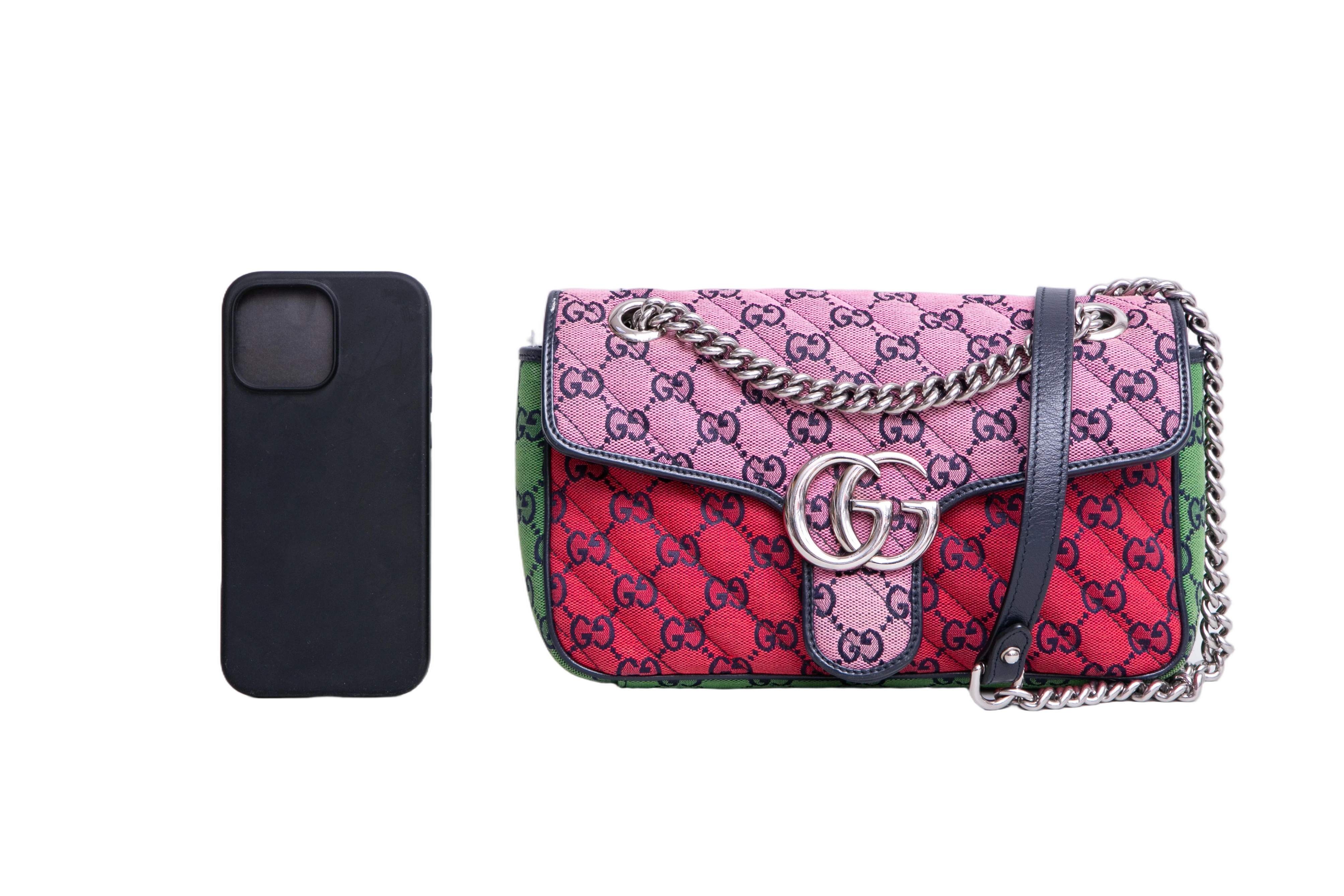 Gucci GG Marmont 2.0 Medium Multicolored. Peça em perfeito estado, possui pequenas manchas no forro. Acomoda todos os tamanhos de telefone.