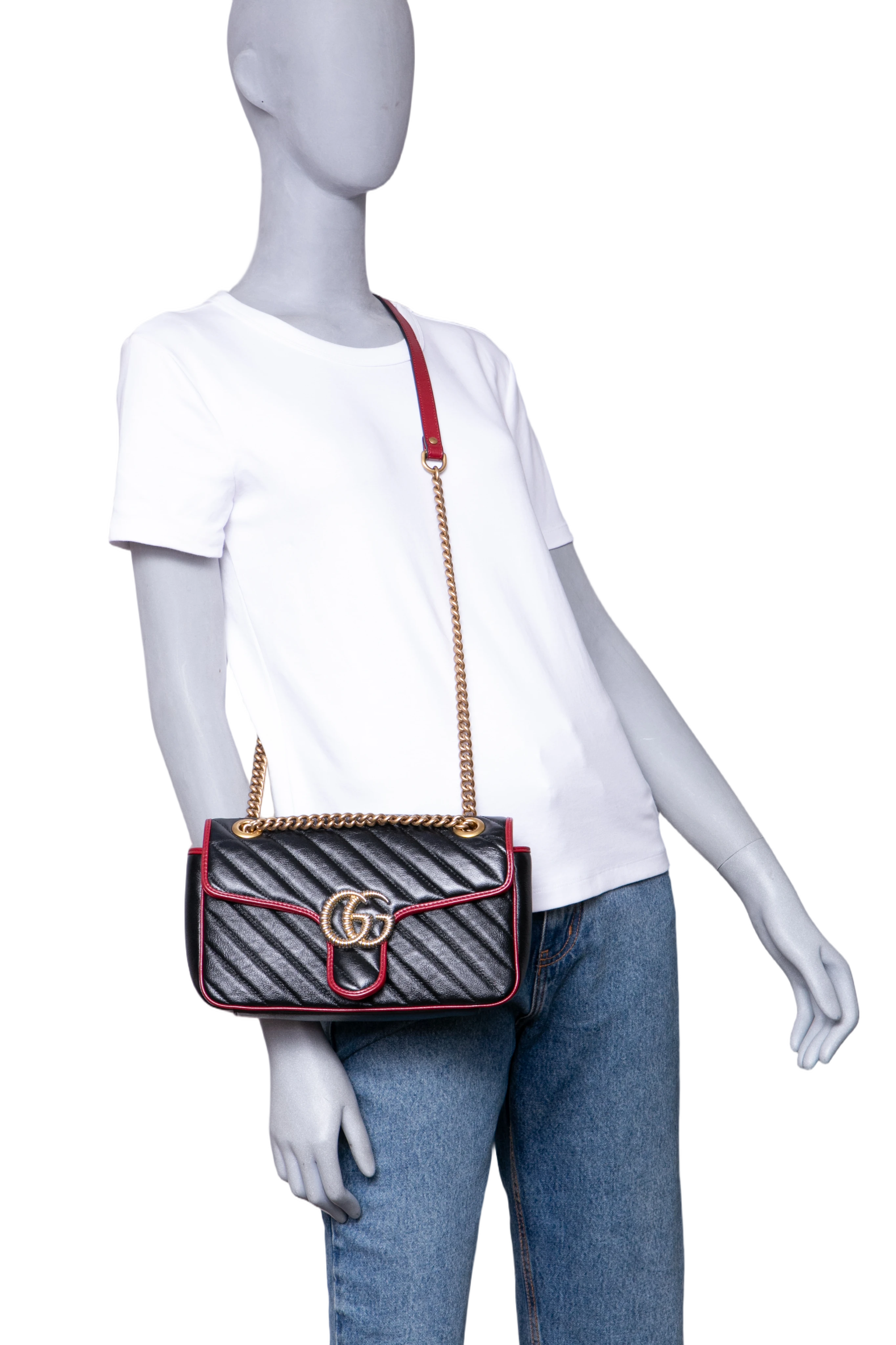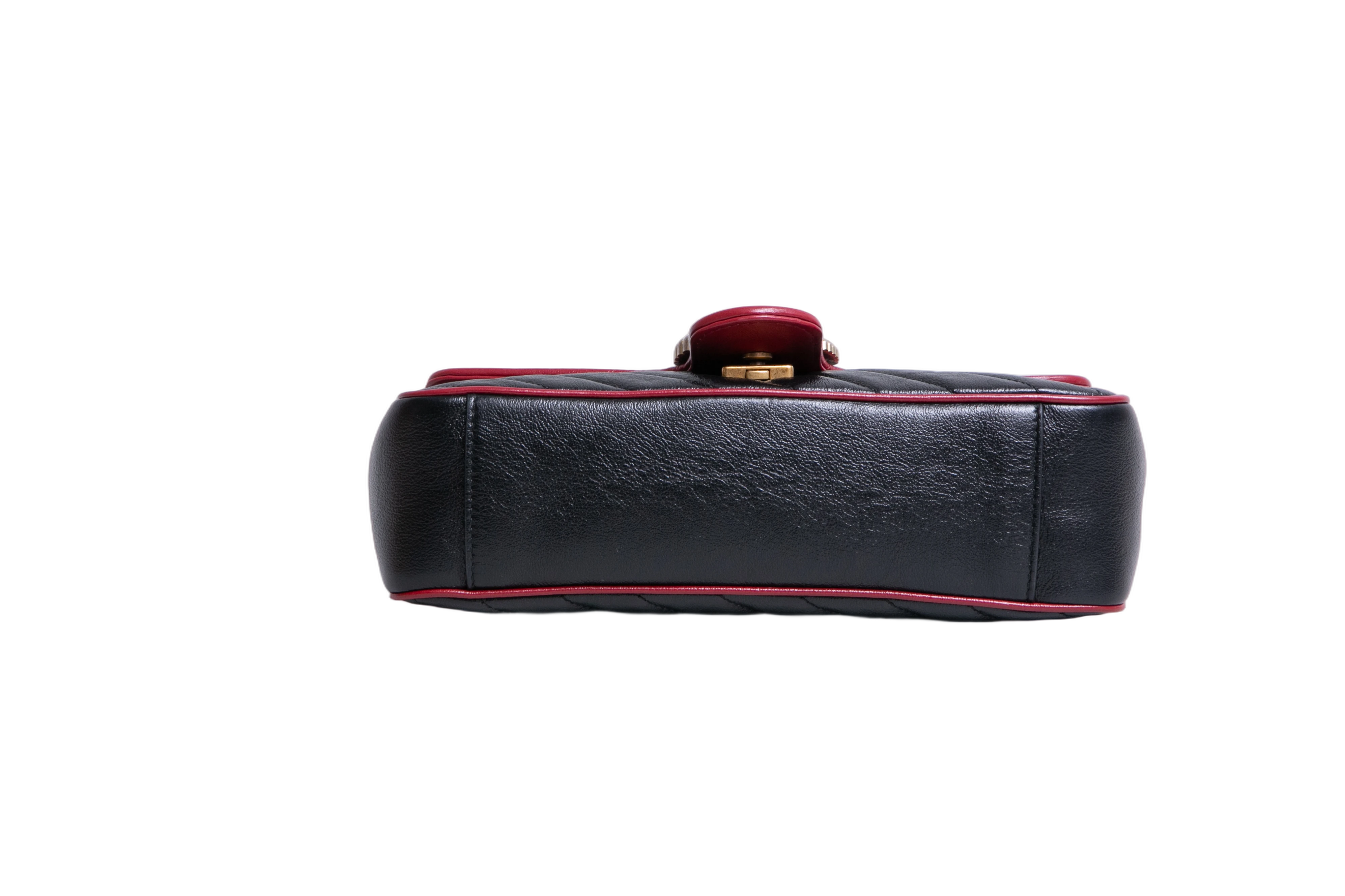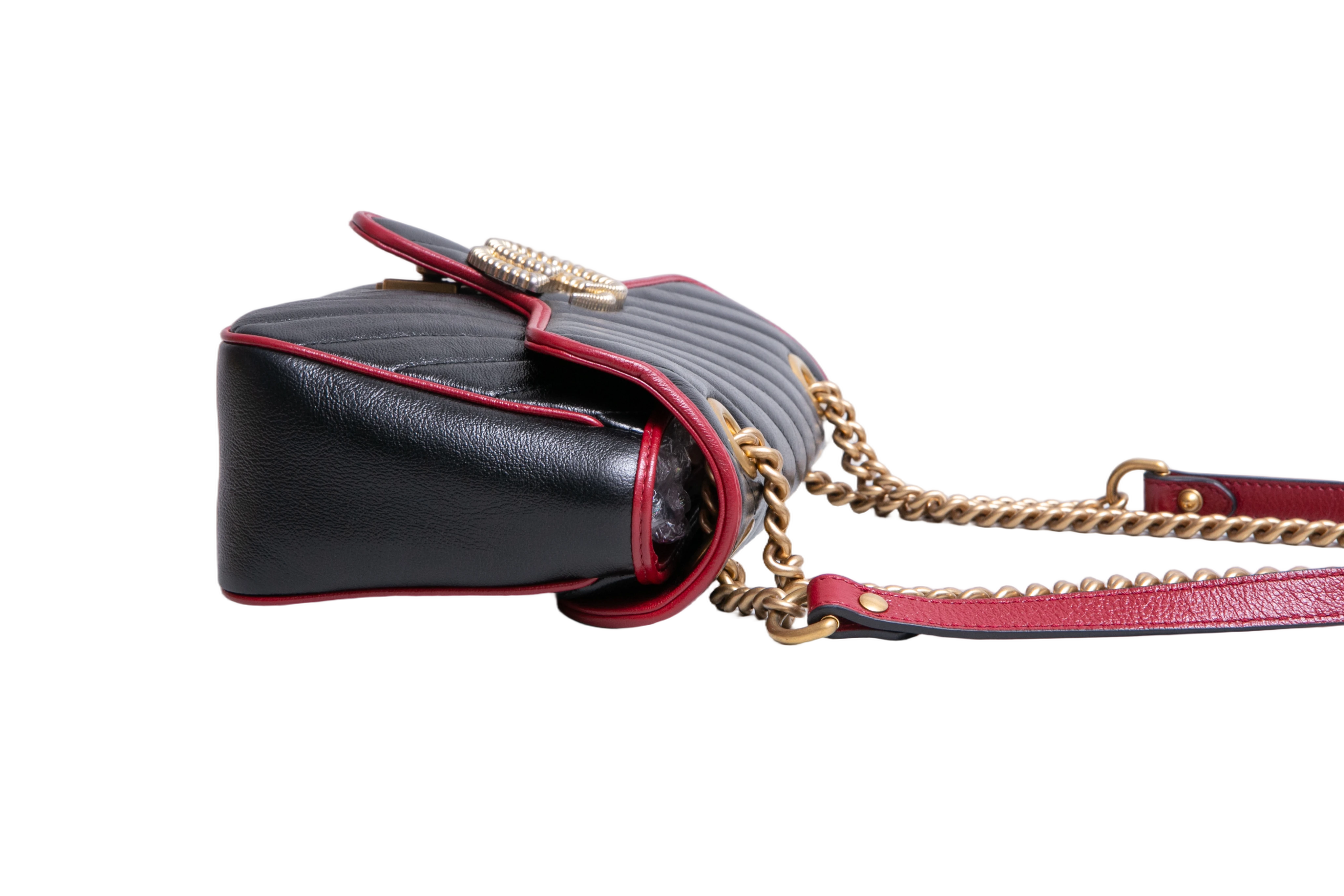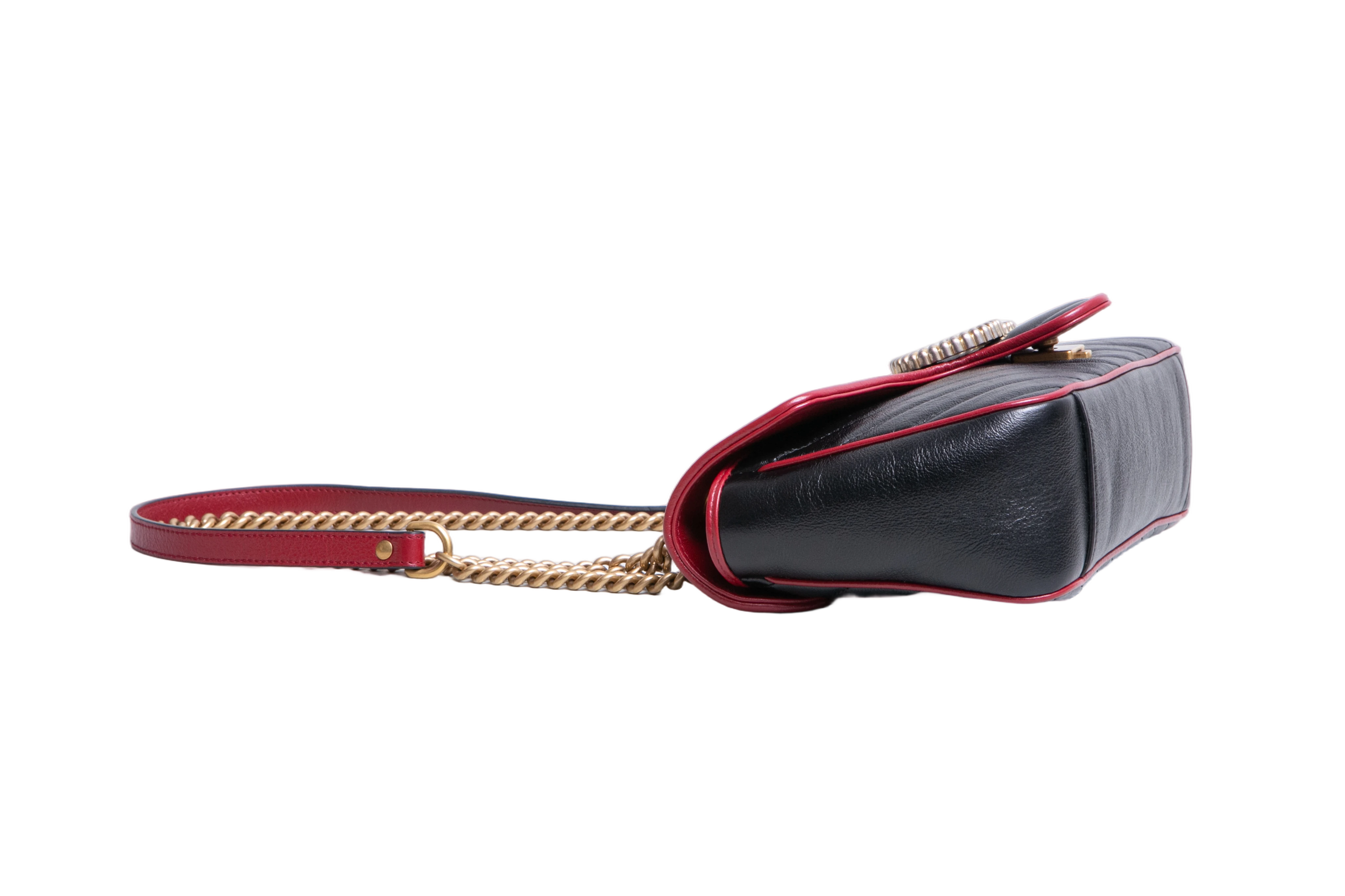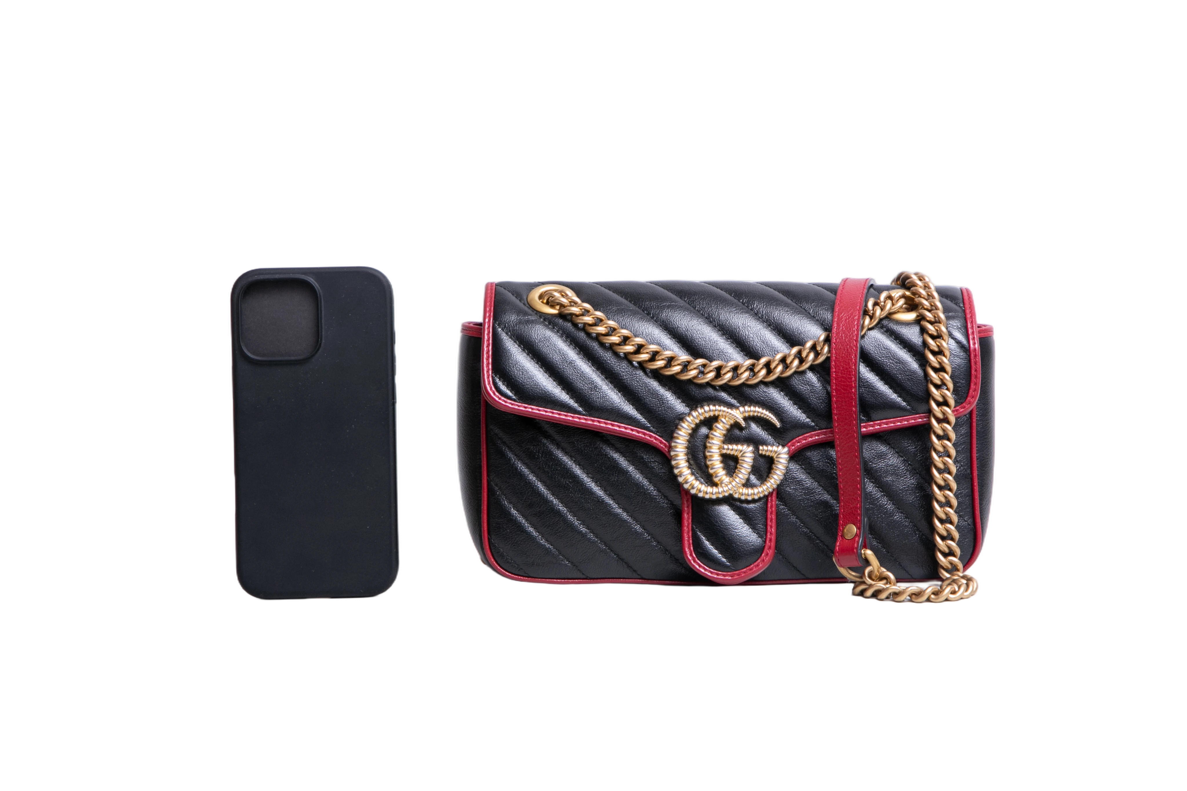 Gucci GG Marmont Small Black and Red. Peça em perfeito estado, pequenos sinais no couro. Acomoda todos os tamanhos de telefone.