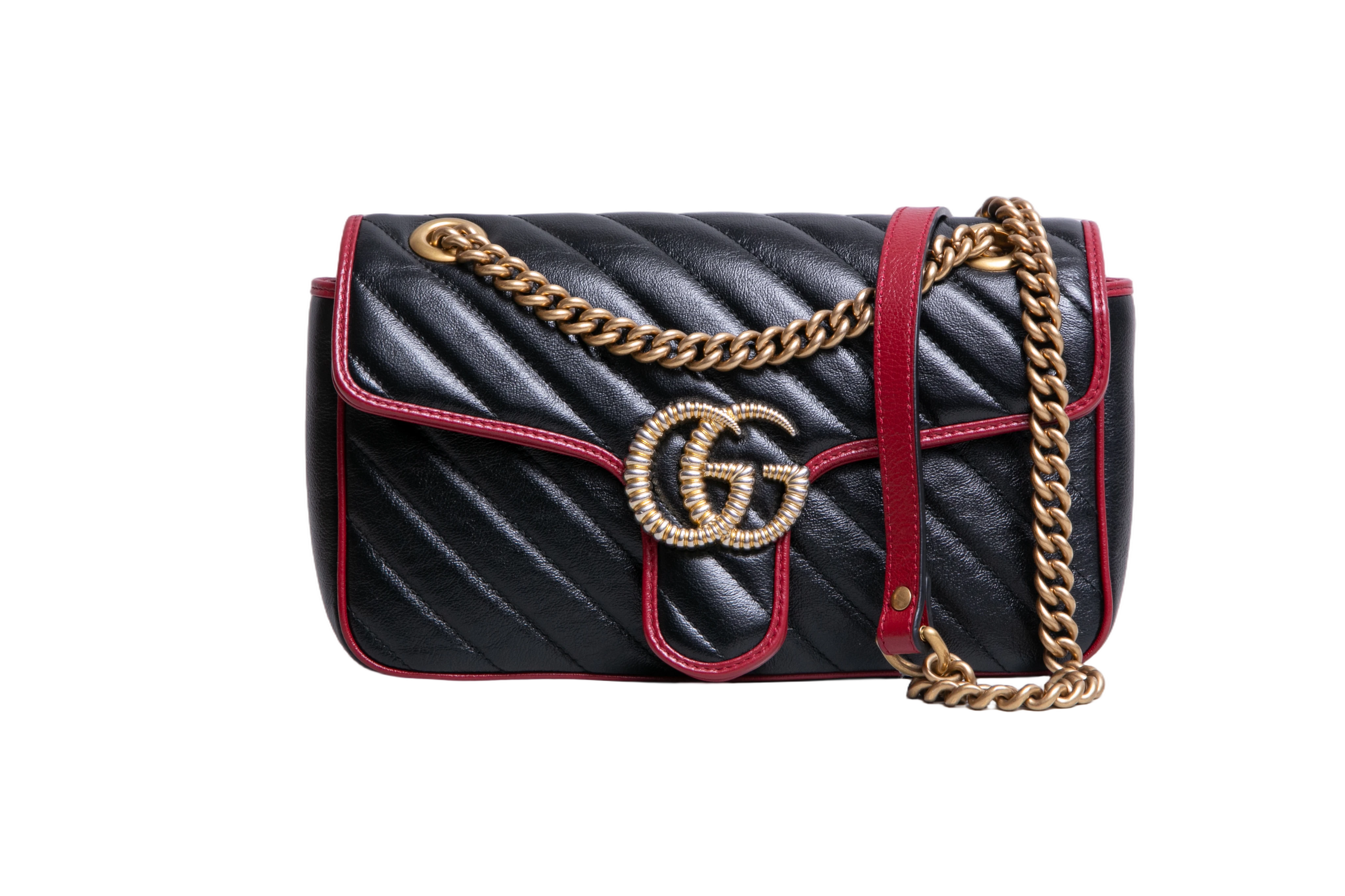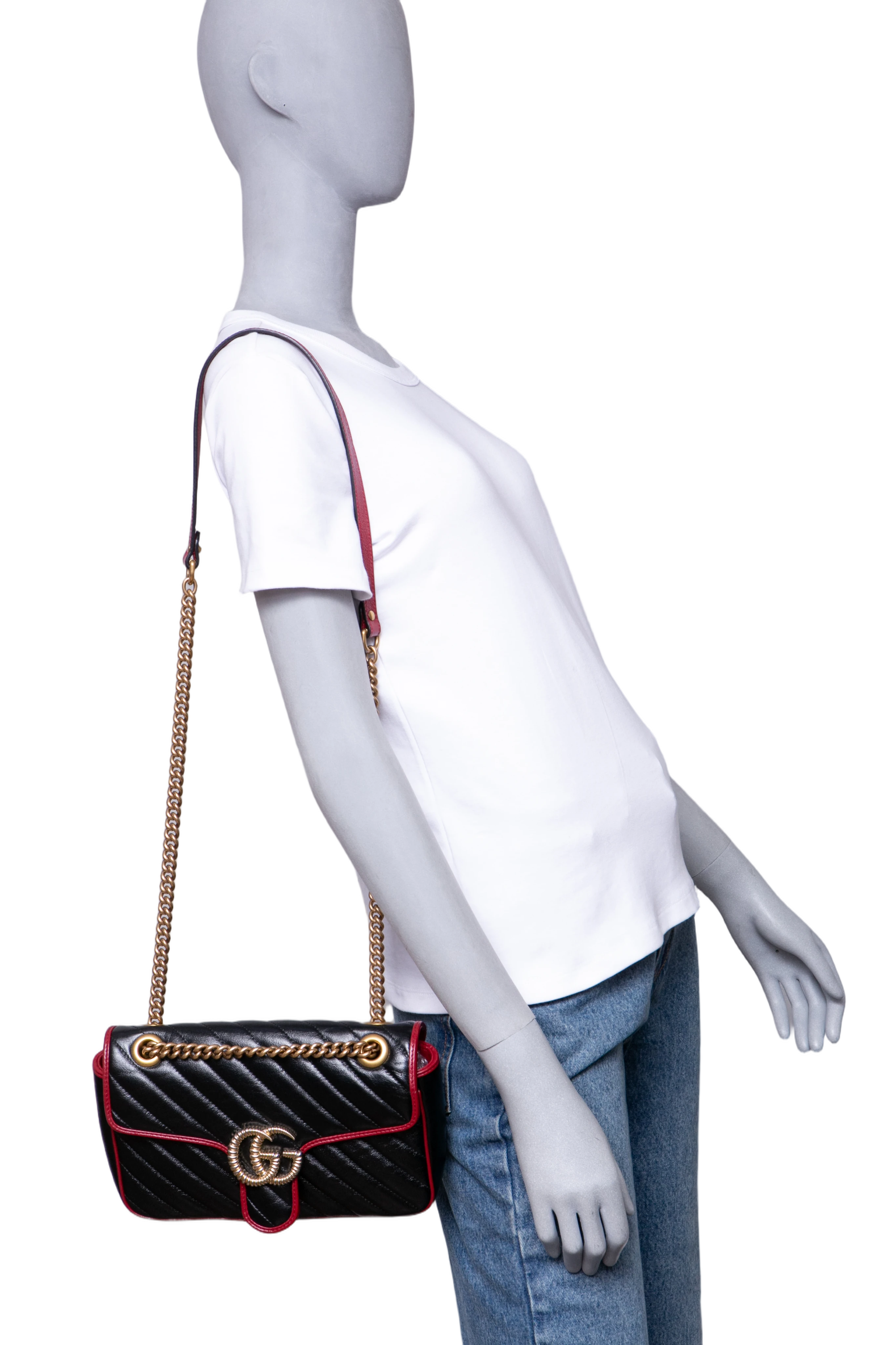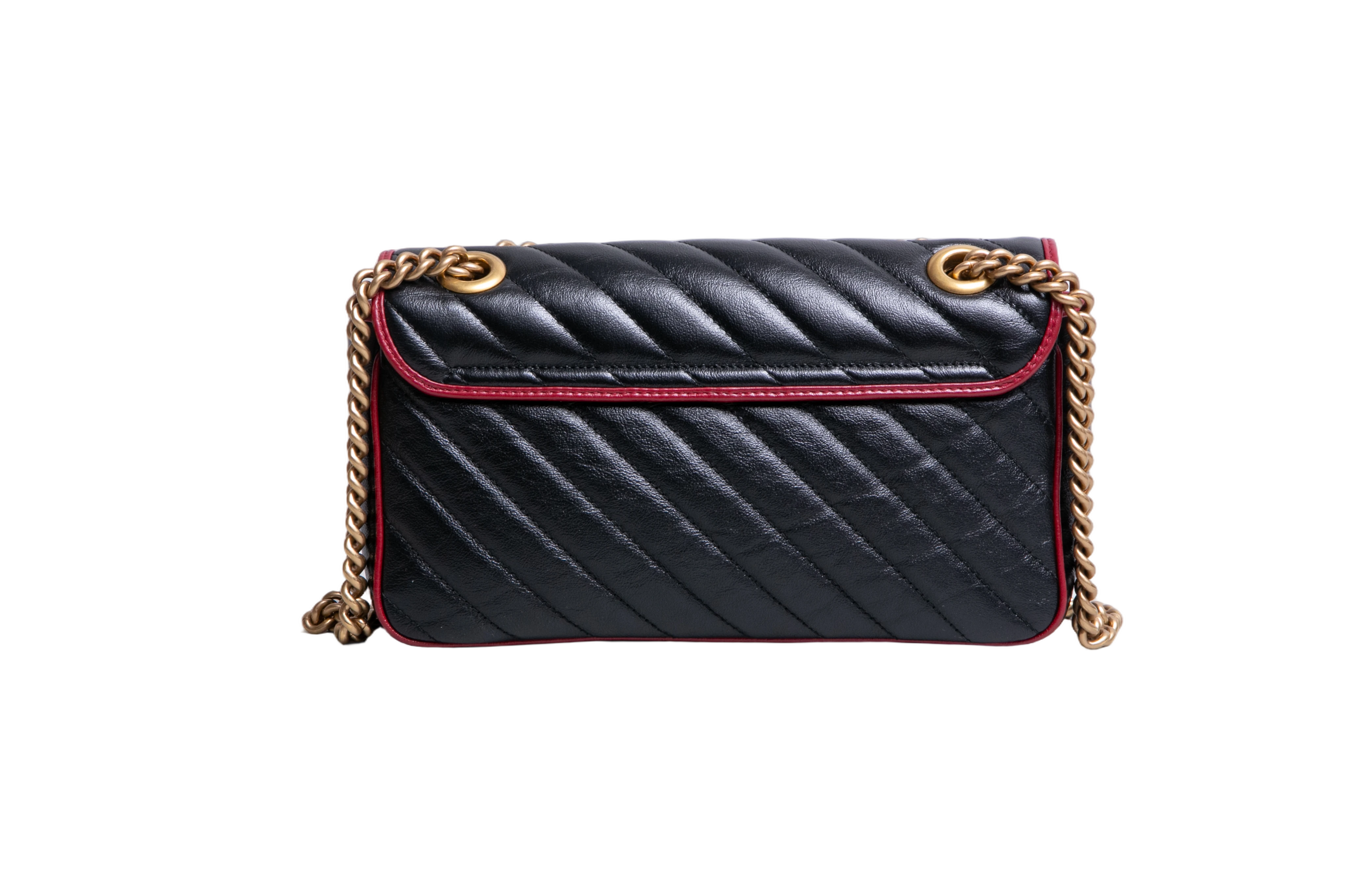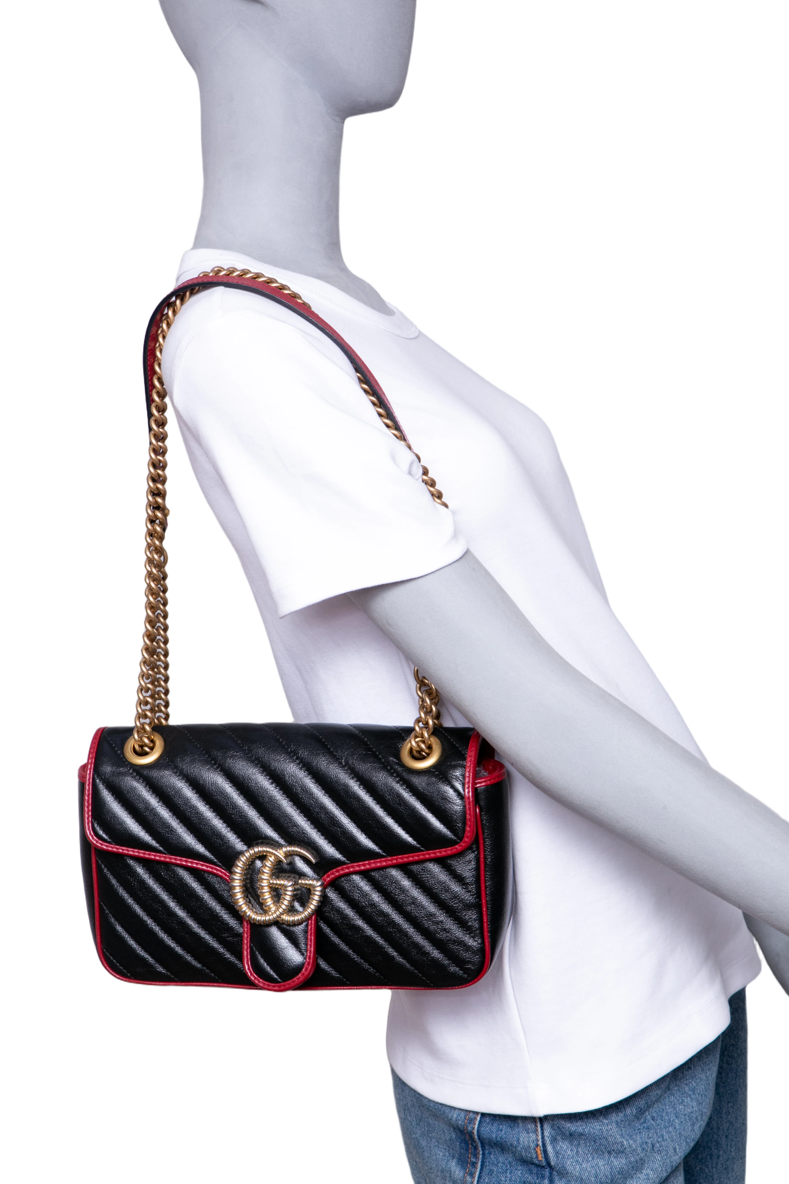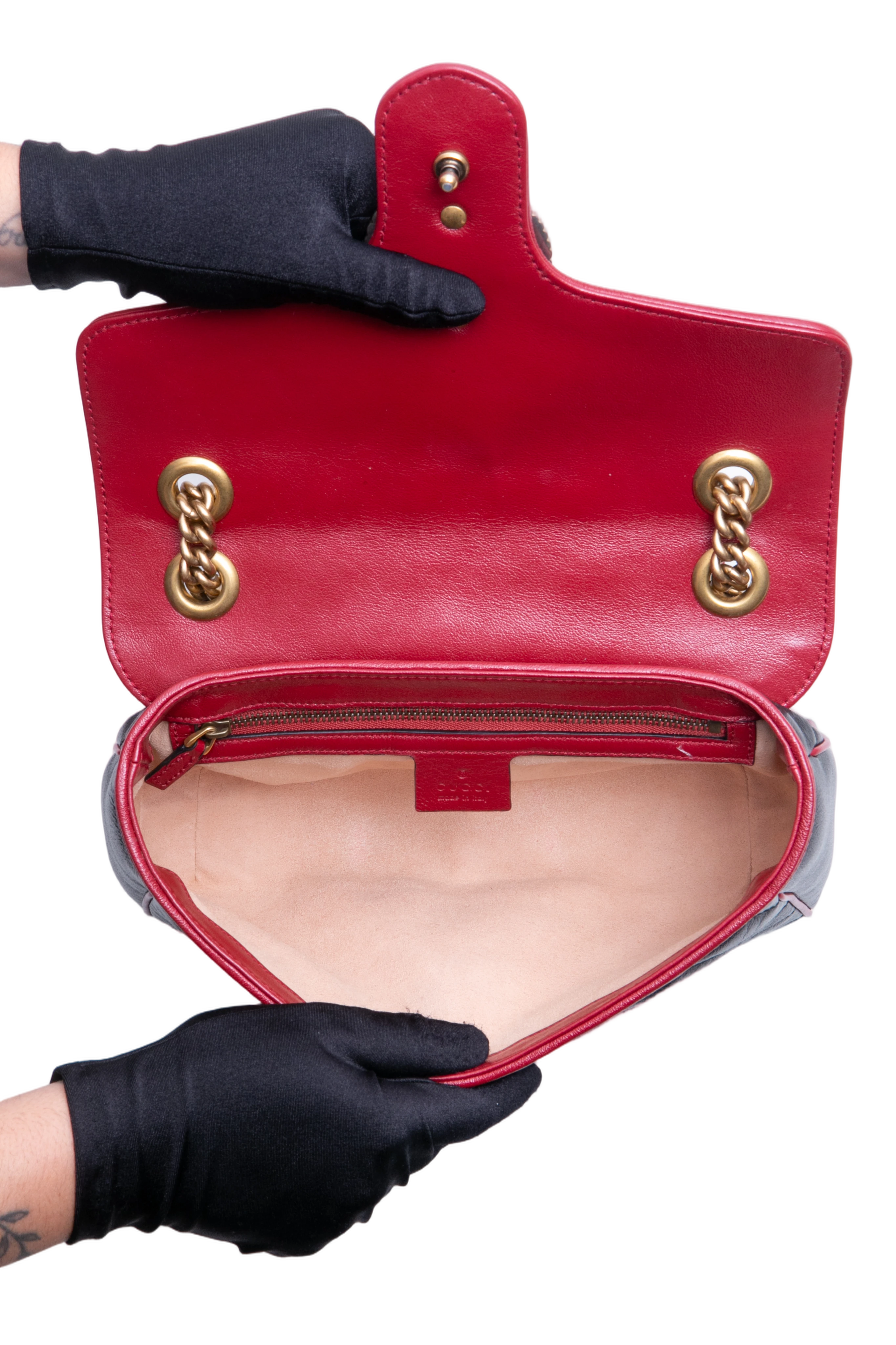 Gucci GG Marmont Small Black and Red. Peça em perfeito estado, pequenos sinais no couro. Acomoda todos os tamanhos de telefone.
