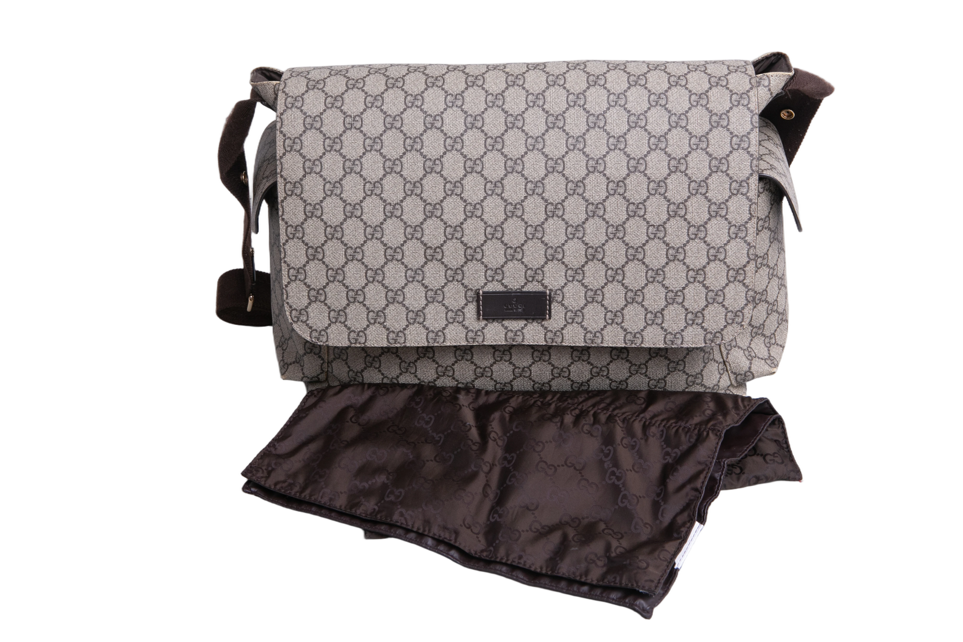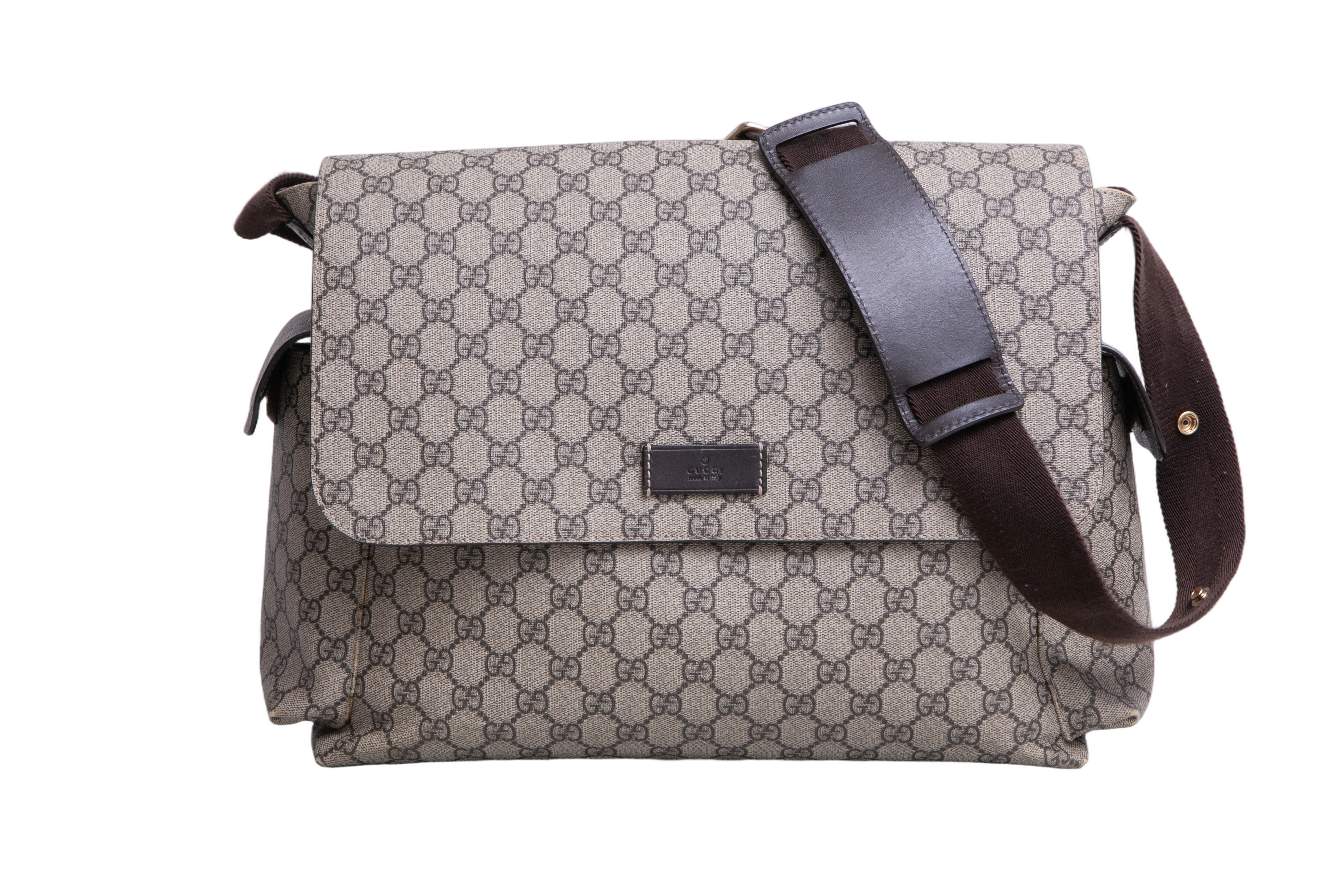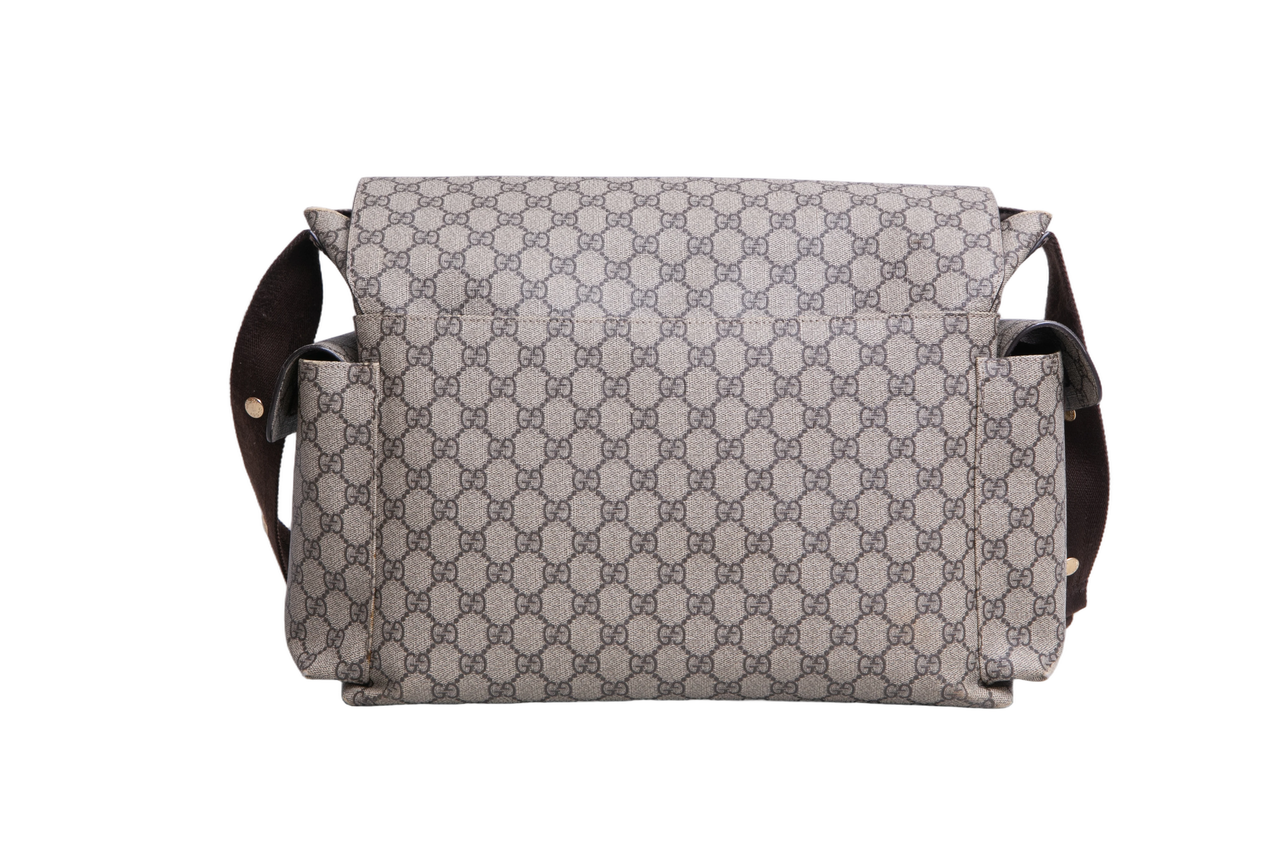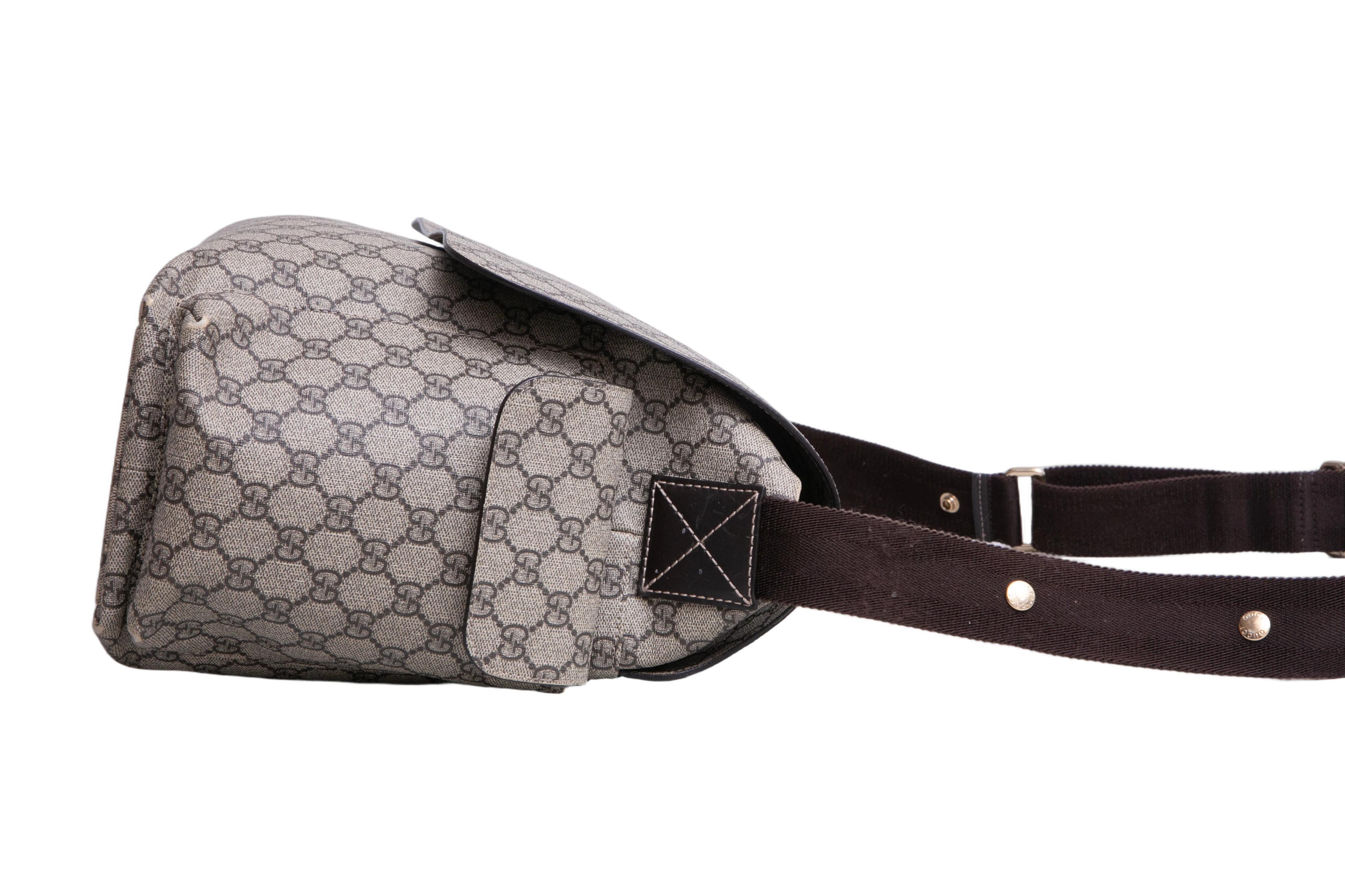 Gucci GG Plus Diaper Bag. Peça em ótimo estado, possui sinais nas arestas, tecido e alça.