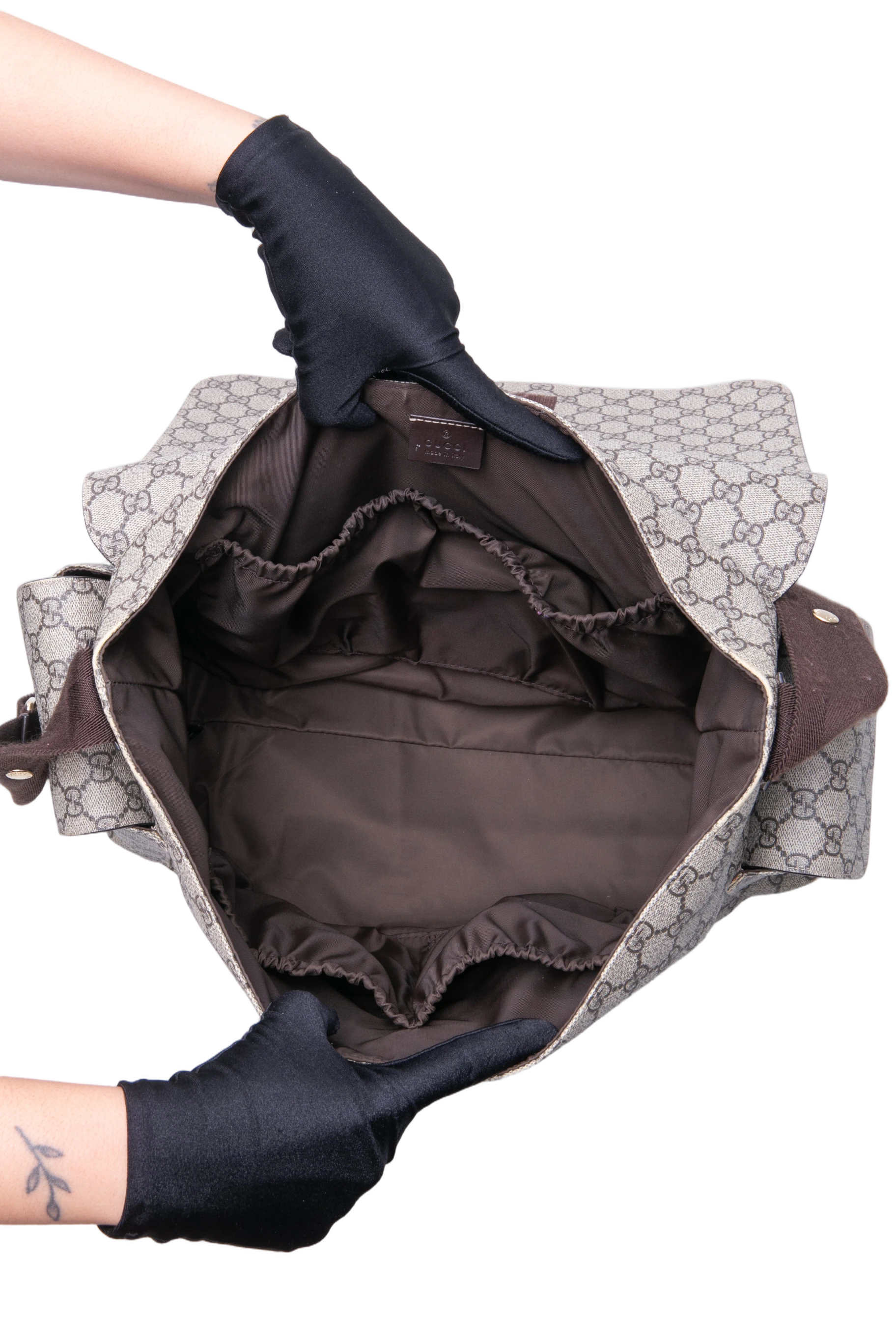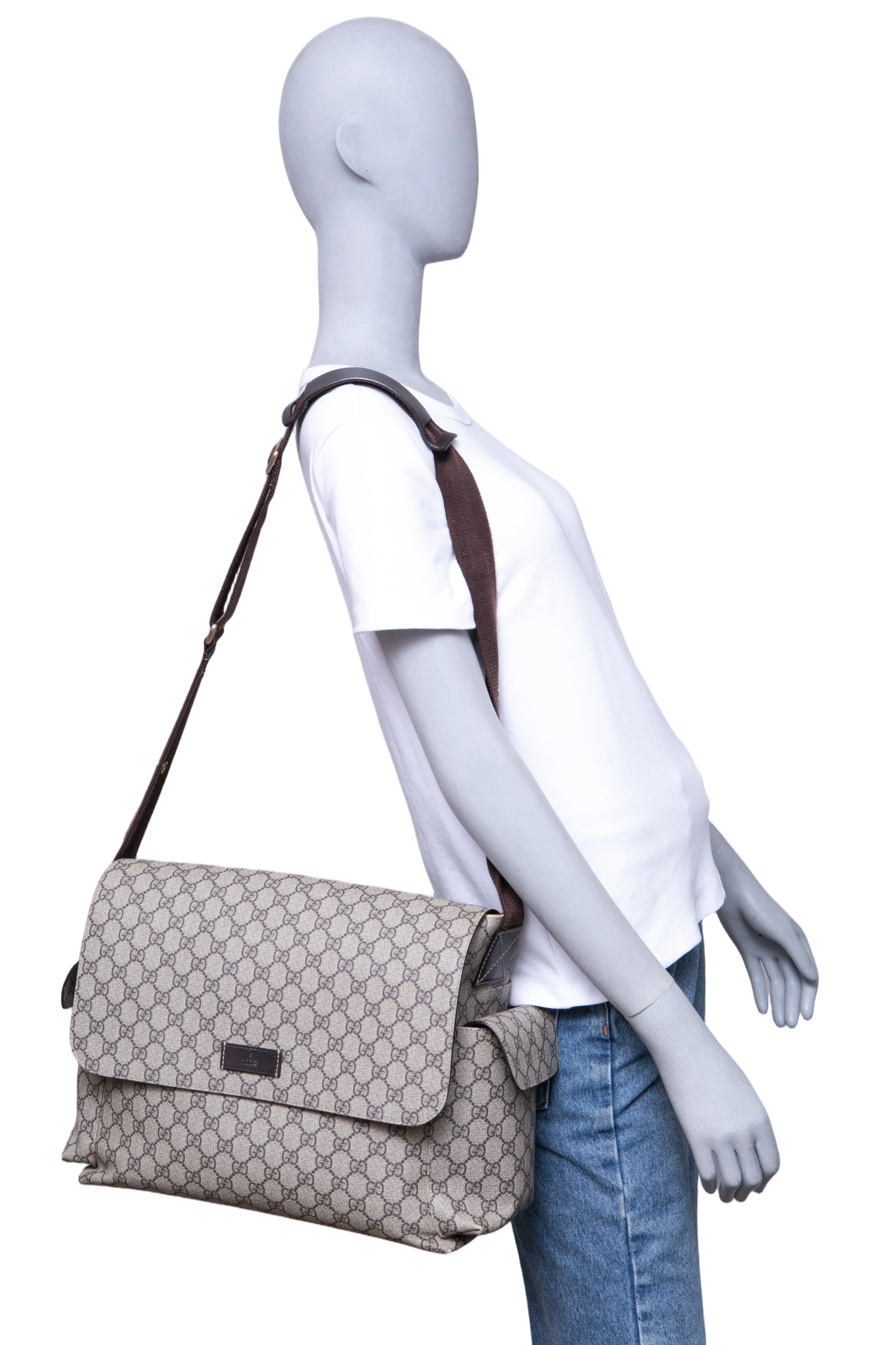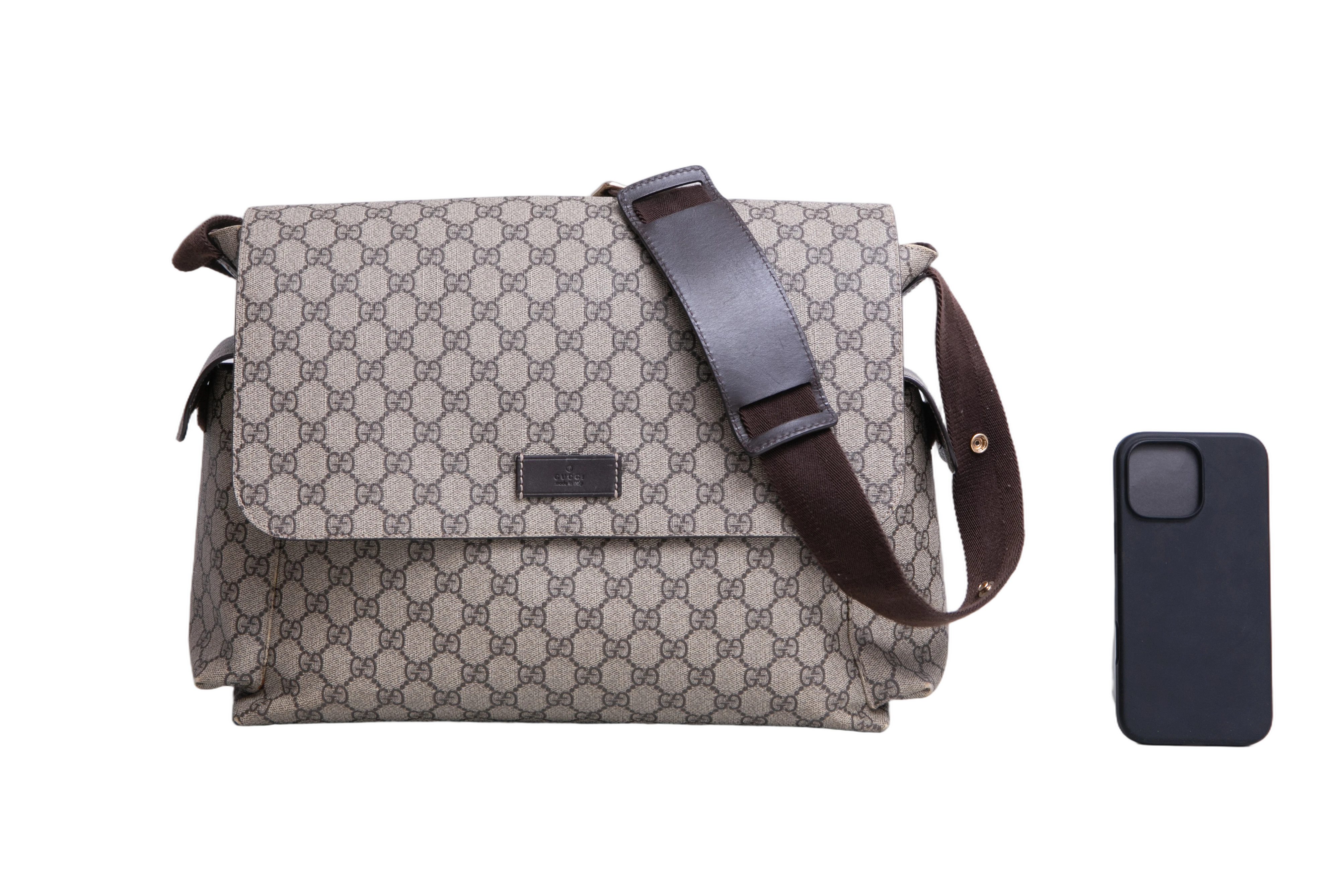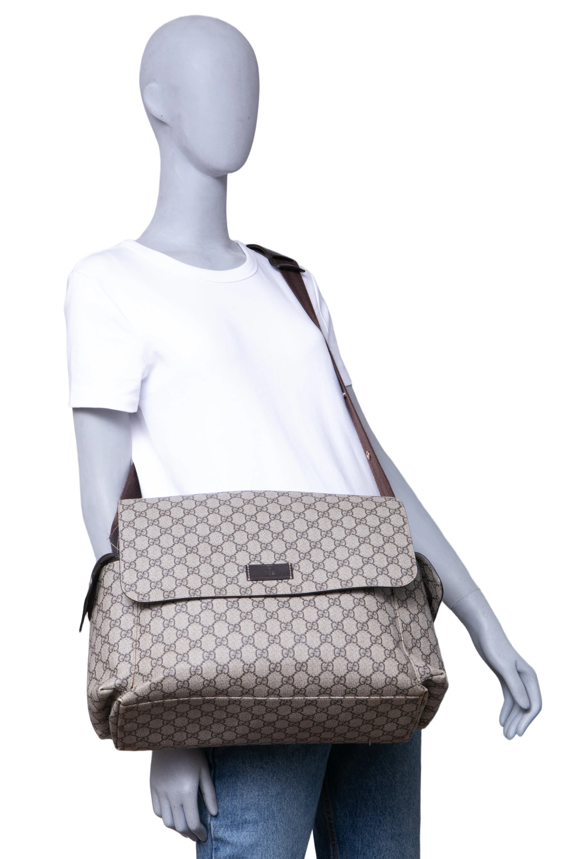 Gucci GG Plus Diaper Bag. Peça em ótimo estado, possui sinais nas arestas, tecido e alça.