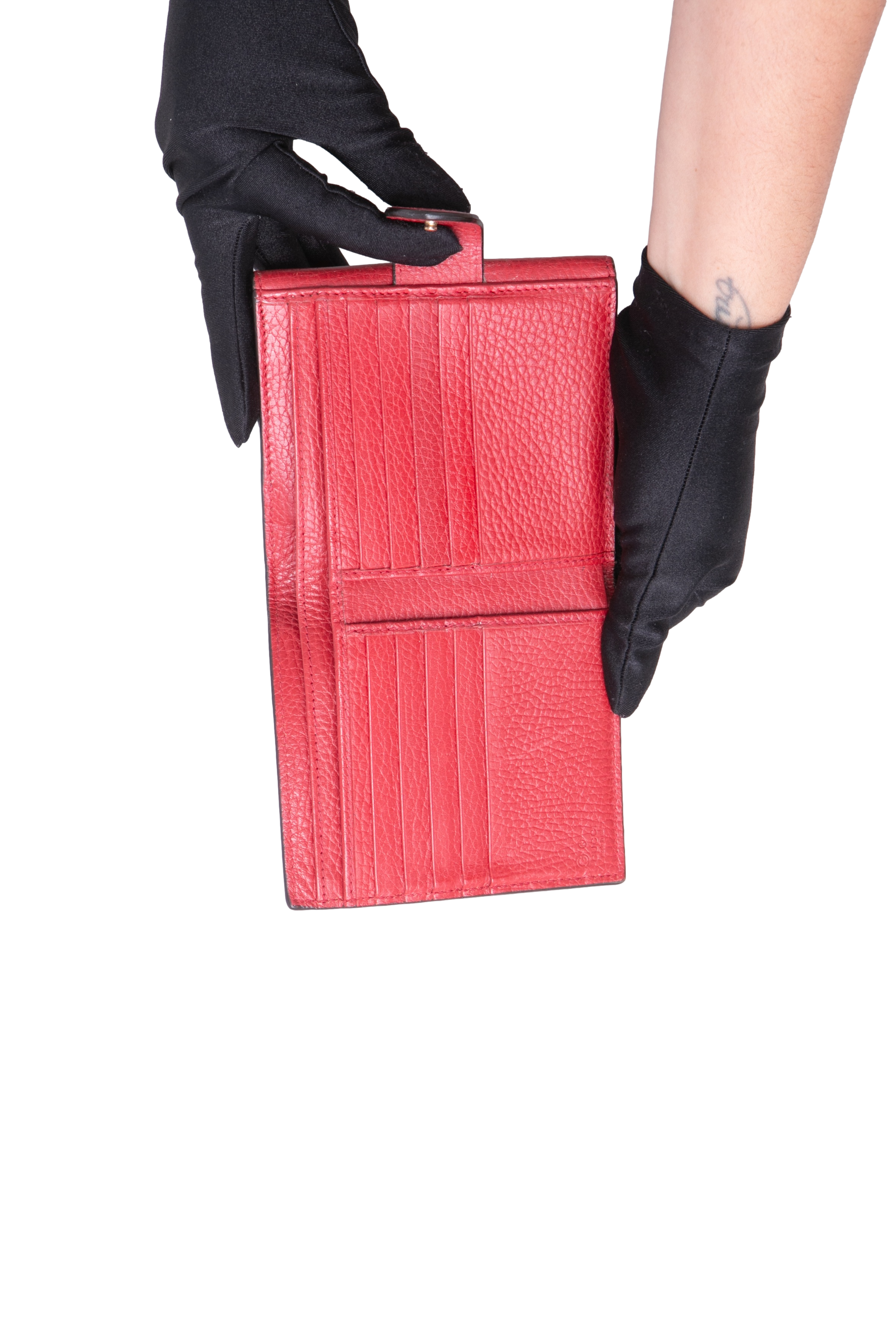 Gucci Wallet Bi-Fold Sollar Interlocking Red. Peça em ótimo estado, possui pequenas manchas de uso no couro.