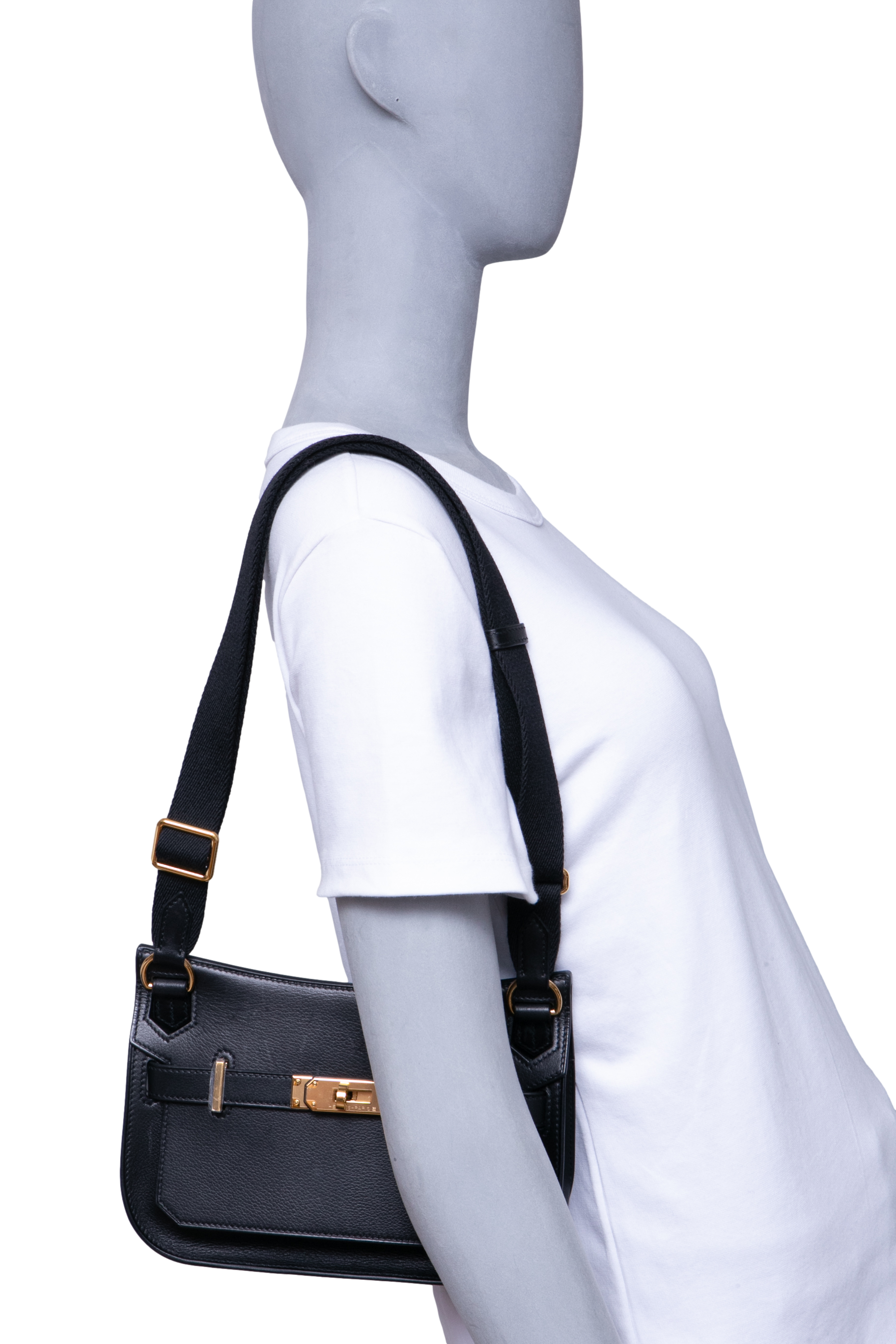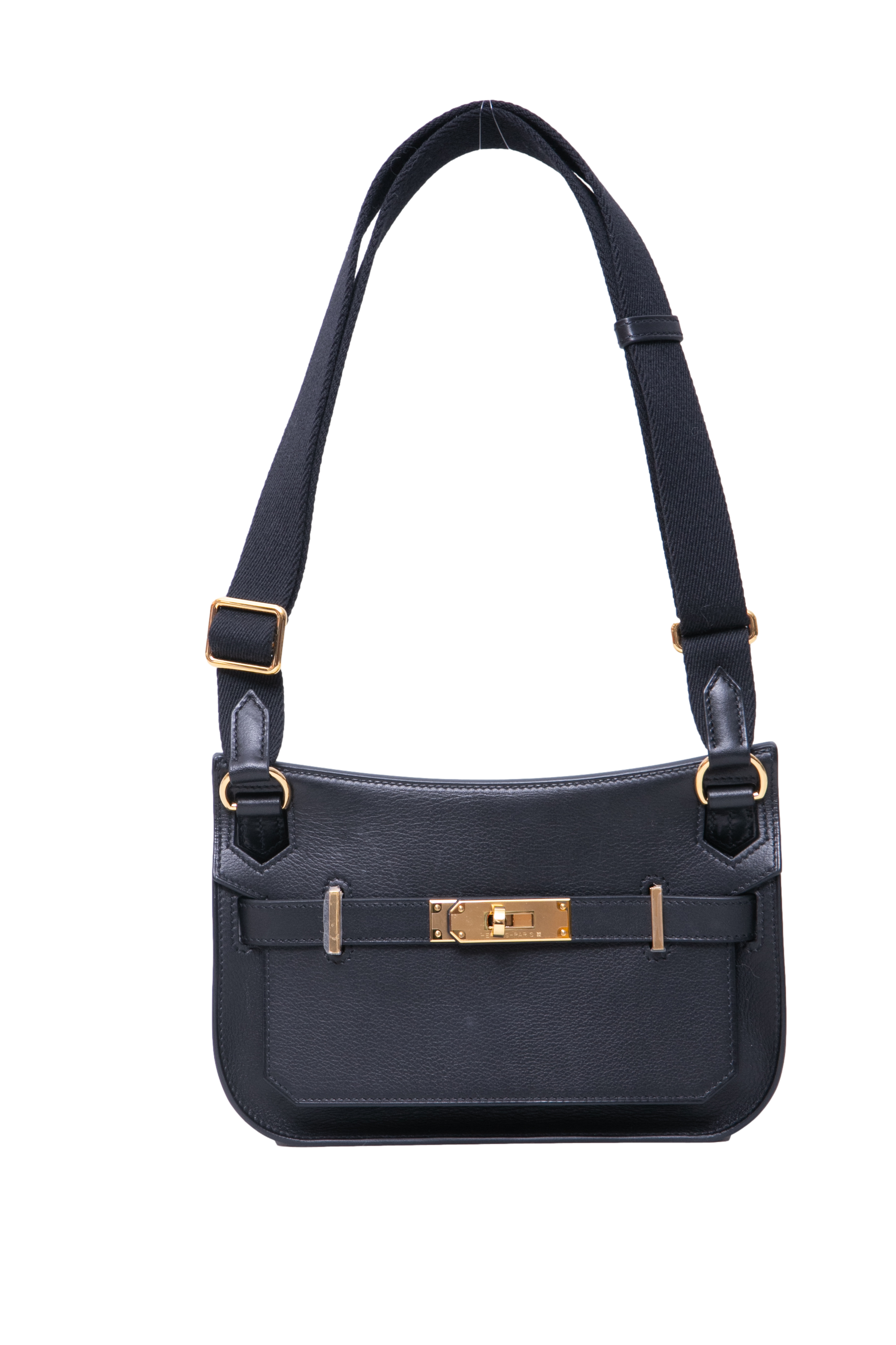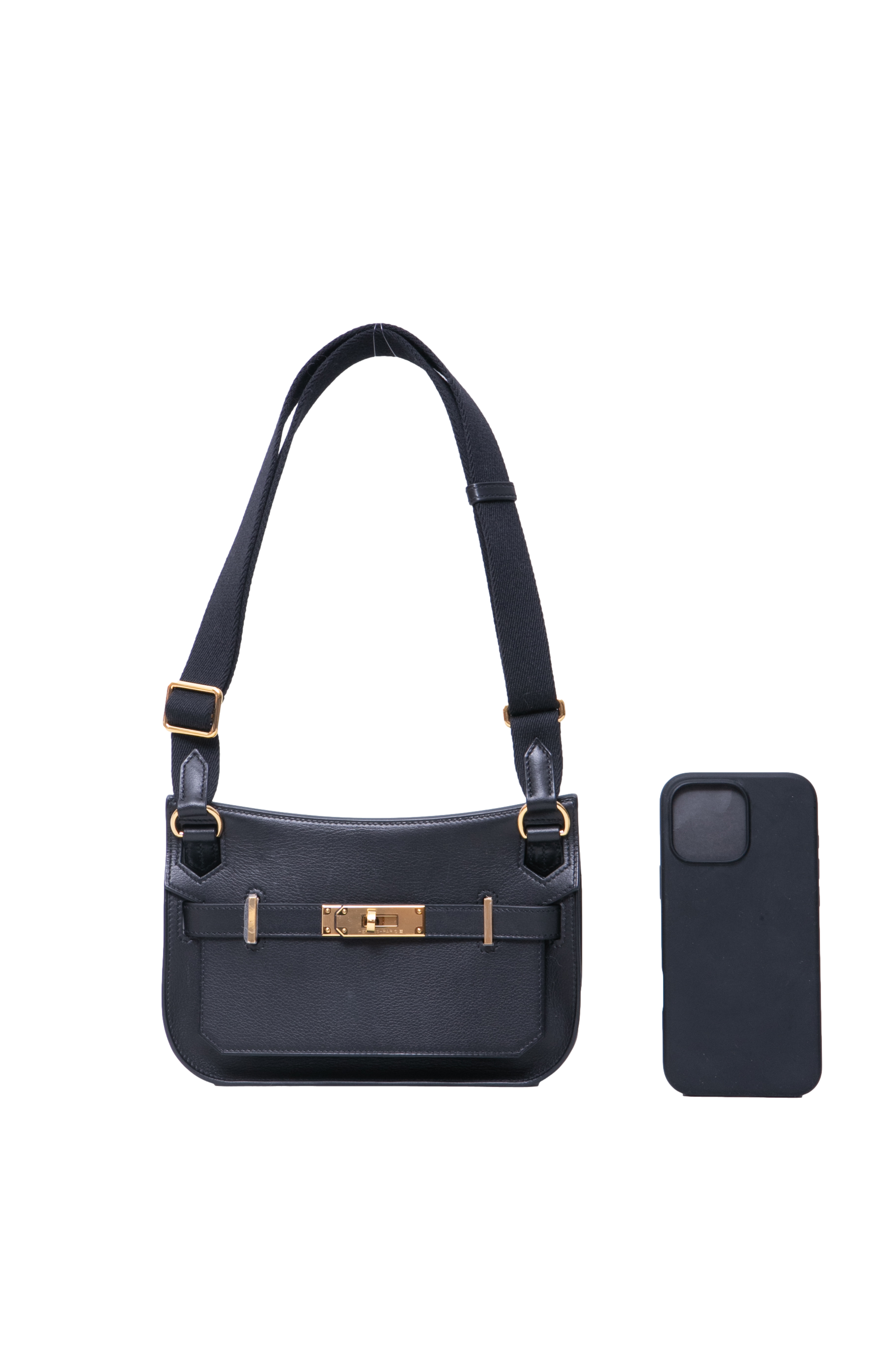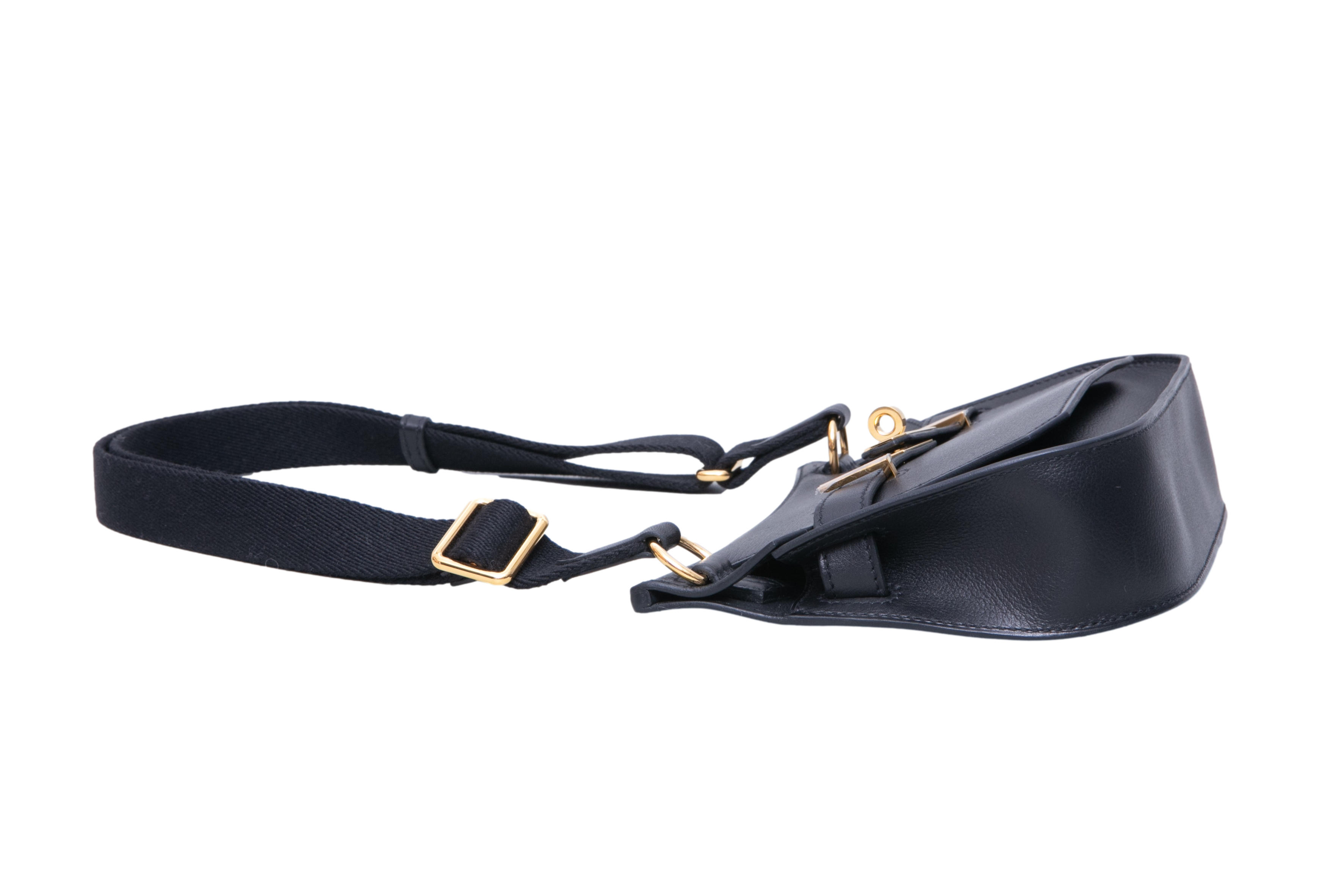 Hermès Jypsière Mini Evergrain Calfskin Holly Strap Noir. Peça em perfeito estado, possui pequenos sinais no couro.
