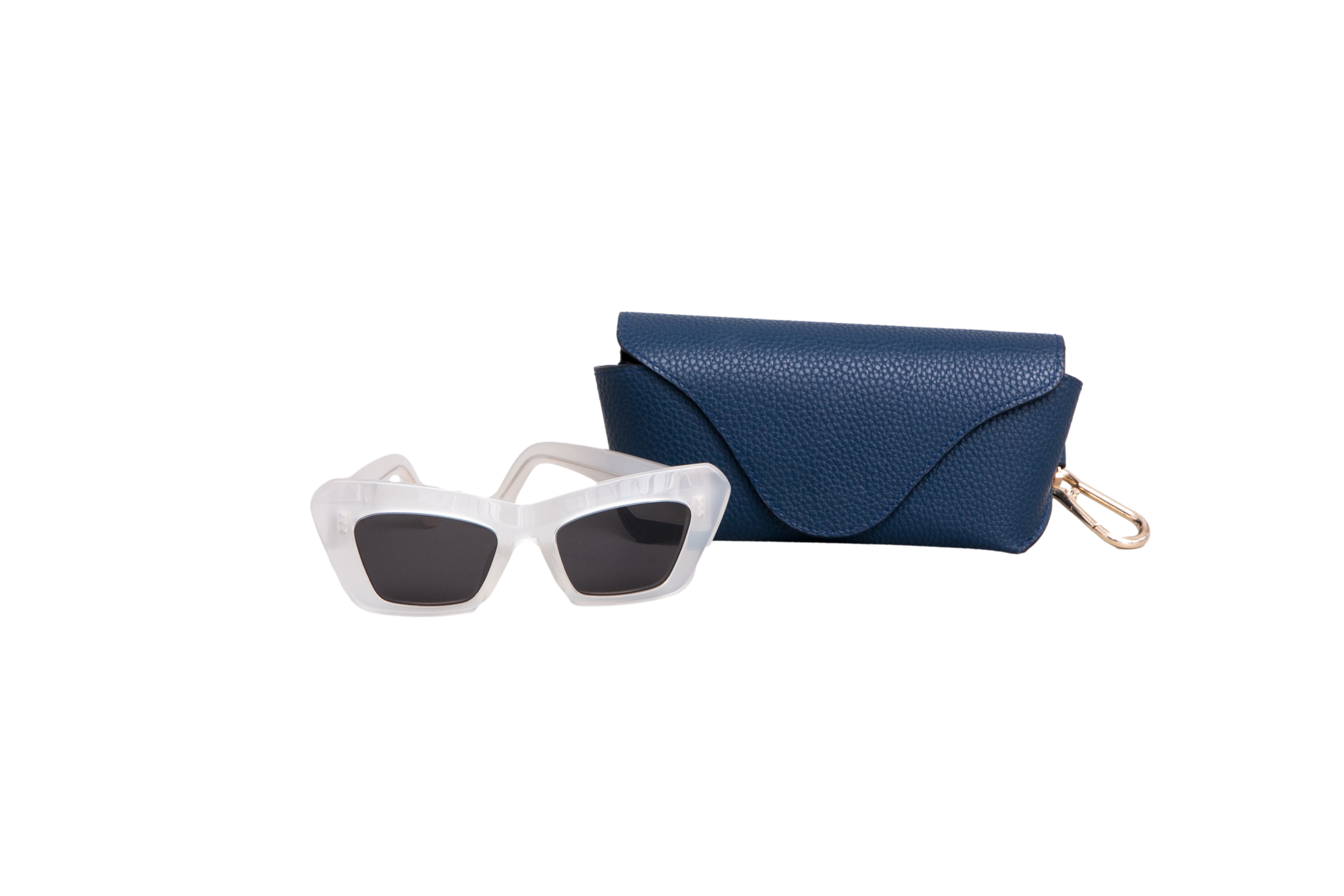 O óculos é uma peça sofisticada que combina design moderno com uma estética atemporal. Produzido em acetato transparente de alta qualidade, seu acabamento facetado (beveled) nas bordas confere um visual elegante e escultural, realçando a silhueta marcante em formato gatinho (cateye).
